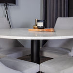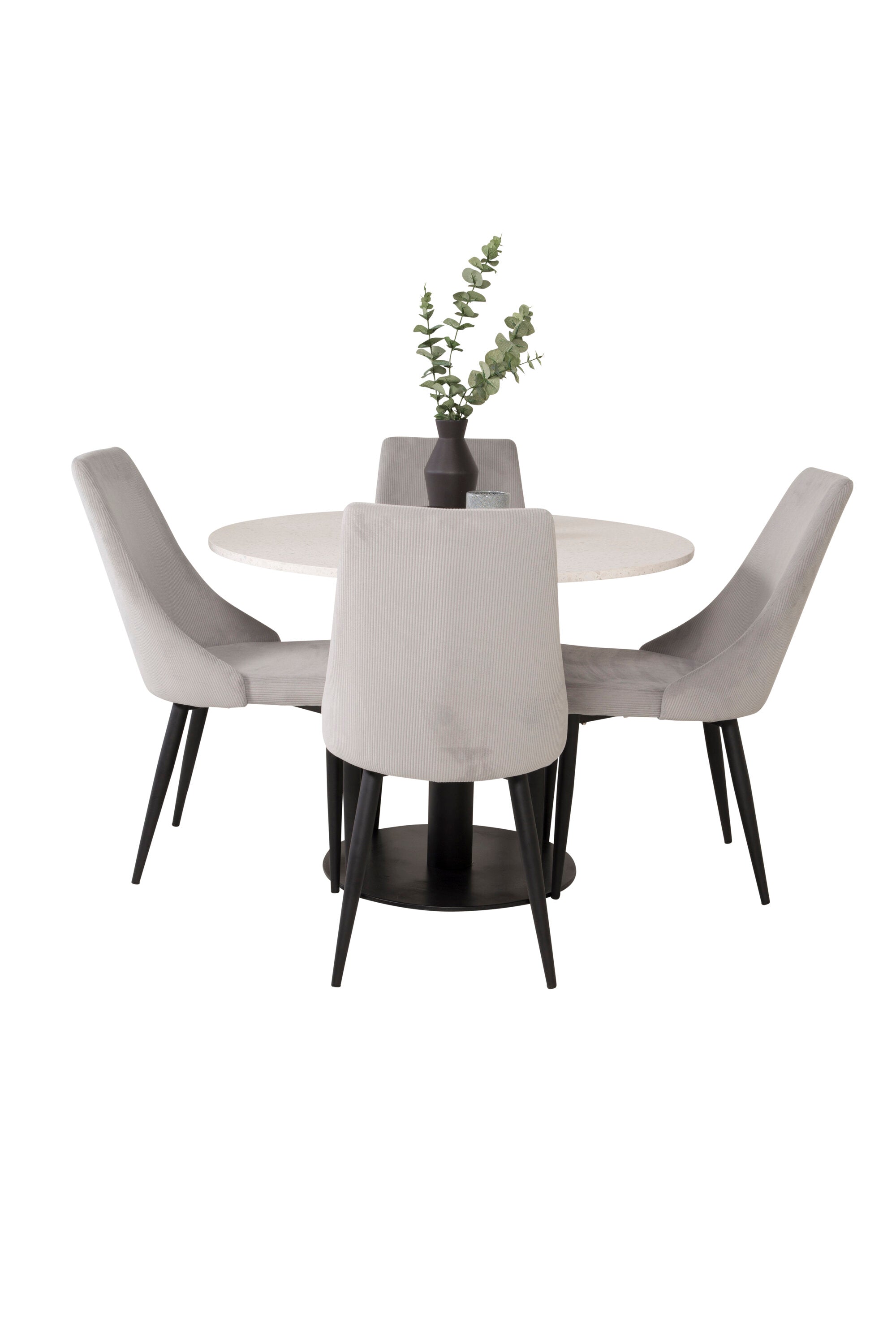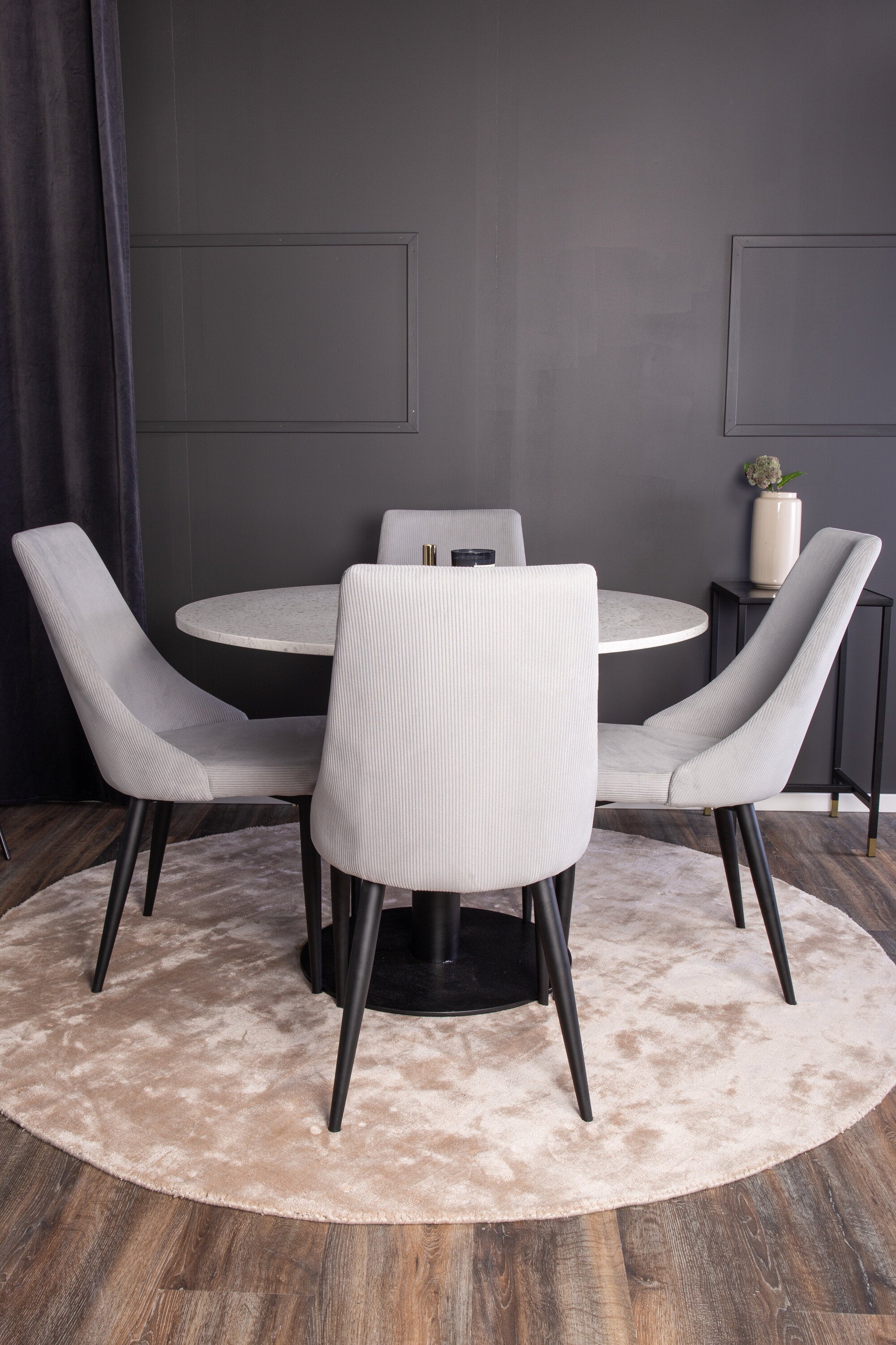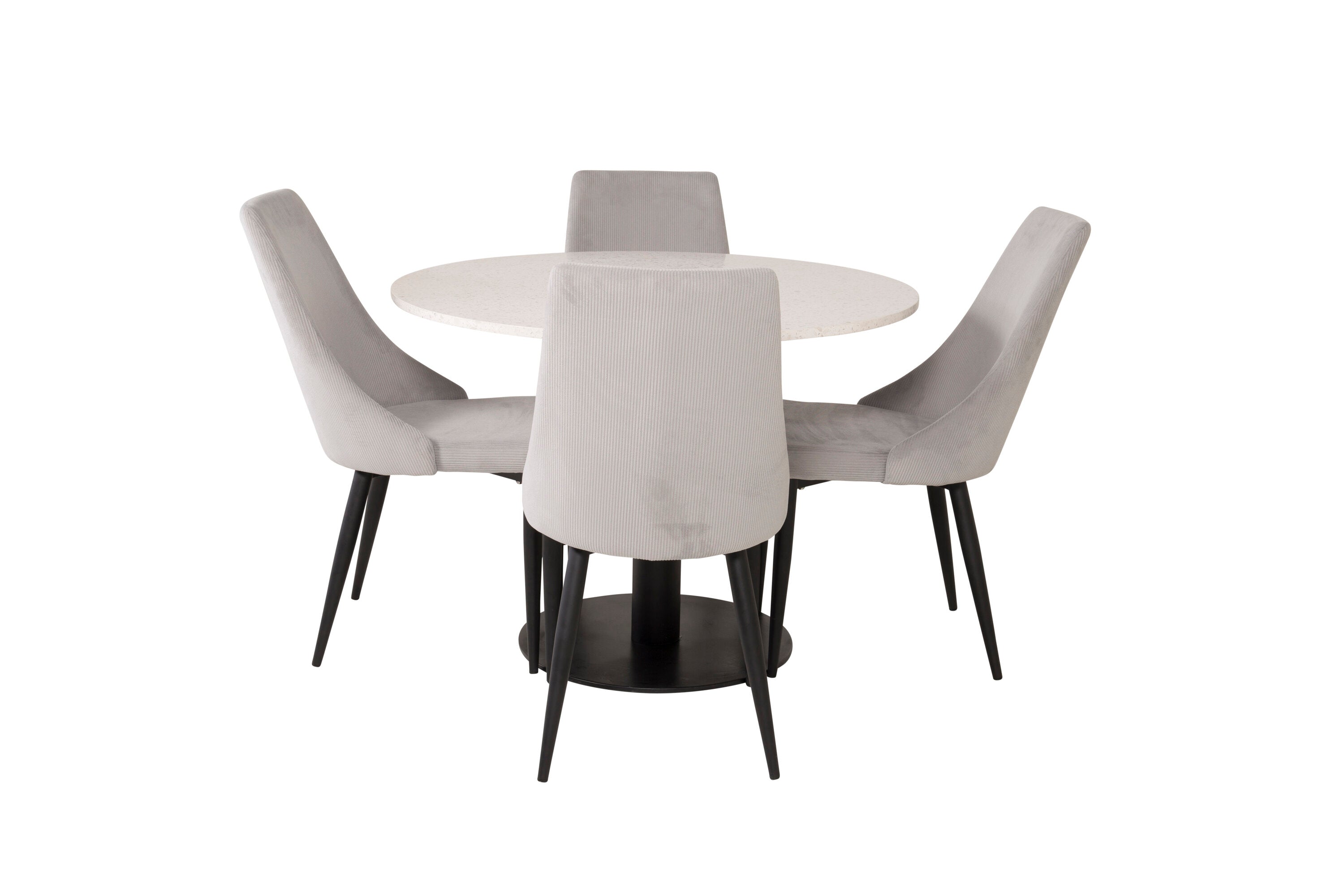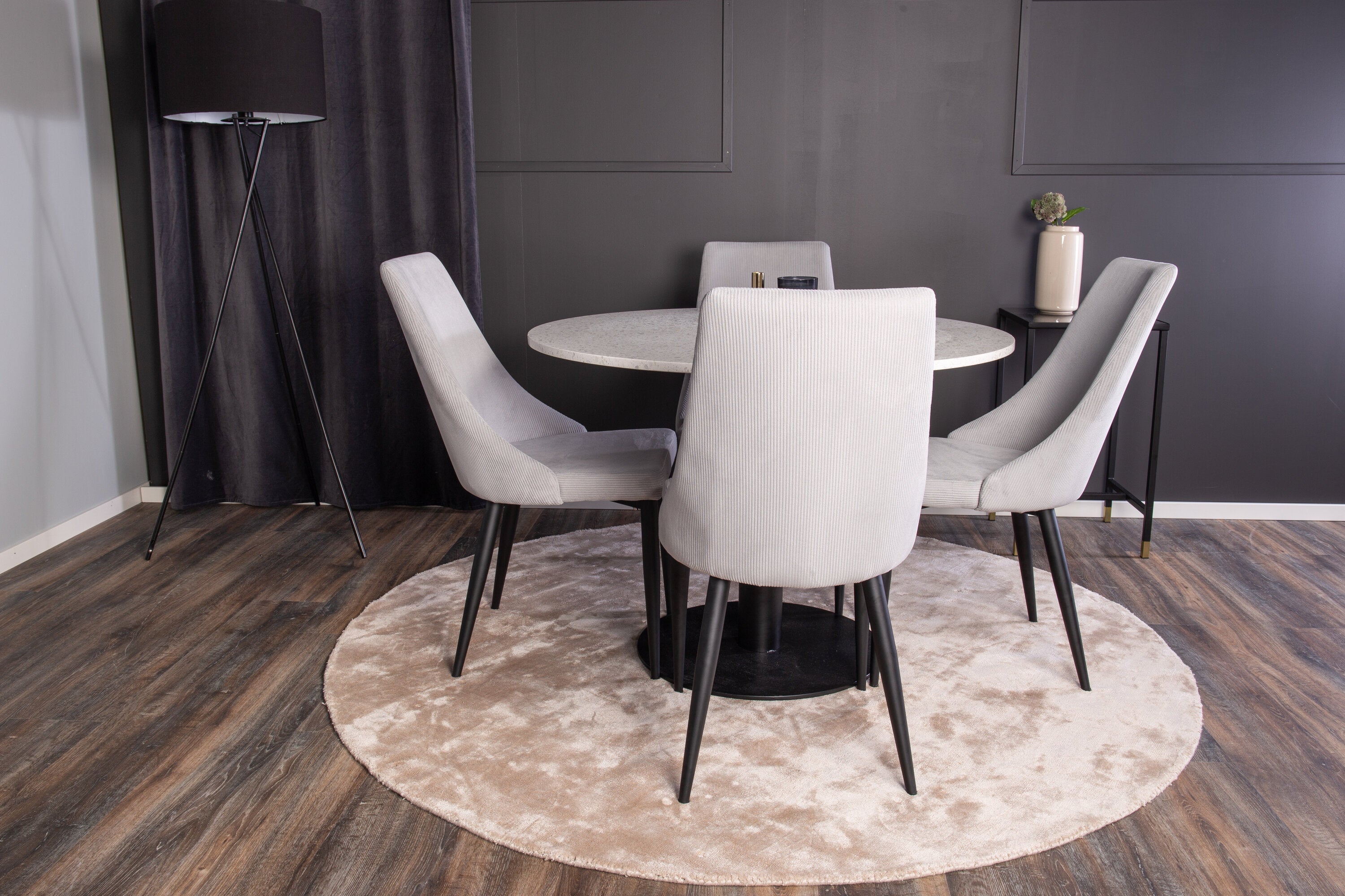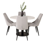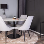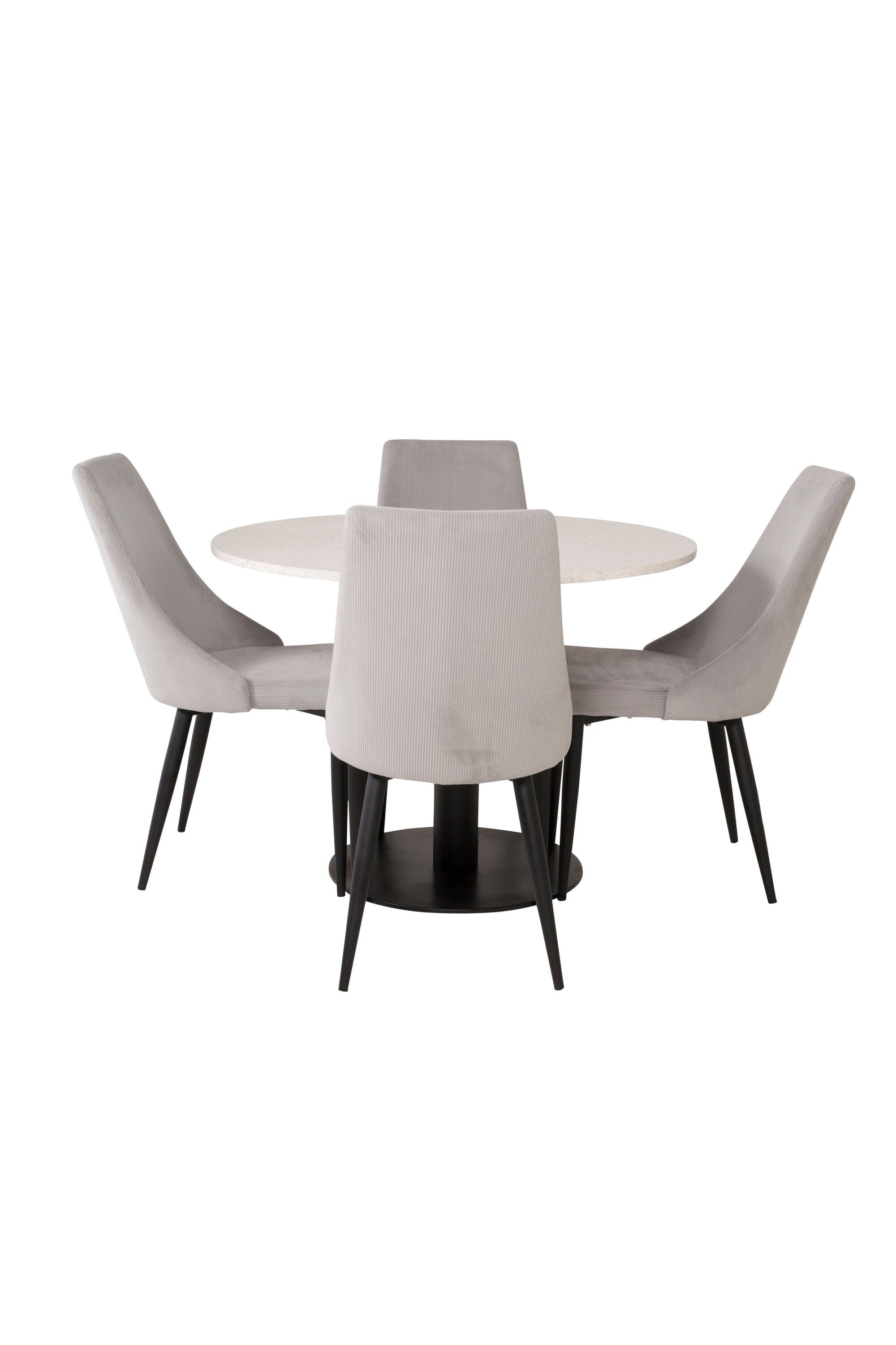 Jídelní stůl Razzia 106 cm -Bílá Terazzo / Černá +Leone jídelní židle - Černé nohy / Světle Šedá manšestrová _4