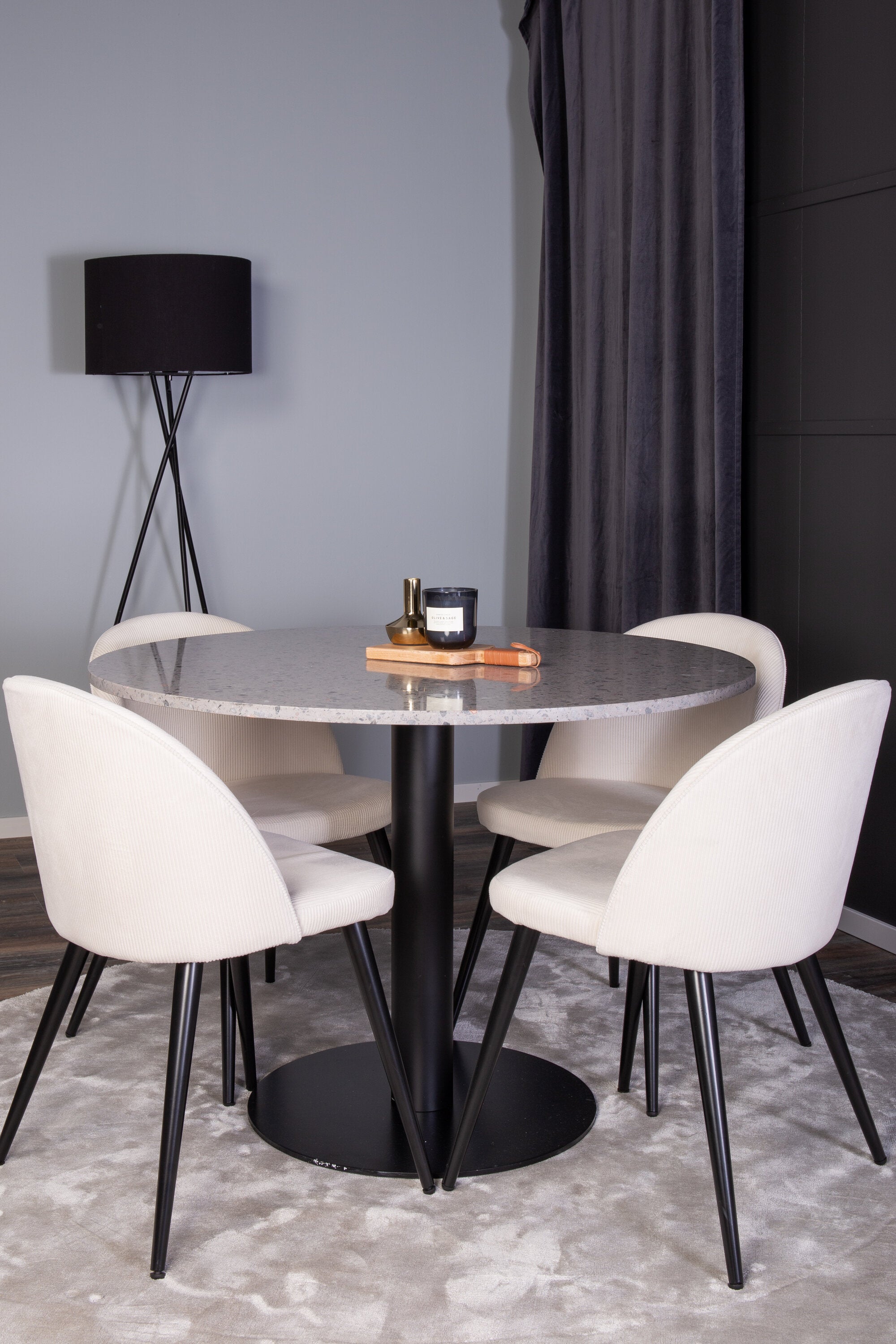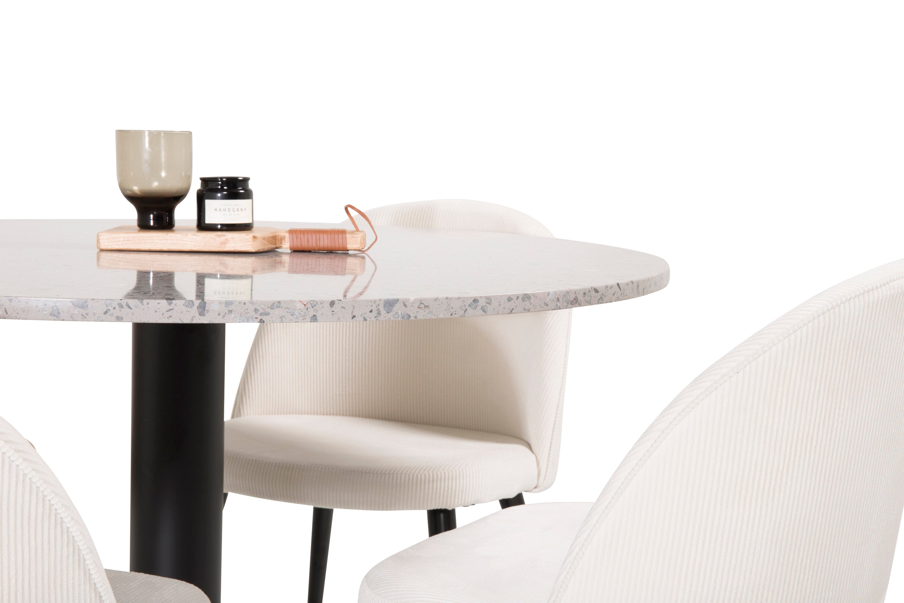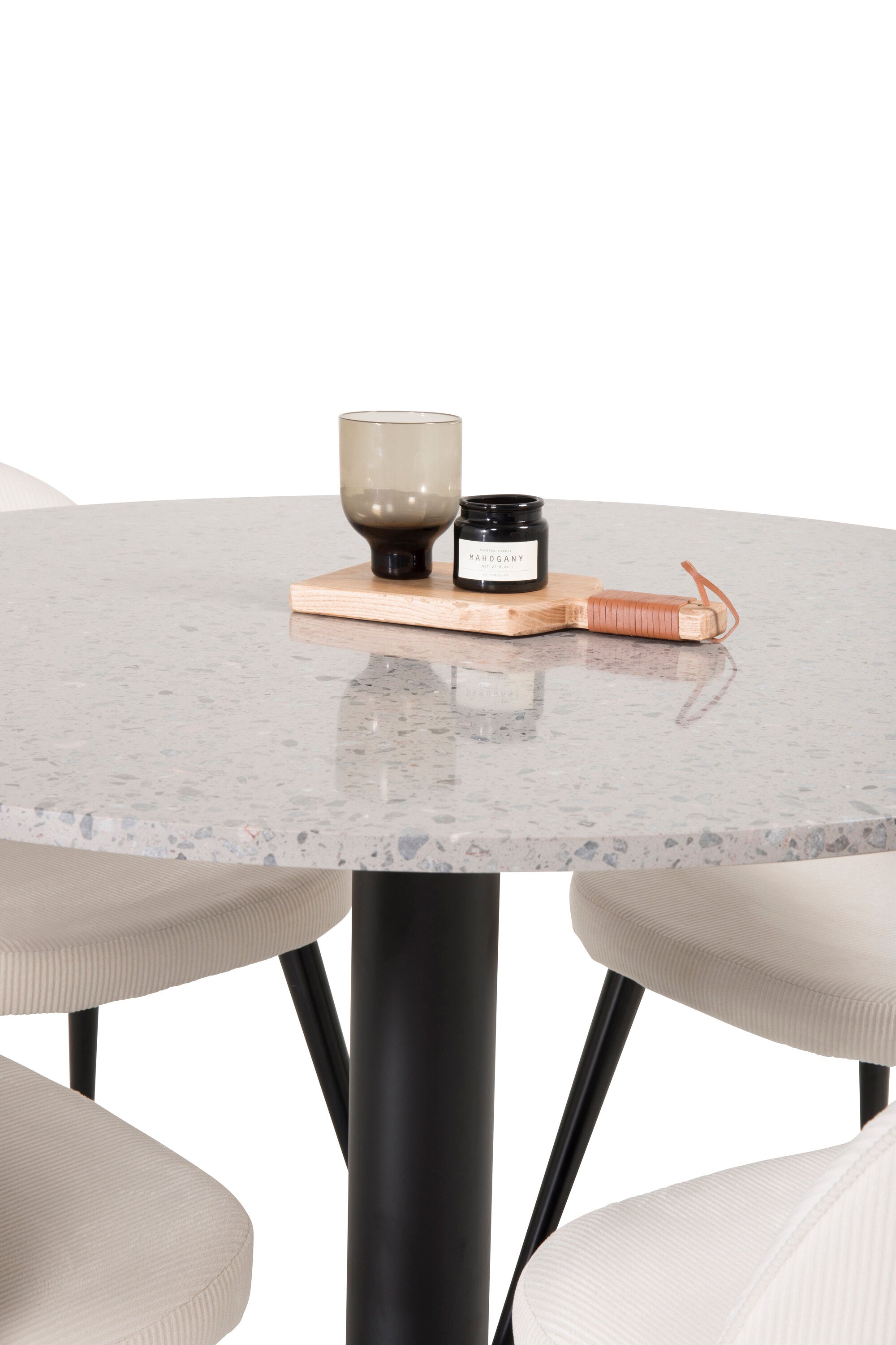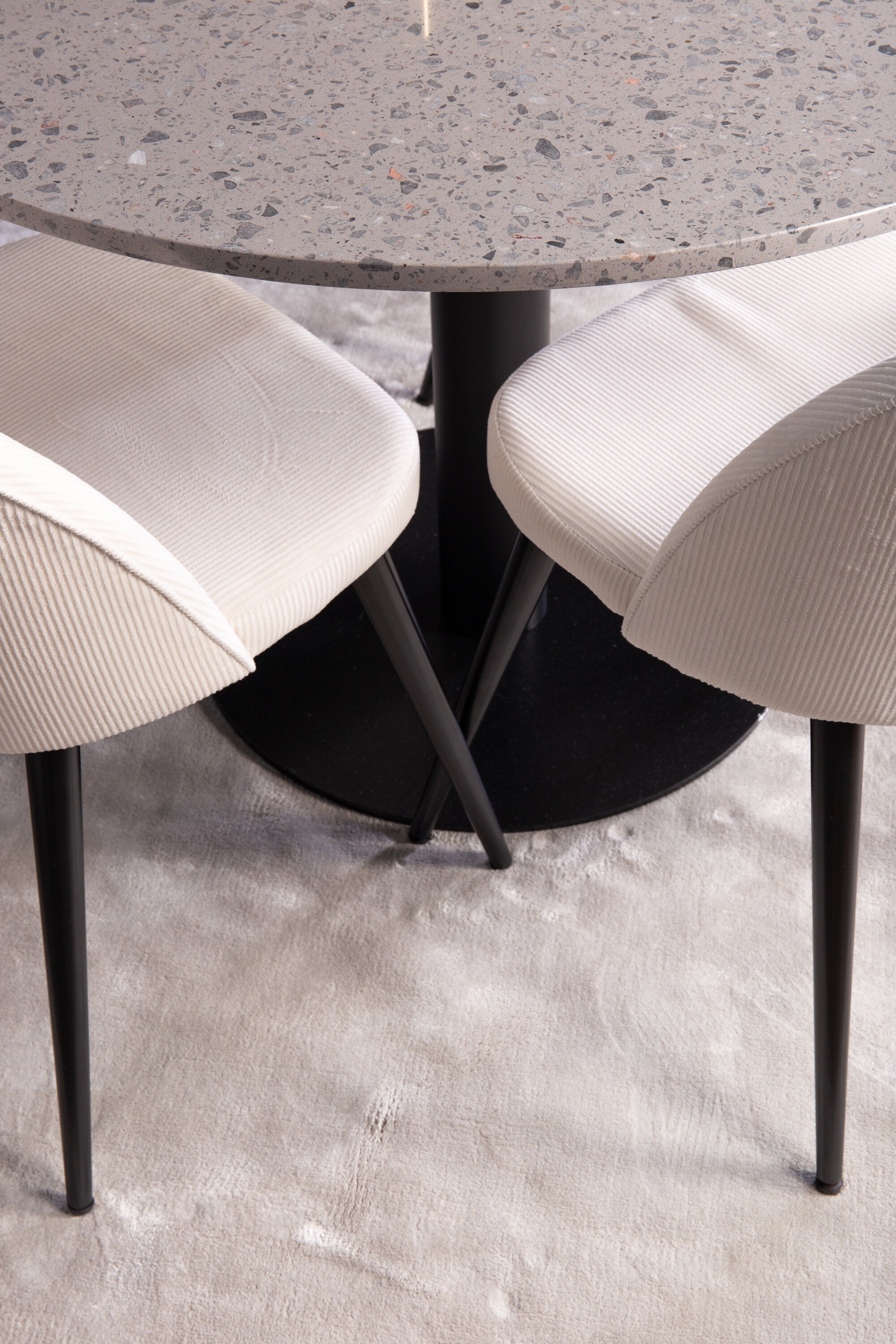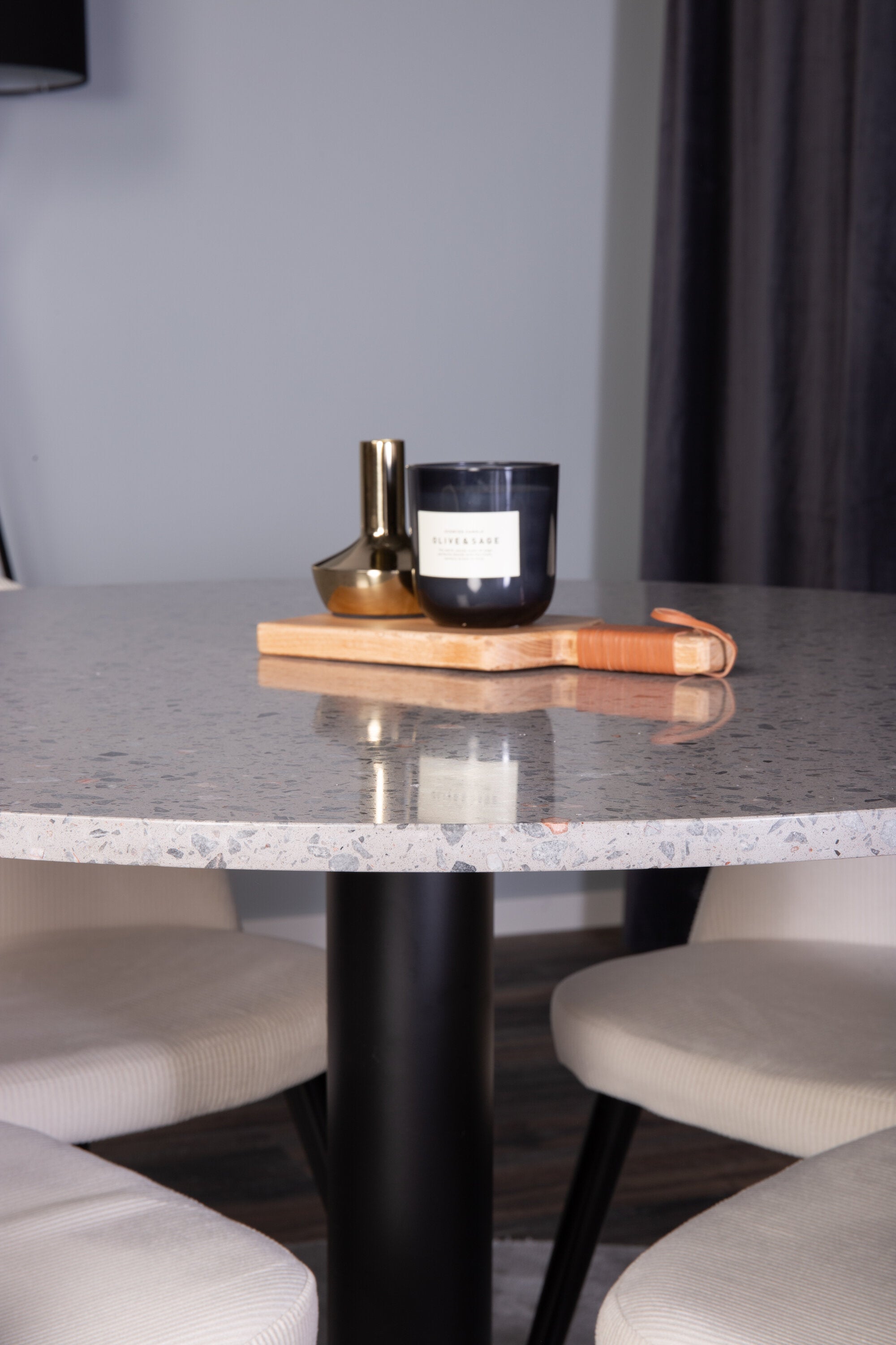 Jídelní stůl Razzia 106 cm - Šedá Terazzo / BlackVelvet Jídelní židle - Černá L