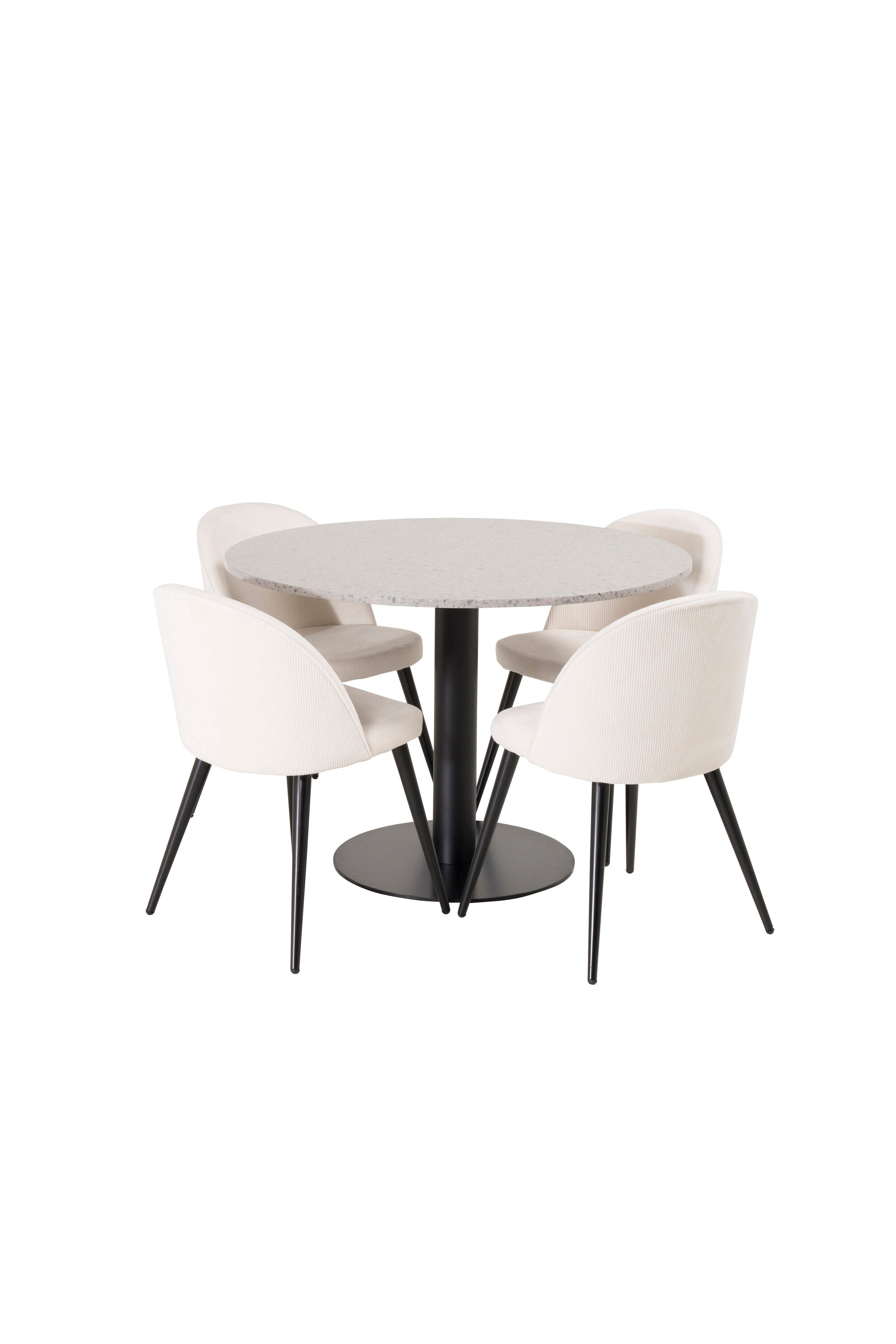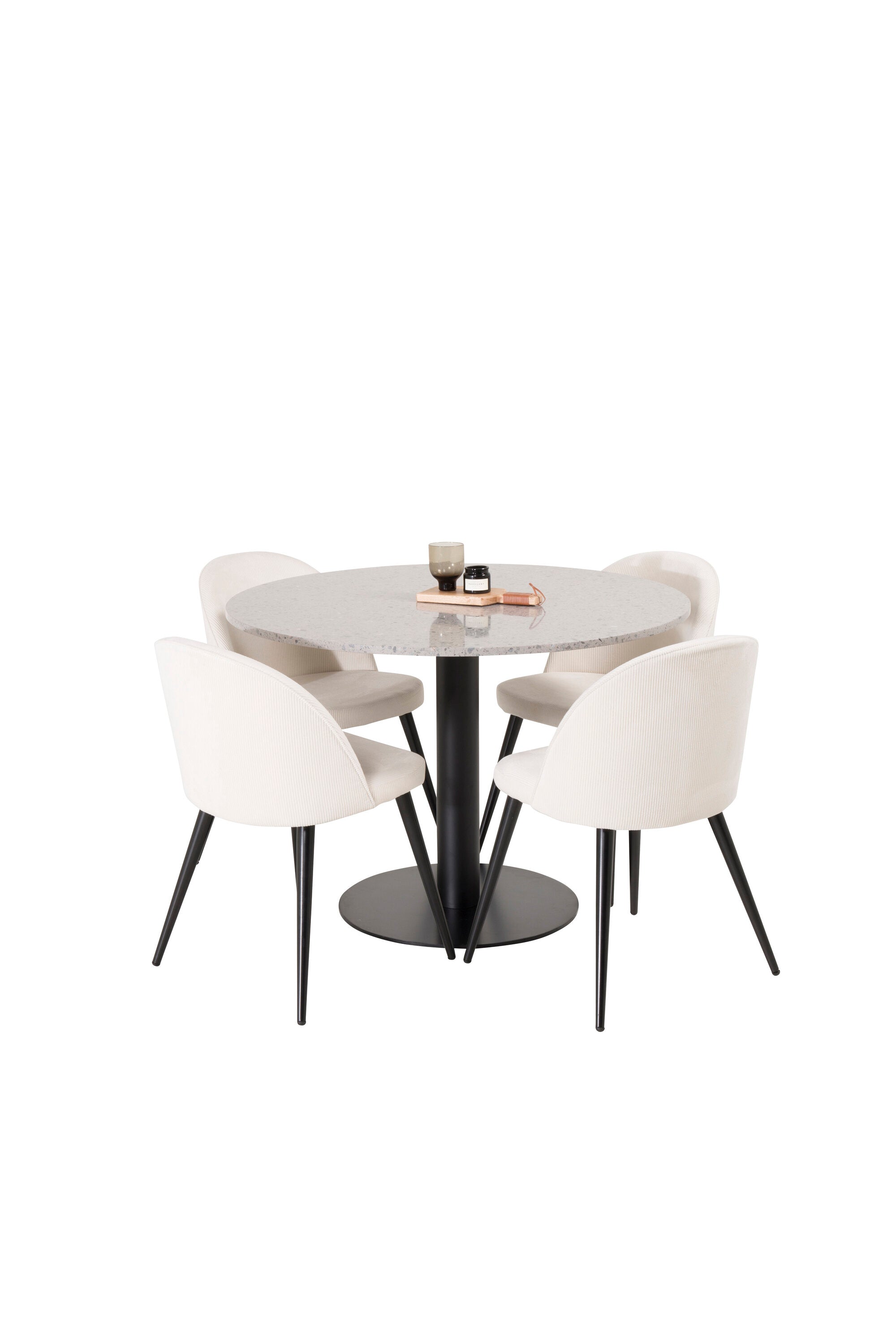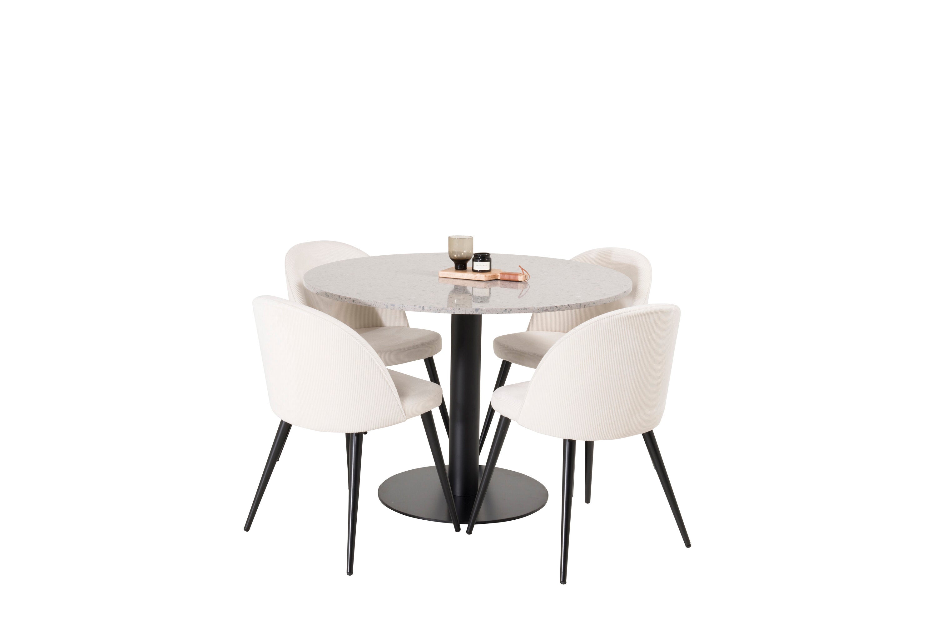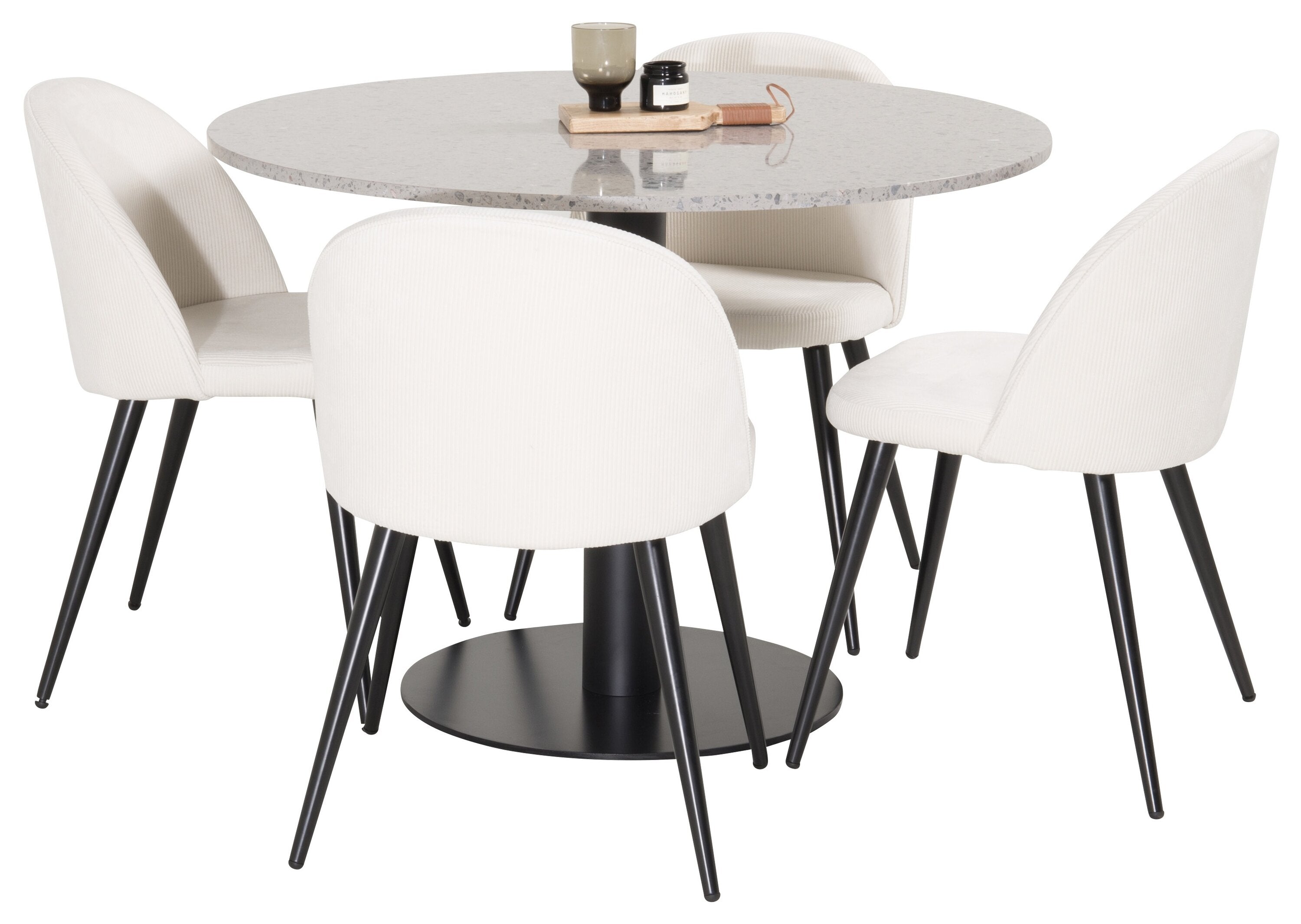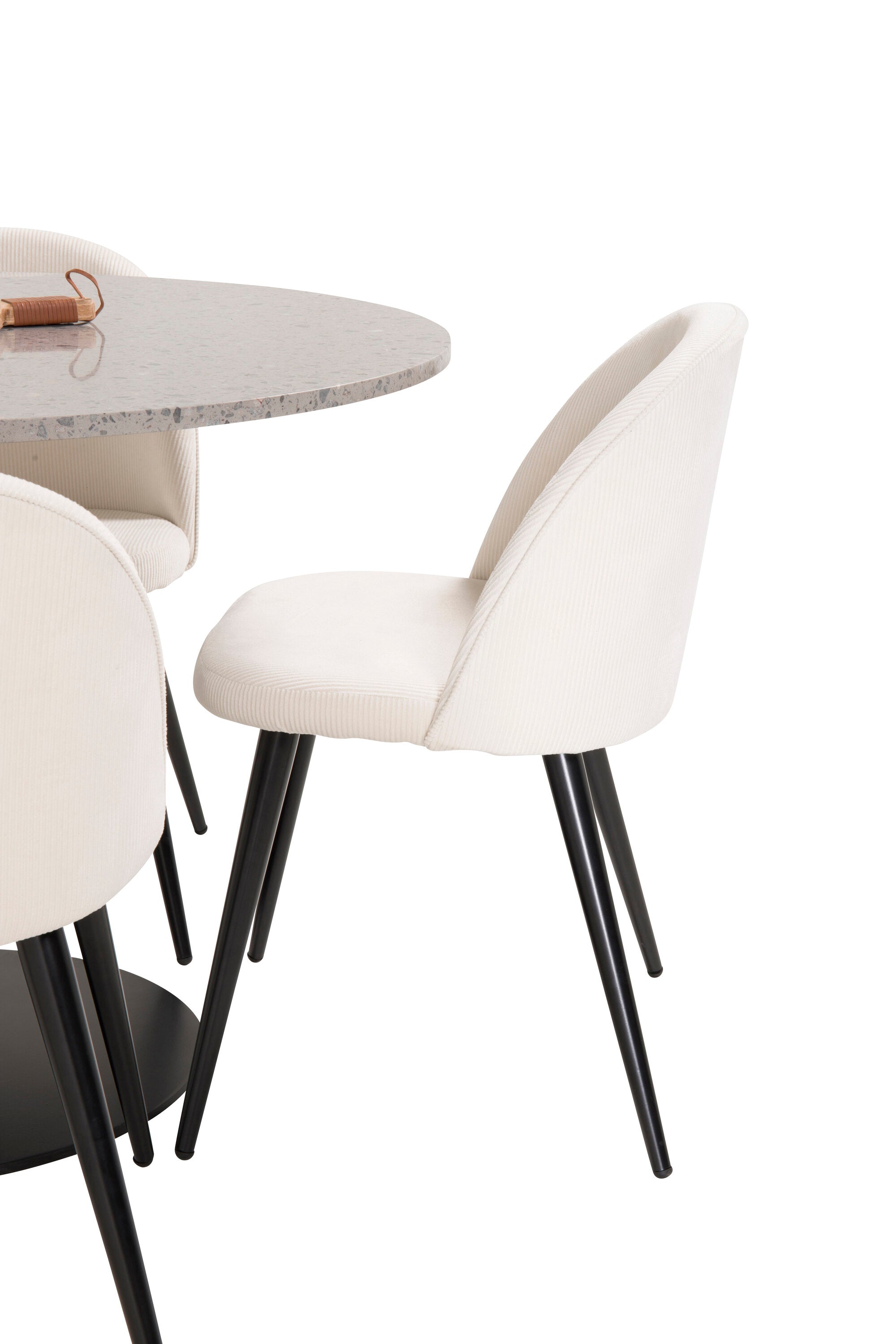Jídelní stůl Razzia 106 cm - Šedá Terazzo / BlackVelvet Jídelní židle - Černá L