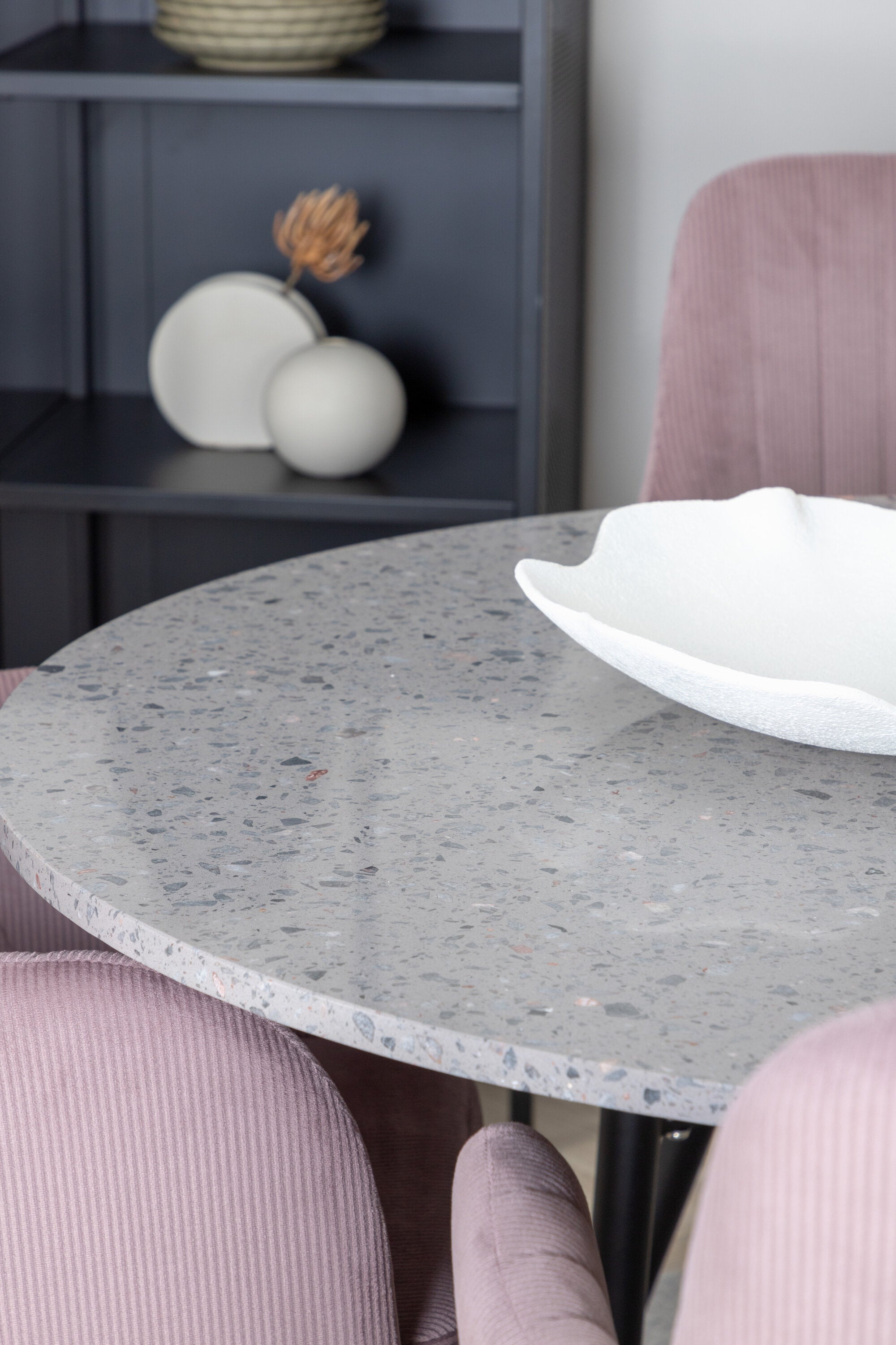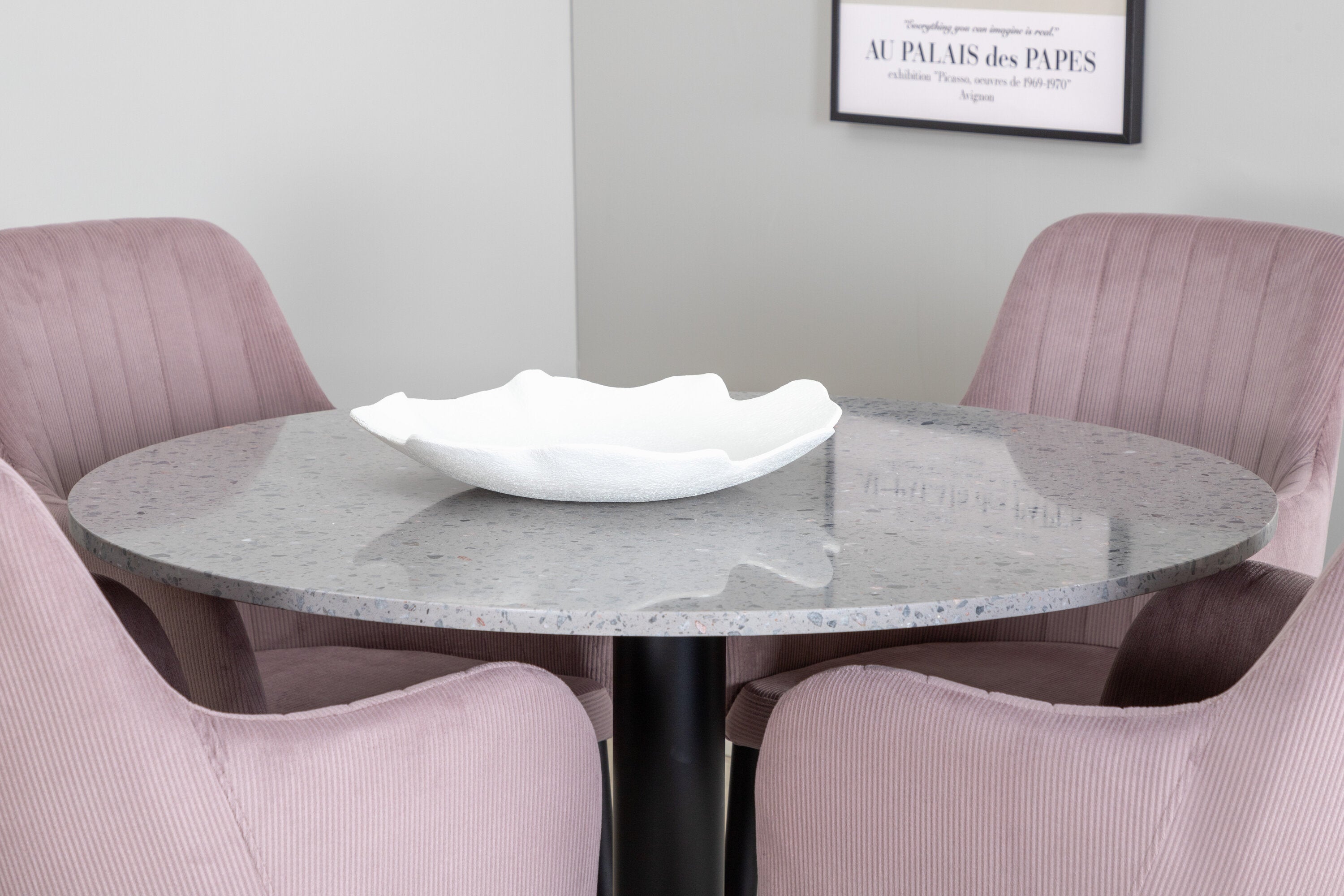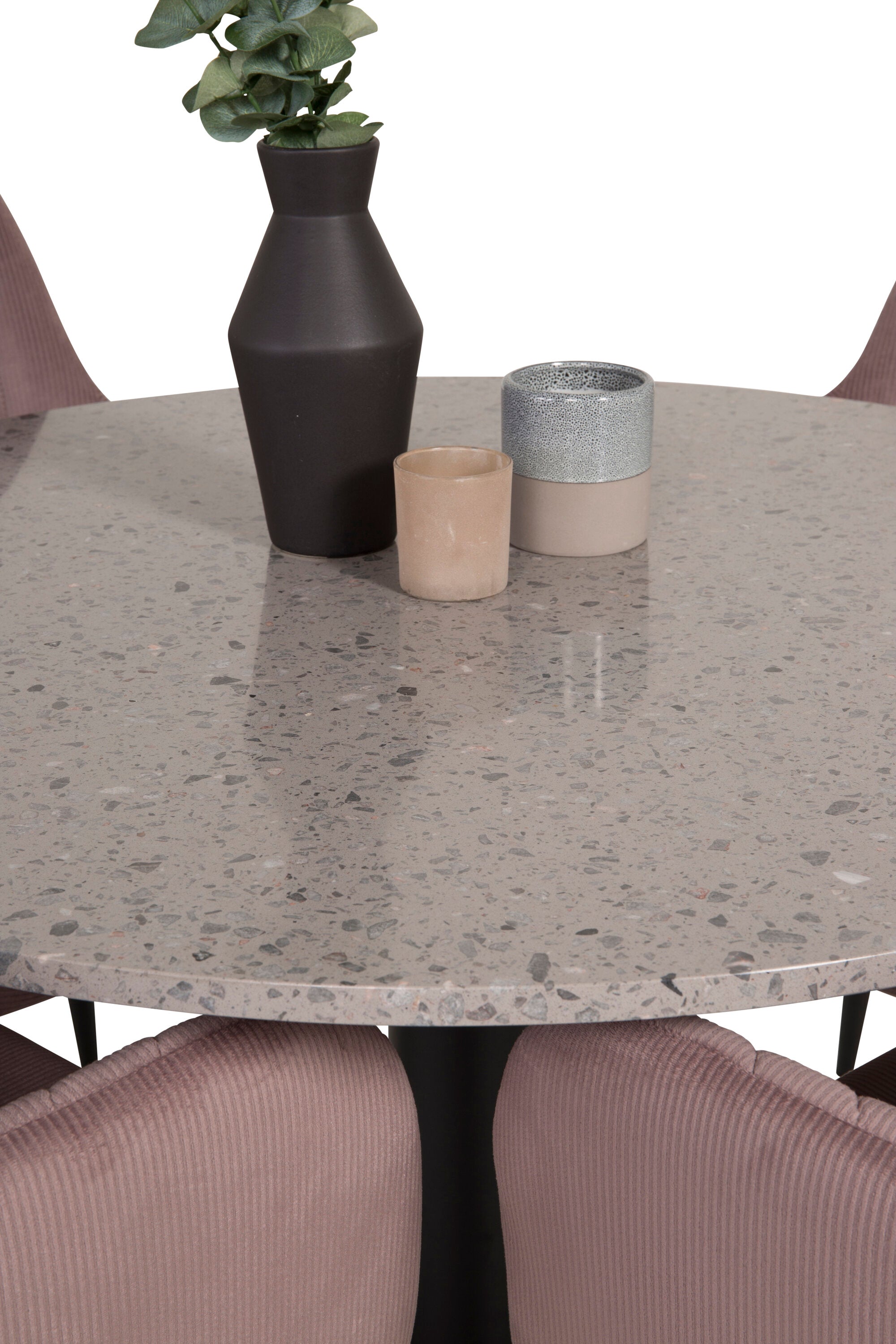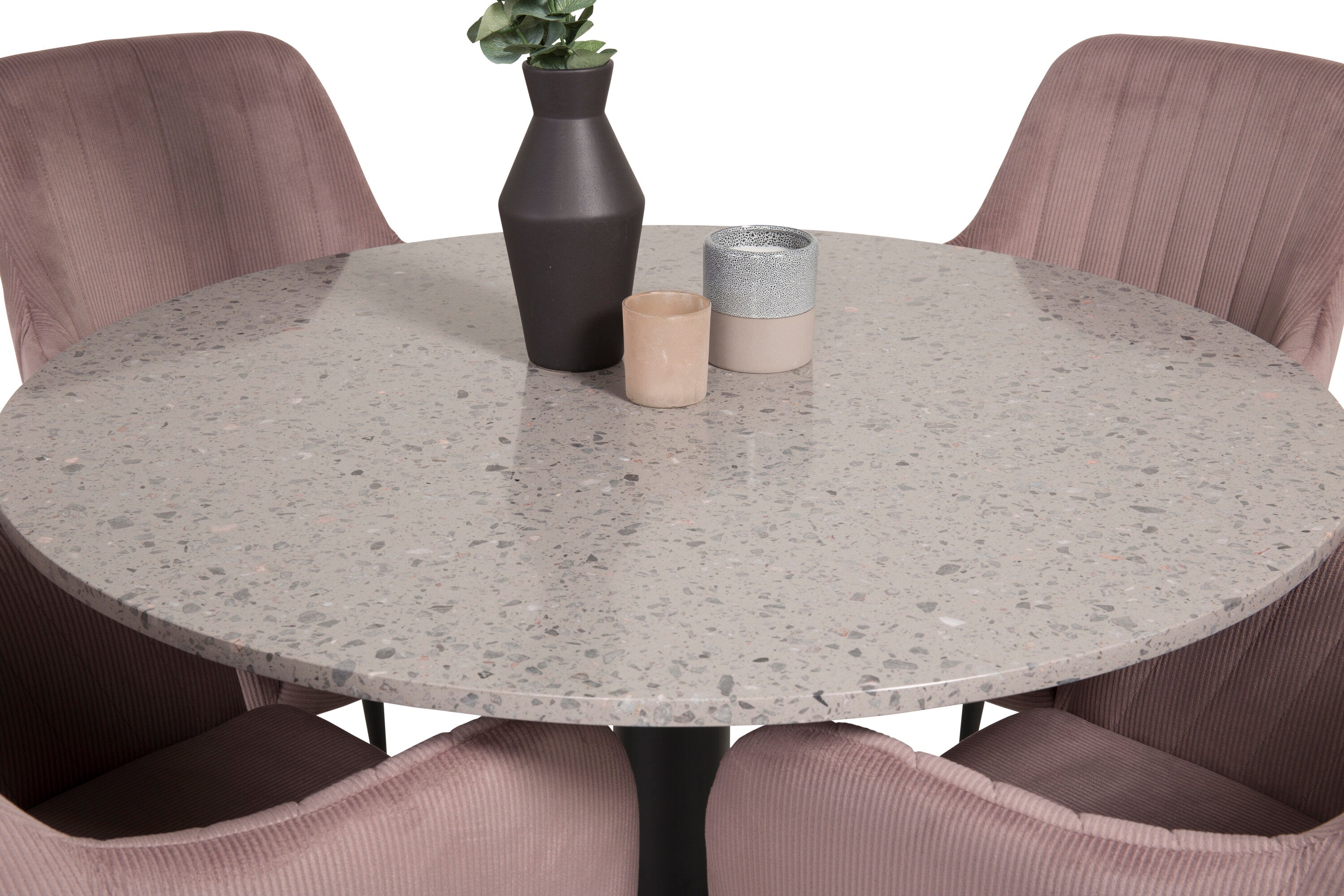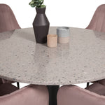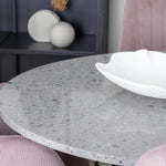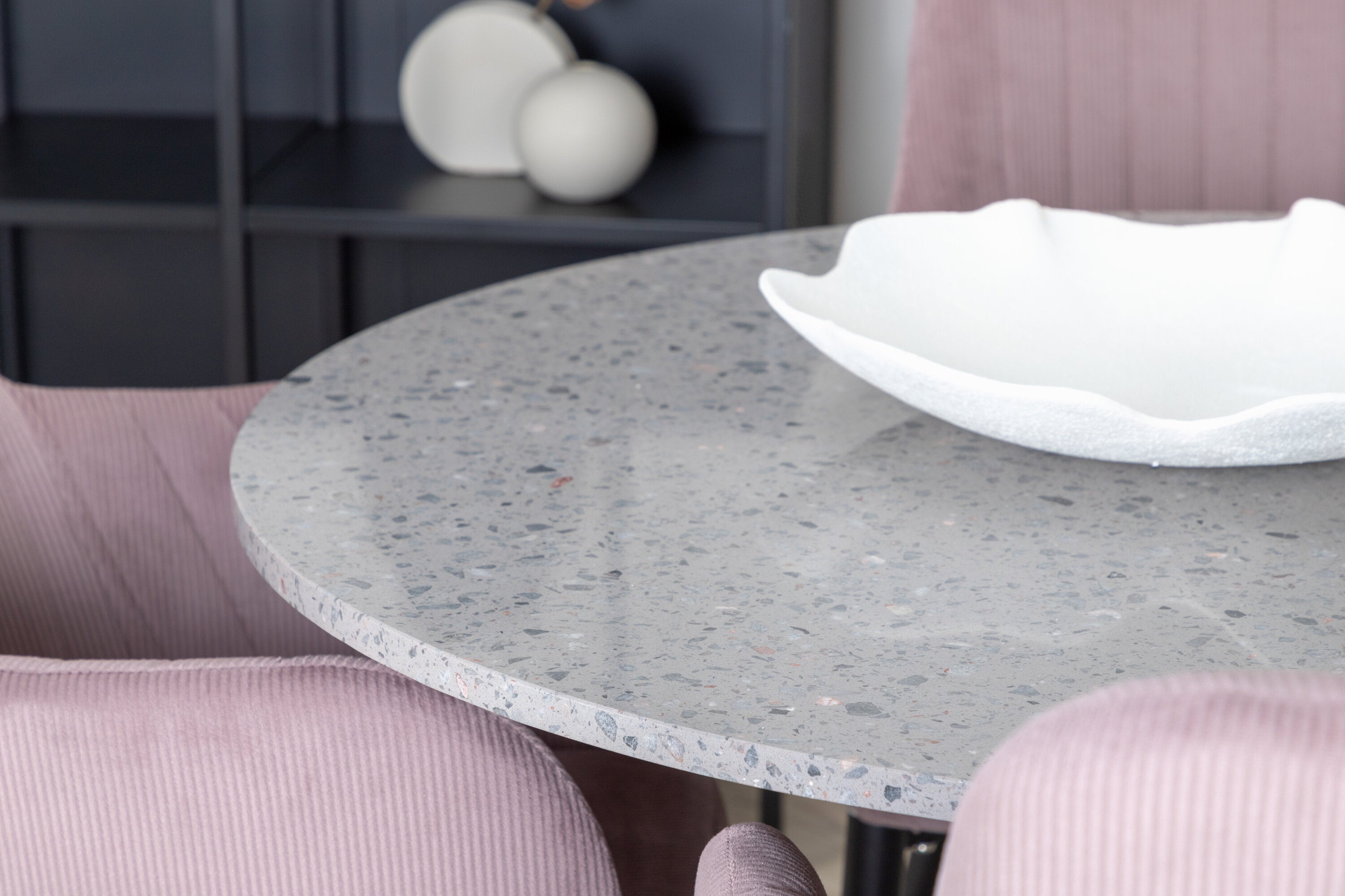 Jídelní stůl Razzia 106 cm - Šedá Terazzo / Černá + Komfortní jídelní židle - Černé nohy / Dusty Pink Manšestr _4