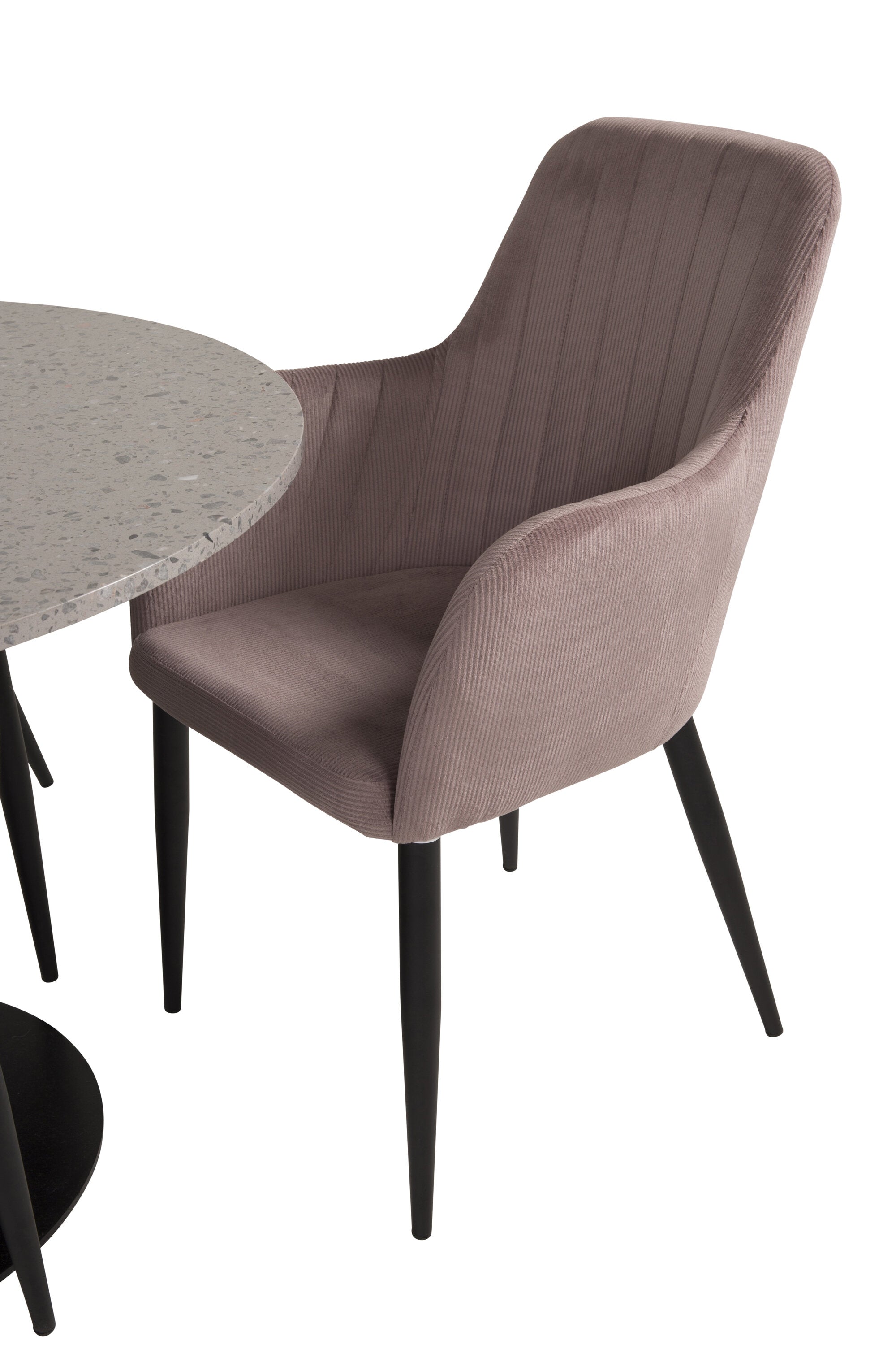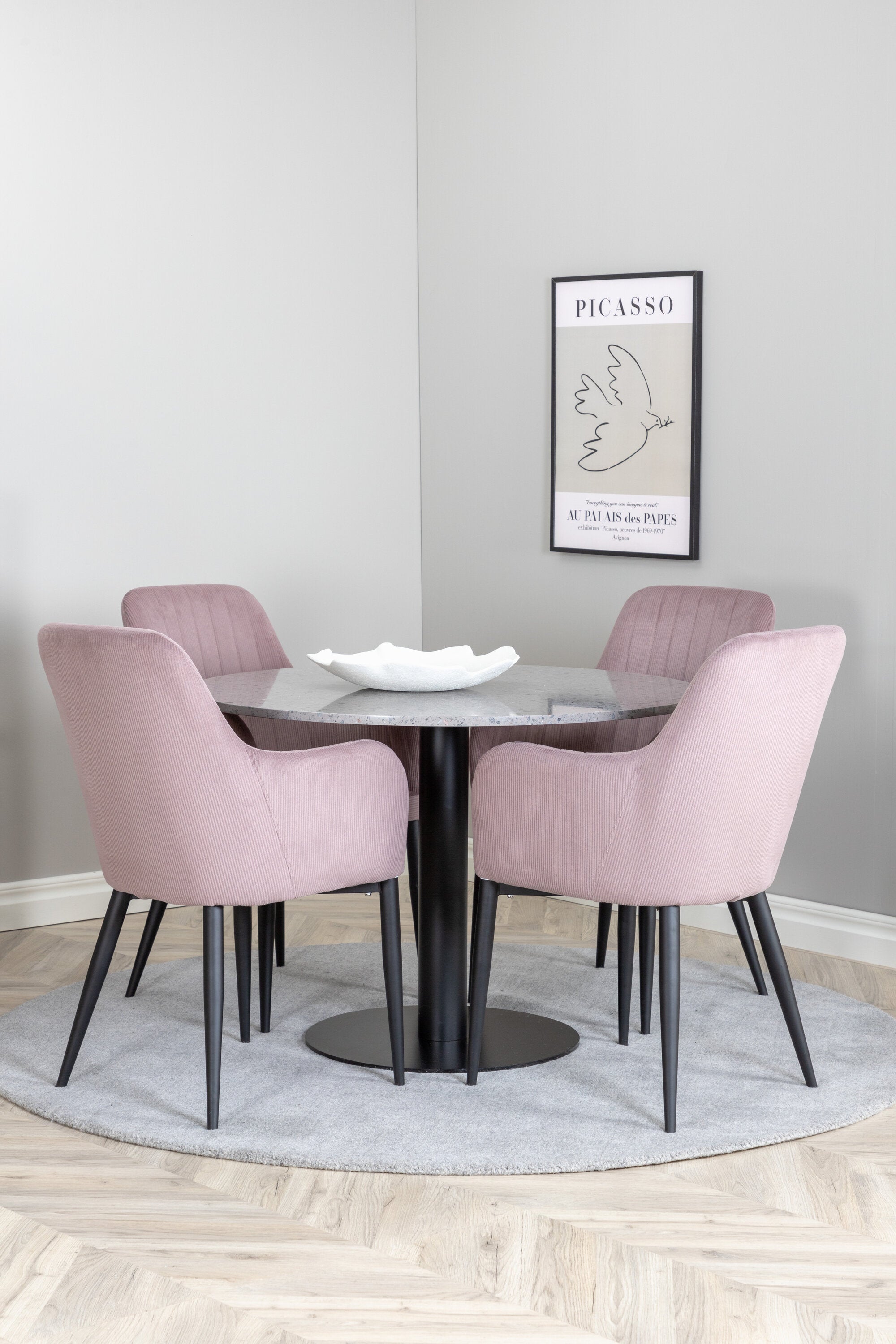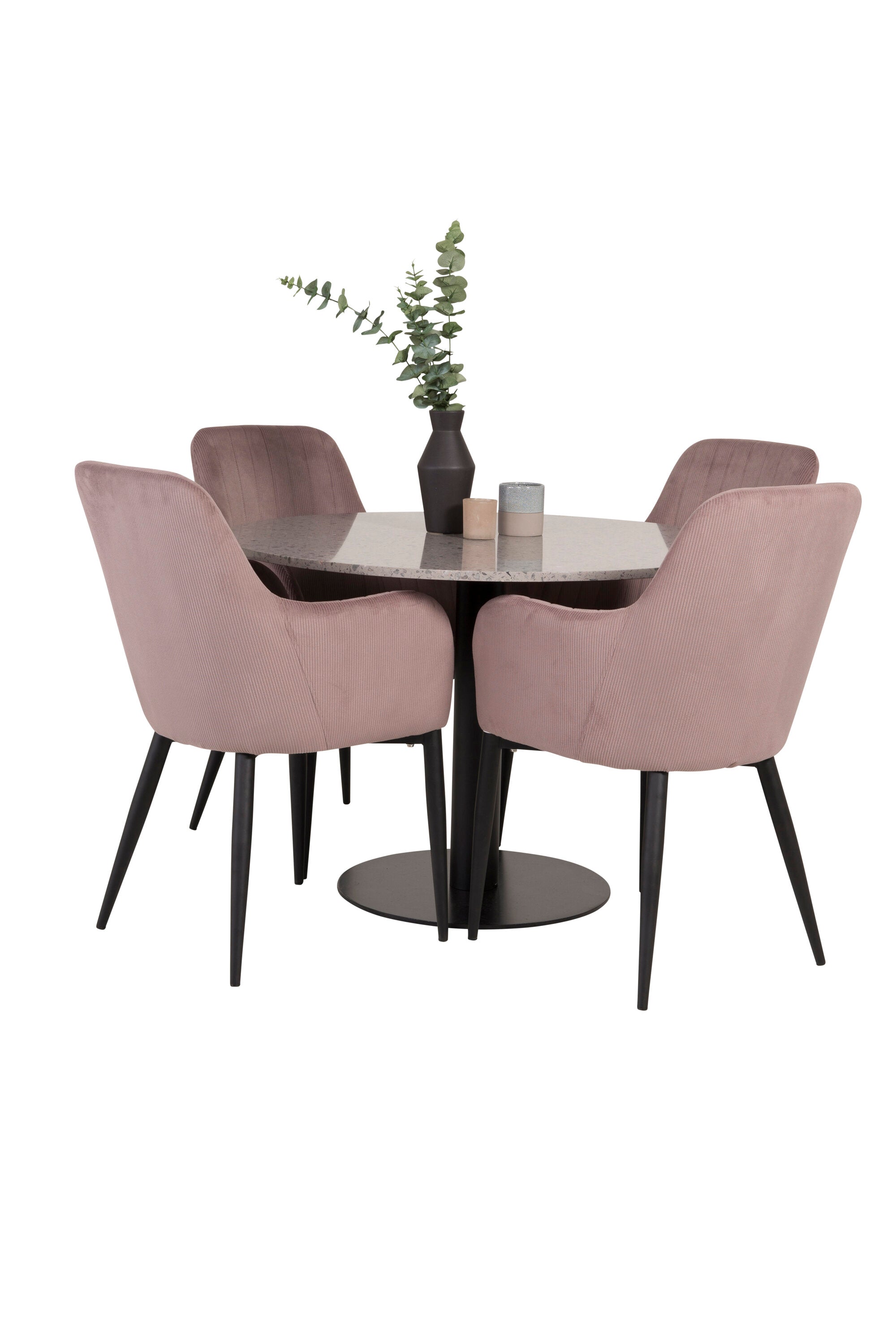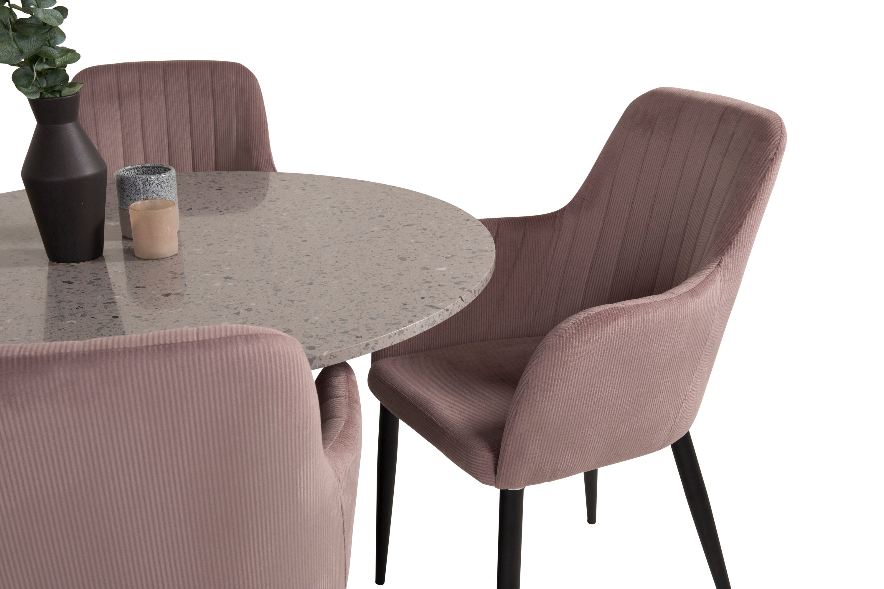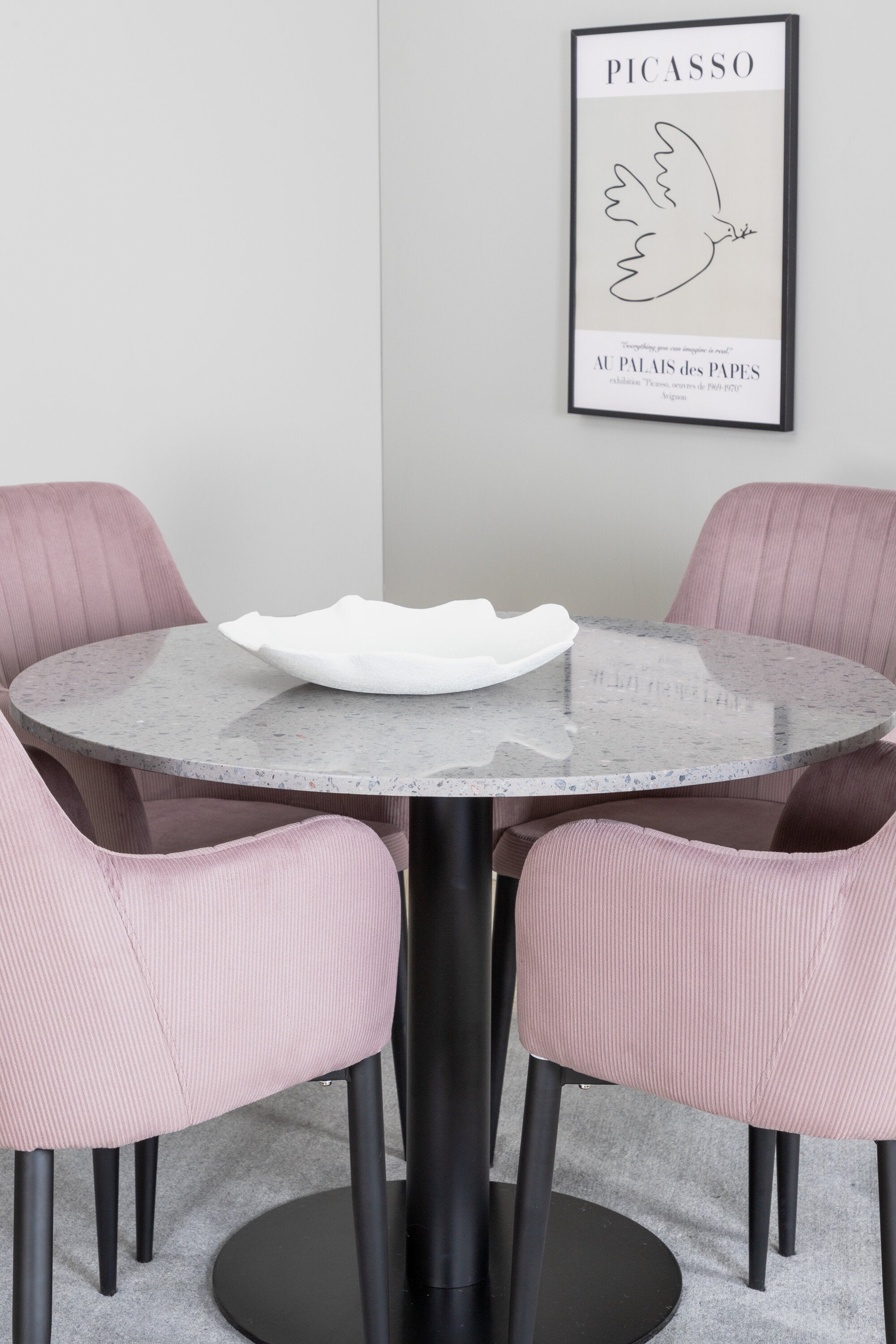 Jídelní stůl Razzia 106 cm - Šedá Terazzo / Černá + Komfortní jídelní židle - Černé nohy / Dusty Pink Manšestr _4