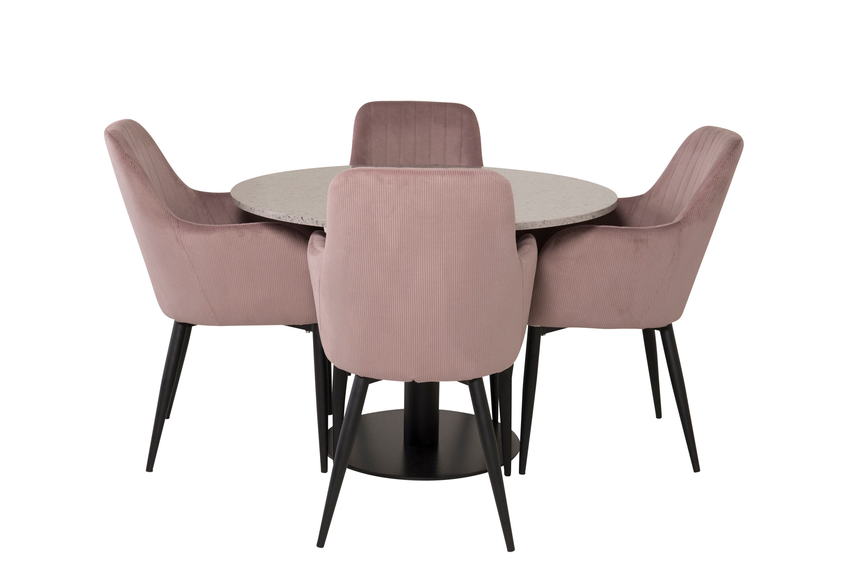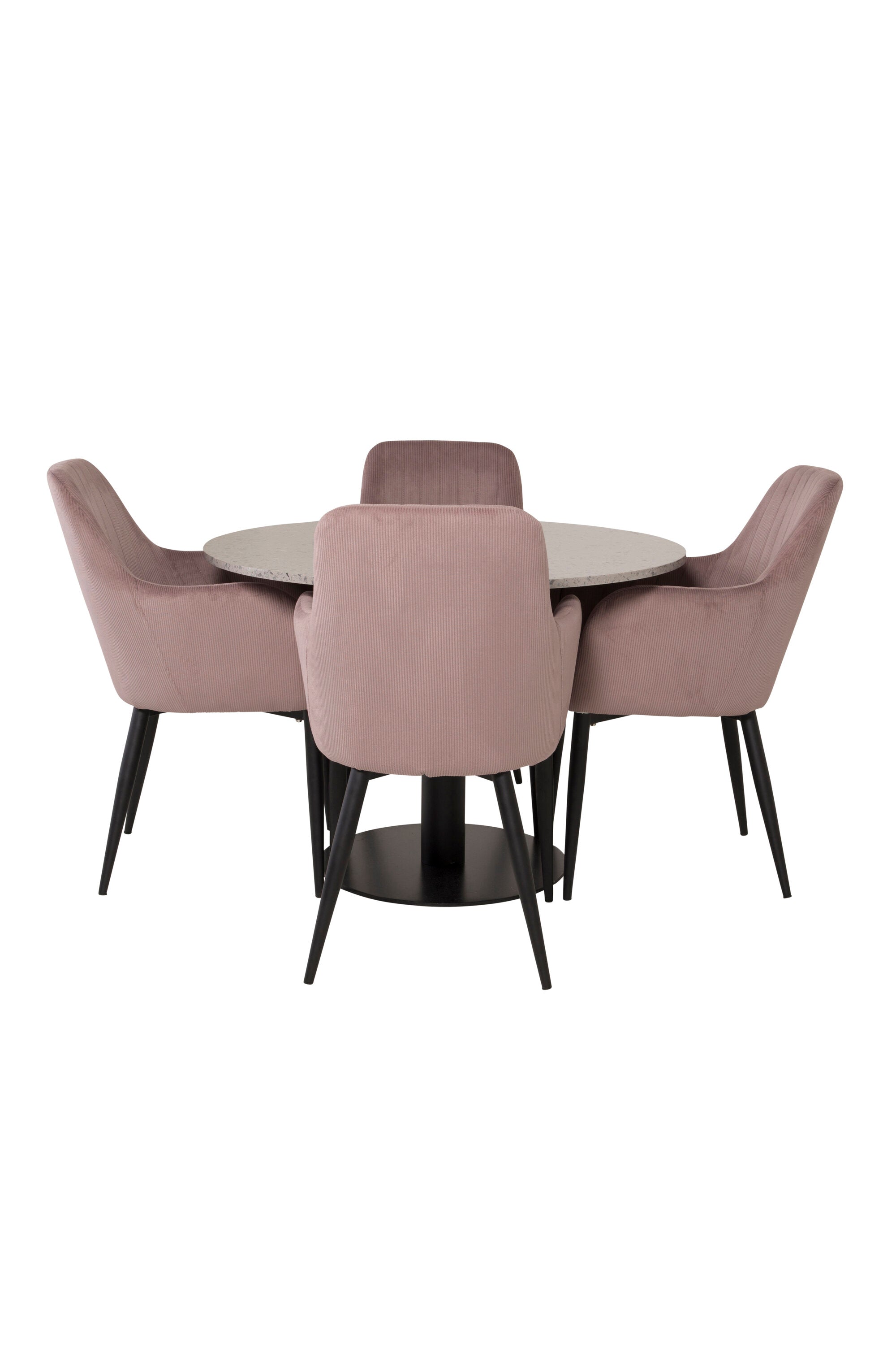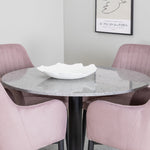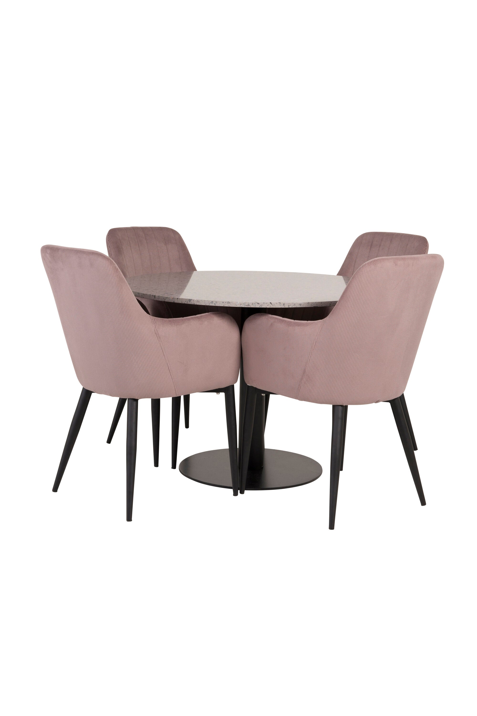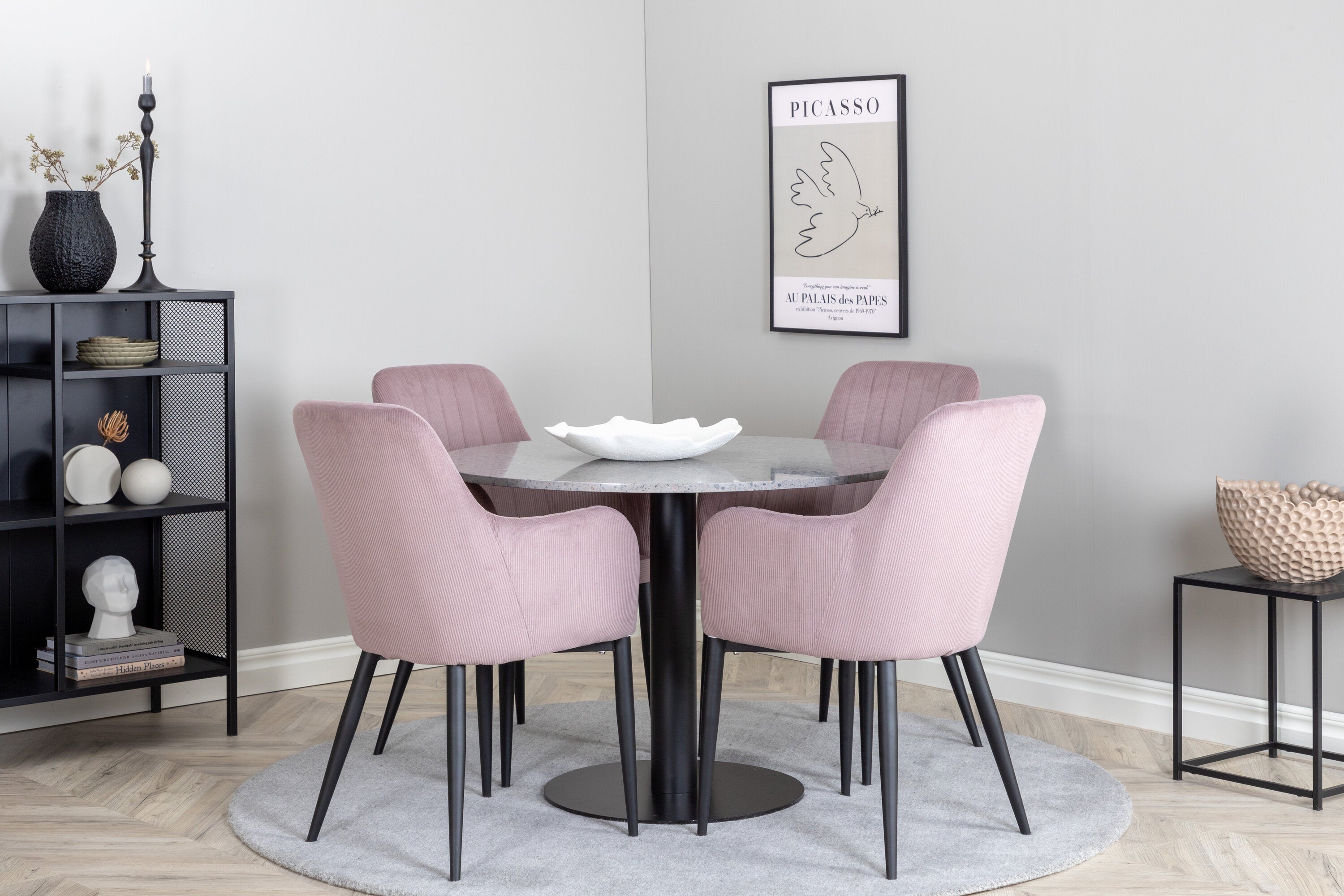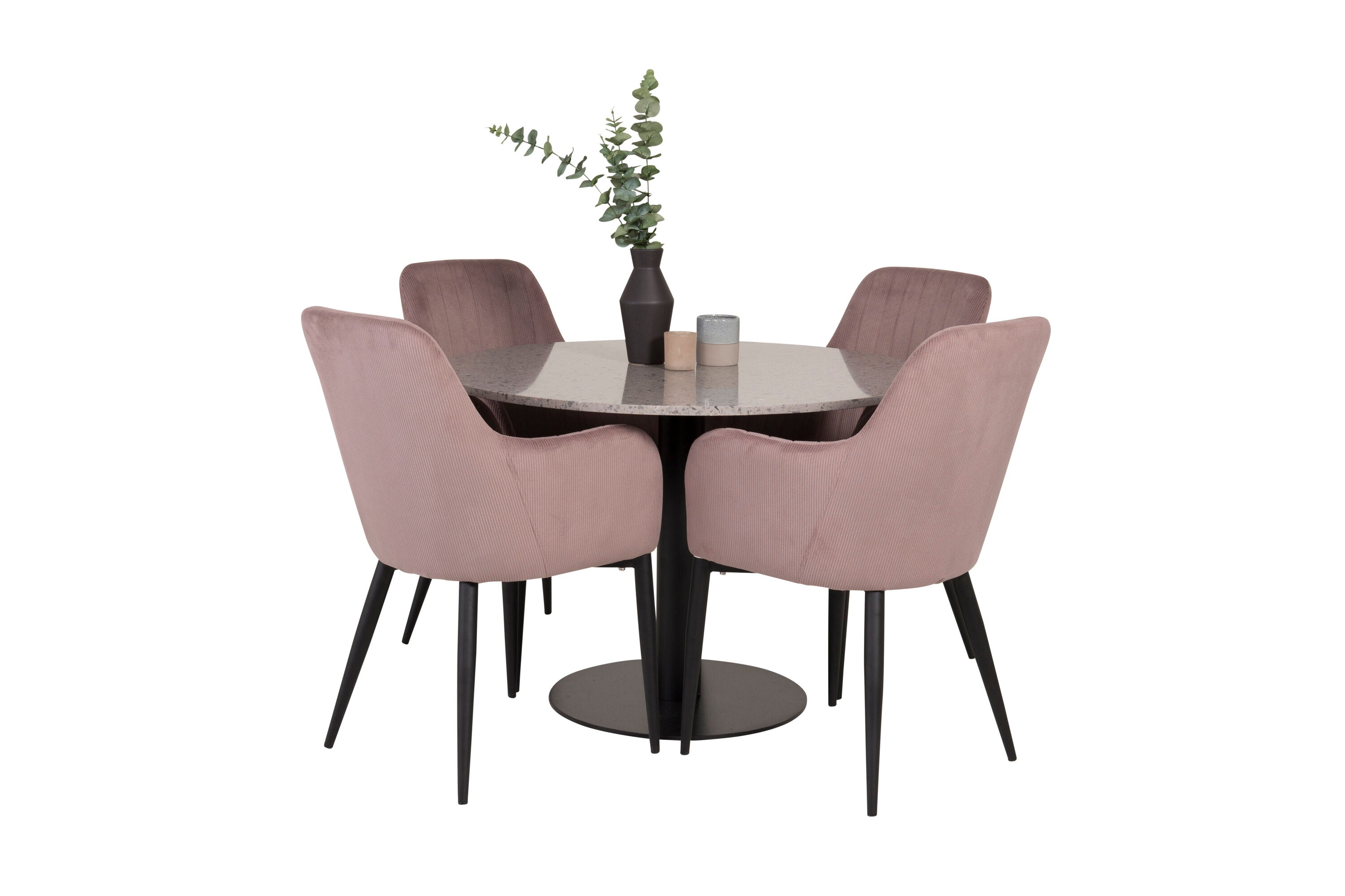 Jídelní stůl Razzia 106 cm - Šedá Terazzo / Černá + Komfortní jídelní židle - Černé nohy / Dusty Pink Manšestr _4