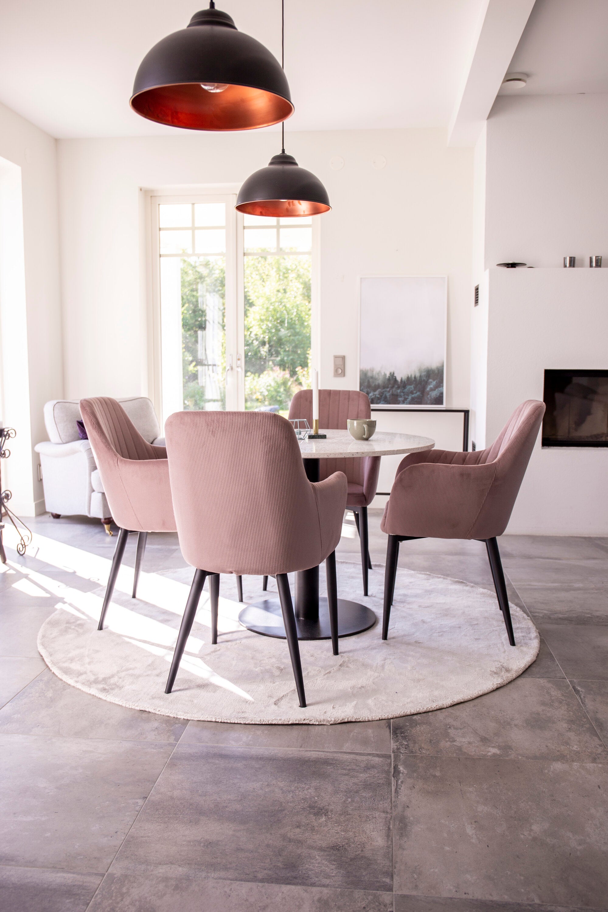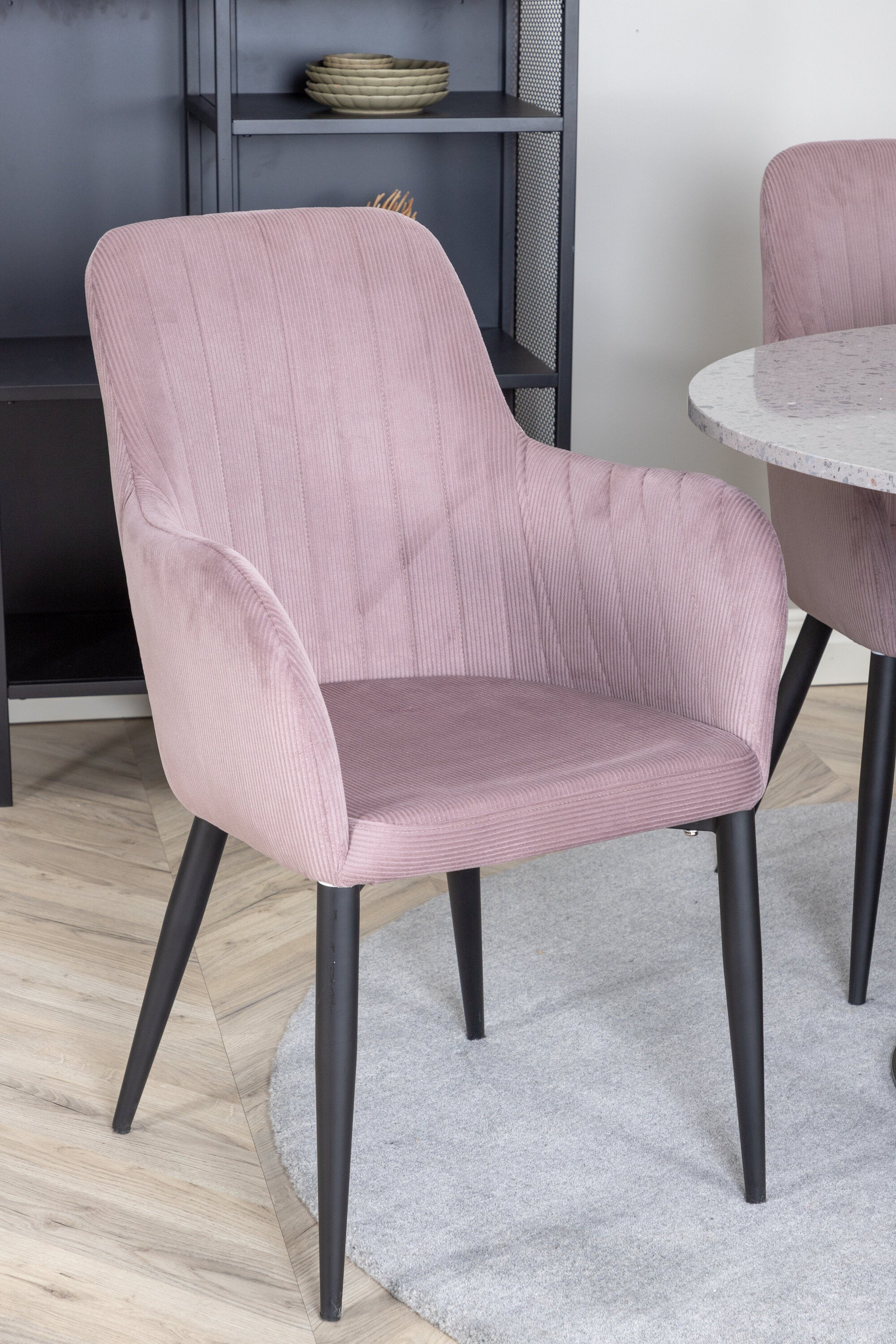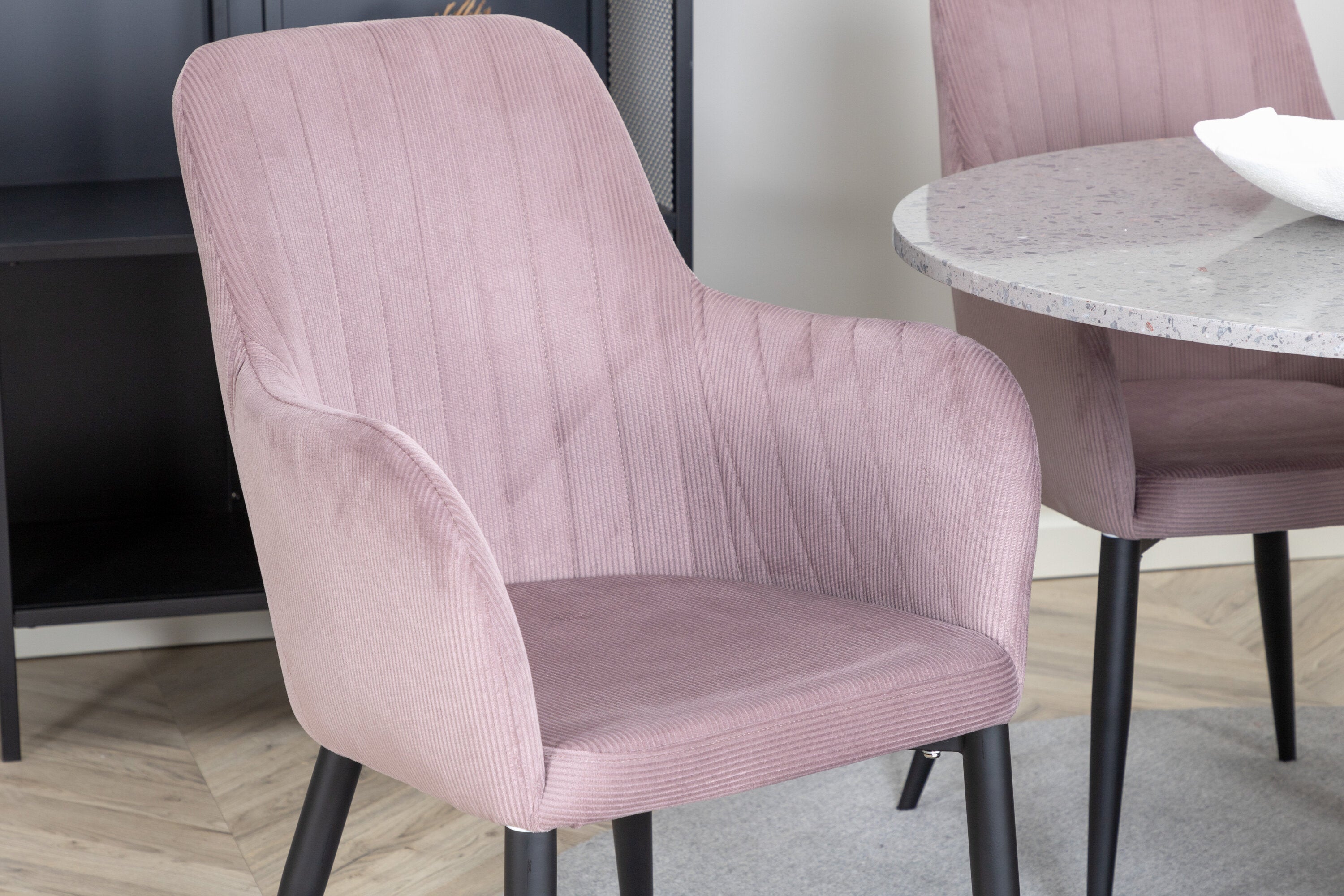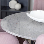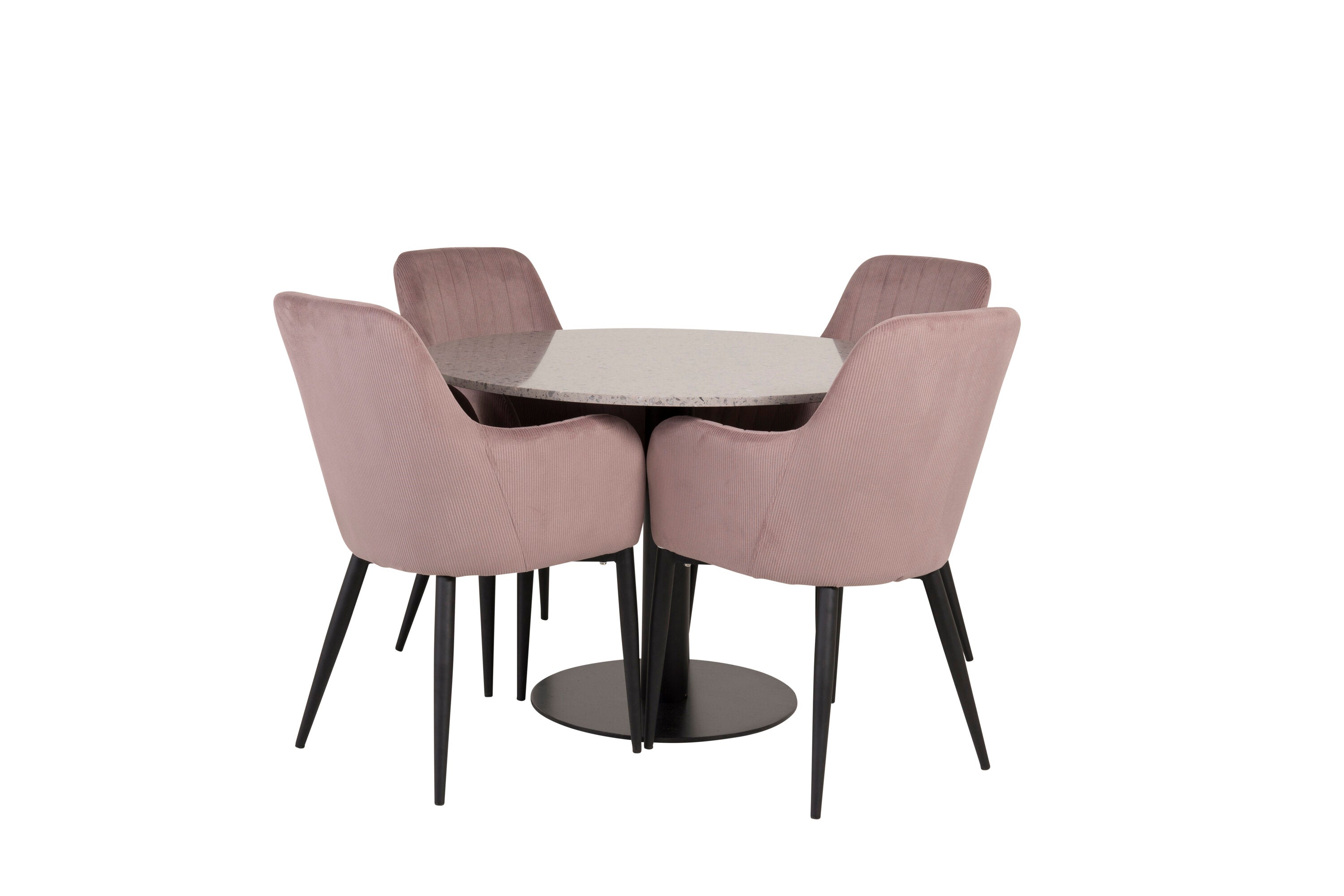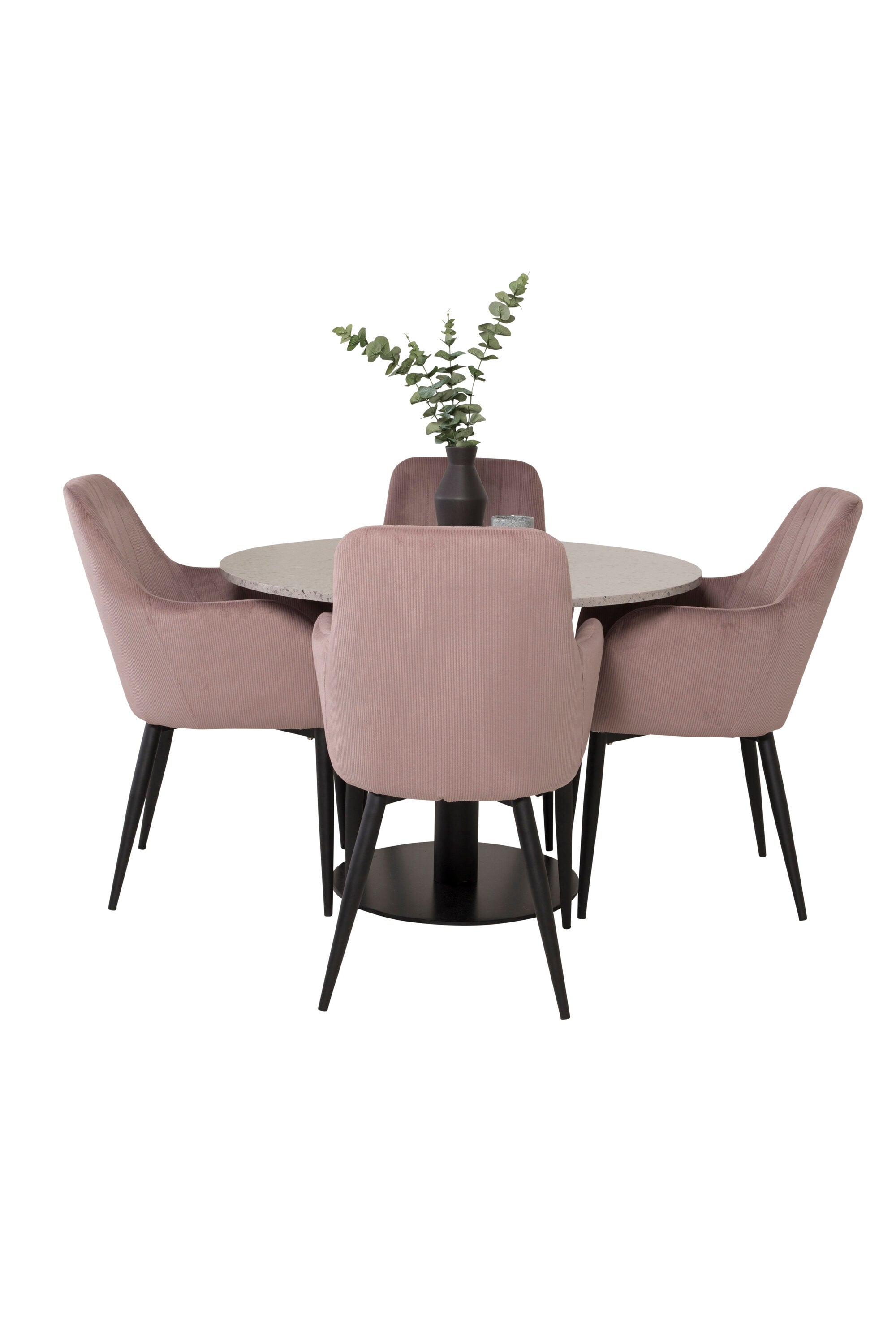 Jídelní stůl Razzia 106 cm - Šedá Terazzo / Černá + Komfortní jídelní židle - Černé nohy / Dusty Pink Manšestr _4