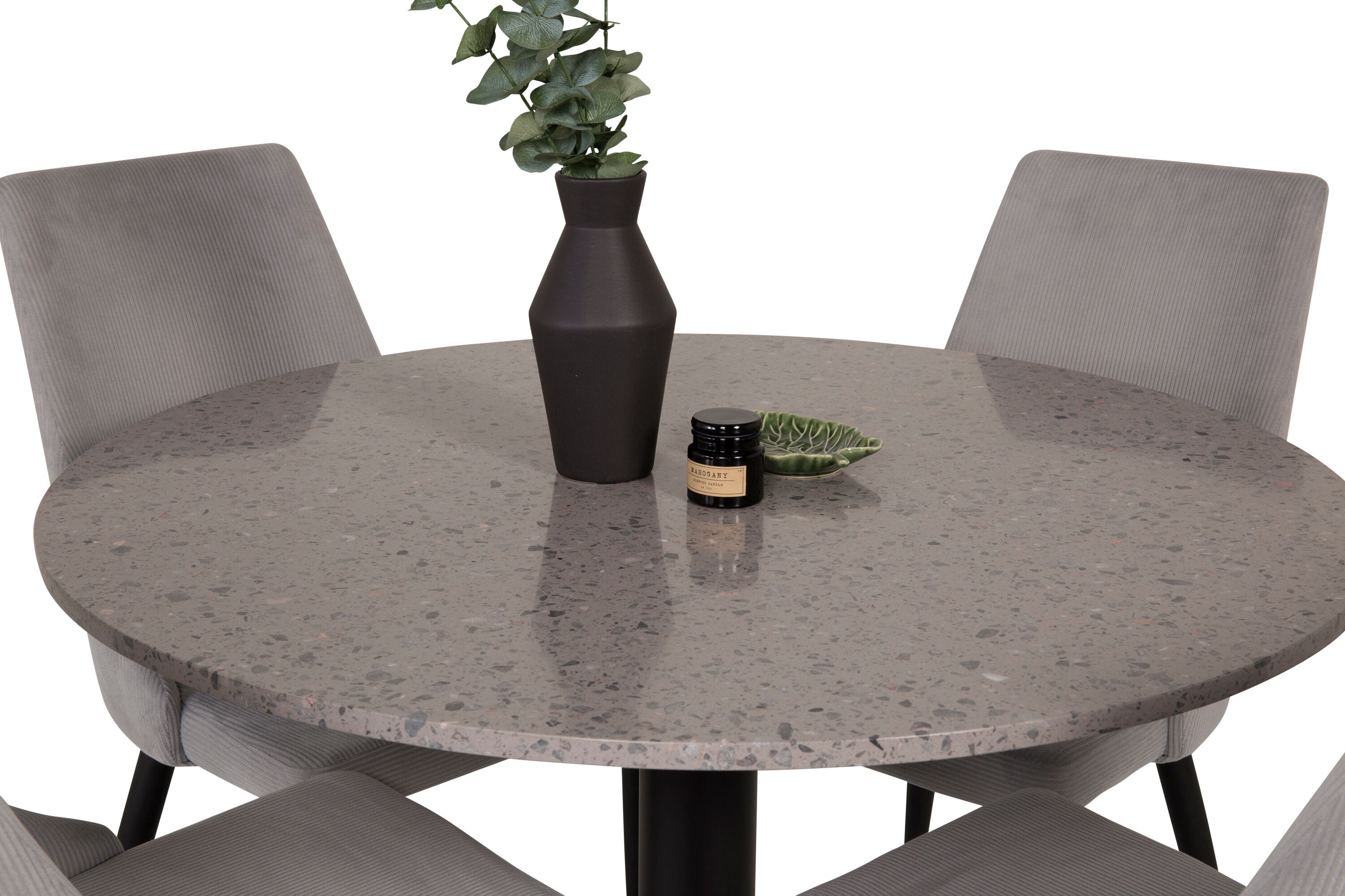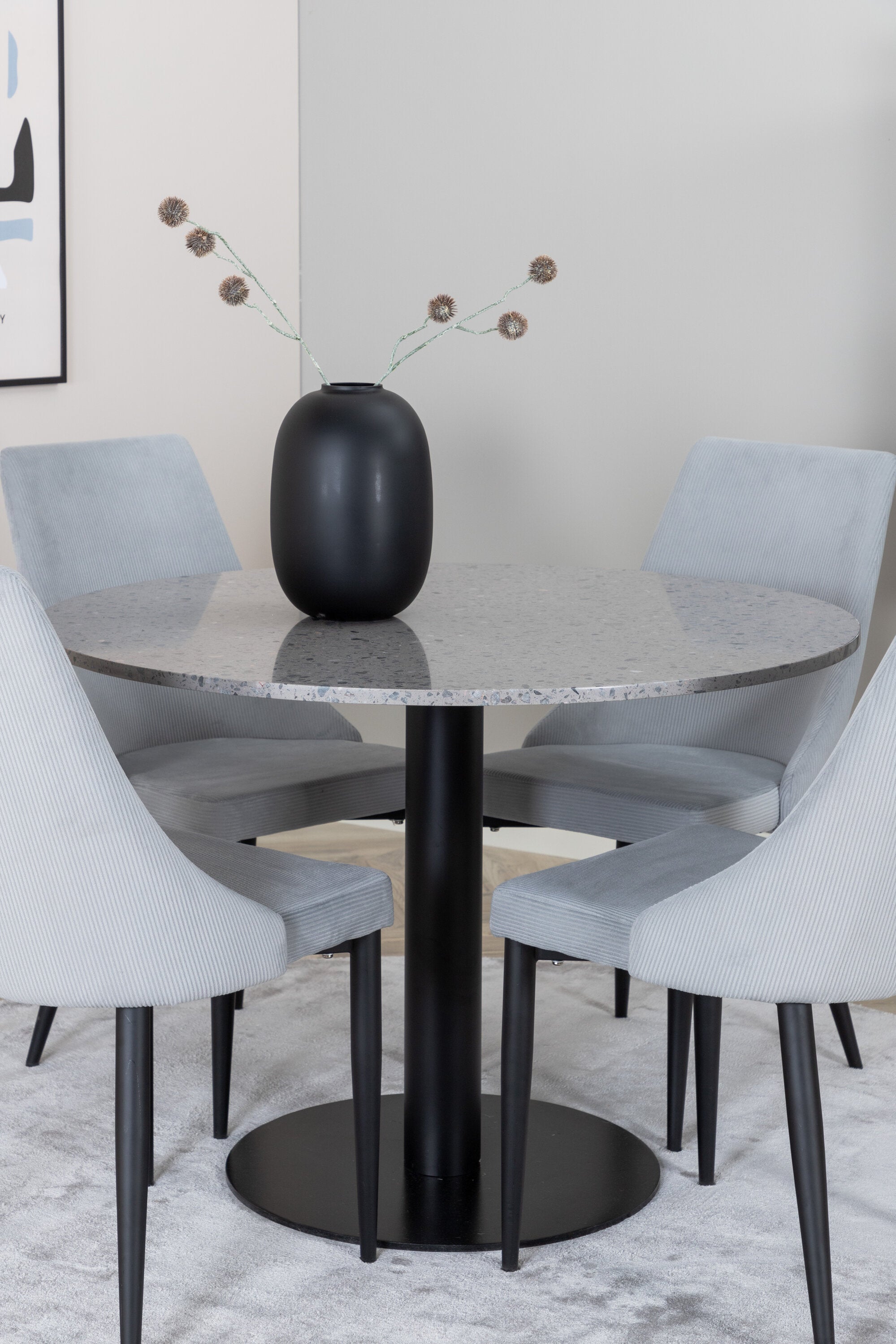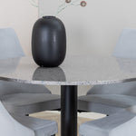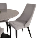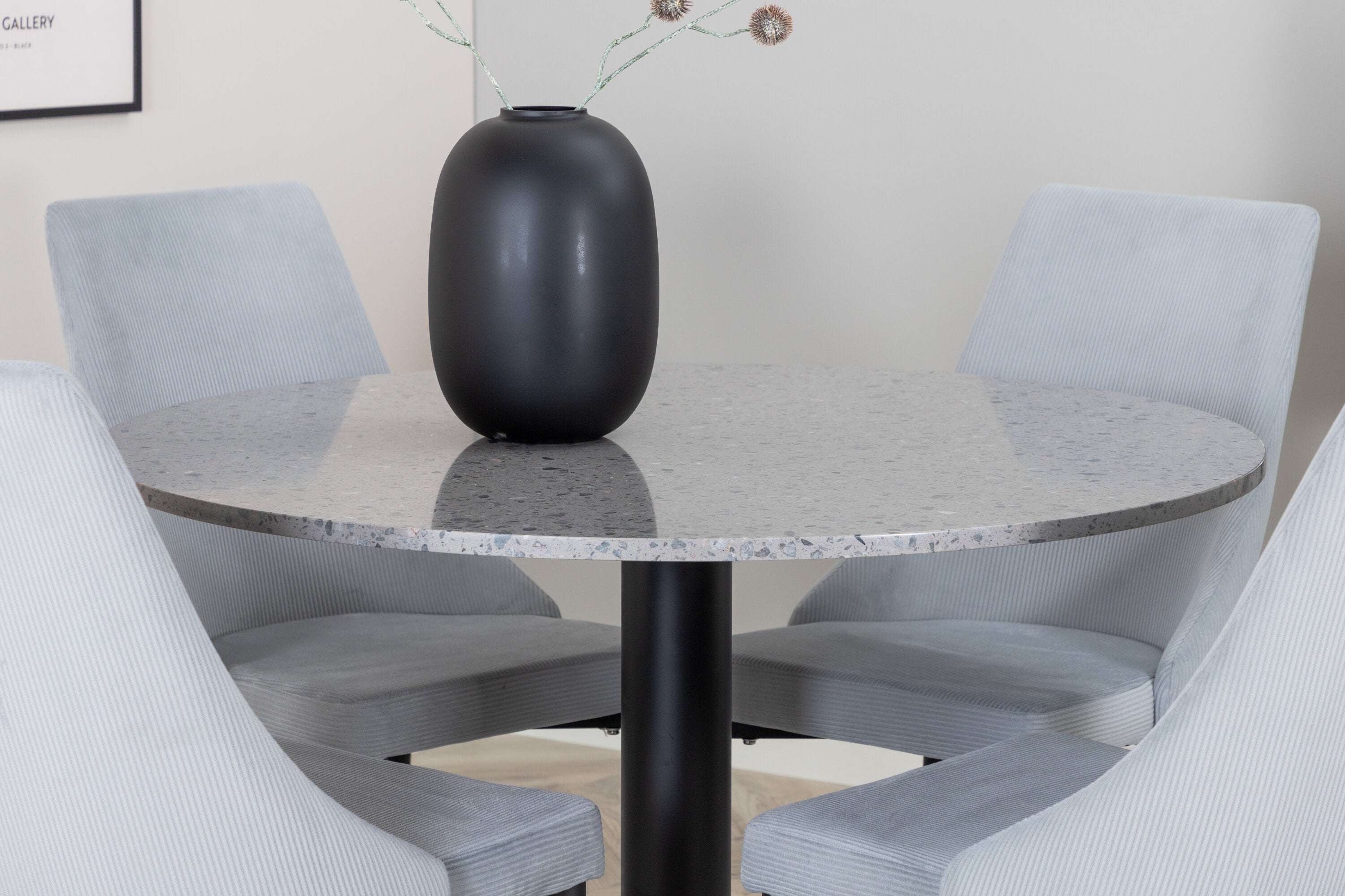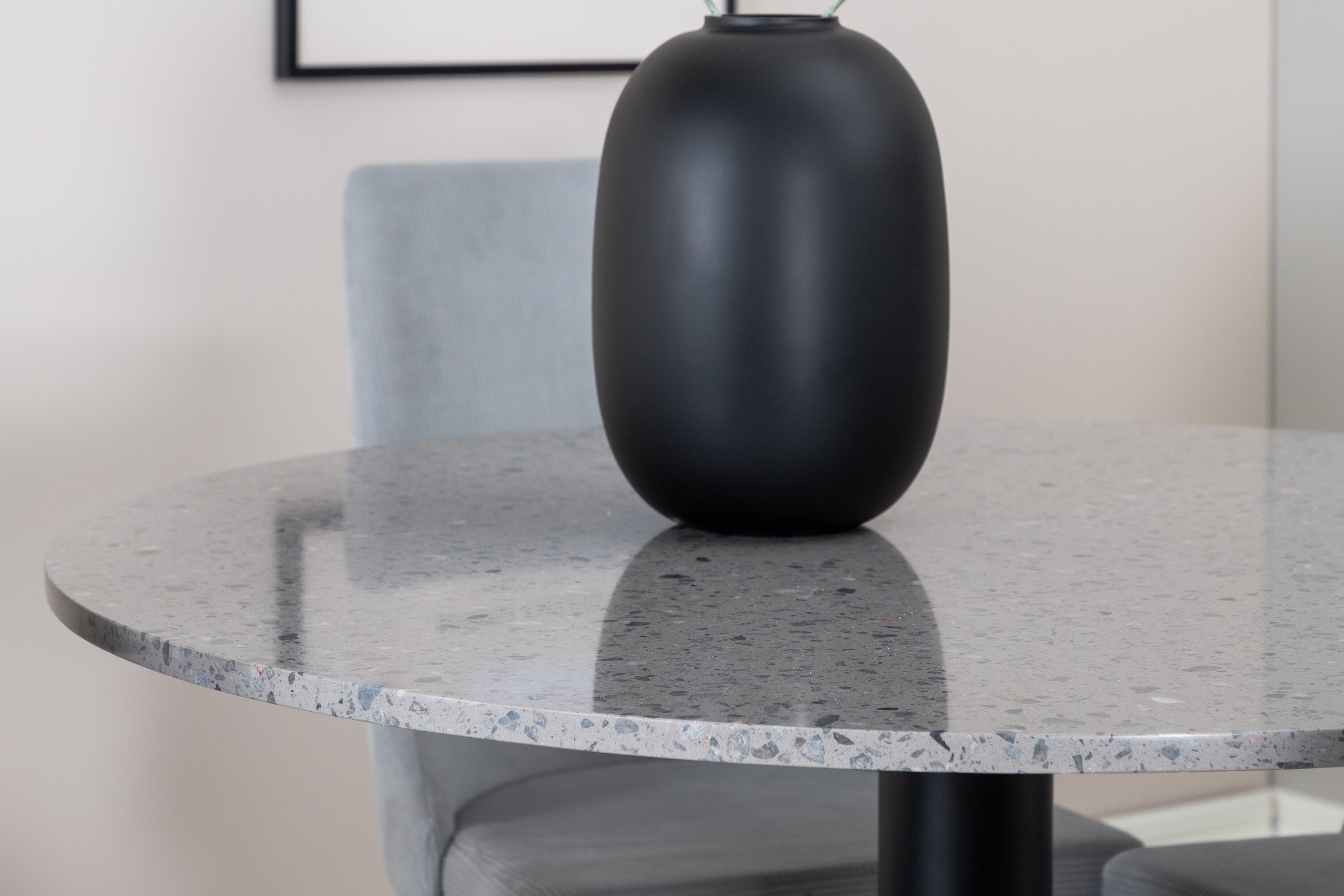 Jídelní stůl Razzia 106 cm - Šedá Terazzo / Černá + Leone jídelní židle - Černé nohy / Světle Šedá manšestrová _4
