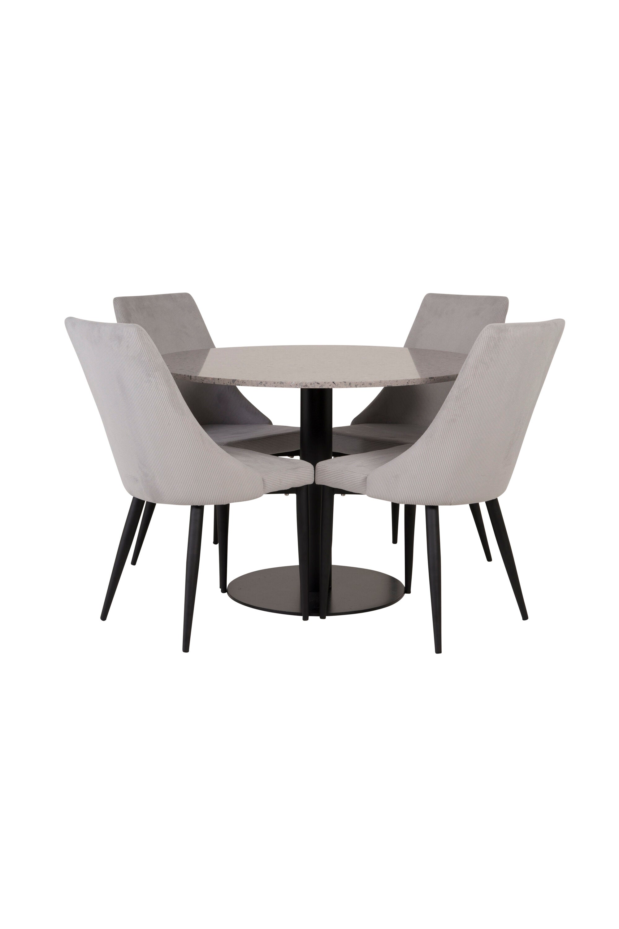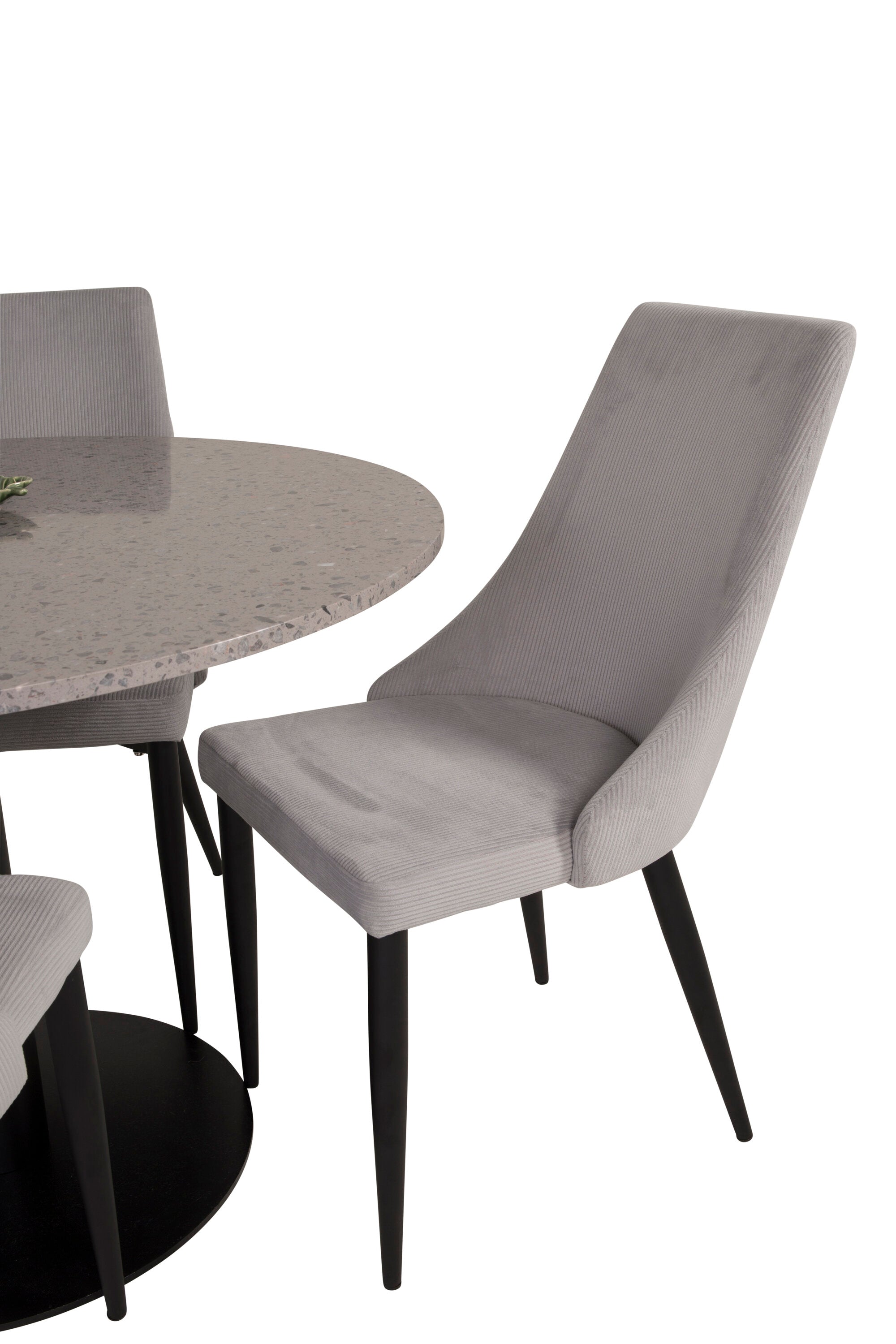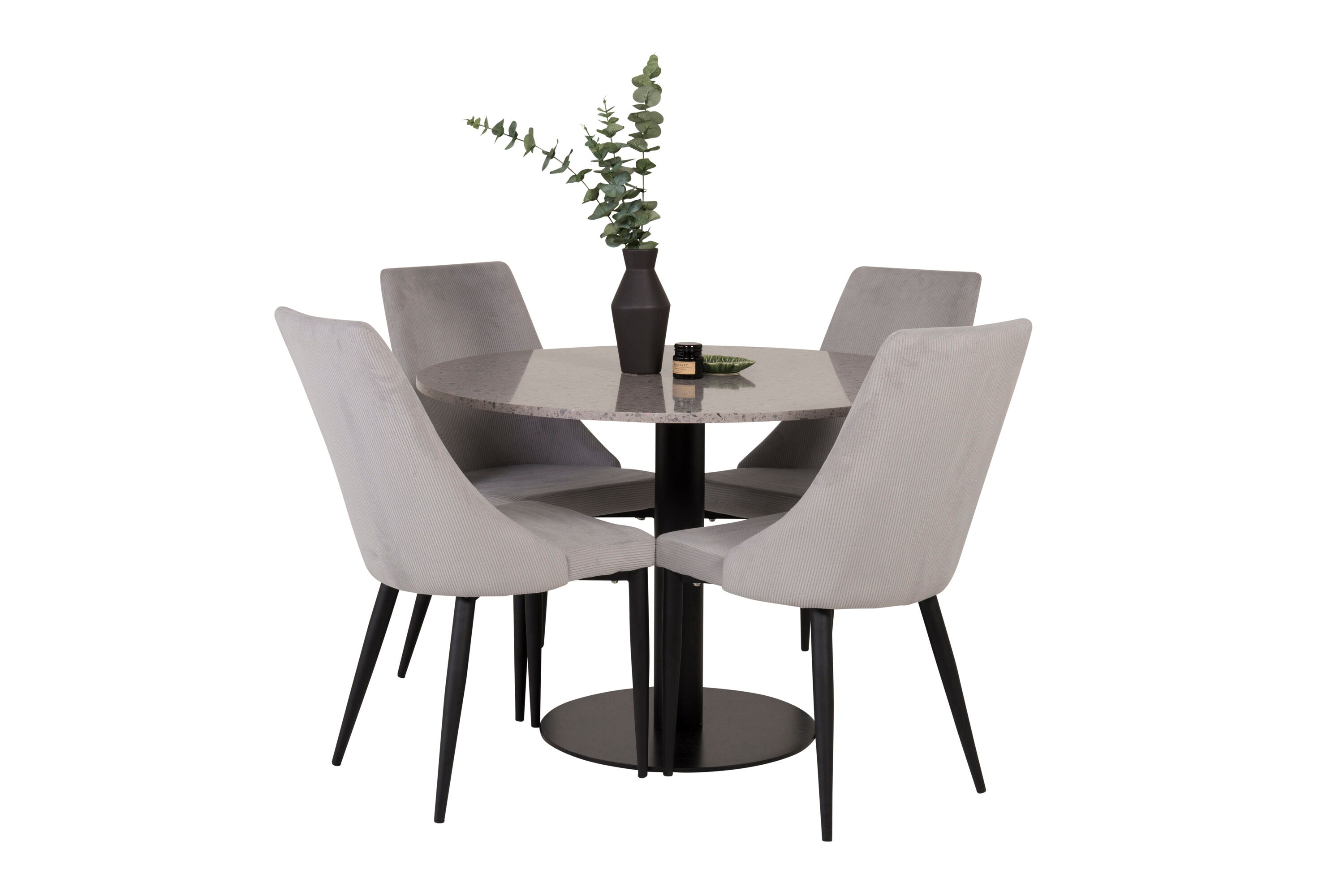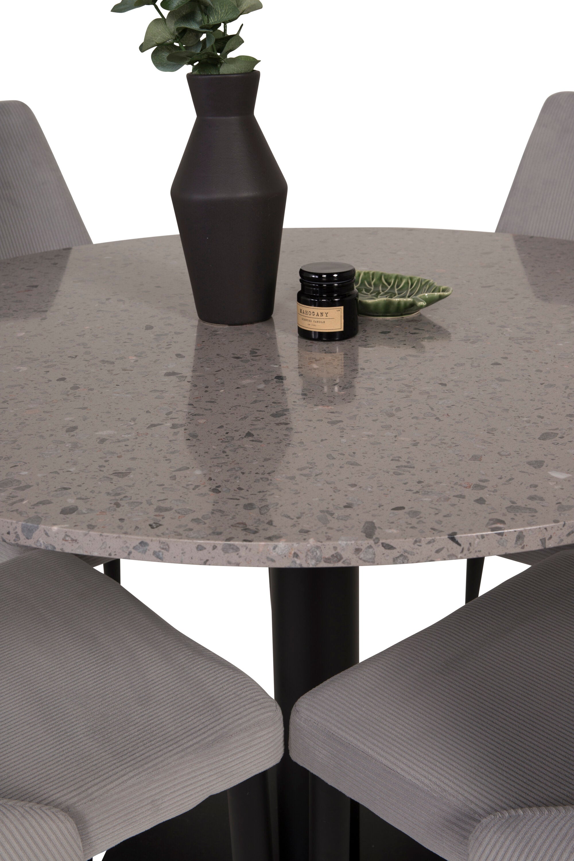 Jídelní stůl Razzia 106 cm - Šedá Terazzo / Černá + Leone jídelní židle - Černé nohy / Světle Šedá manšestrová _4