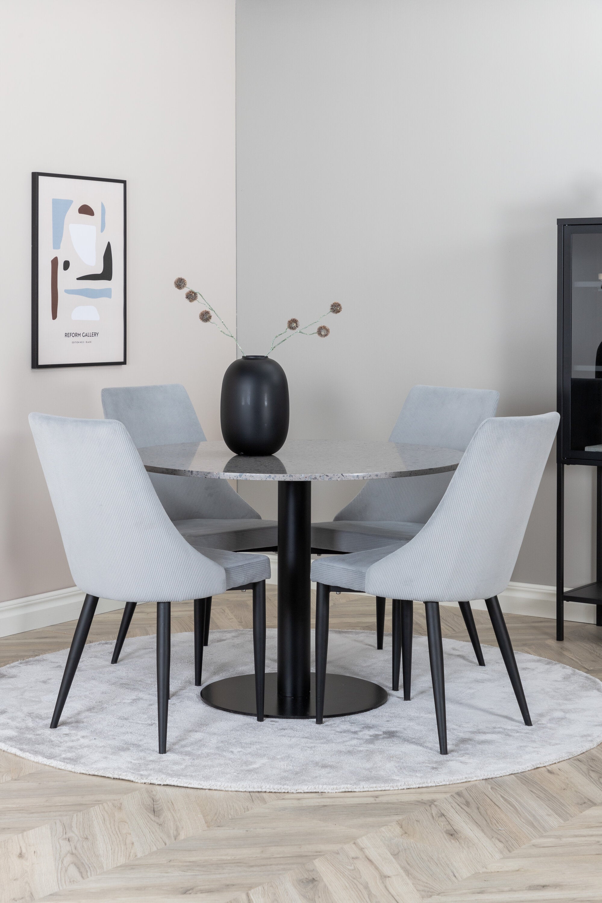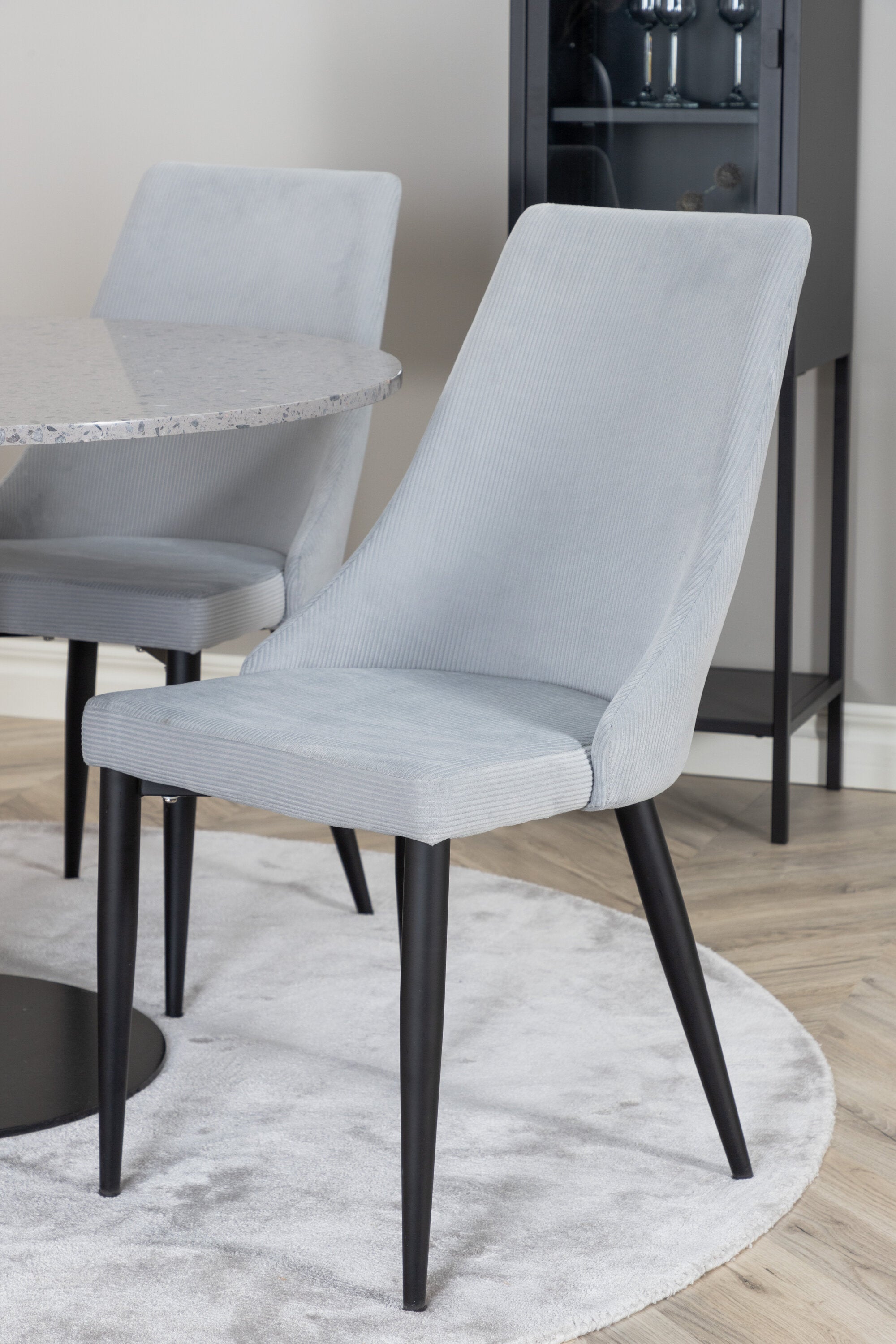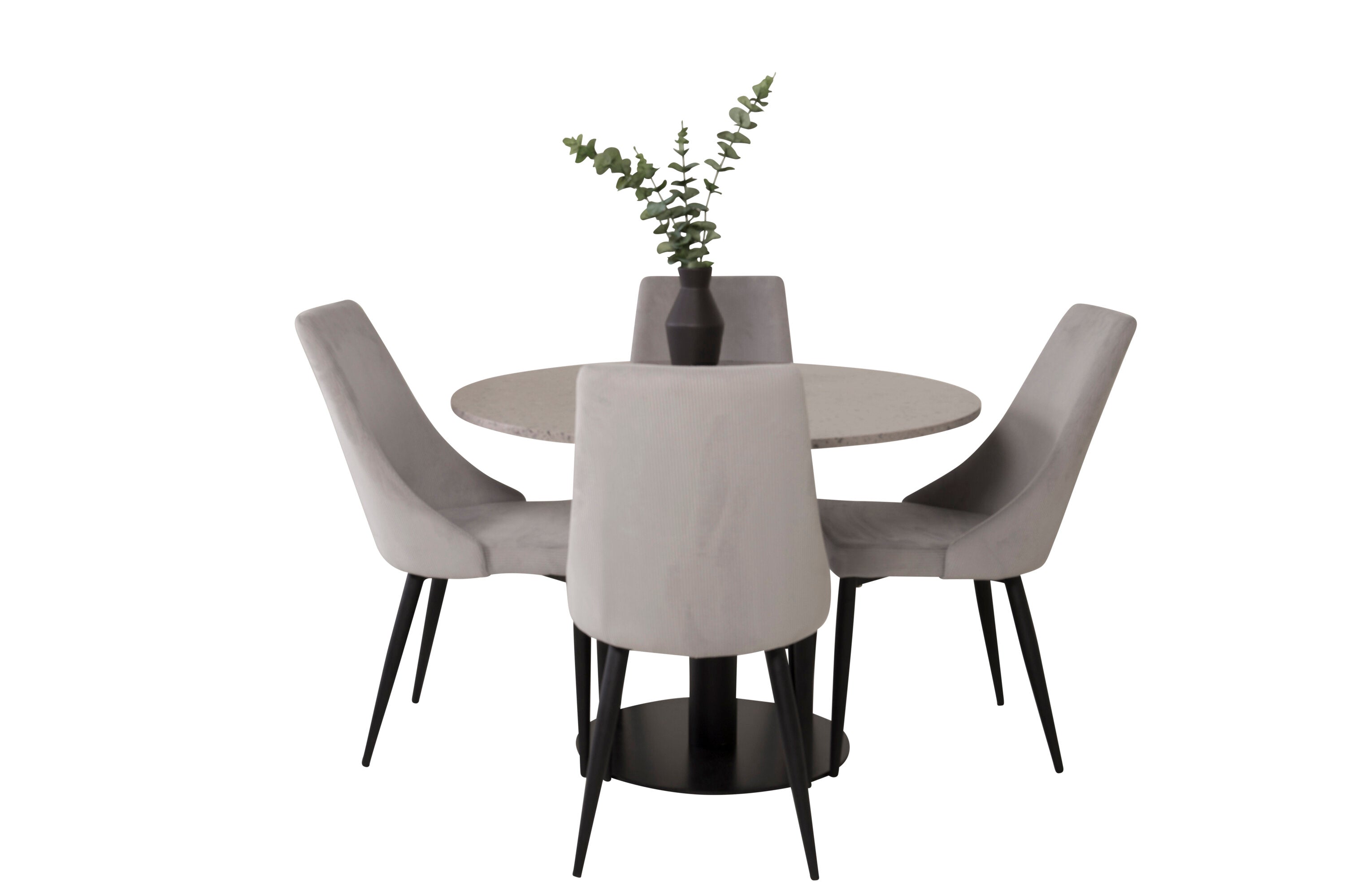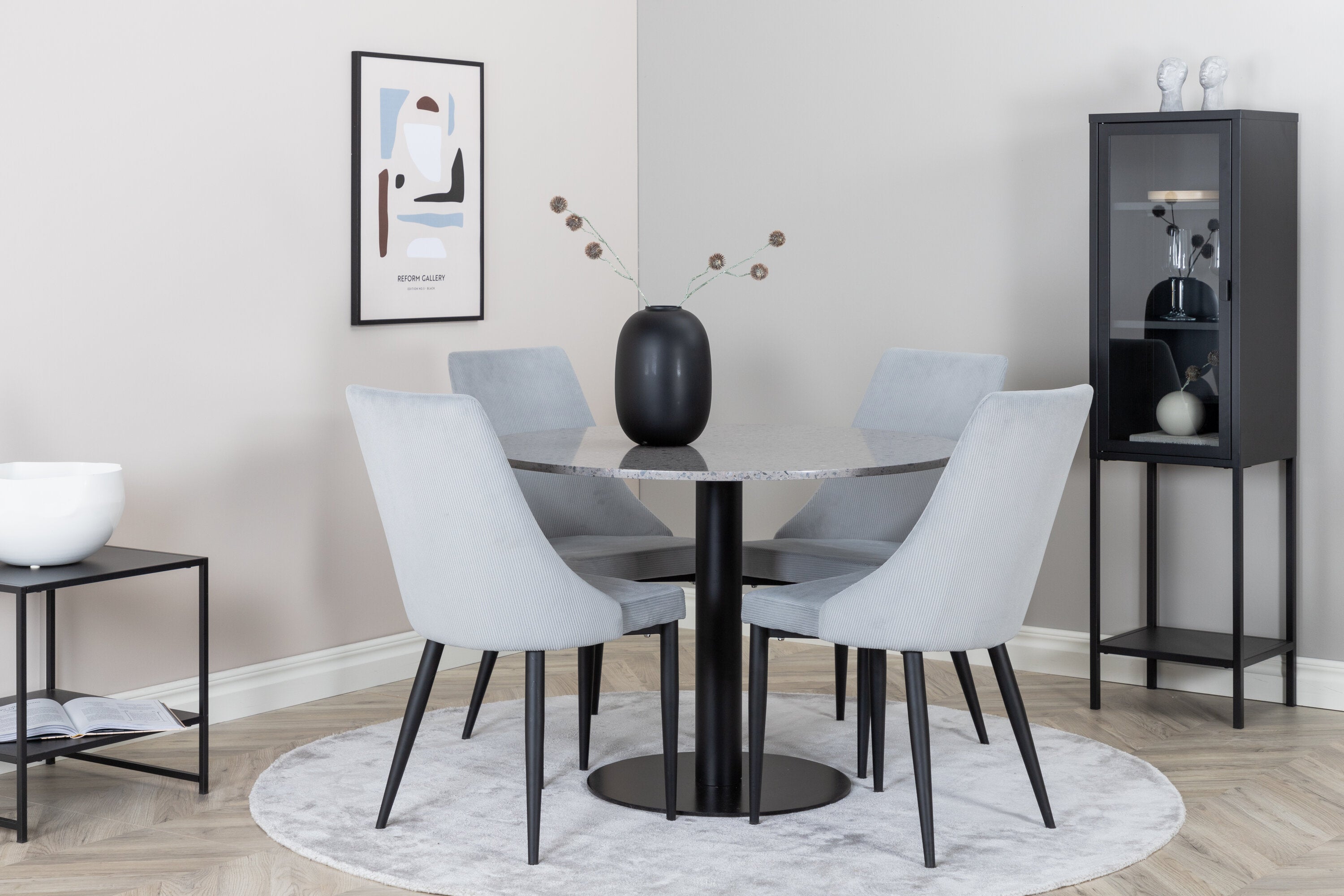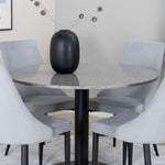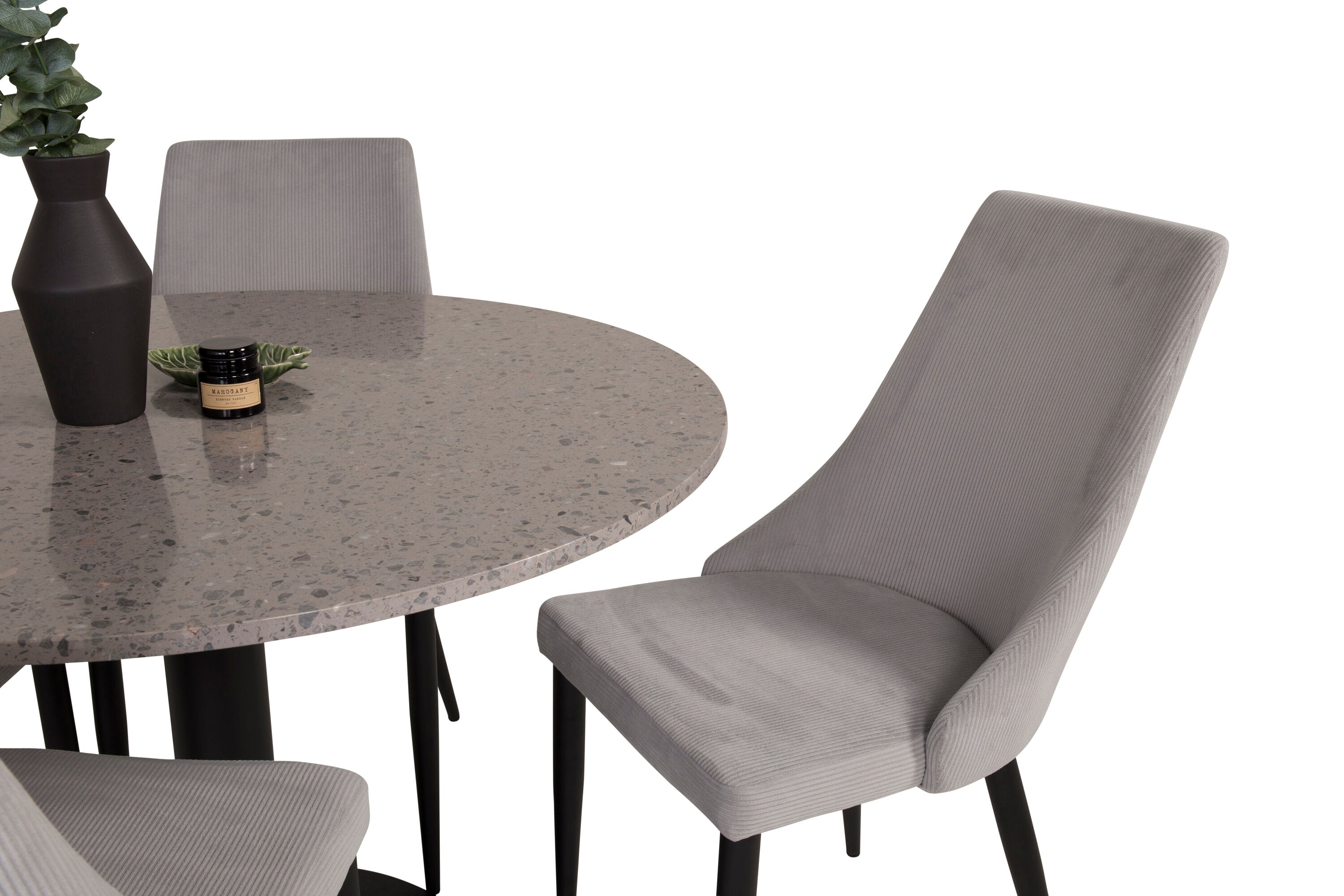 Jídelní stůl Razzia 106 cm - Šedá Terazzo / Černá + Leone jídelní židle - Černé nohy / Světle Šedá manšestrová _4