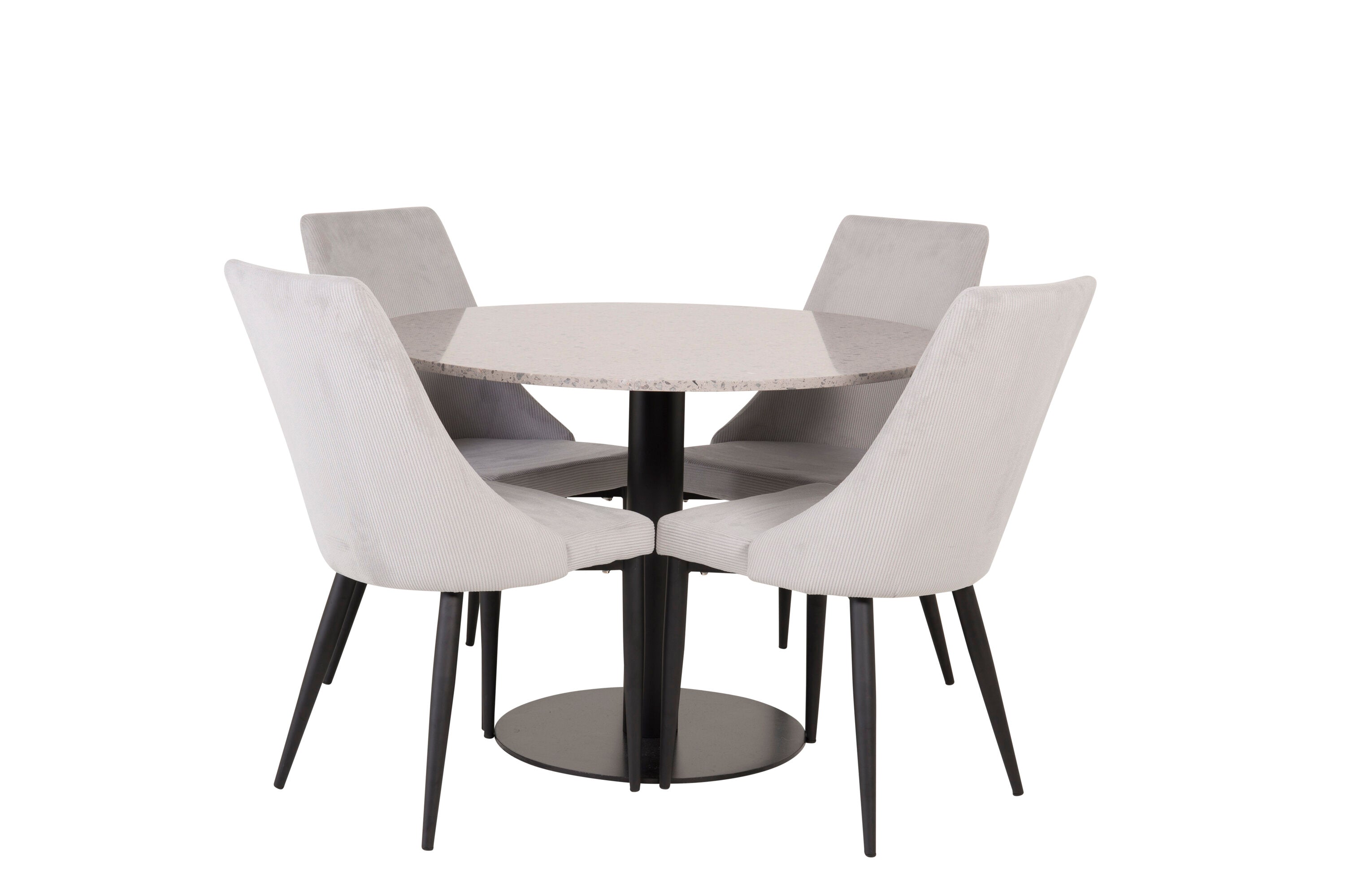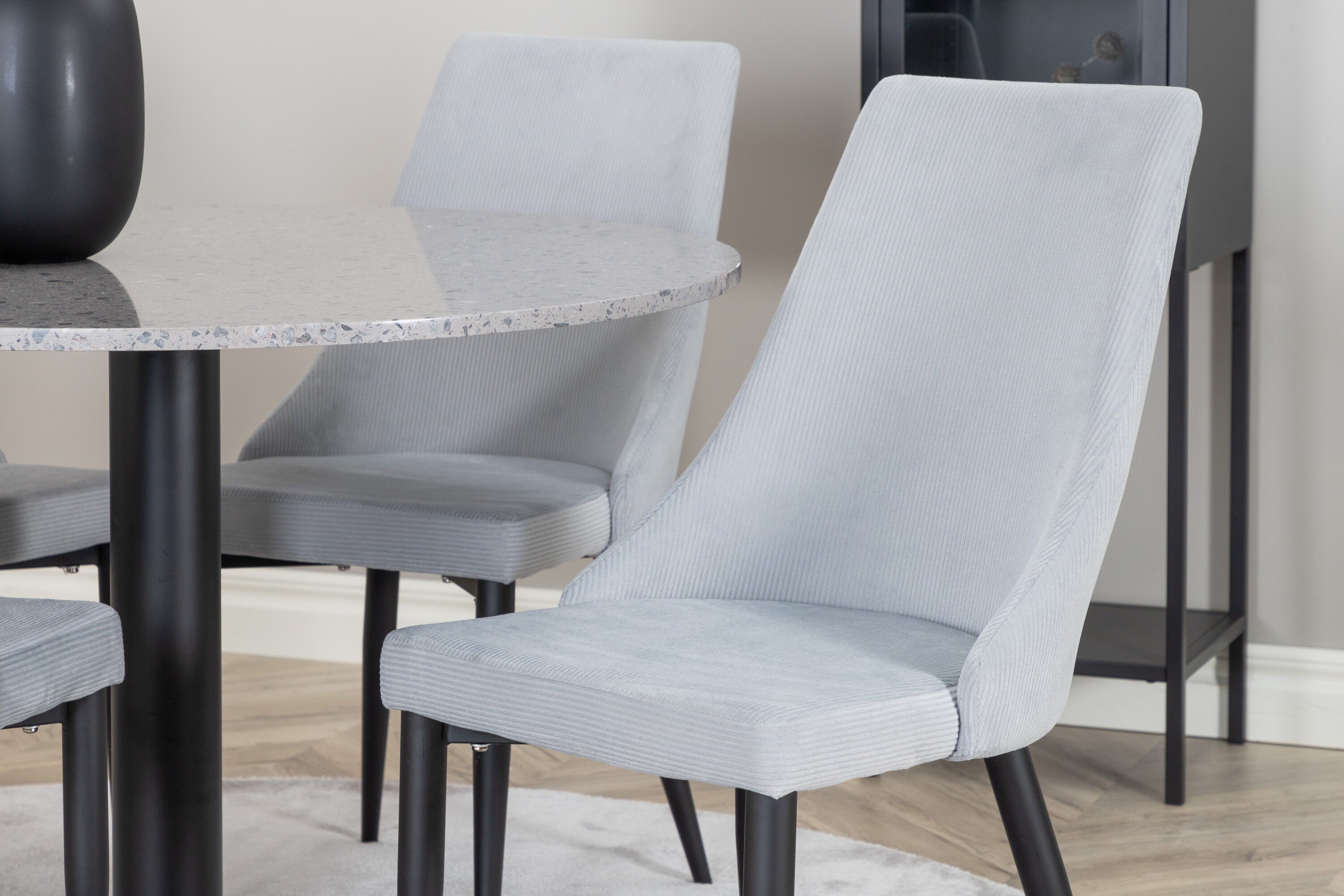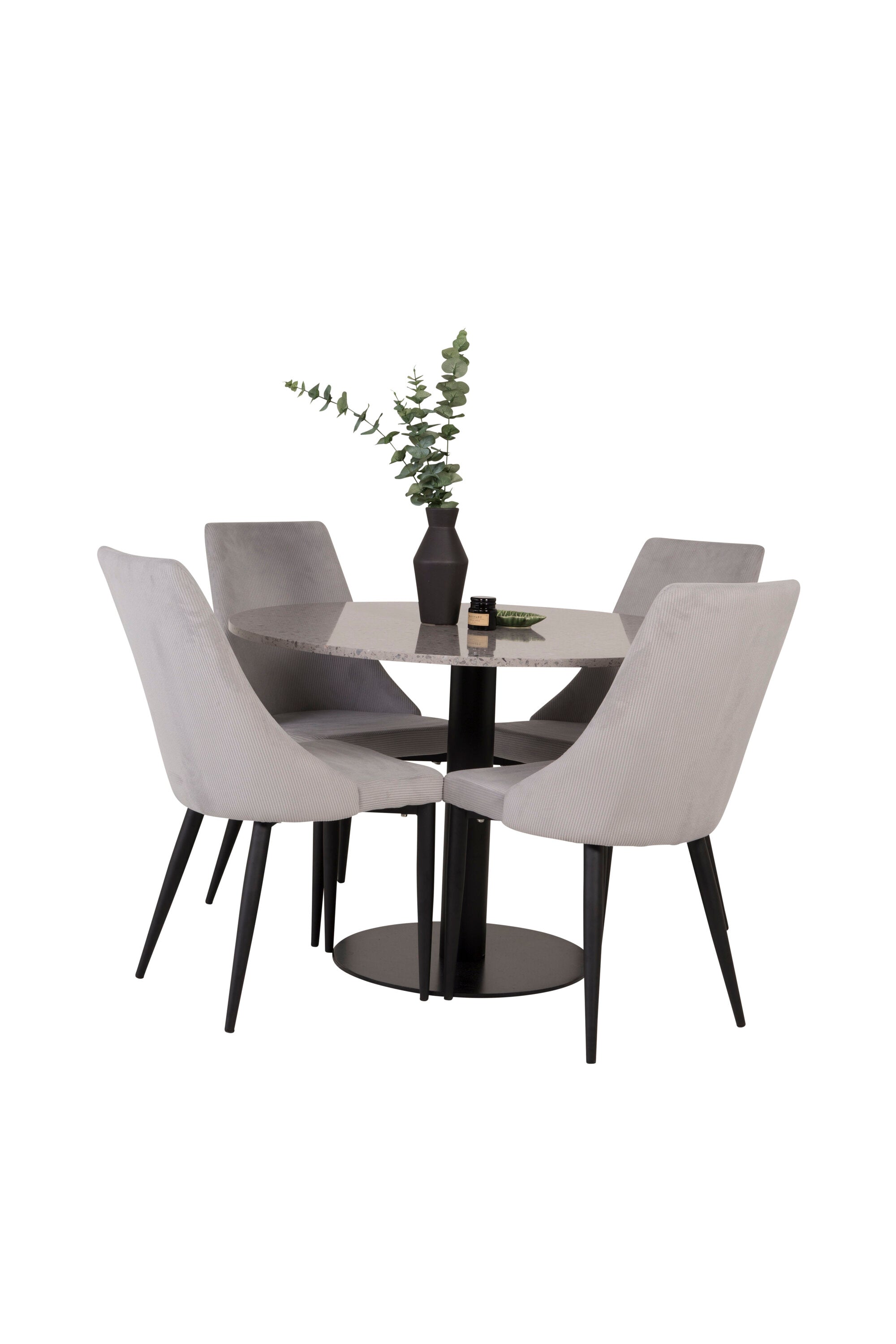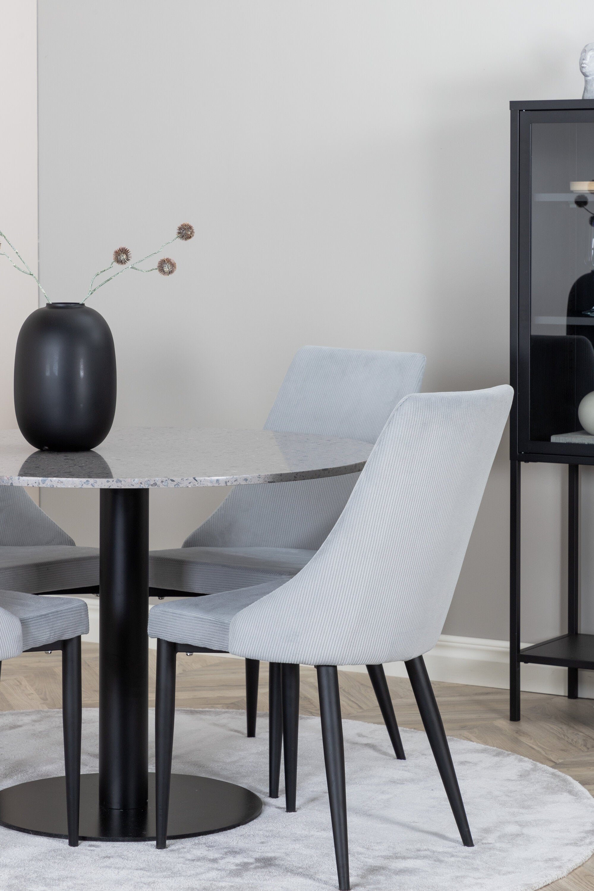 Jídelní stůl Razzia 106 cm - Šedá Terazzo / Černá + Leone jídelní židle - Černé nohy / Světle Šedá manšestrová _4