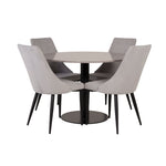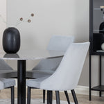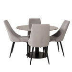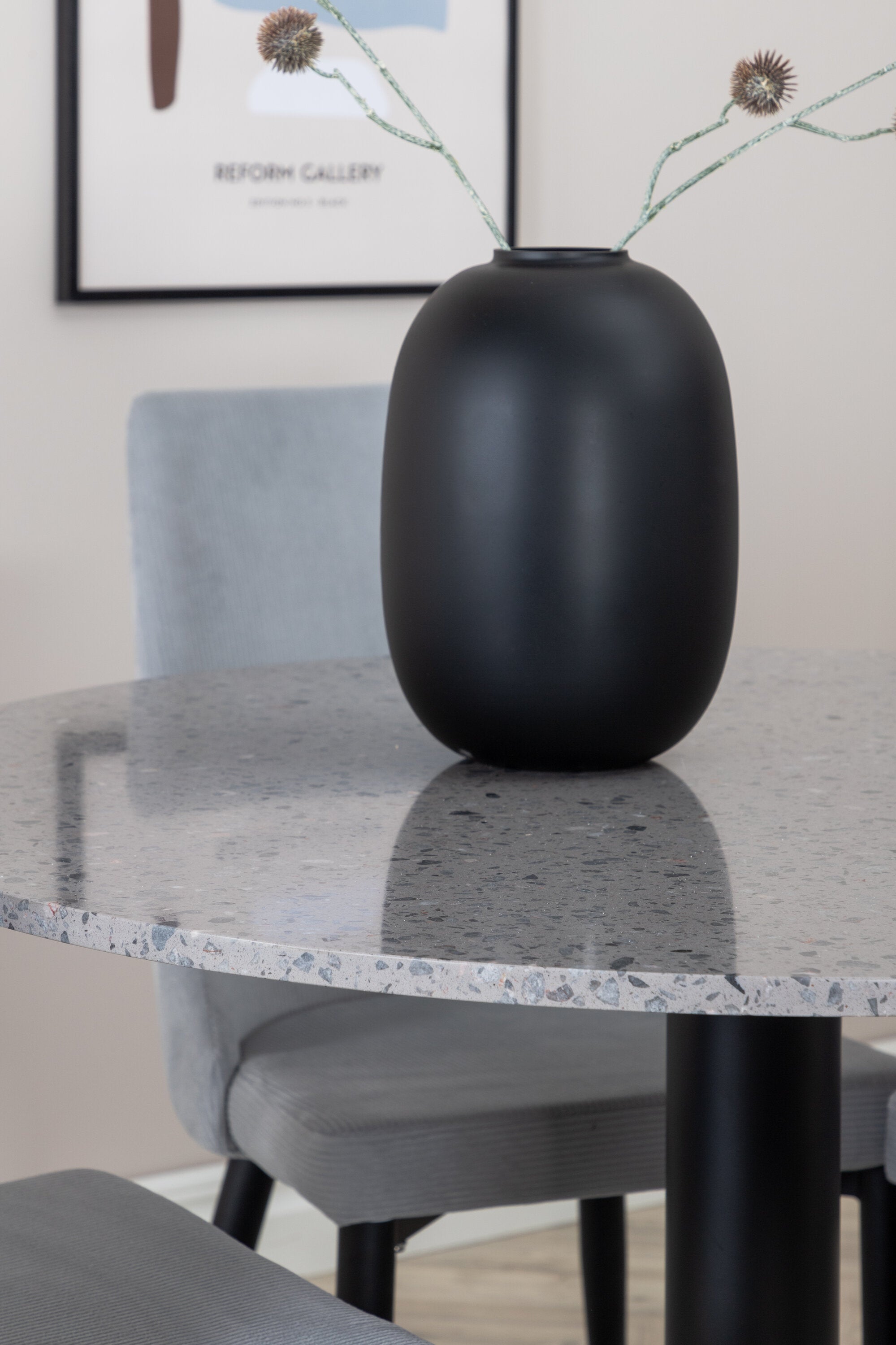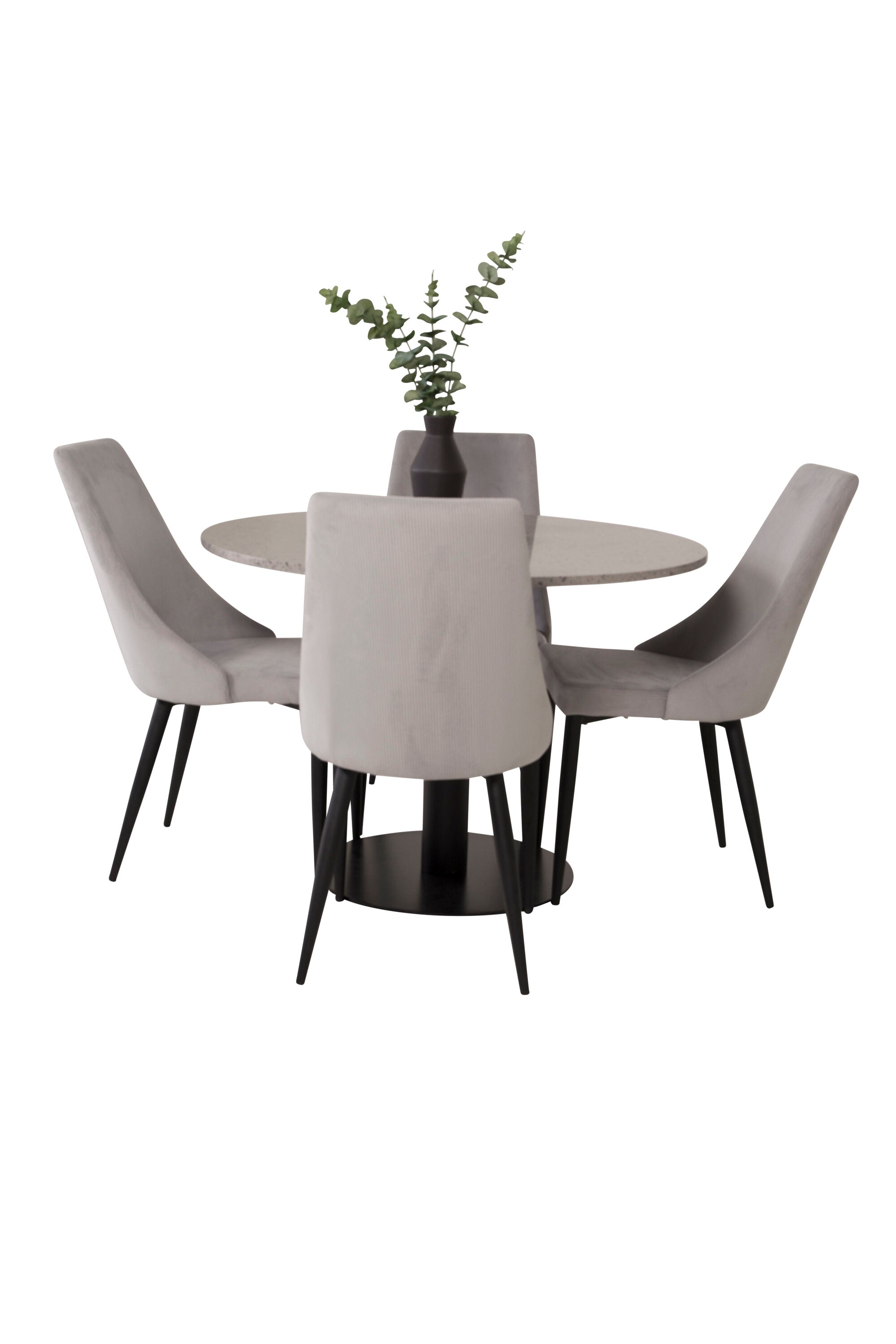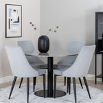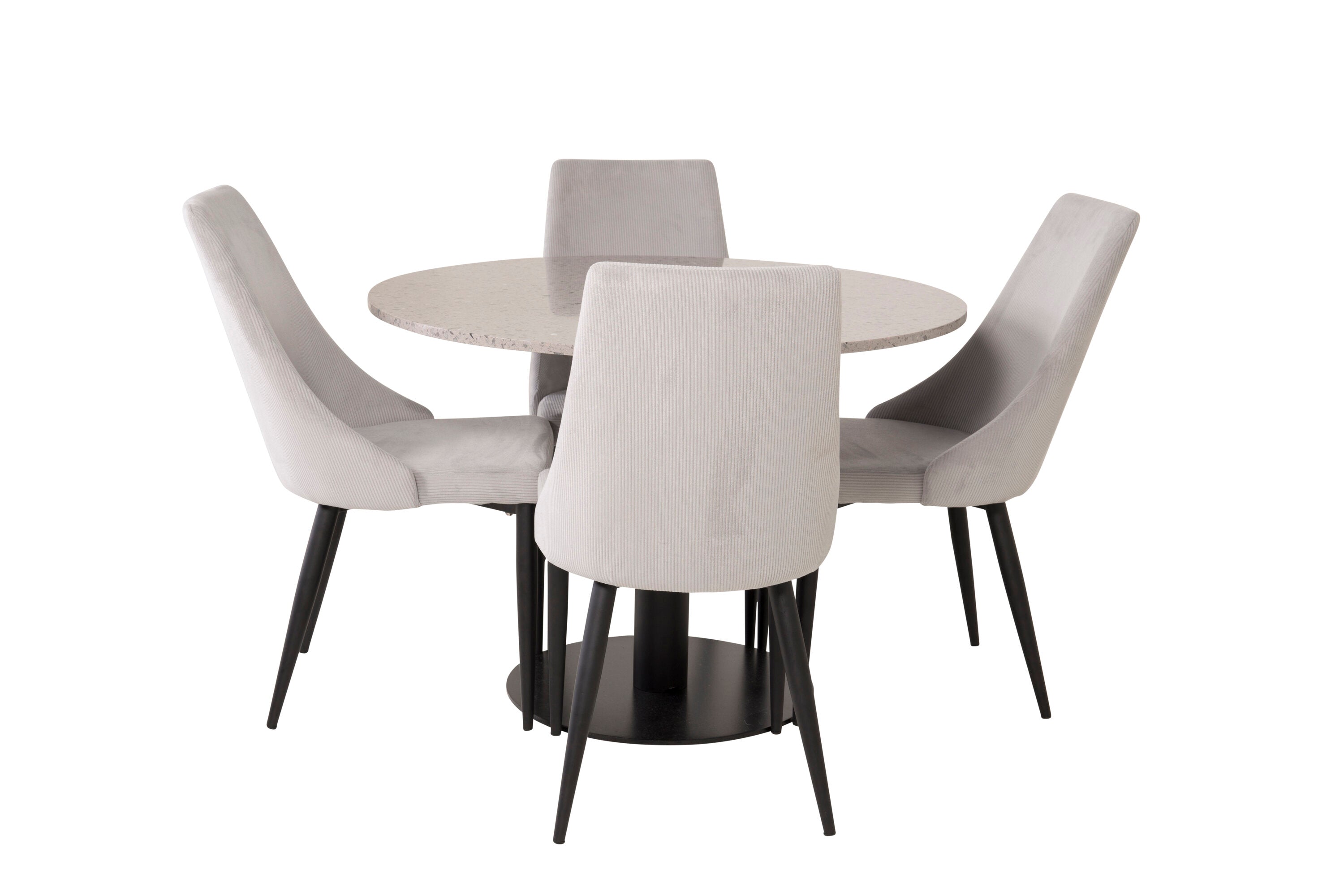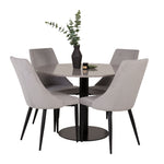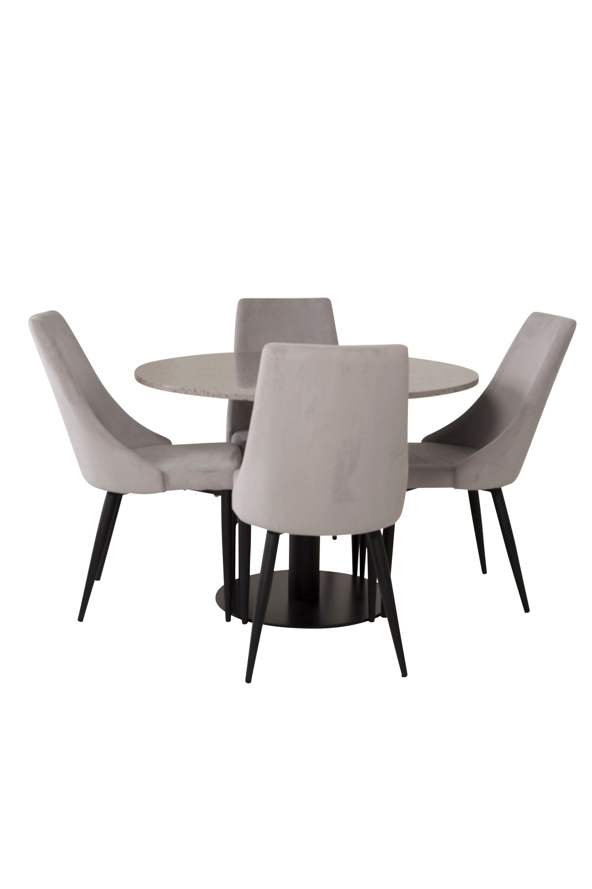Jídelní stůl Razzia 106 cm - Šedá Terazzo / Černá + Leone jídelní židle - Černé nohy / Světle Šedá manšestrová _4
