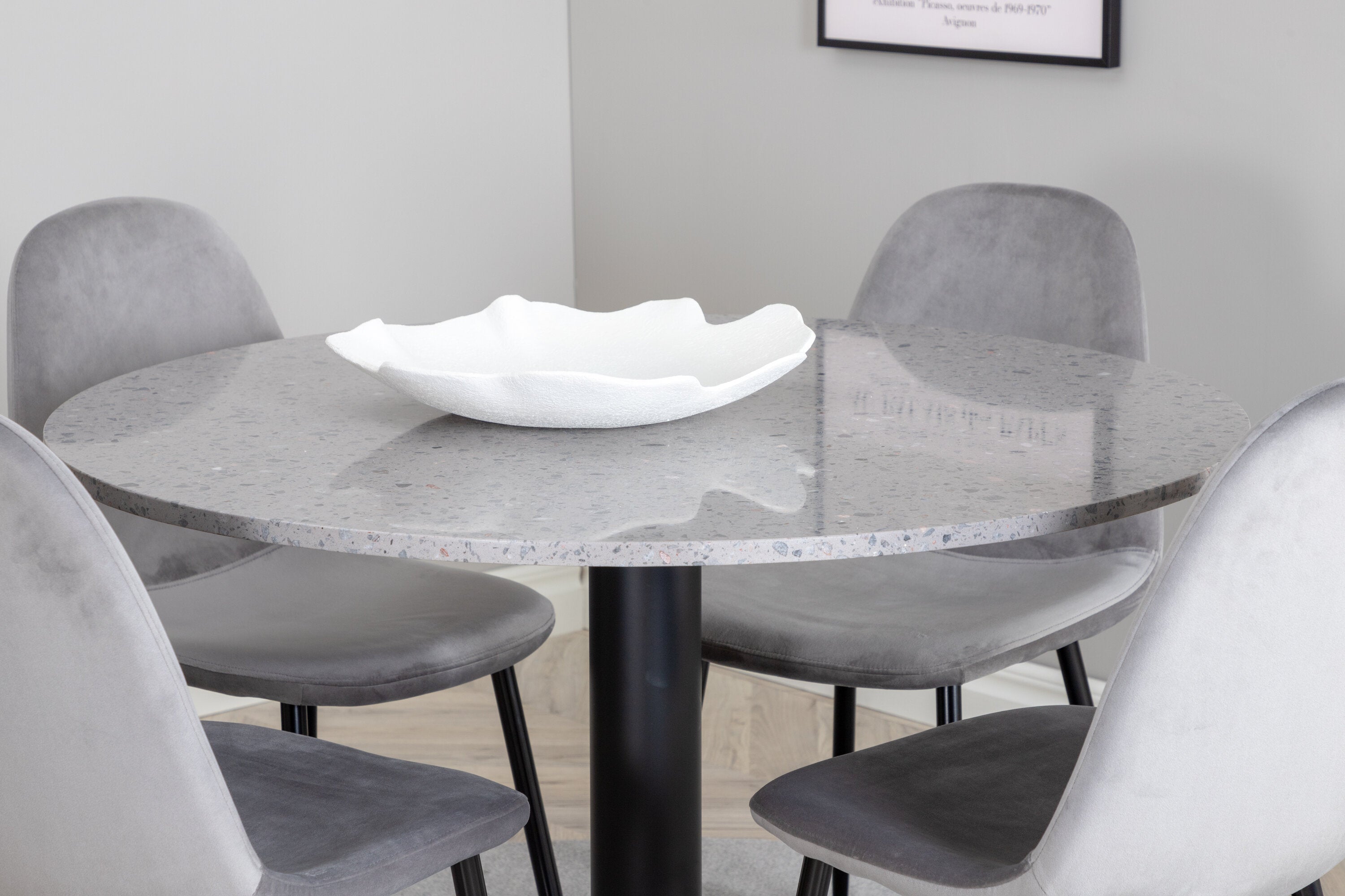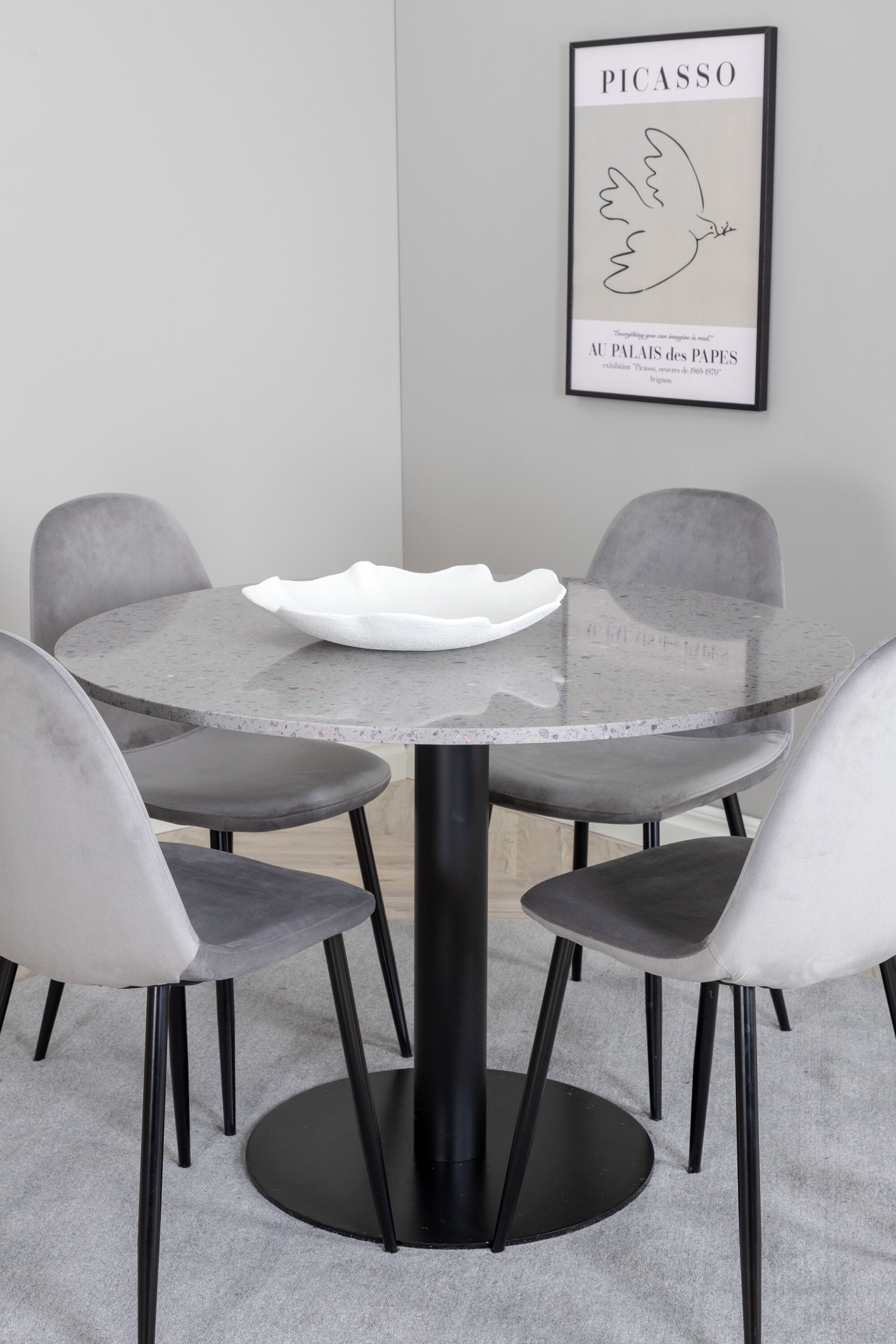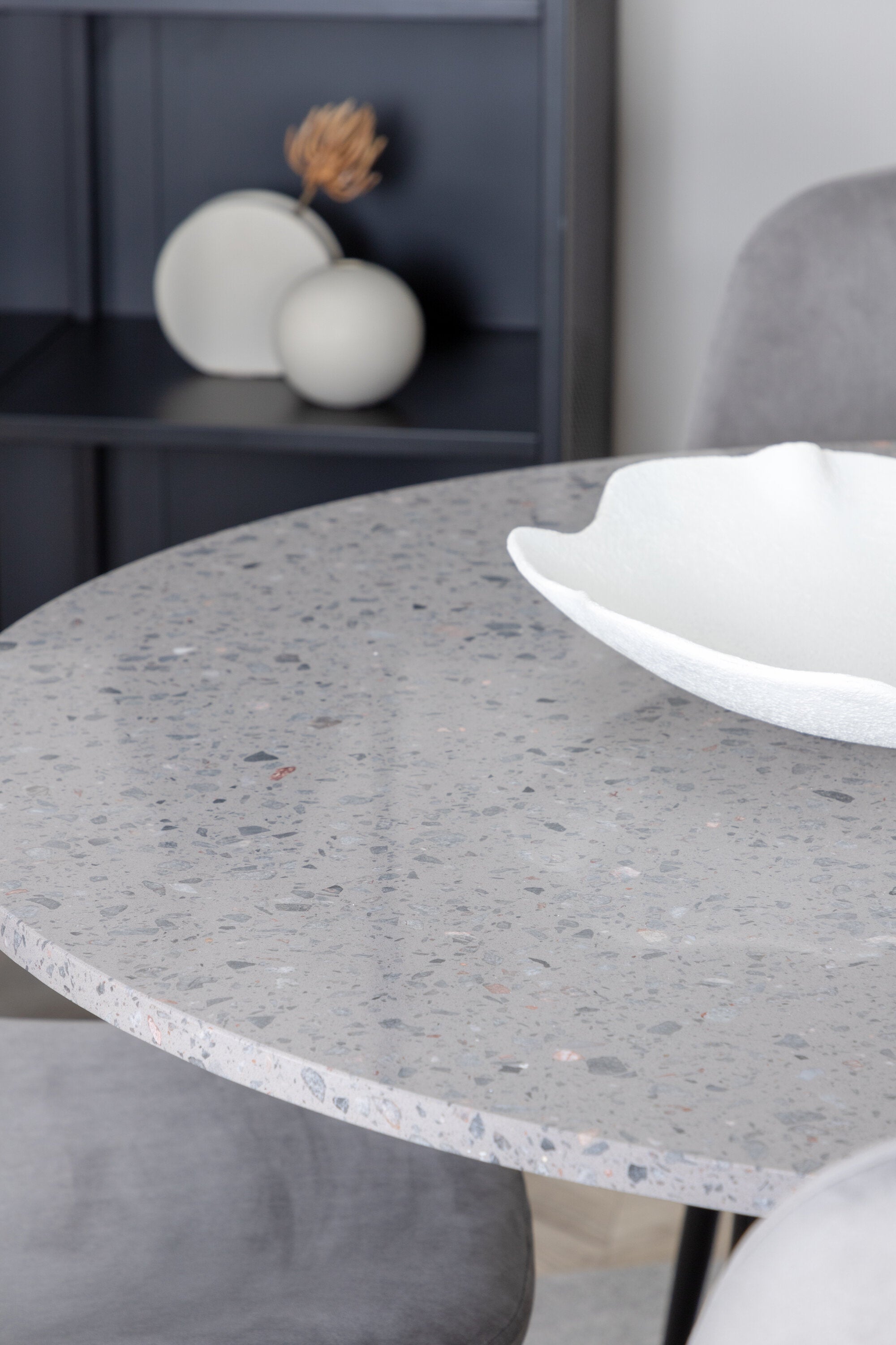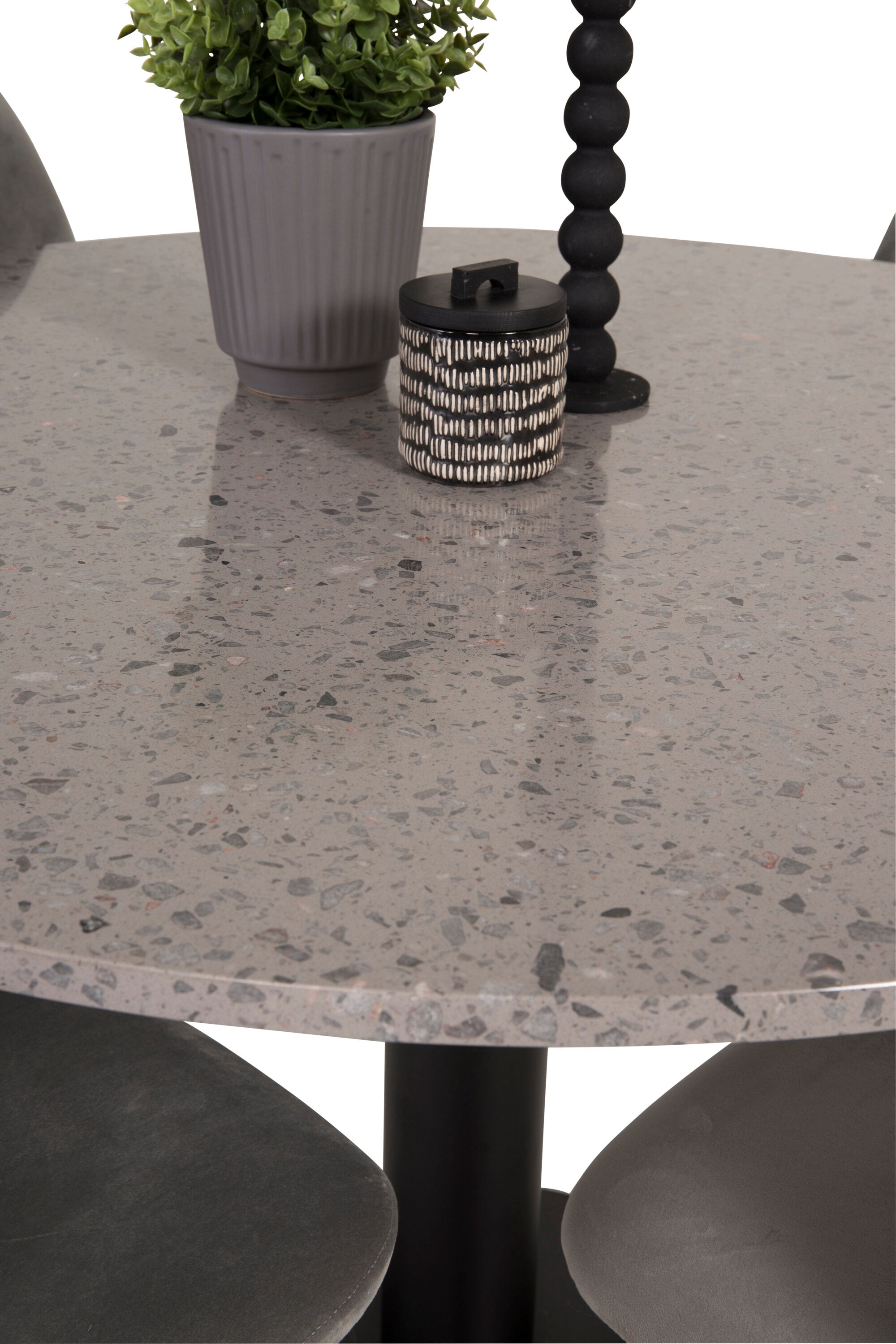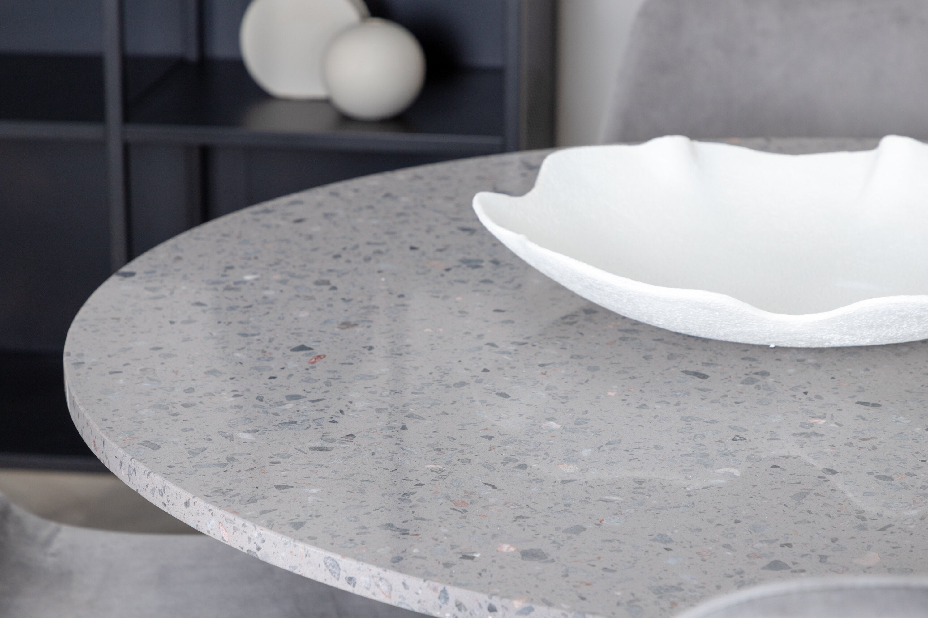 Jídelní stůl Razzia 106 cm - Šedá Terazzo / Jídelní židle Black+Polar - Černé nohy / Světle Šedá Velvet_4
