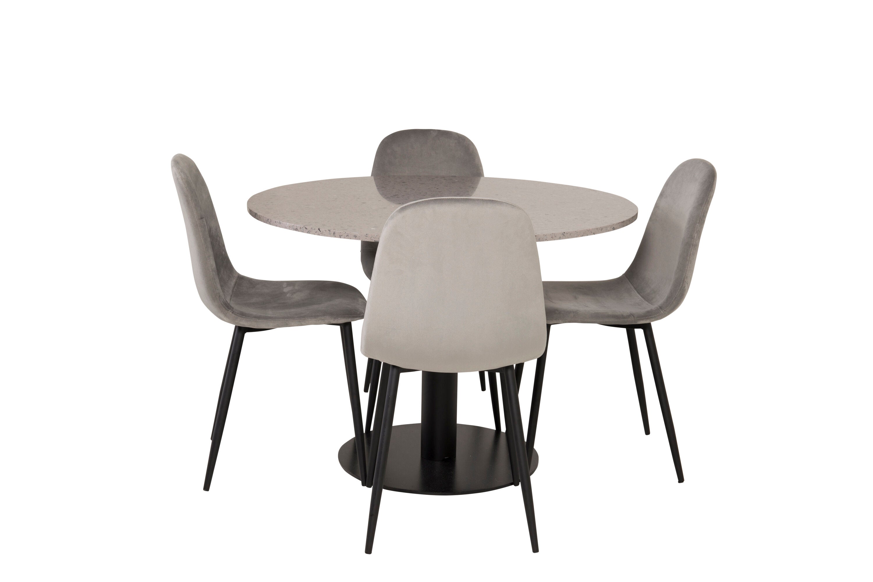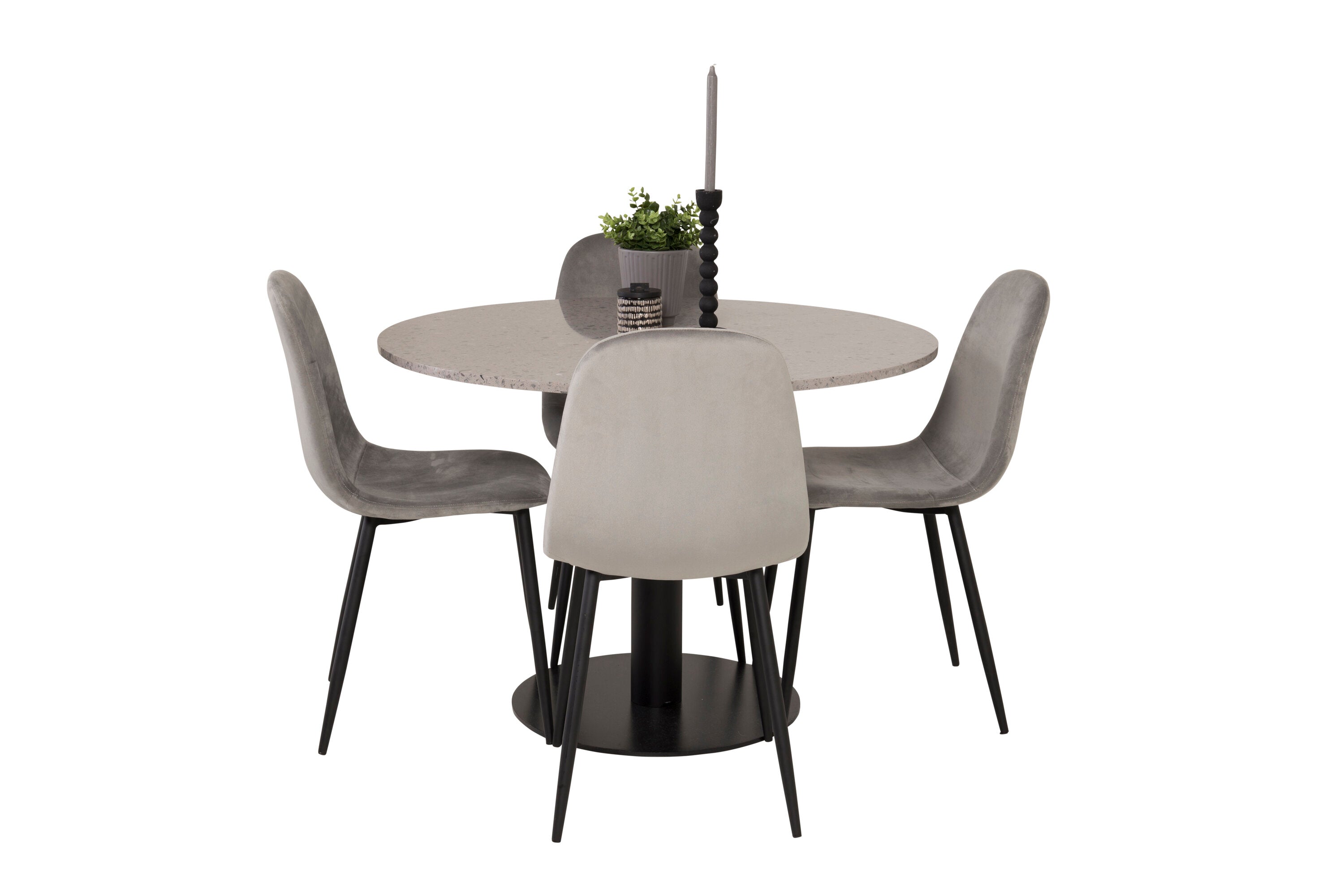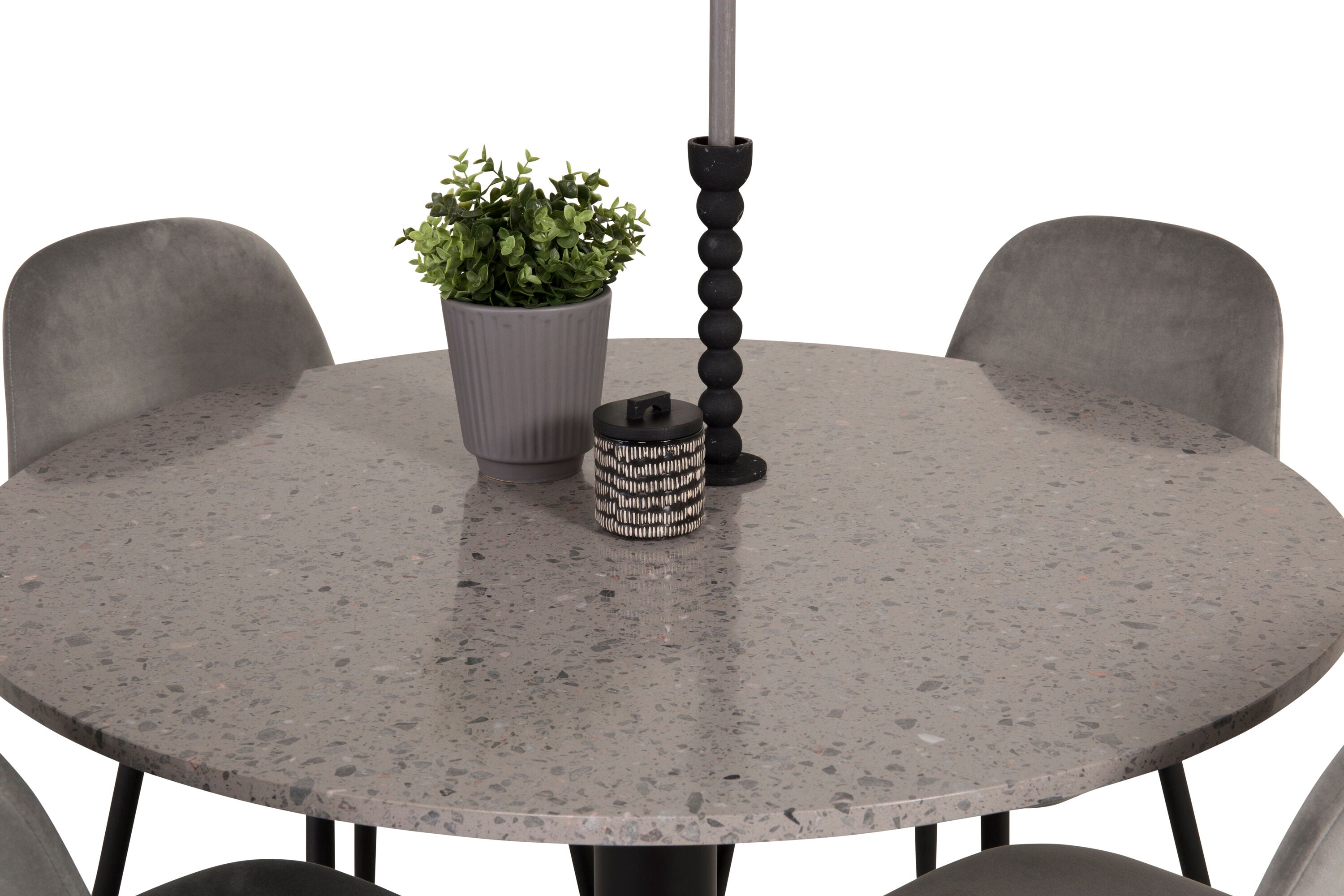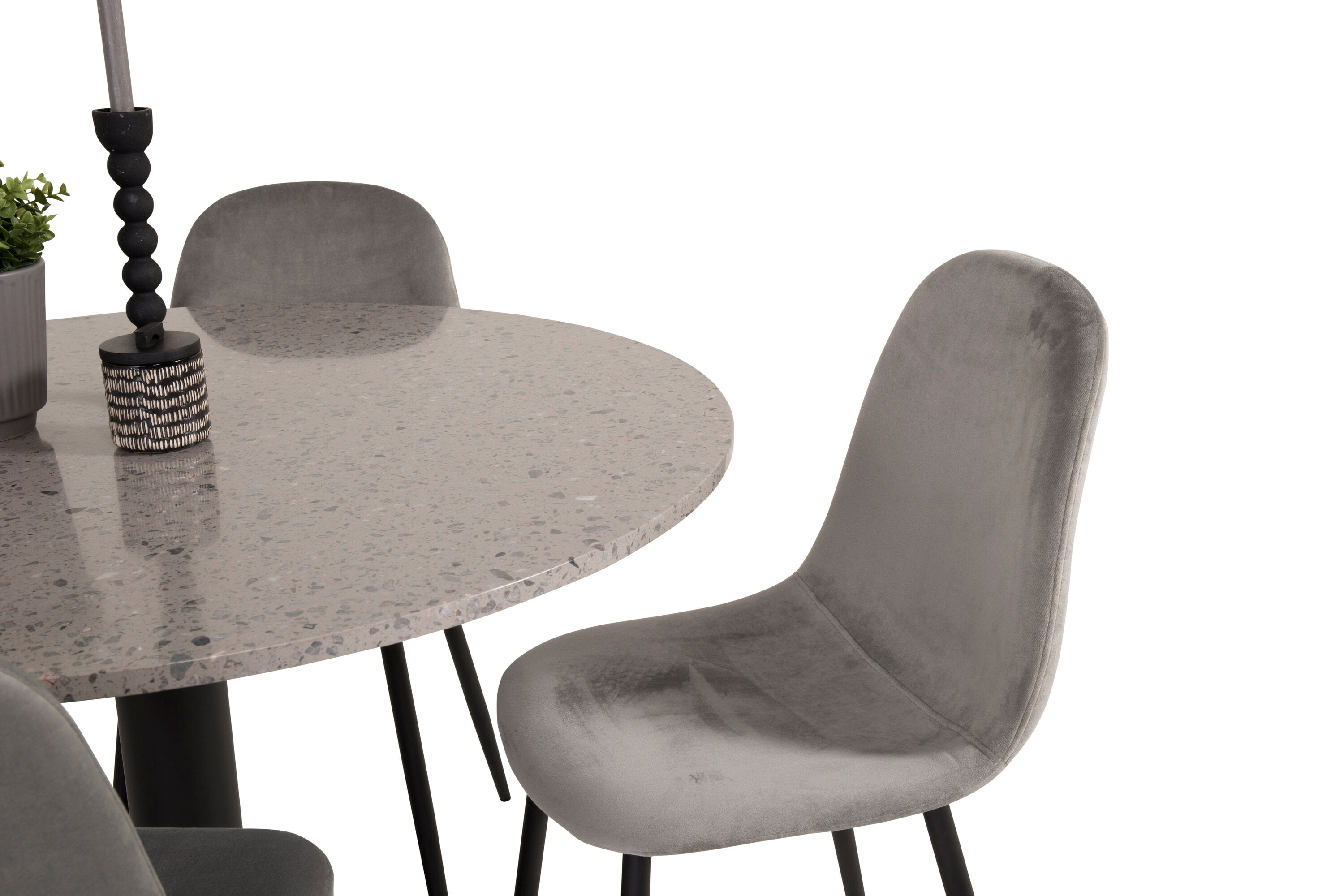 Jídelní stůl Razzia 106 cm - Šedá Terazzo / Jídelní židle Black+Polar - Černé nohy / Světle Šedá Velvet_4