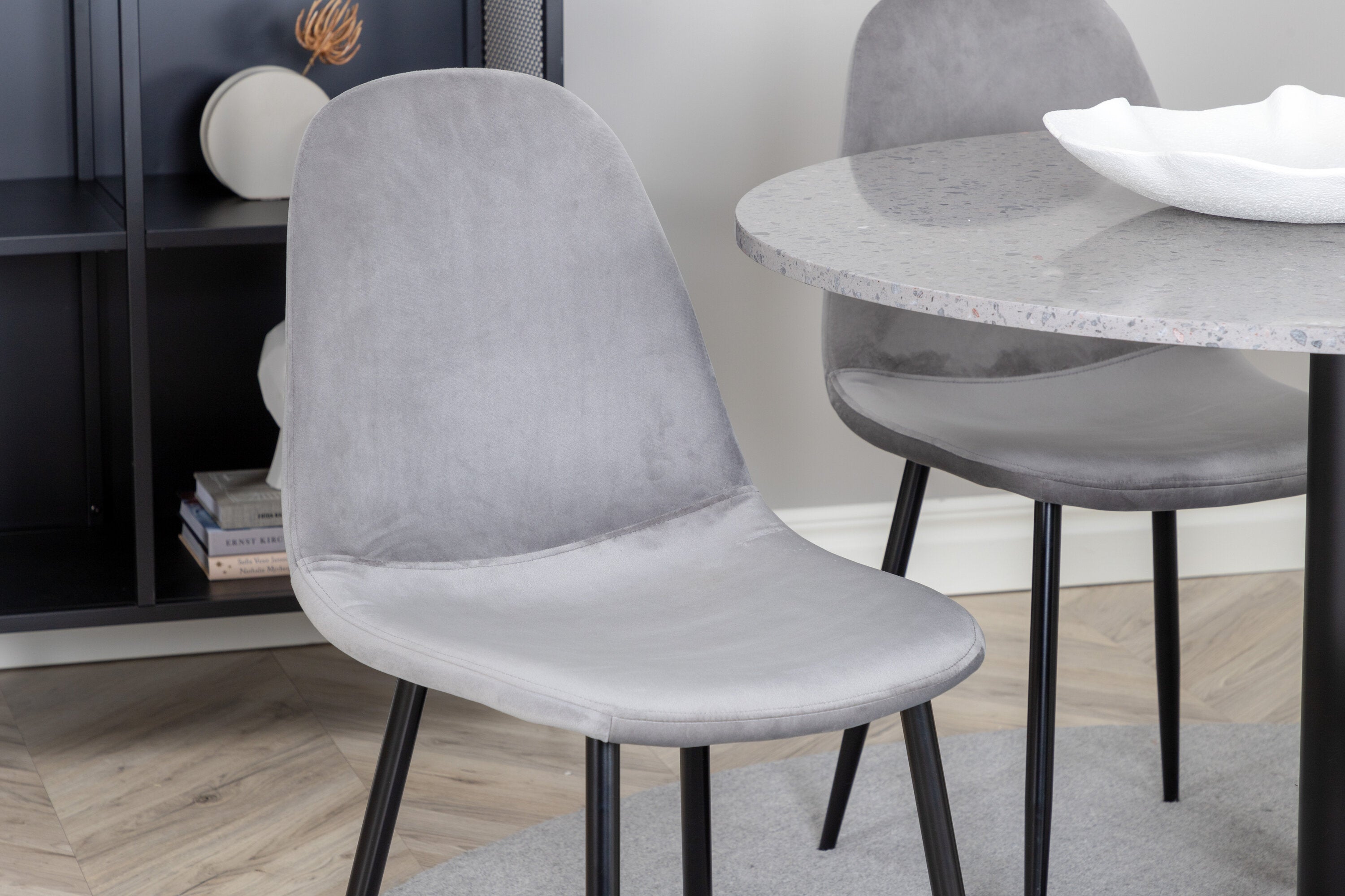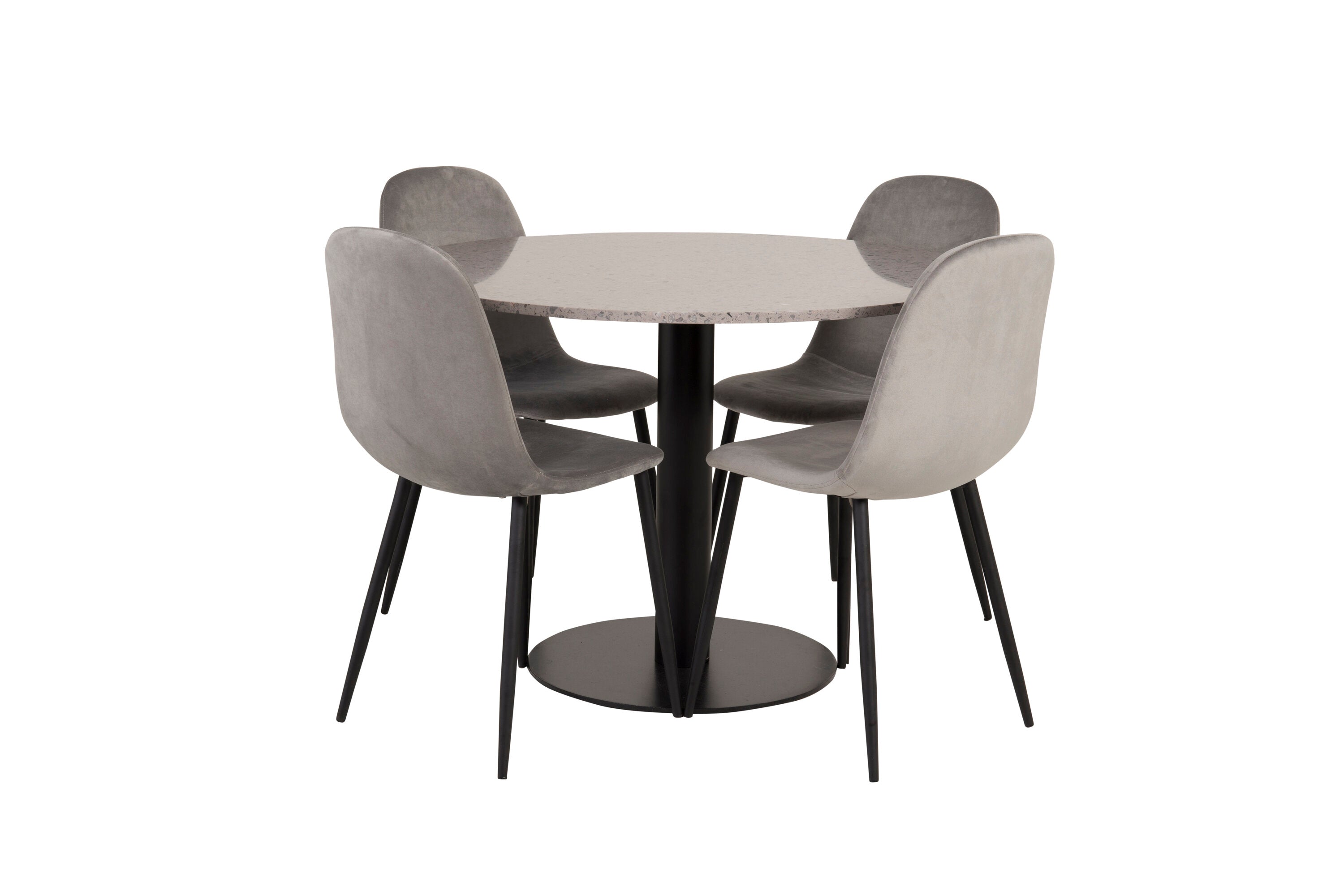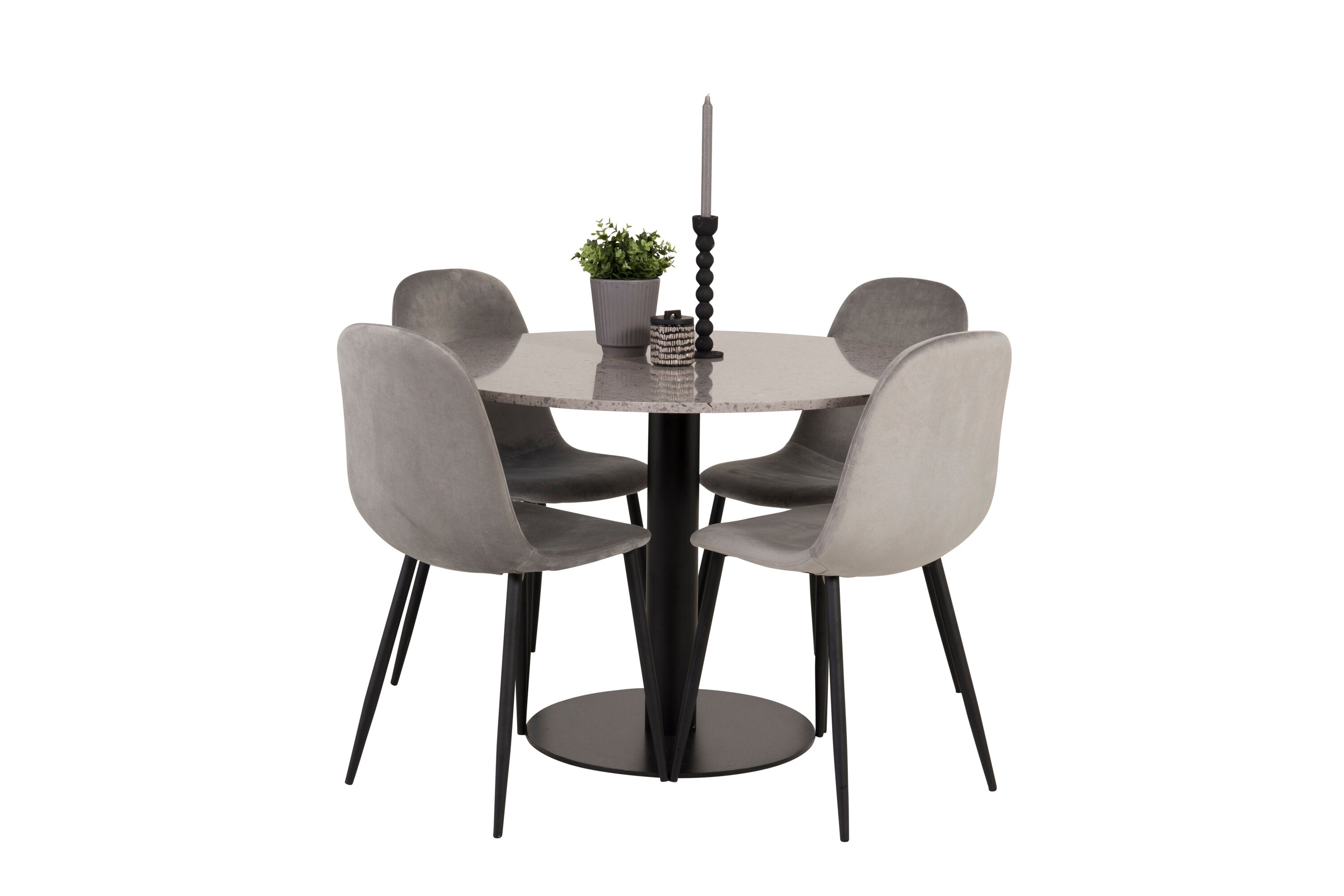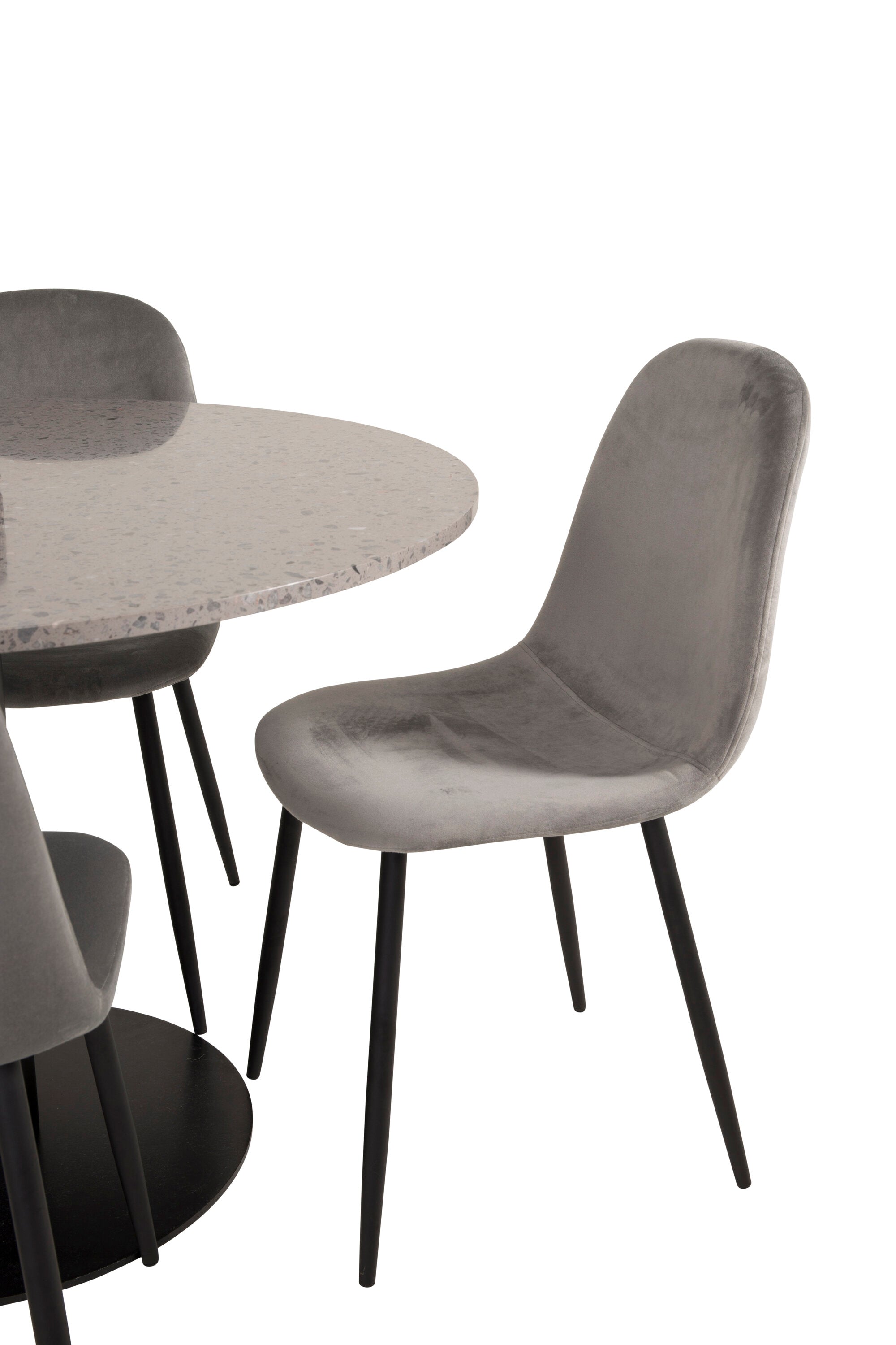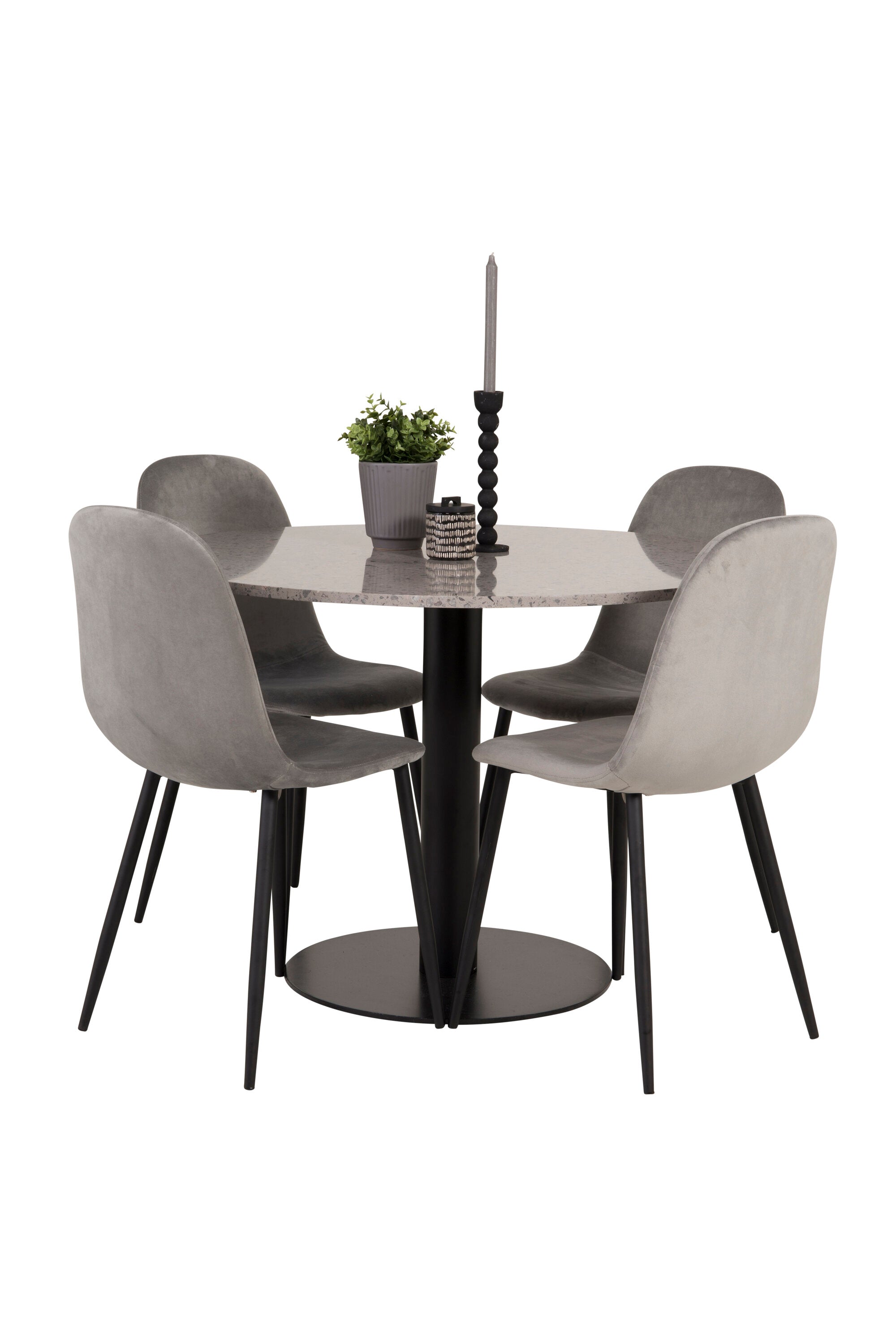 Jídelní stůl Razzia 106 cm - Šedá Terazzo / Jídelní židle Black+Polar - Černé nohy / Světle Šedá Velvet_4