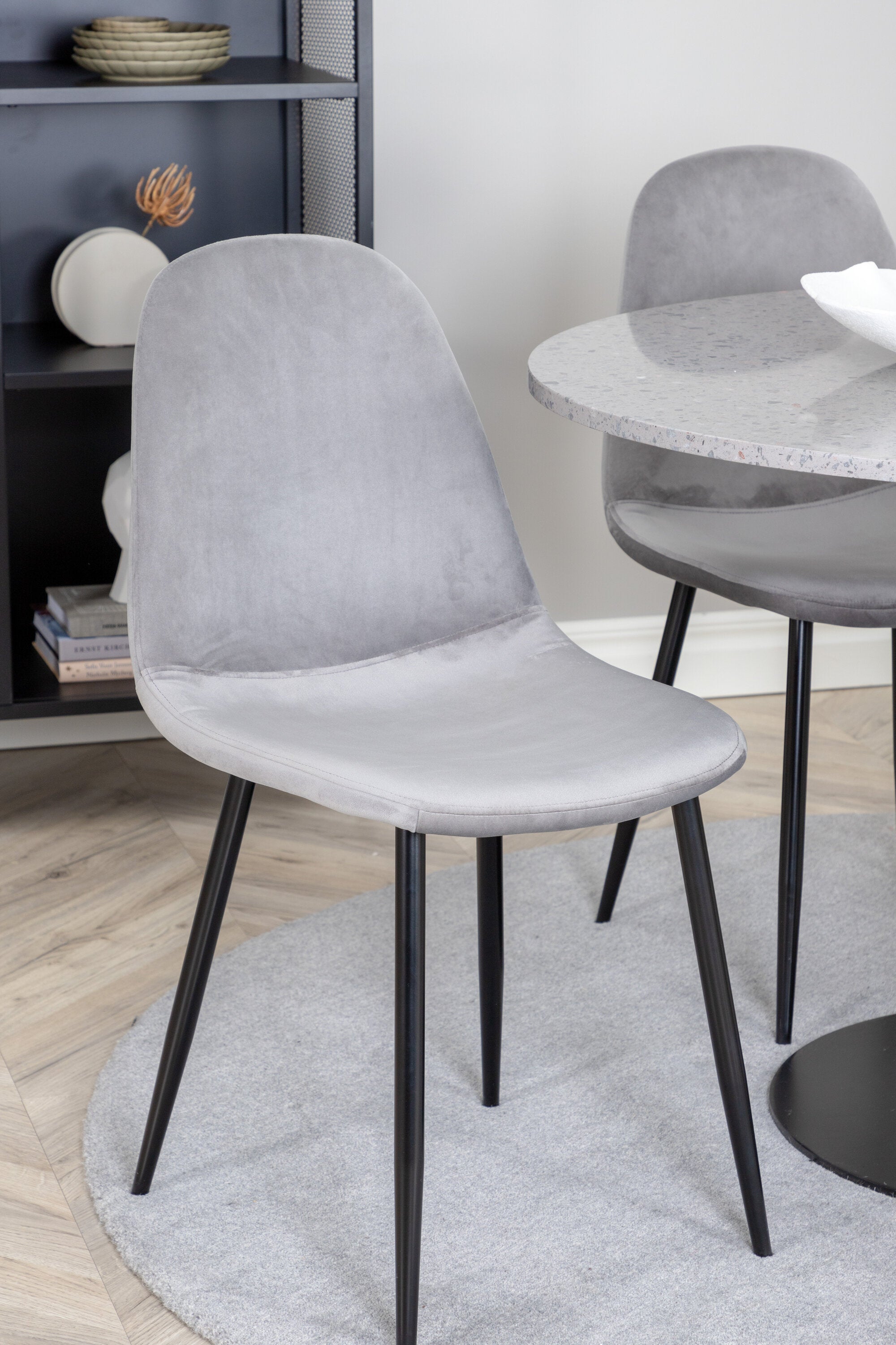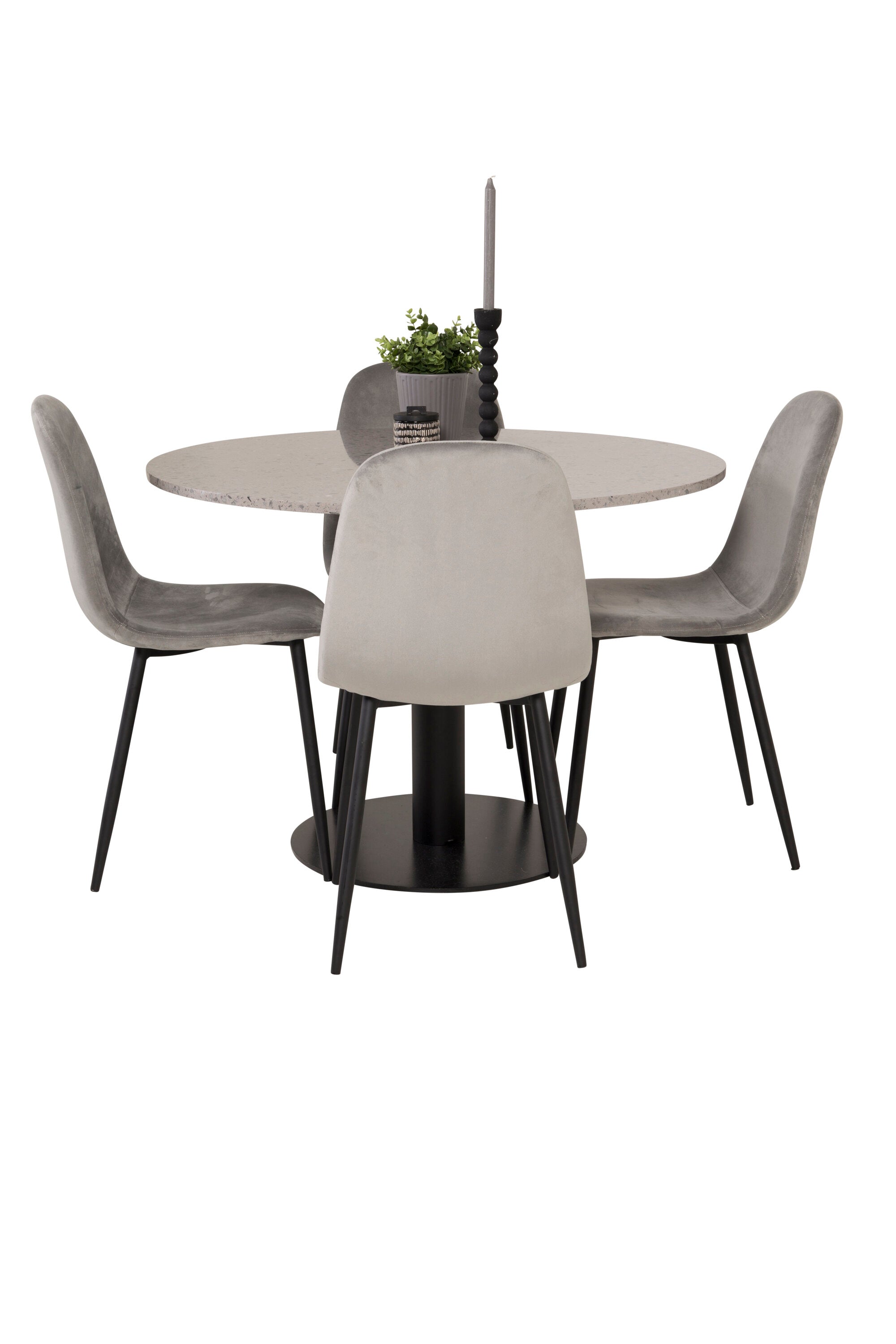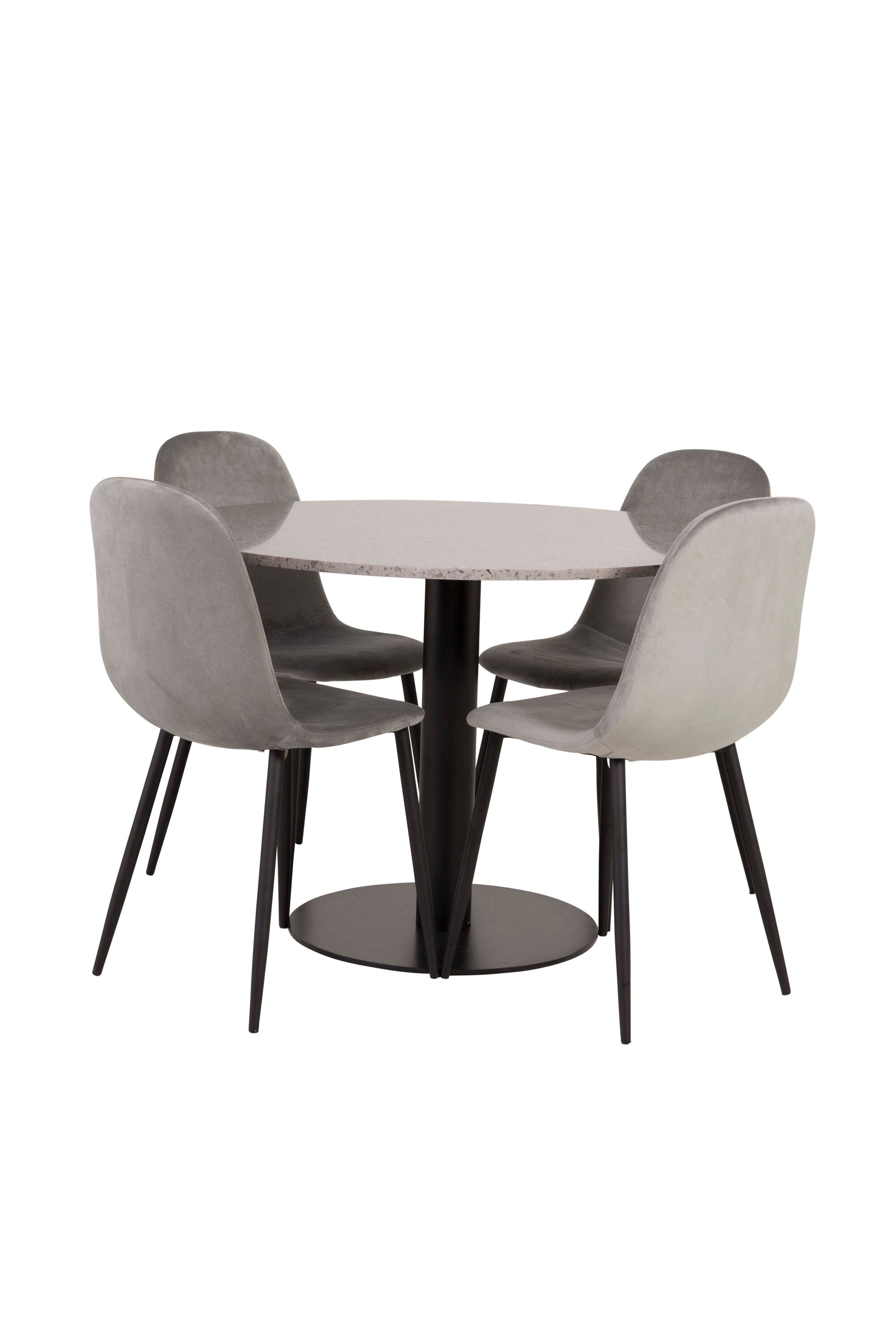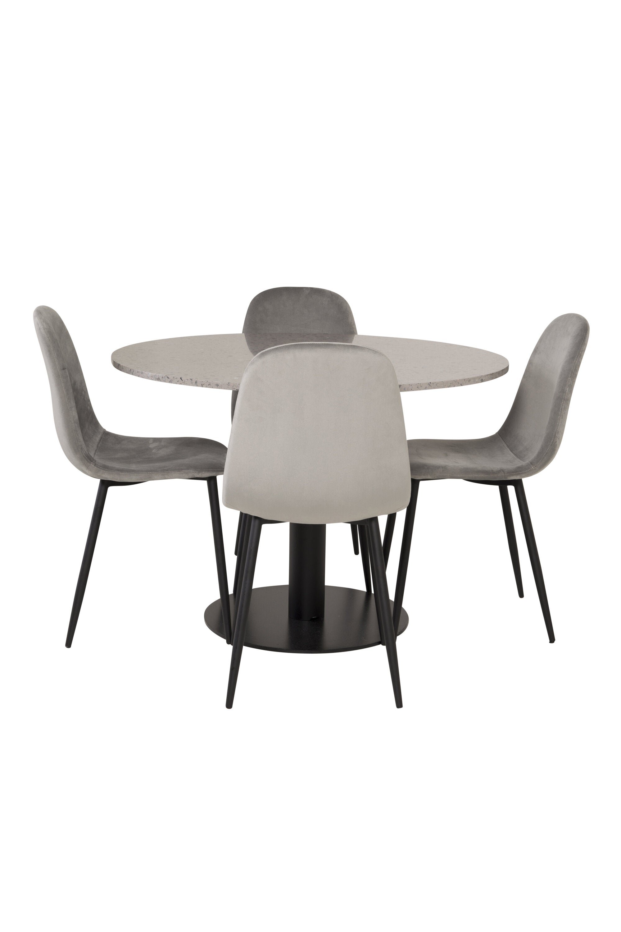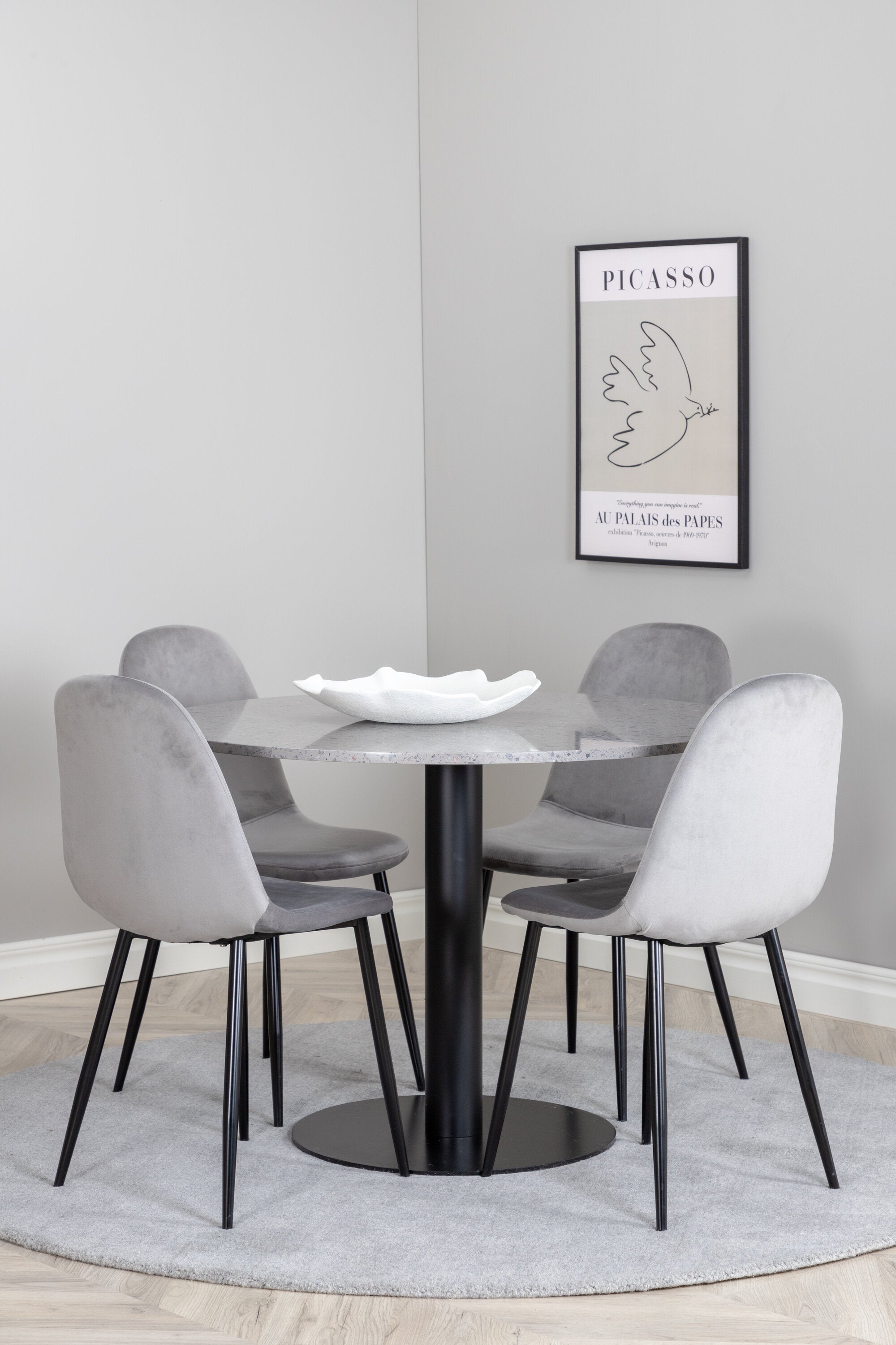 Jídelní stůl Razzia 106 cm - Šedá Terazzo / Jídelní židle Black+Polar - Černé nohy / Světle Šedá Velvet_4