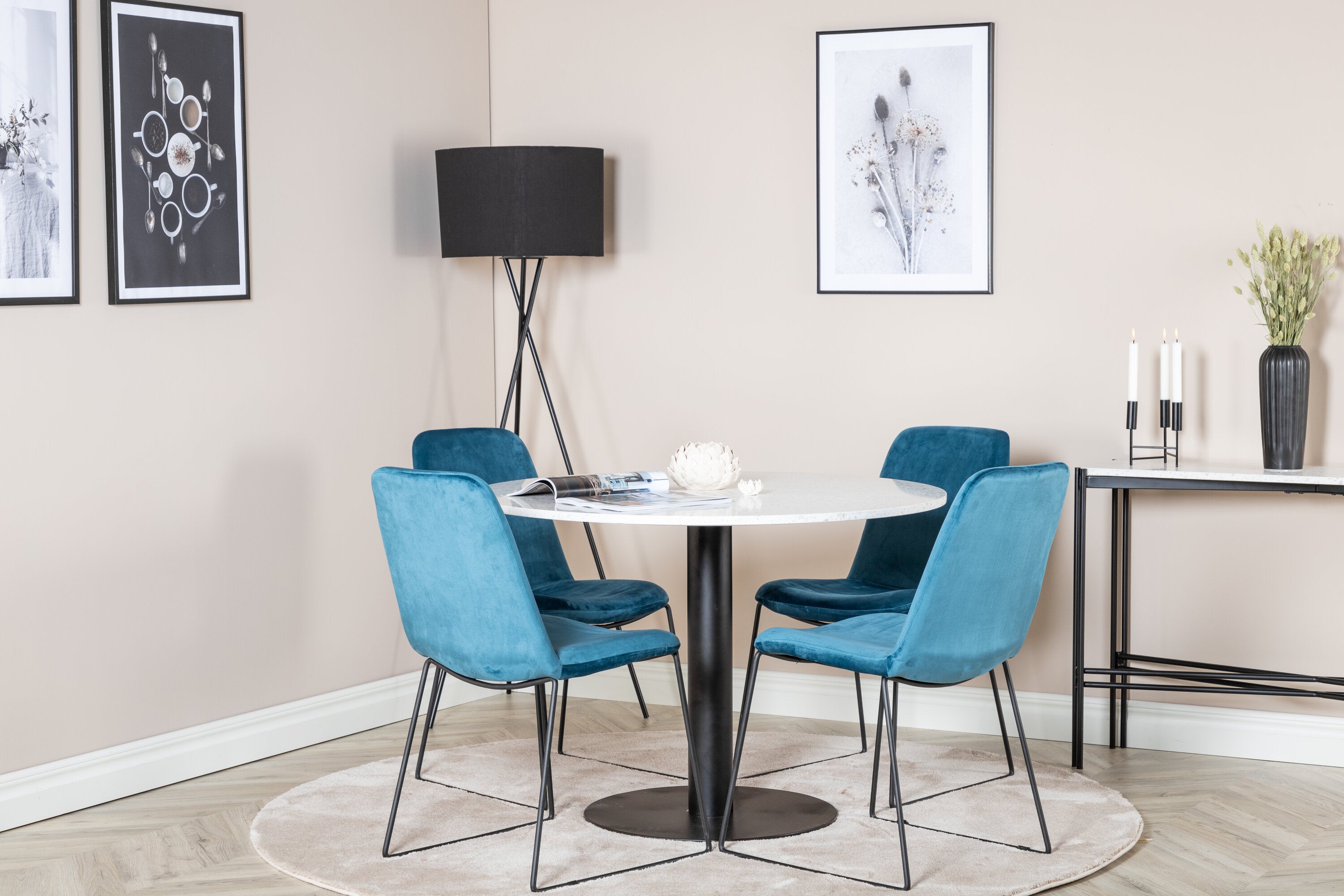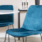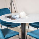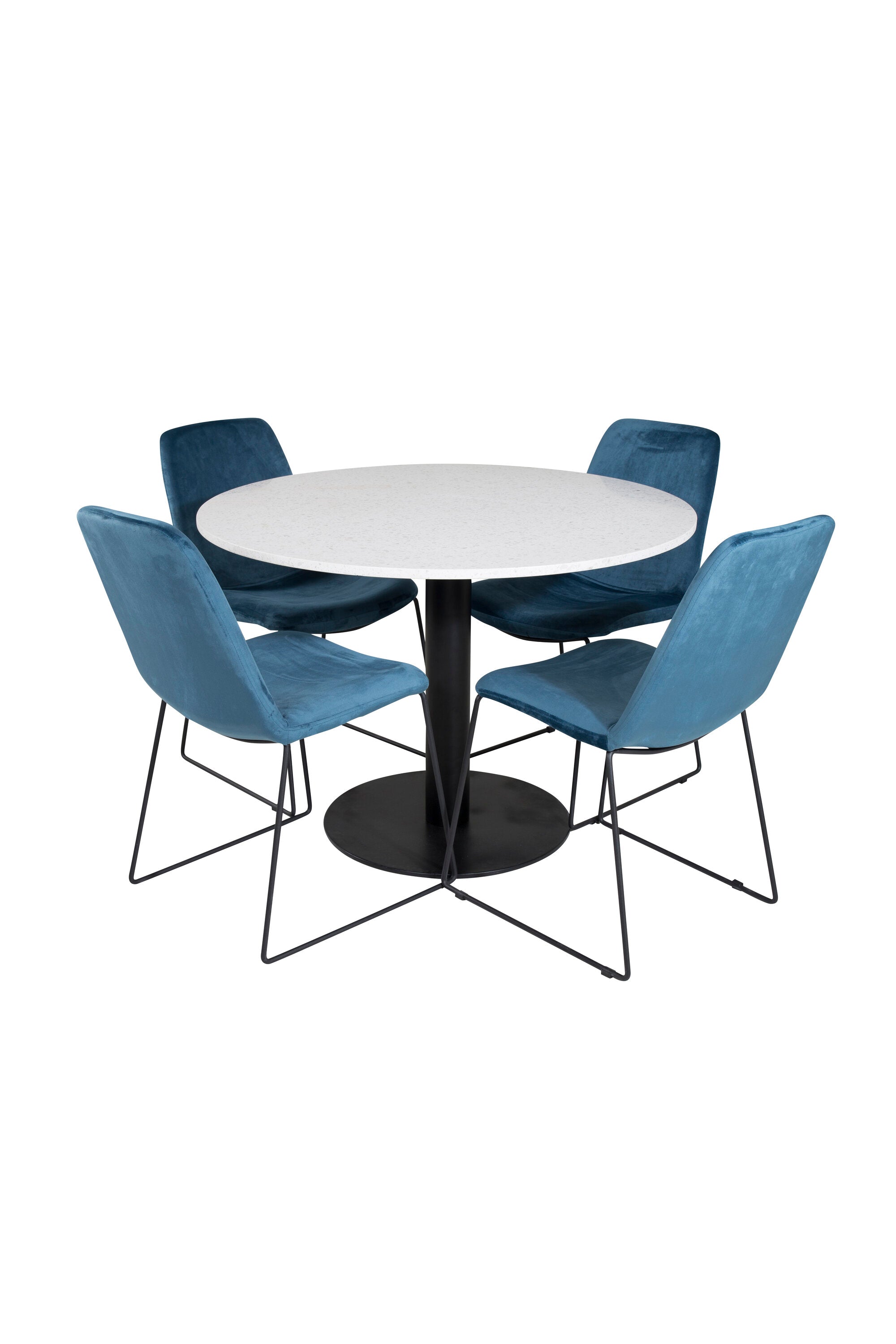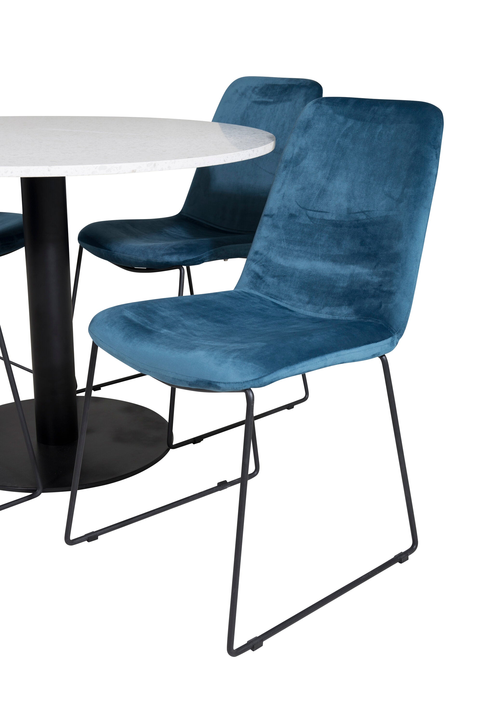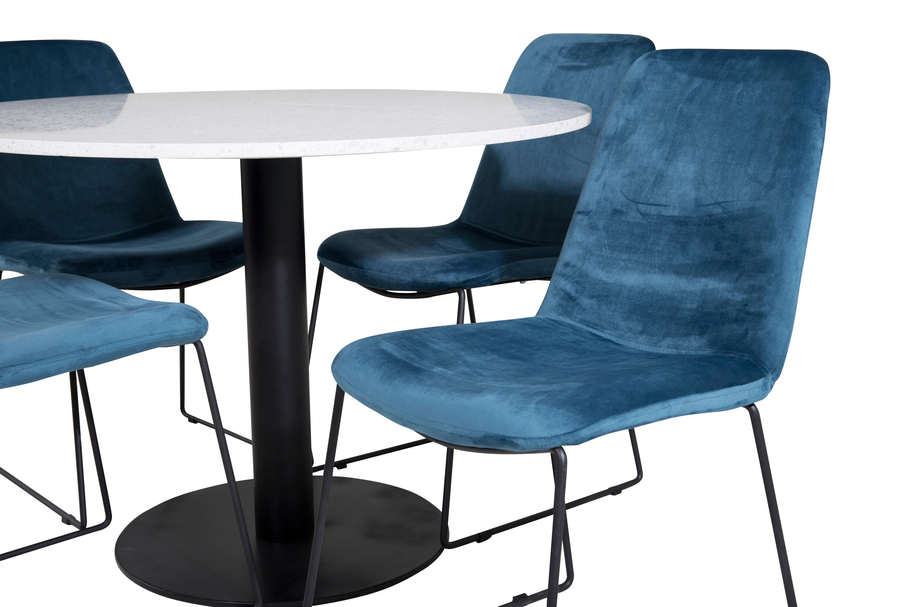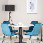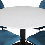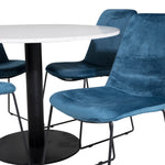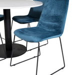 Páni! Naše trendy a krásné jídelní židle Muce in Blue velvet jsou zde sladěny s naším kulatým jídelním stolem Razzia. Kombinace je stvořena pro ty, kteří chtějí skupinu potravin, po které touží!
