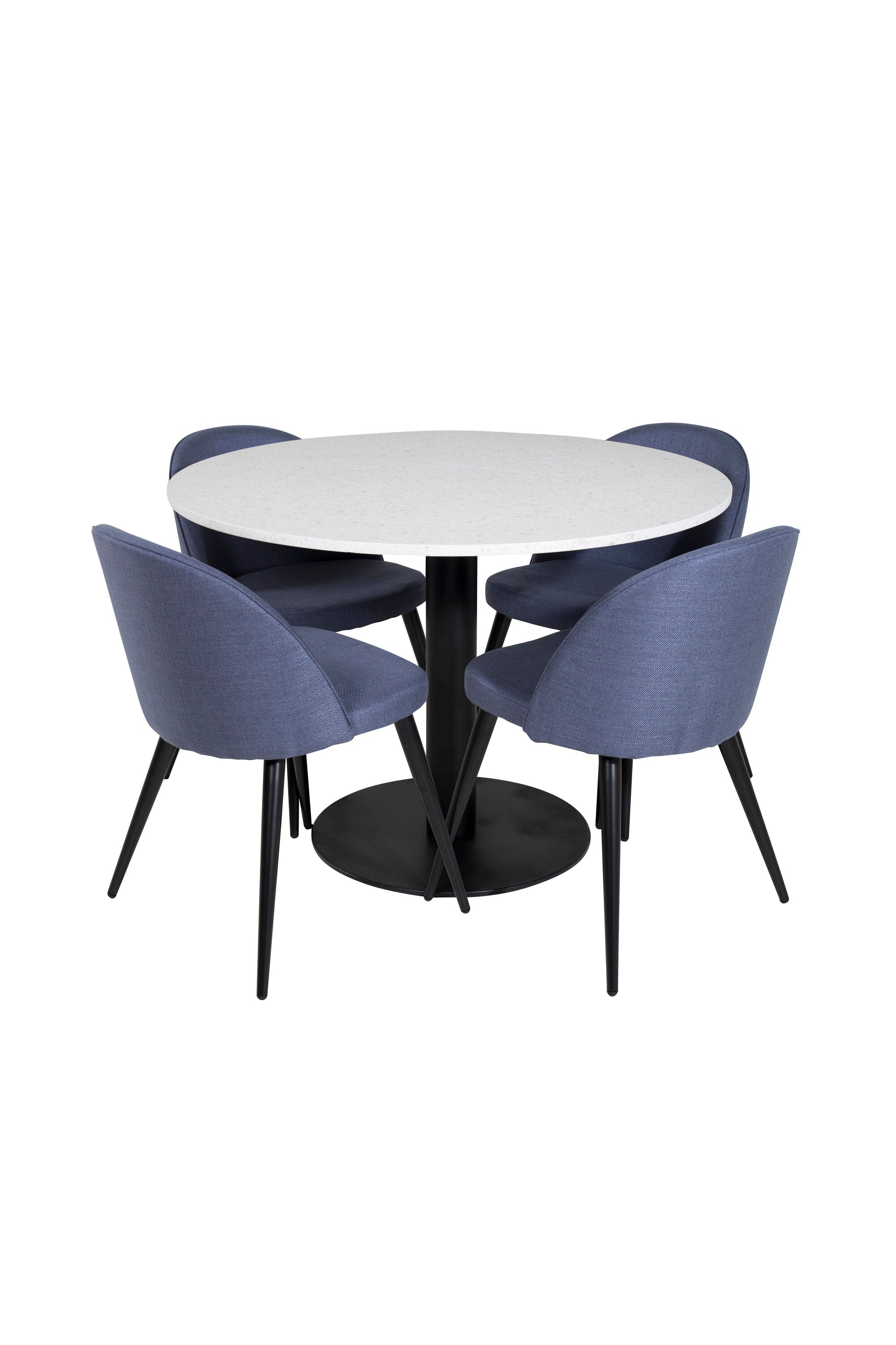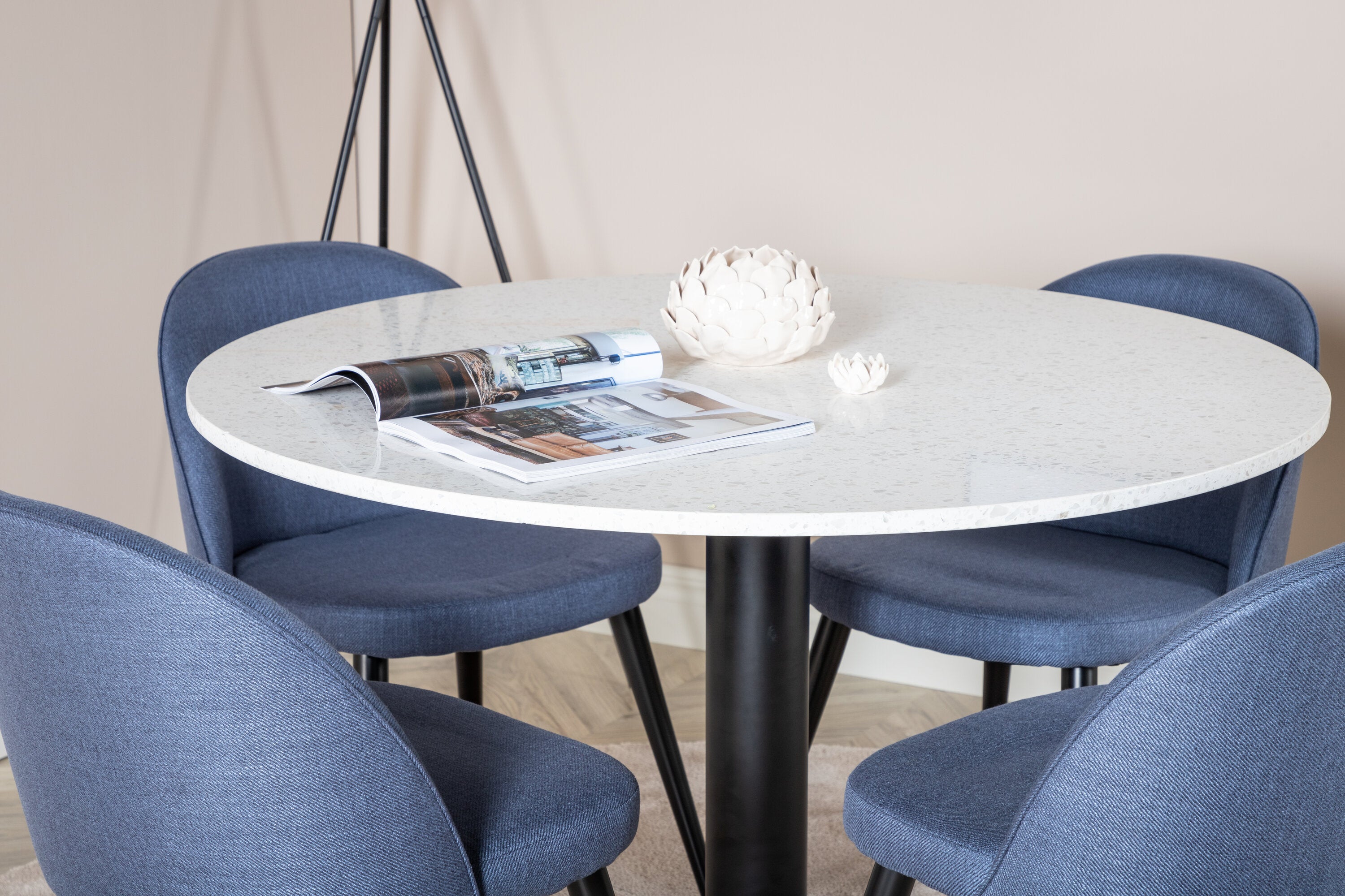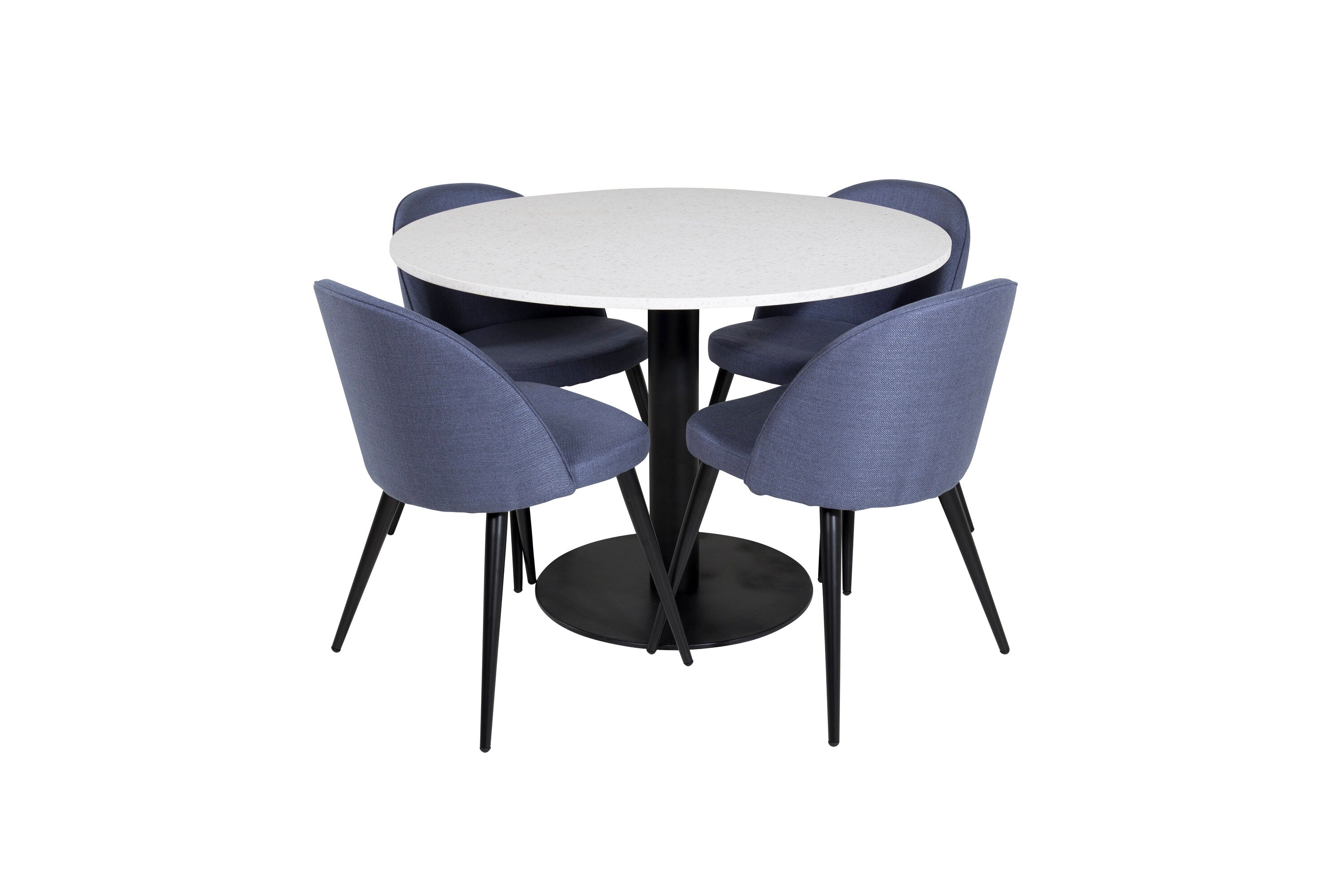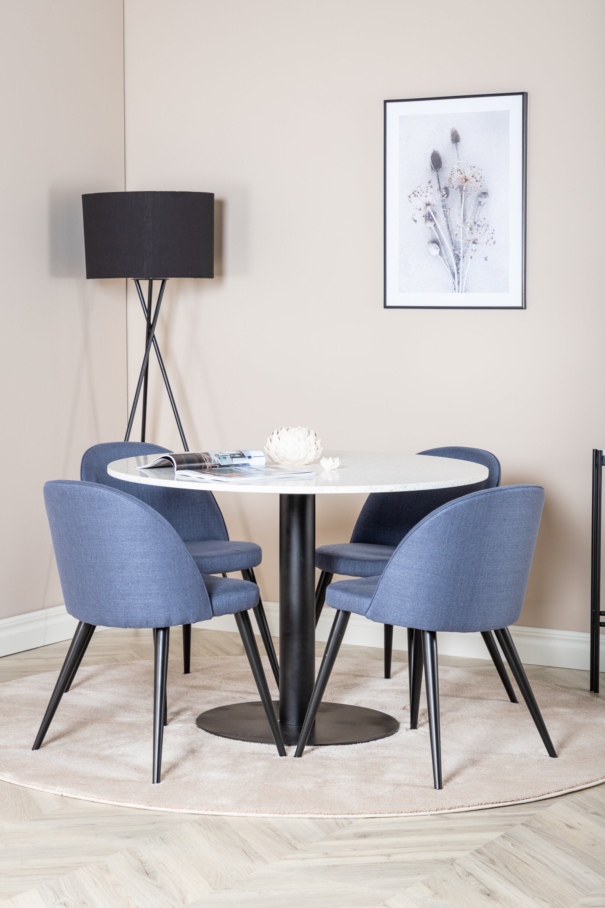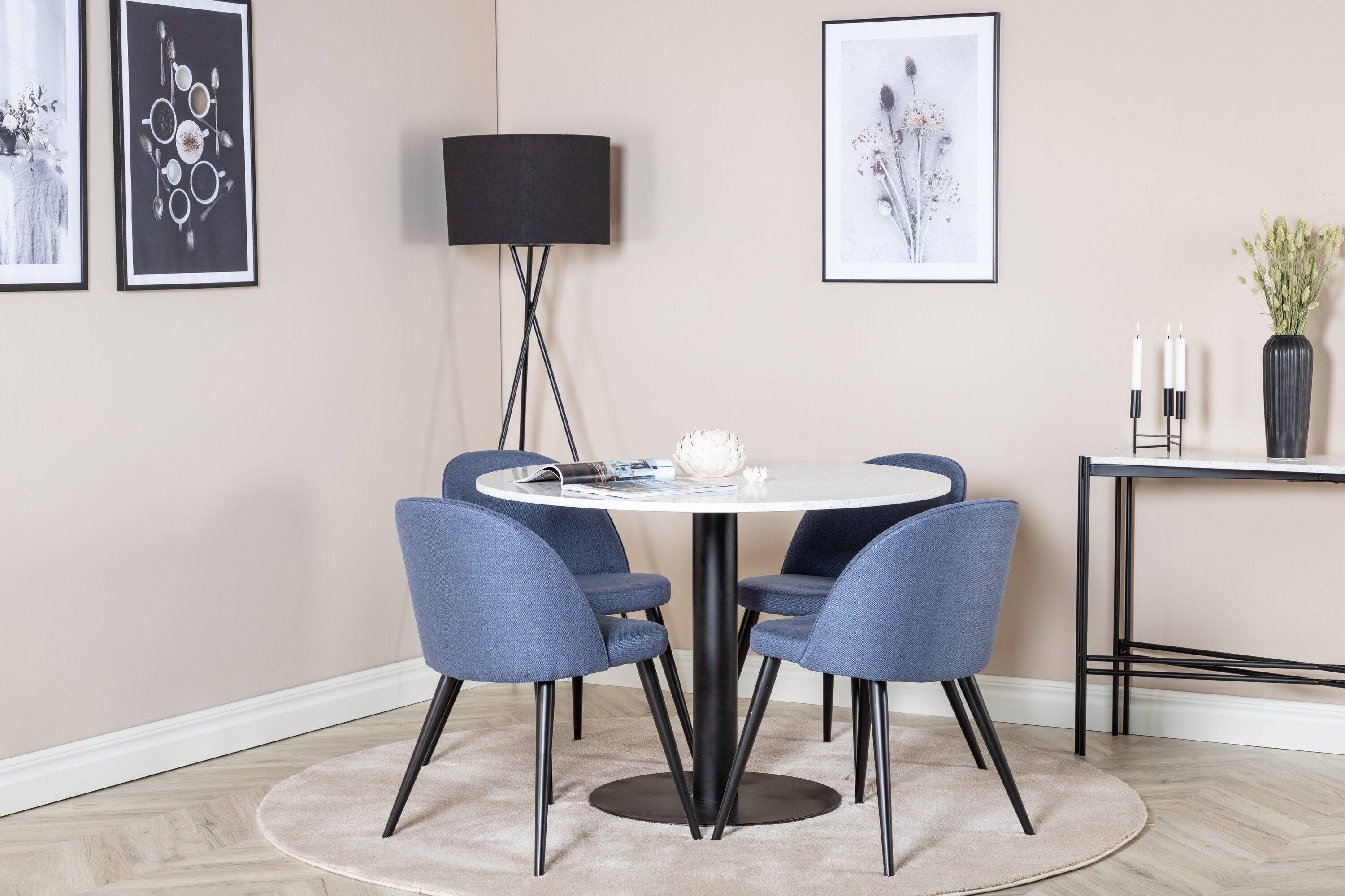 Náš kulatý jídelní stůl raid spolu se stylovými jídelními židlemi ze série Velvet. Nudná a stylová skupina jídel, která se hodí do většiny domácností!