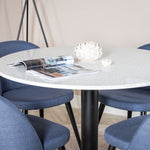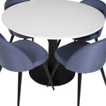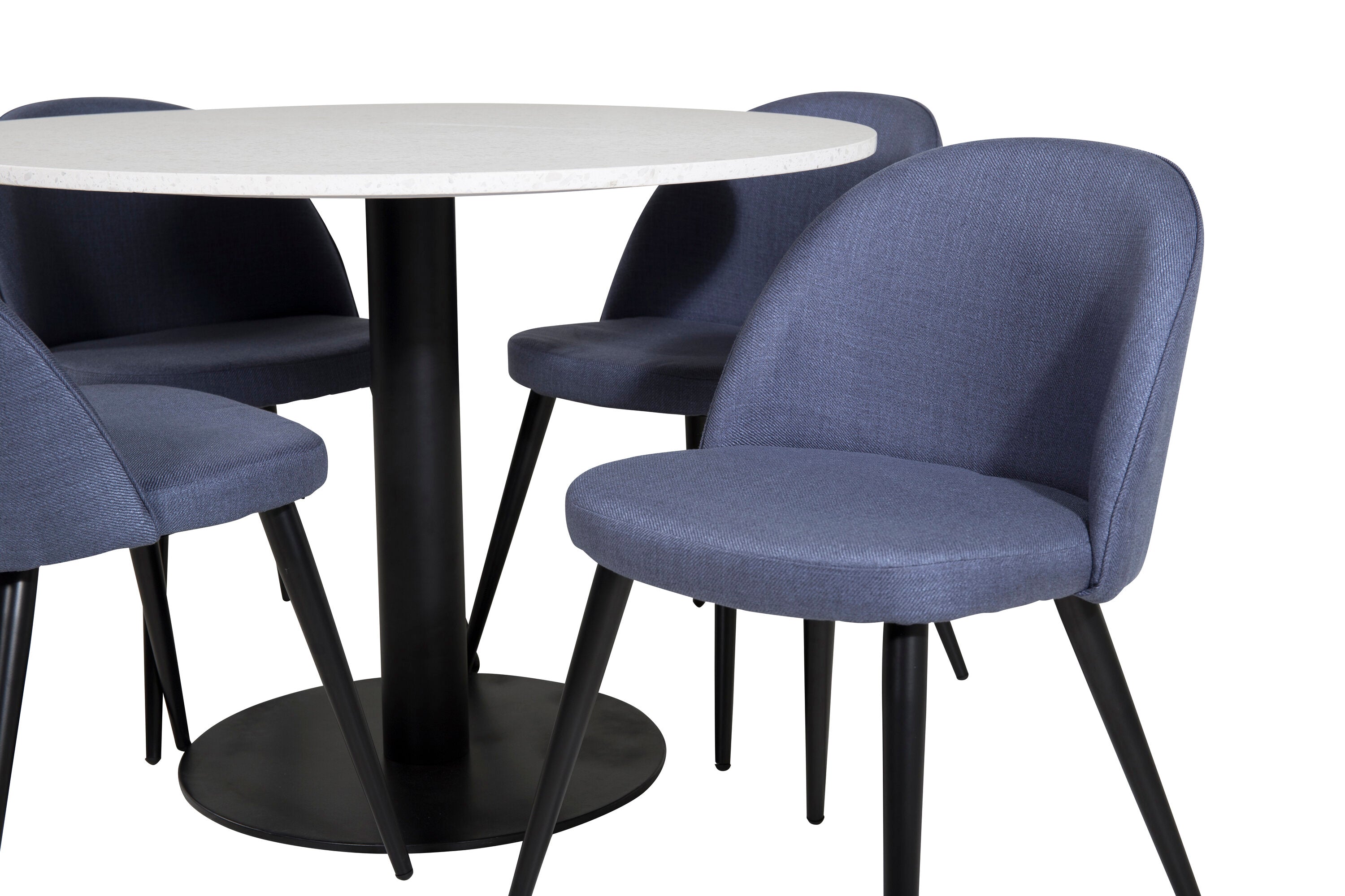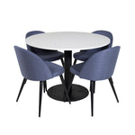 Jídelní stůl Razzia ø106cm - Bílá / Černá + Sametová jídelní židle - Černé nohy - B
