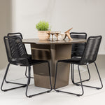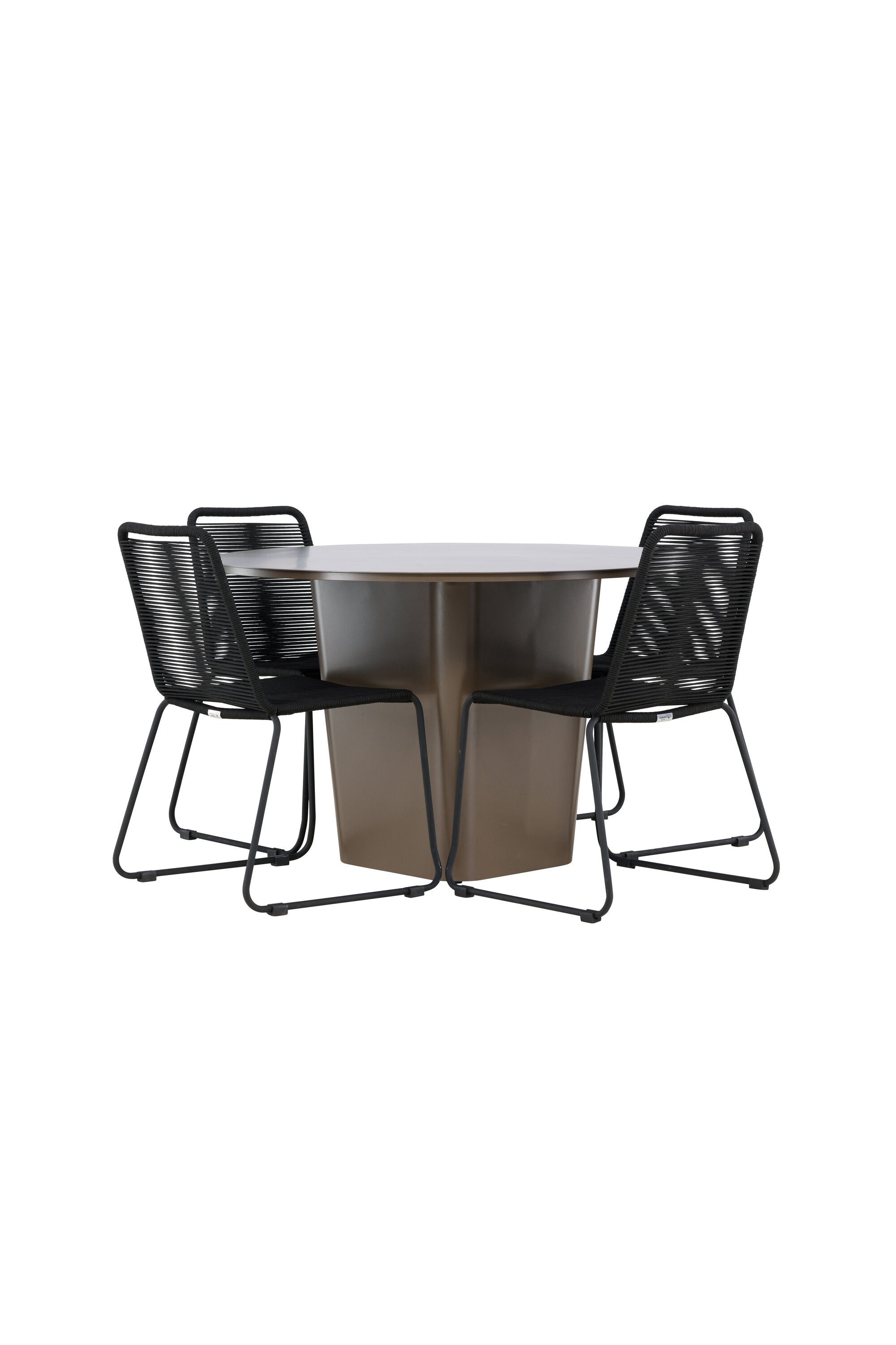 Židle Lindos jsou perfektním doplňkem ke stolu Santa. Černá barva židlí je vyrobena z hliníku pro snadnou údržbu a dlouhou životnost a poskytuje moderní kontrast k hnědému tónu stolu.