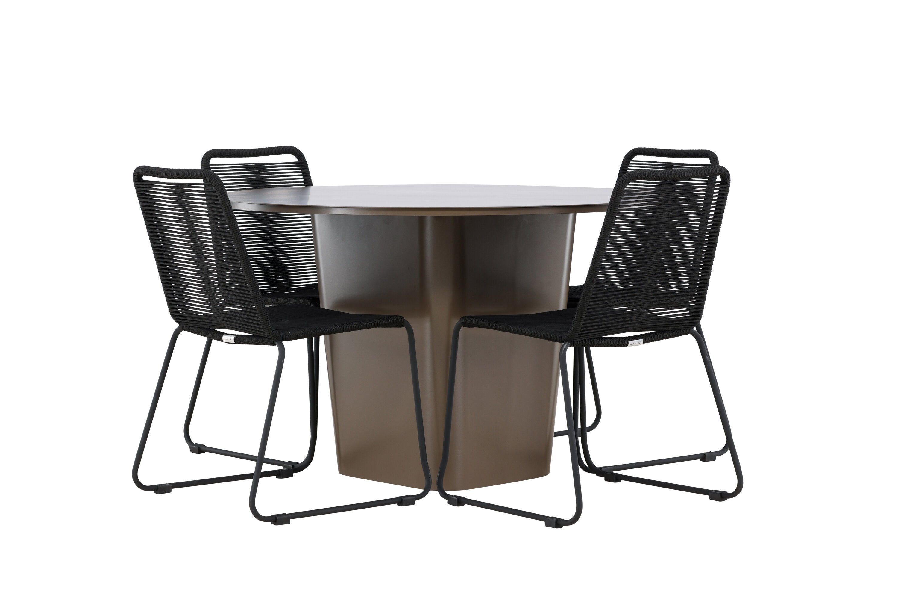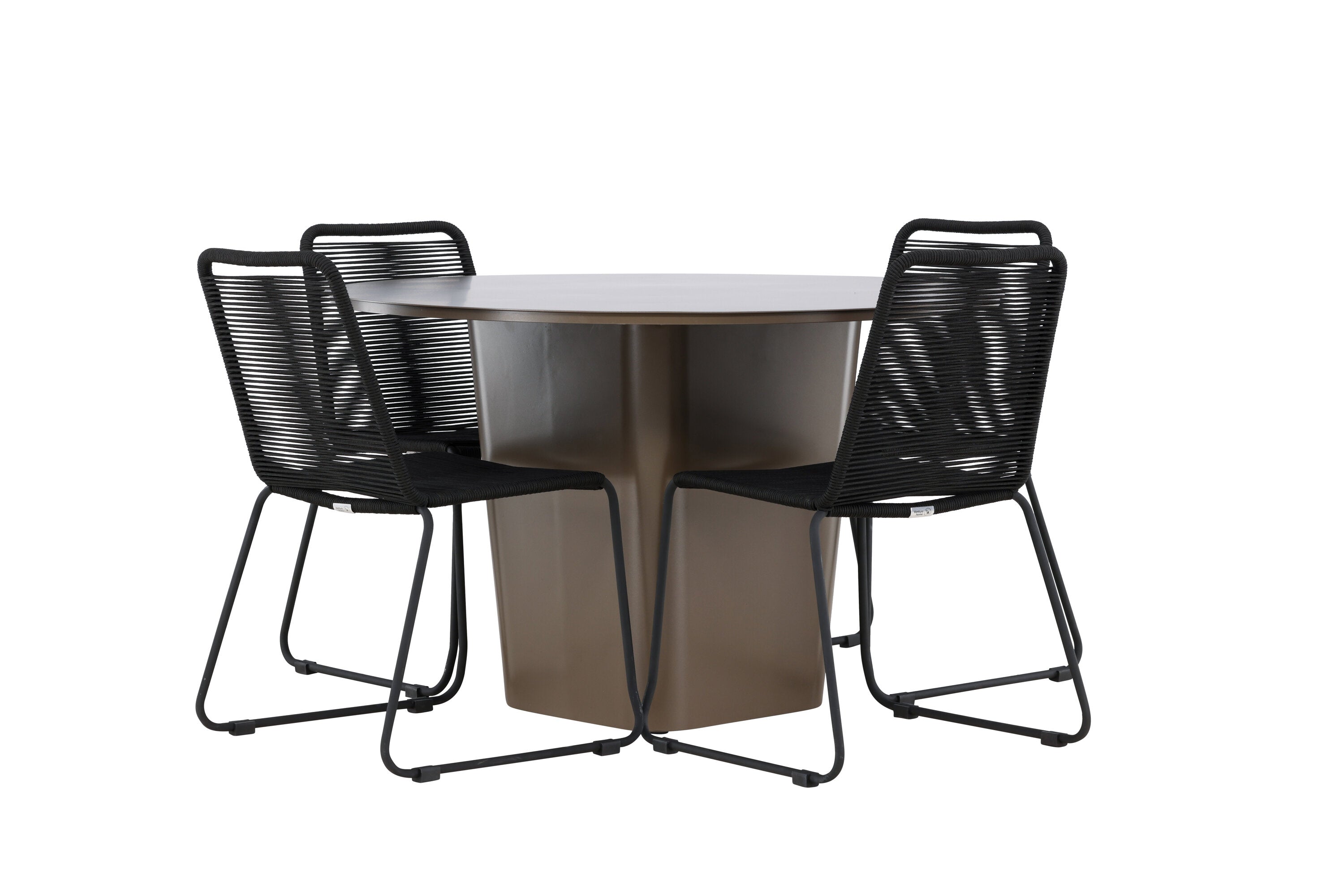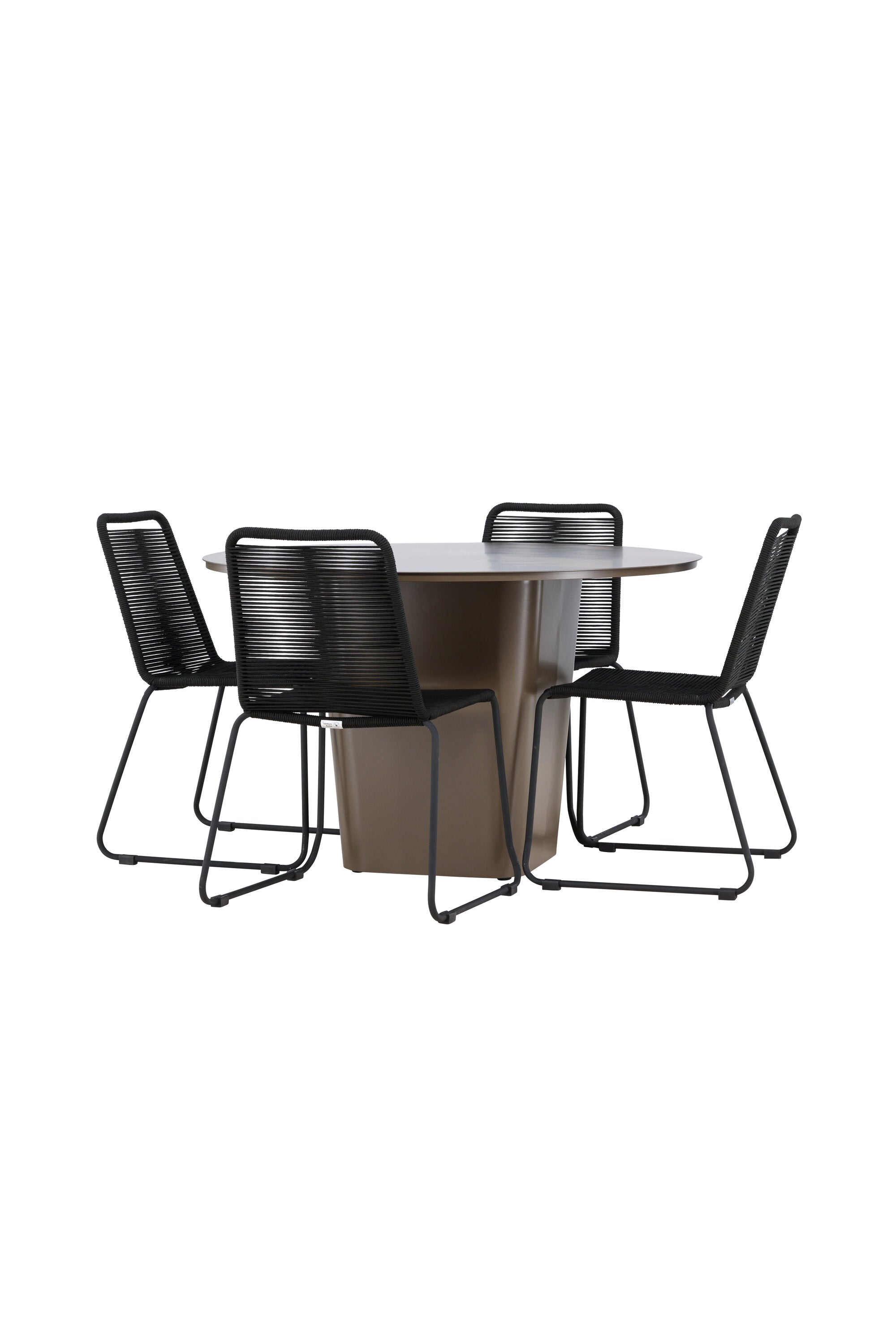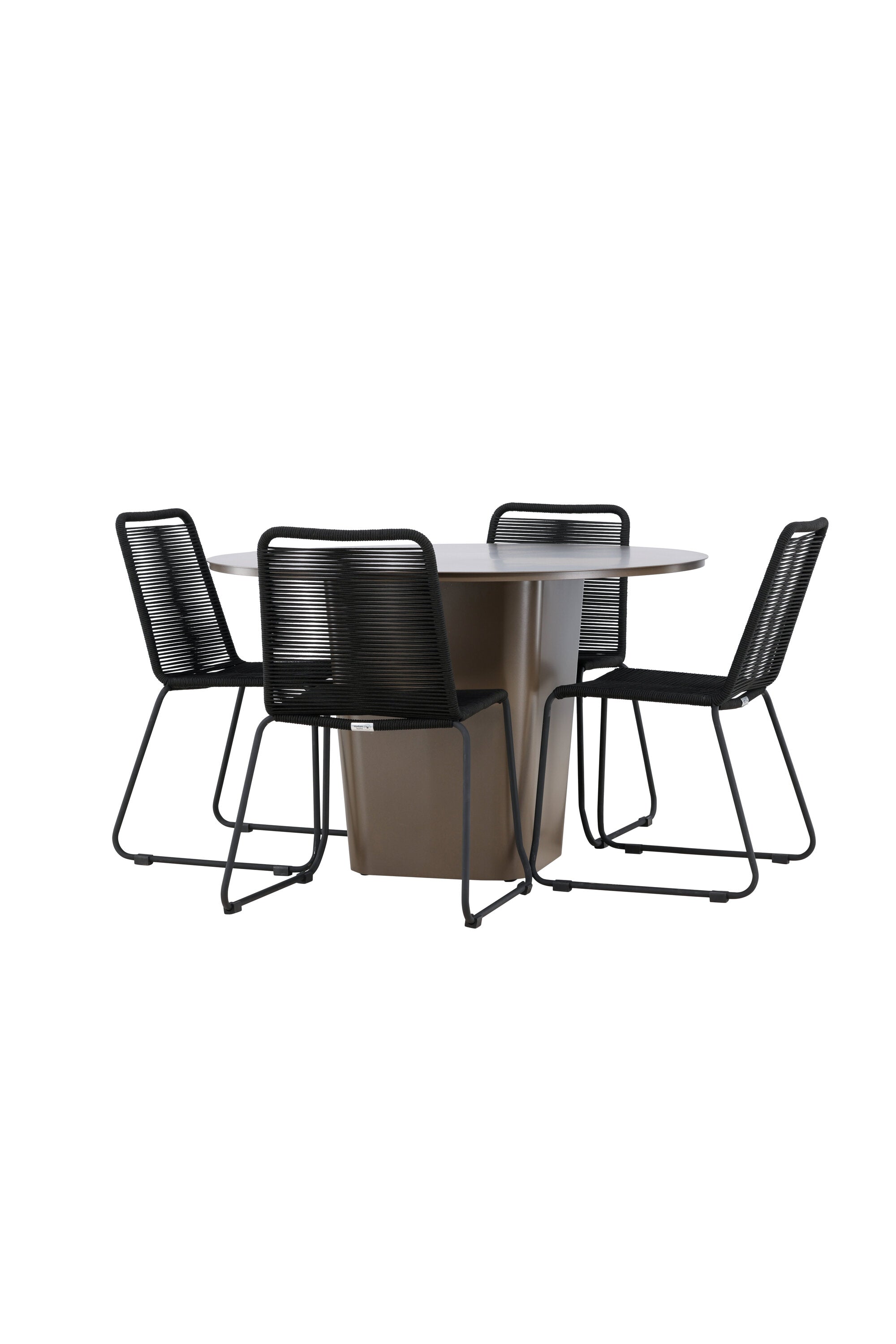 Tato jídelní souprava se čtyřmi židlemi Lindos, které jsou součástí dodávky, nabízí pohodlné a stylové sezení pro malé i velké venkovní akce.