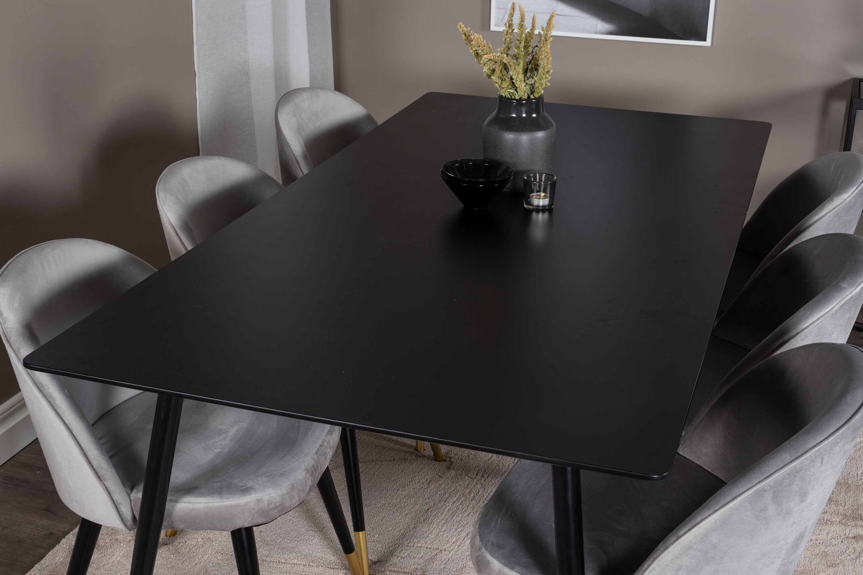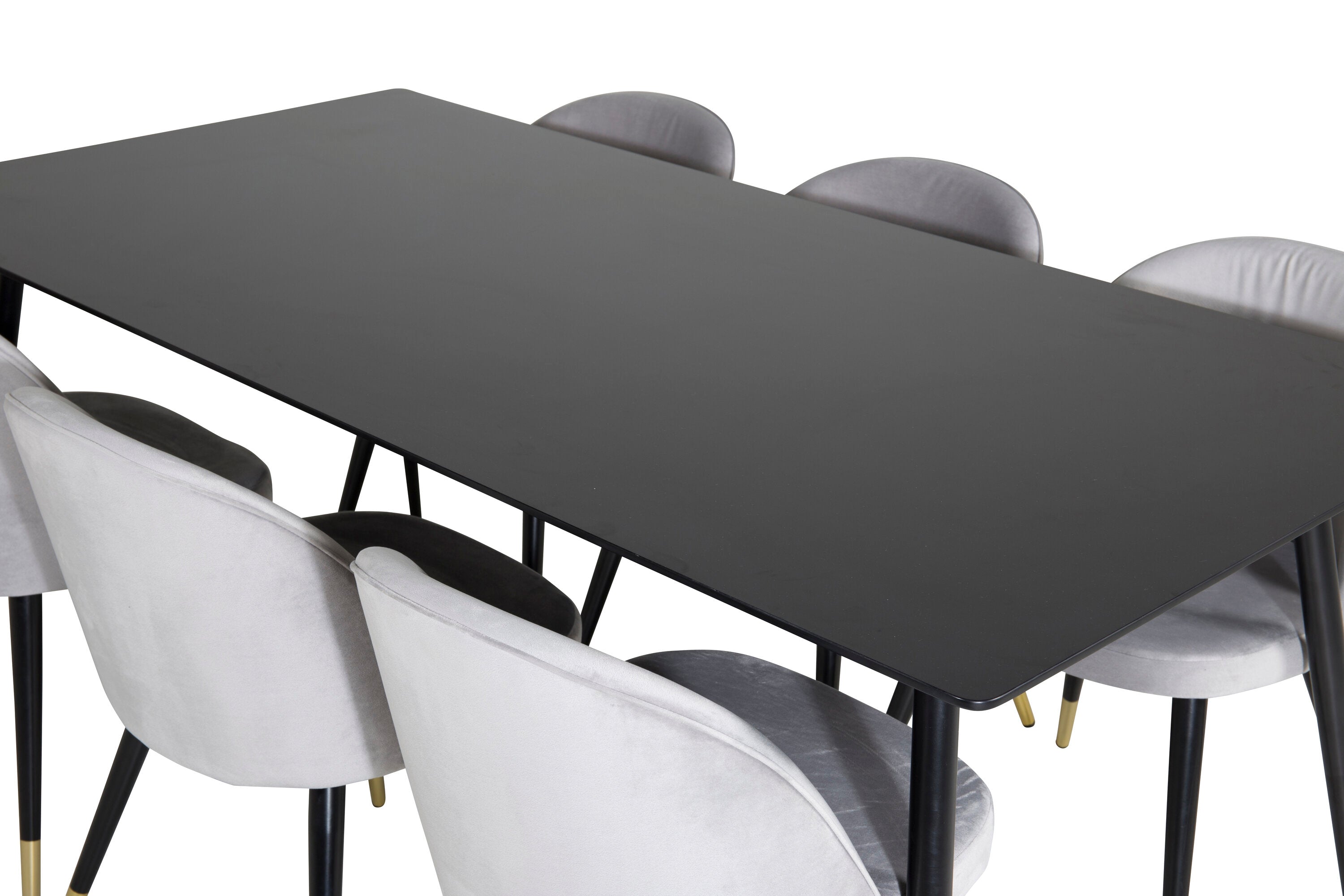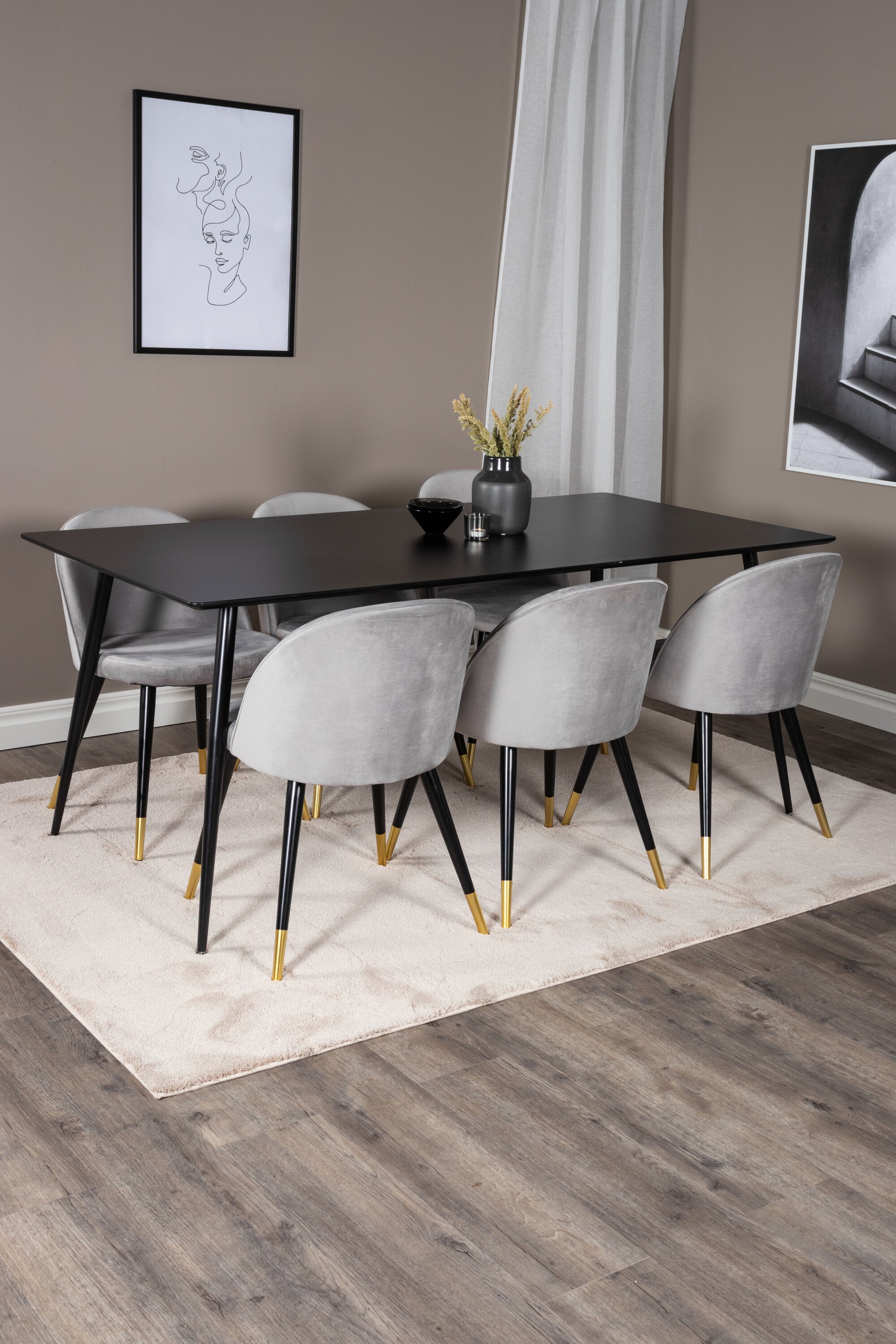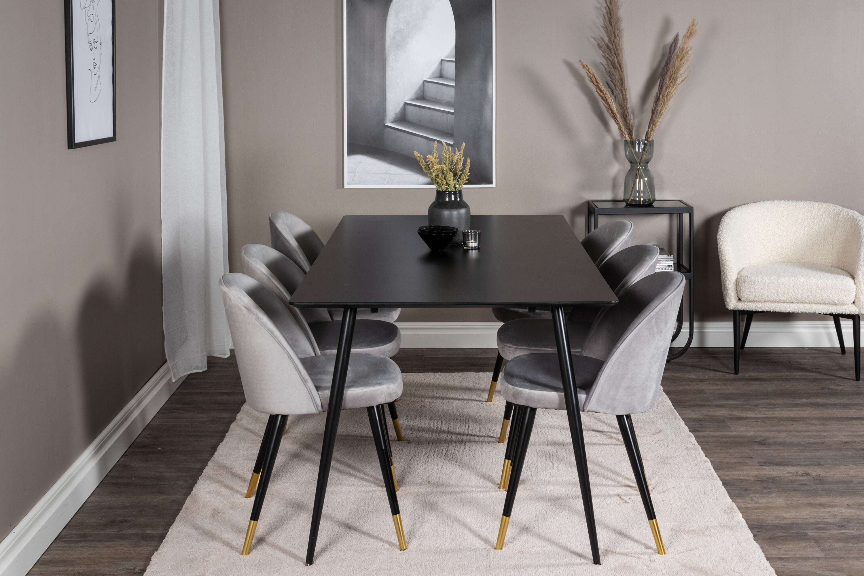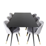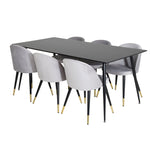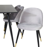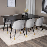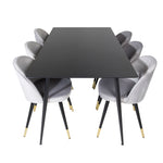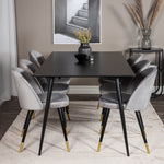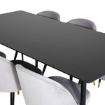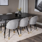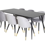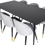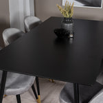 Jídelní stůl Silar - 180 cm - černý melamin / černé nohy + sametová jídelní židle mosaz - světle šedá / černá_6