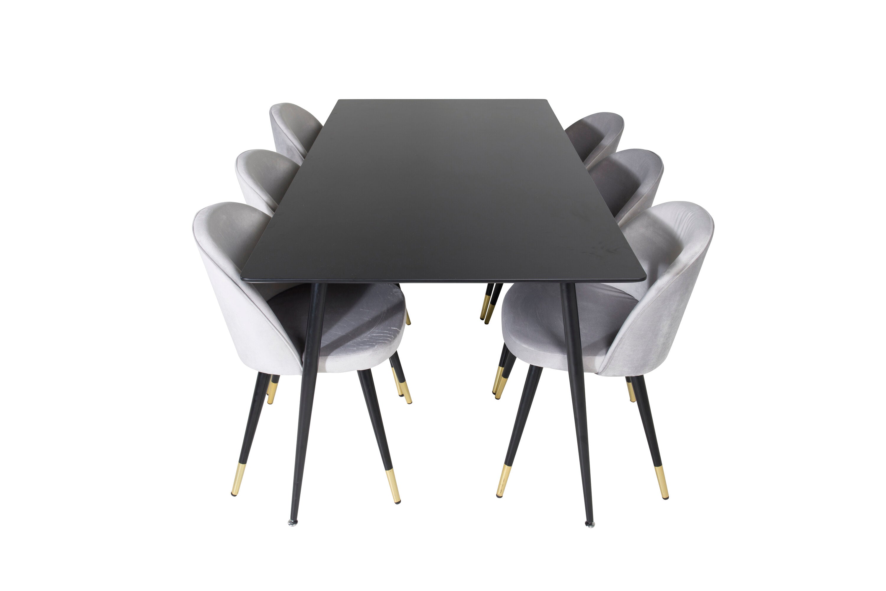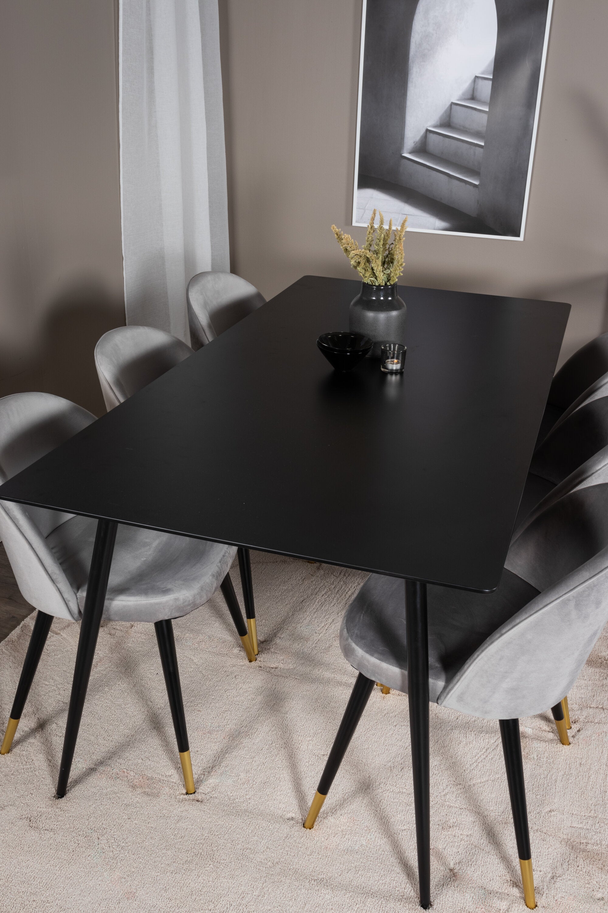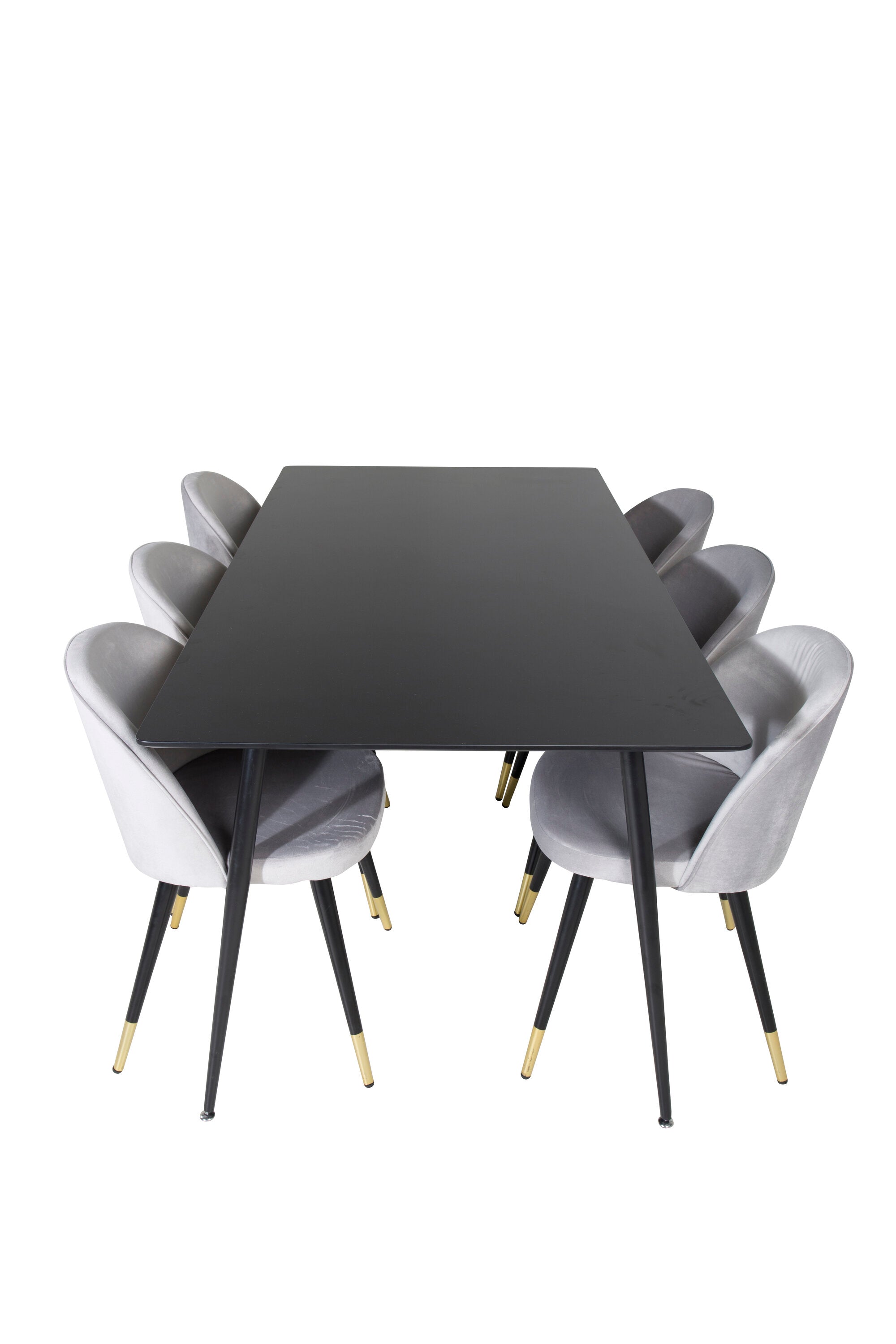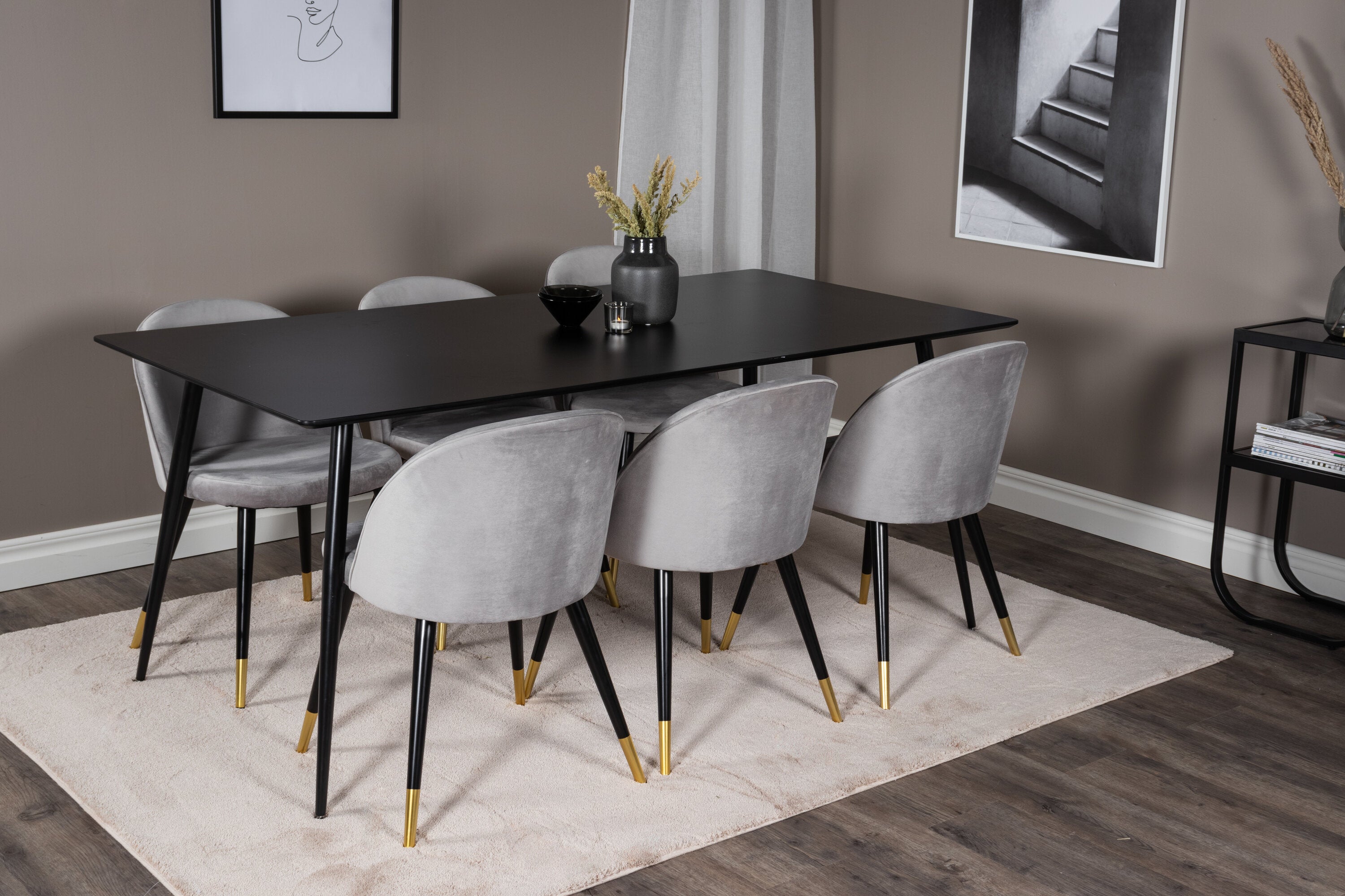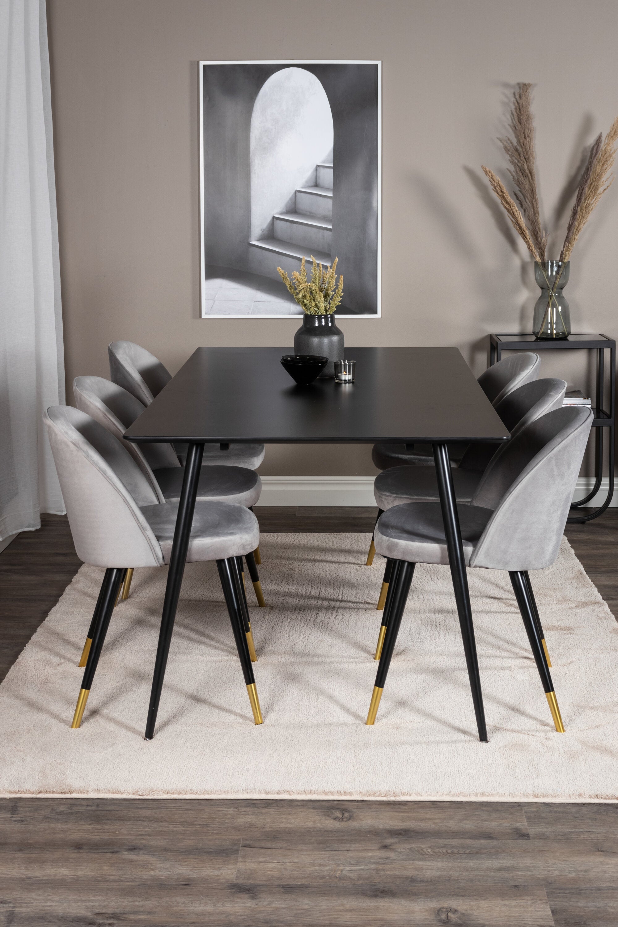 Jídelní stůl Silar - 180 cm - černý melamin / černé nohy + sametová jídelní židle mosaz - světle šedá / černá_6