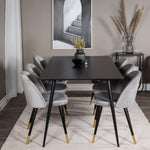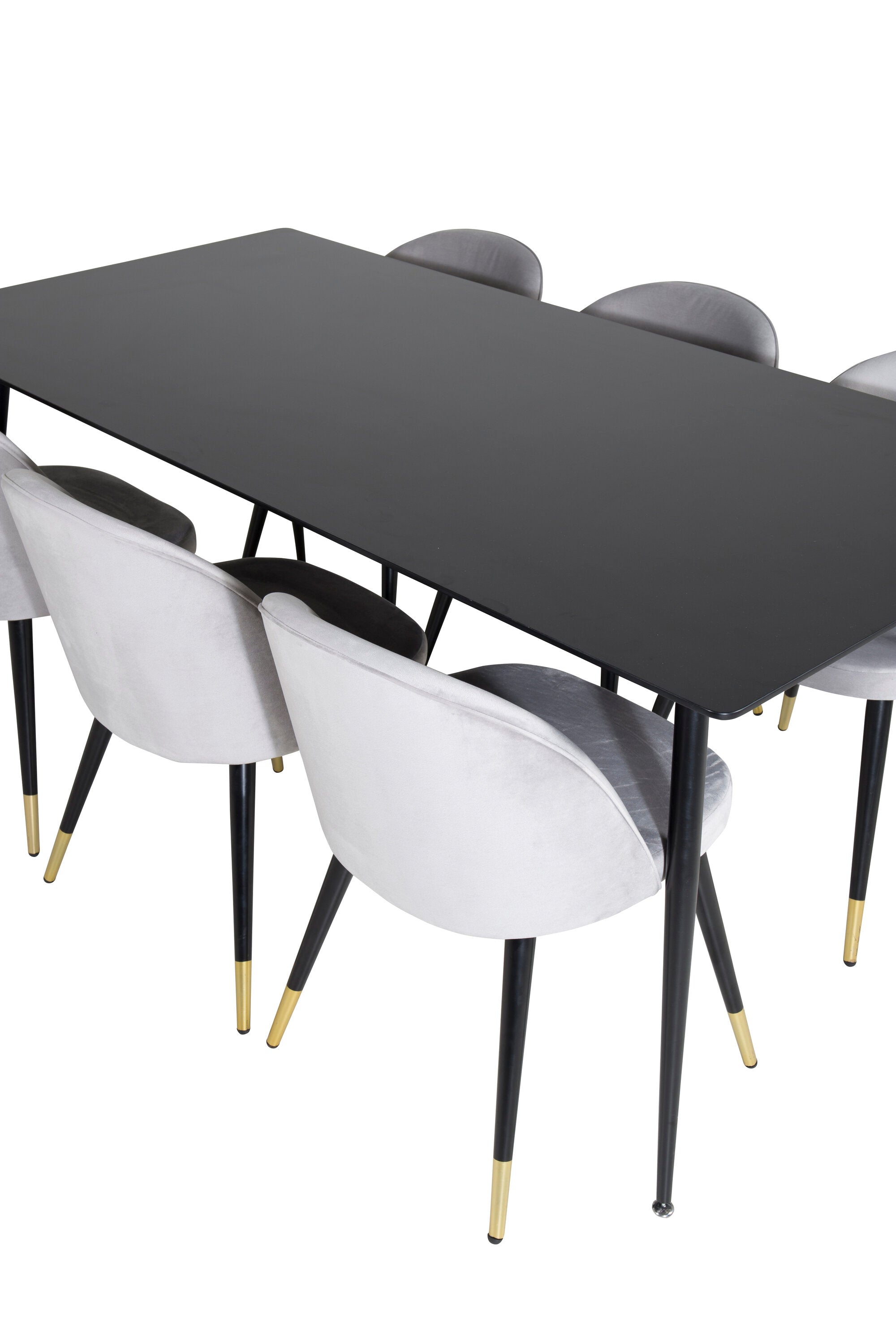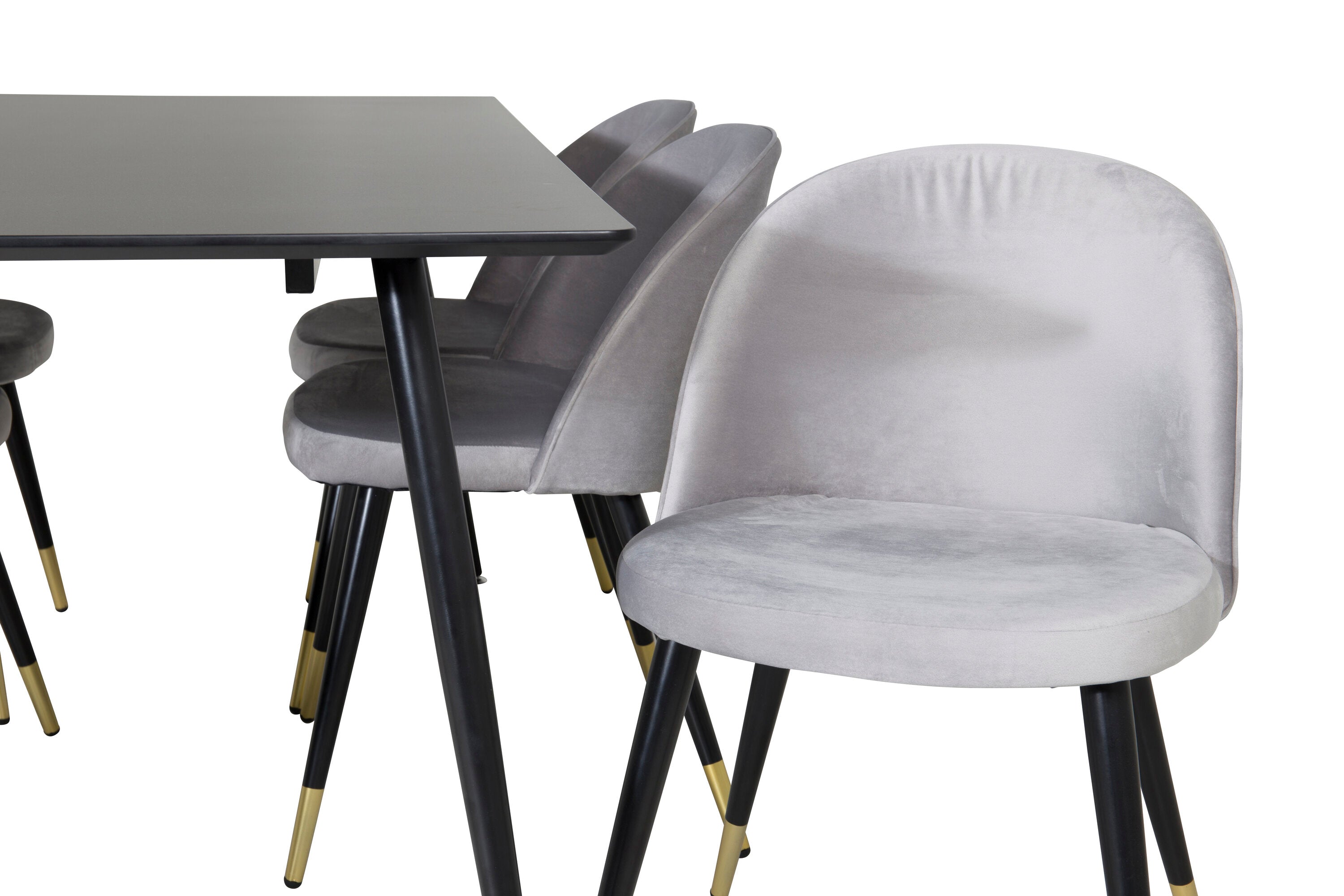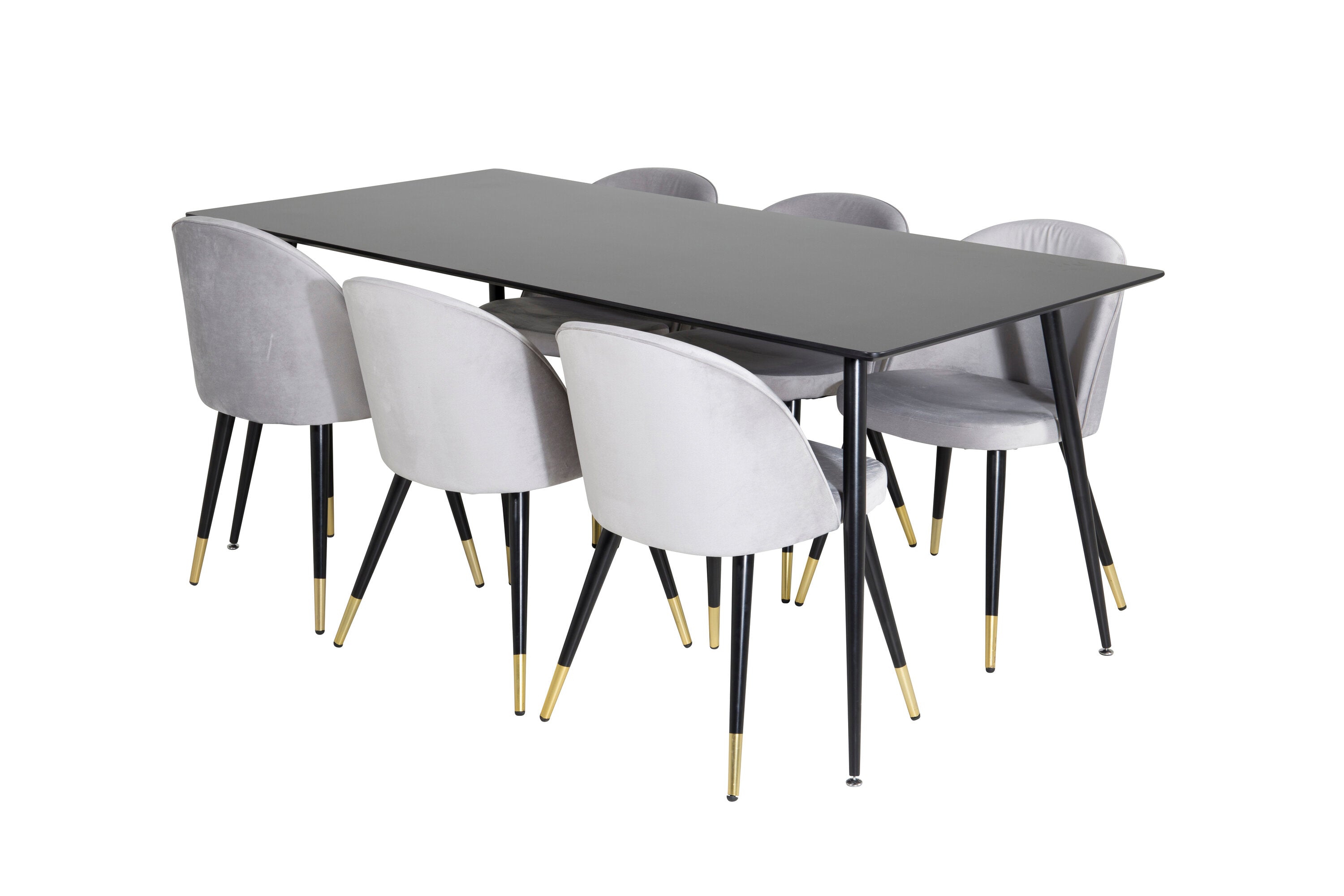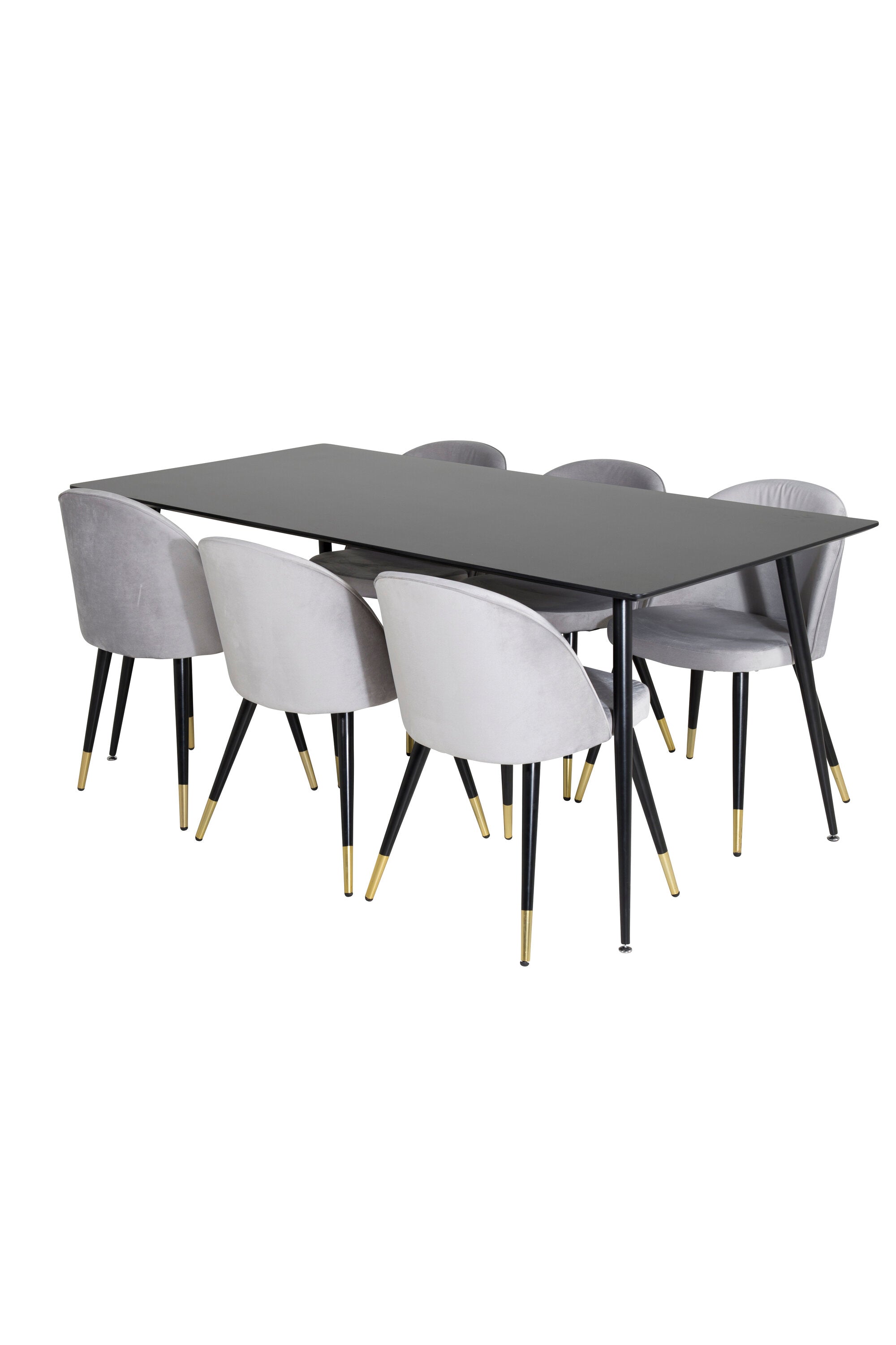 Jídelní stůl Silar - 180 cm - černý melamin / černé nohy + sametová jídelní židle mosaz - světle šedá / černá_6