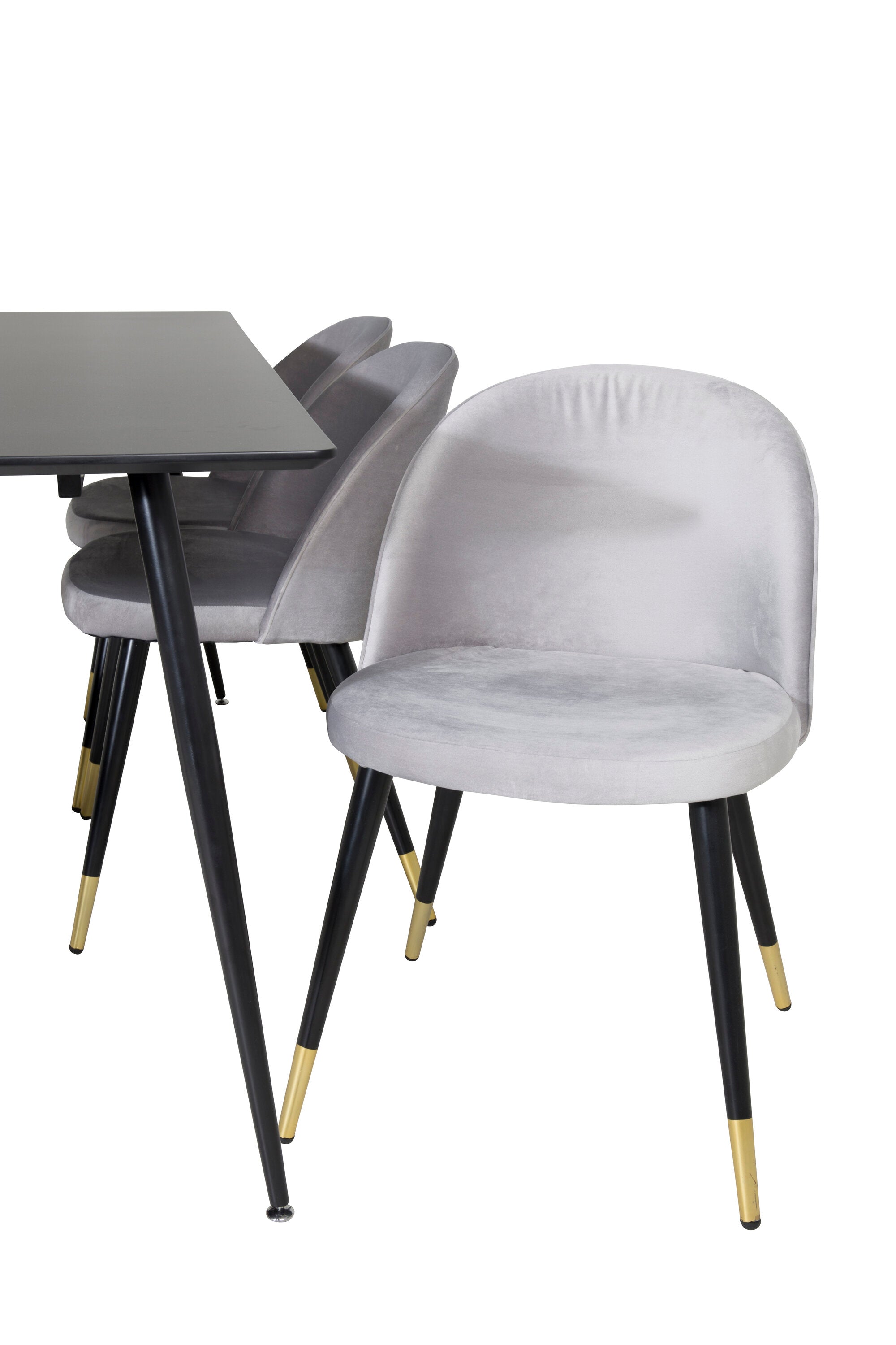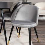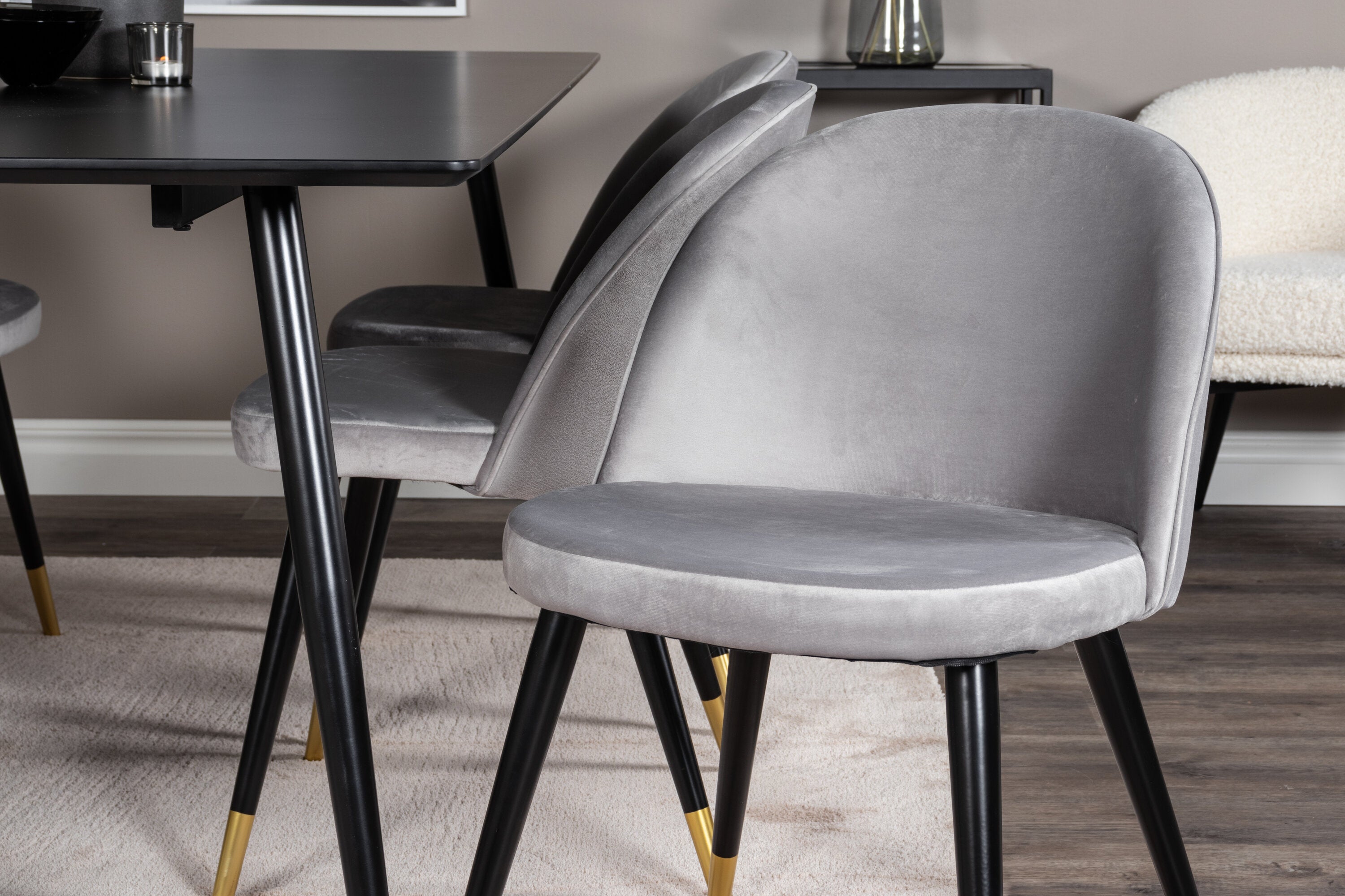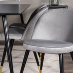 Naše luxusní šedé jídelní židle Velvet vhodné k sezení v kombinaci s jídelním stolem Sinar se hodí do většiny domácností. Stůl se spoustou místa pro večeři a společenský život. Nábytek pro zlatou hranu v každodenním životě - měl by se cítit příjemně!