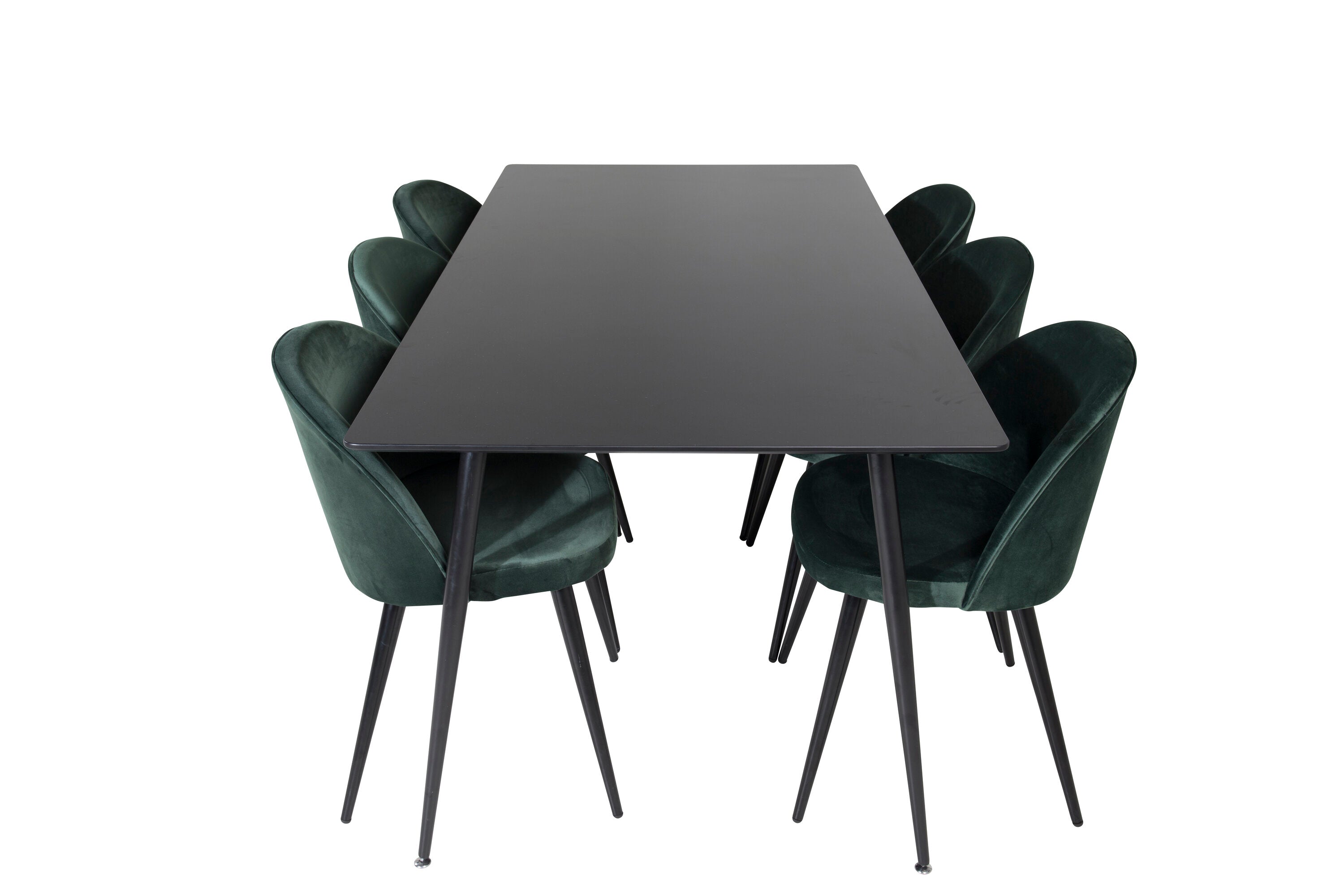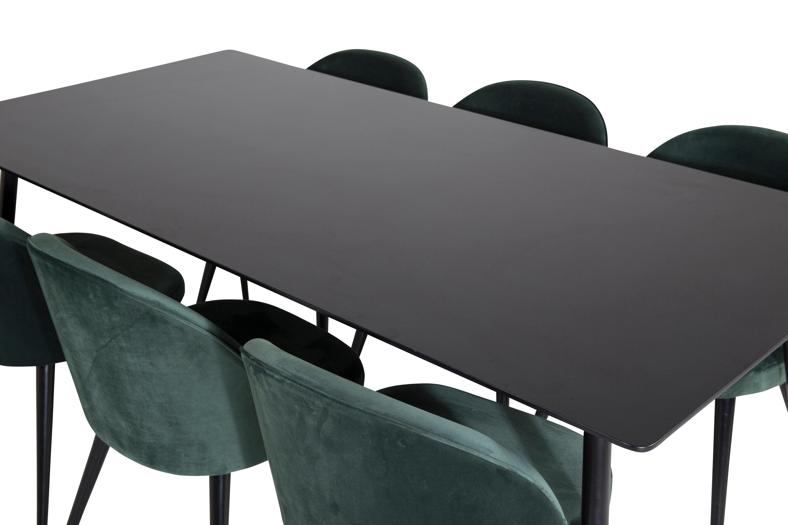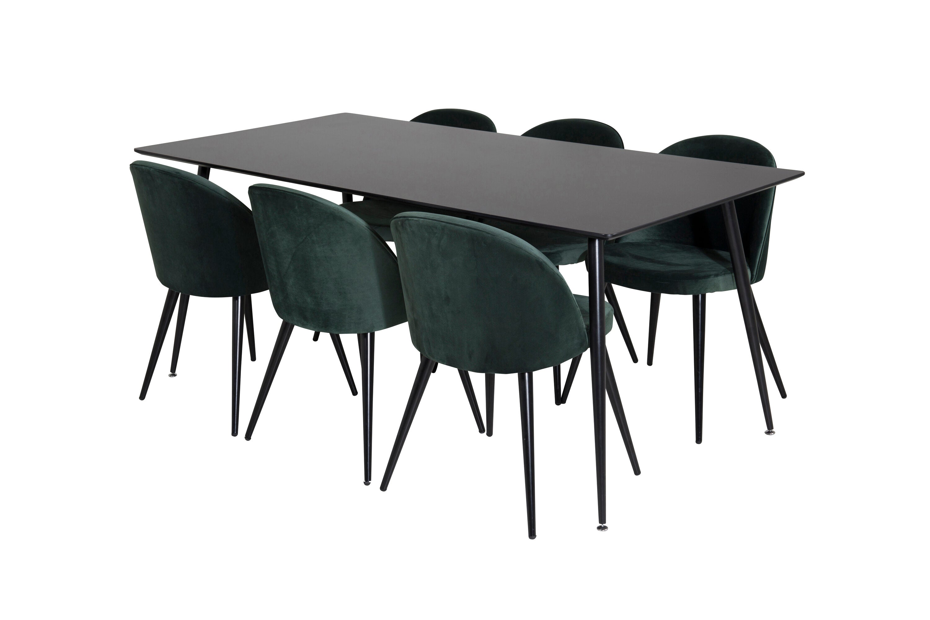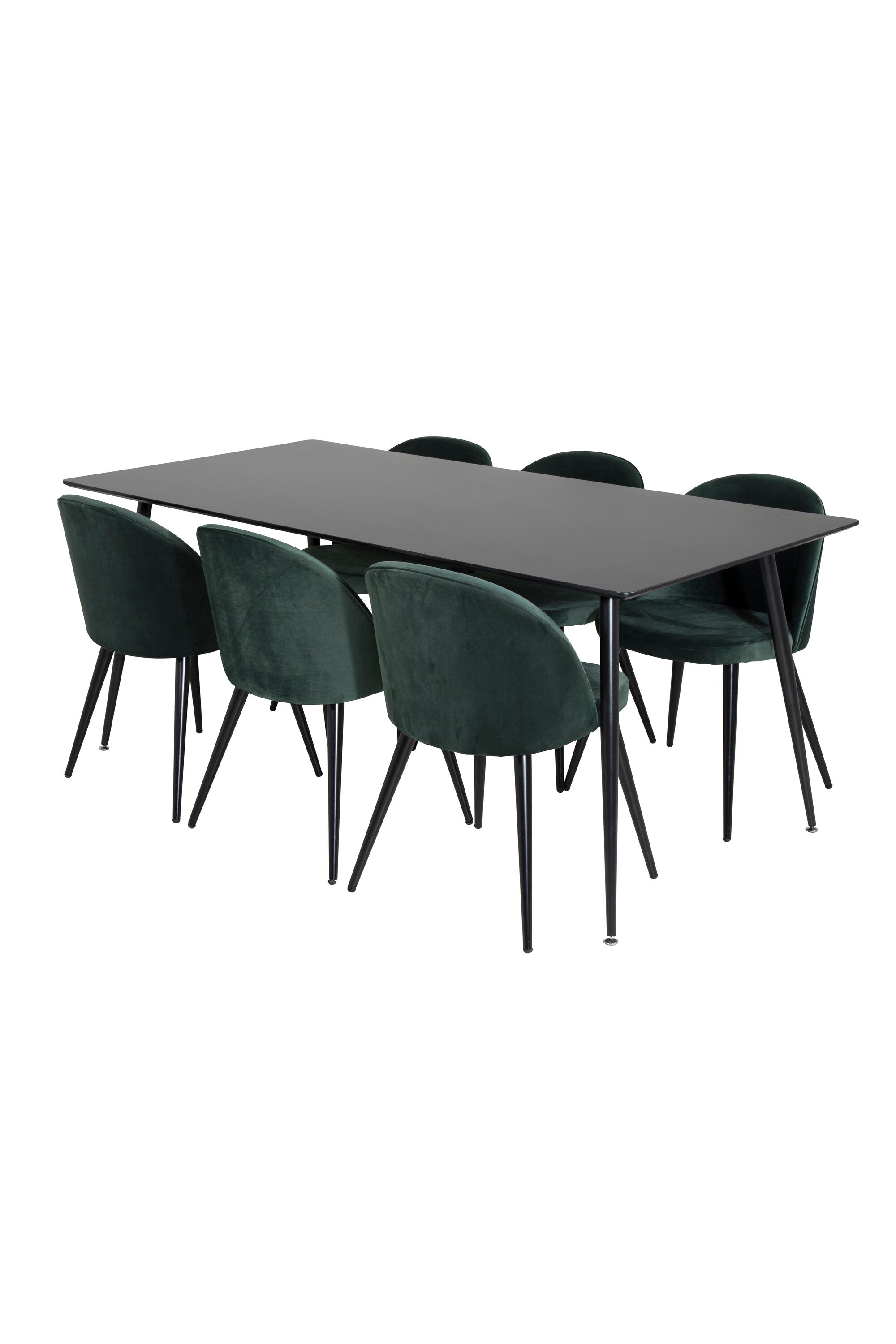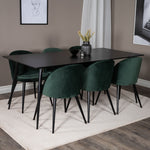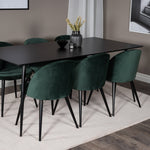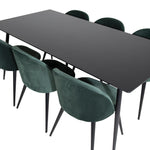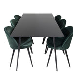 Jídelní stůl Silar - 180 cm - černý melamin / černé nohy + sametová jídelní židle - zelená / černá_6