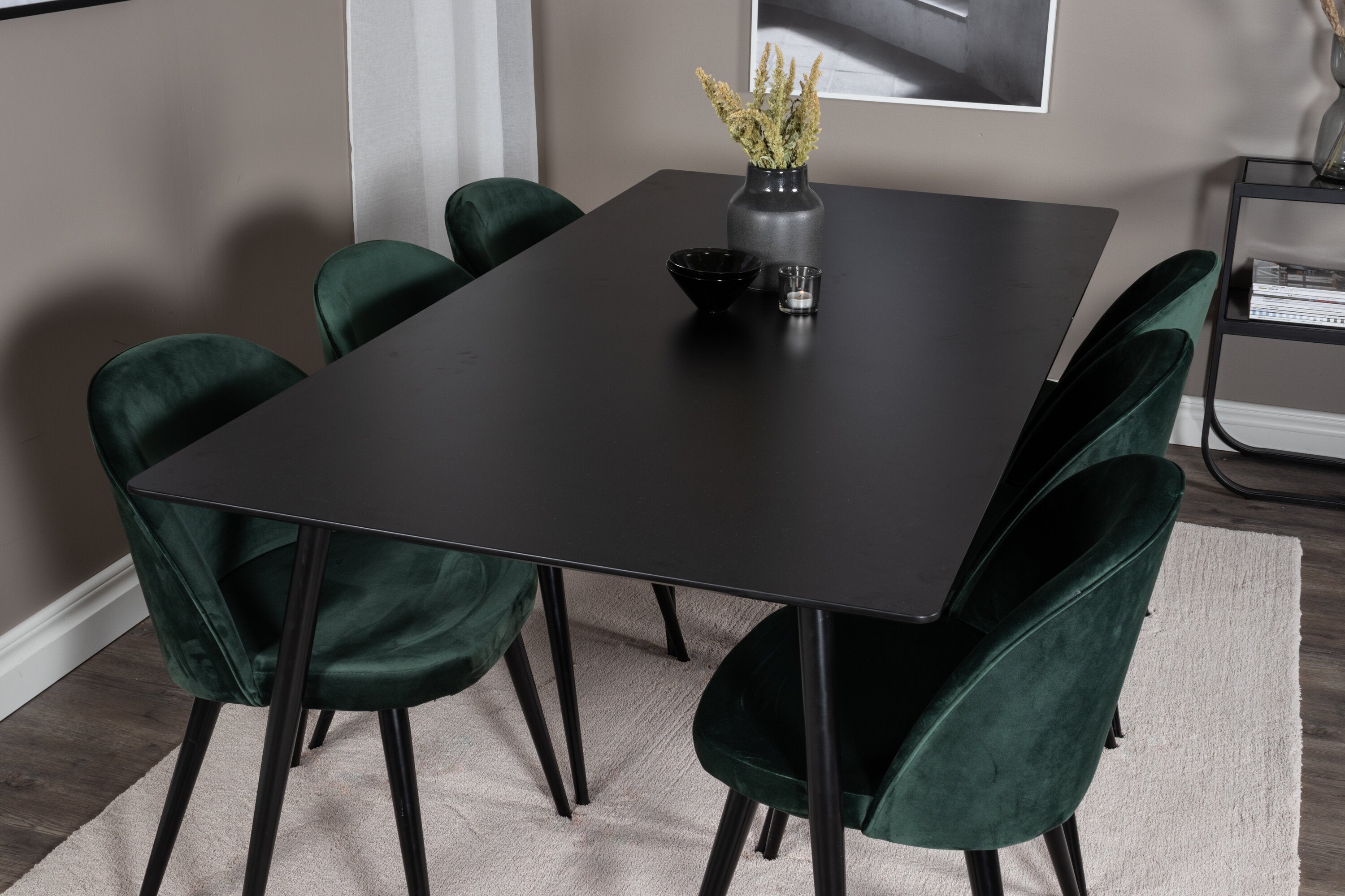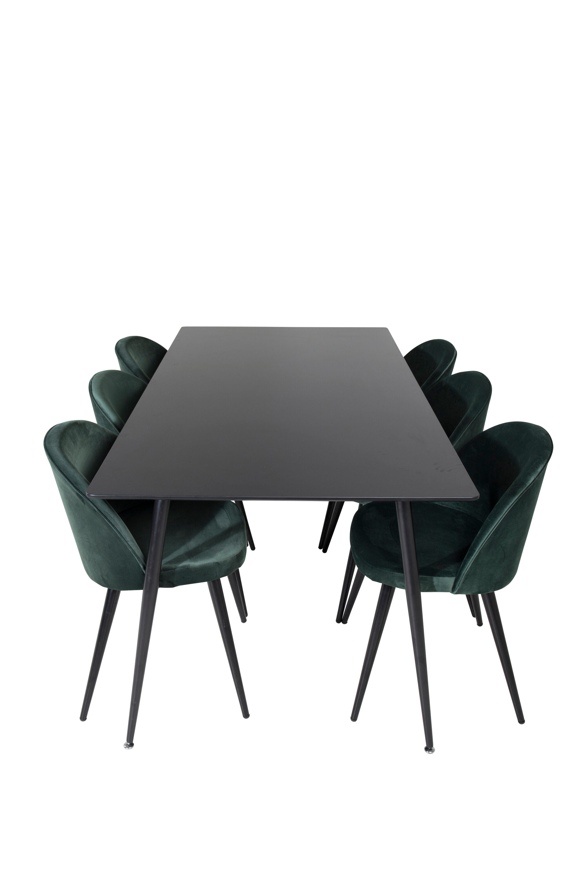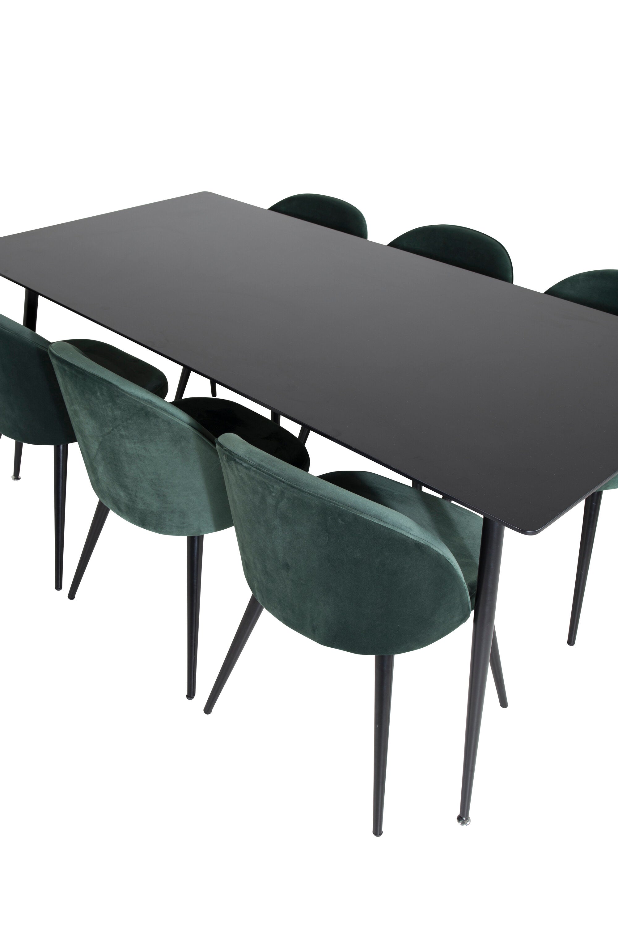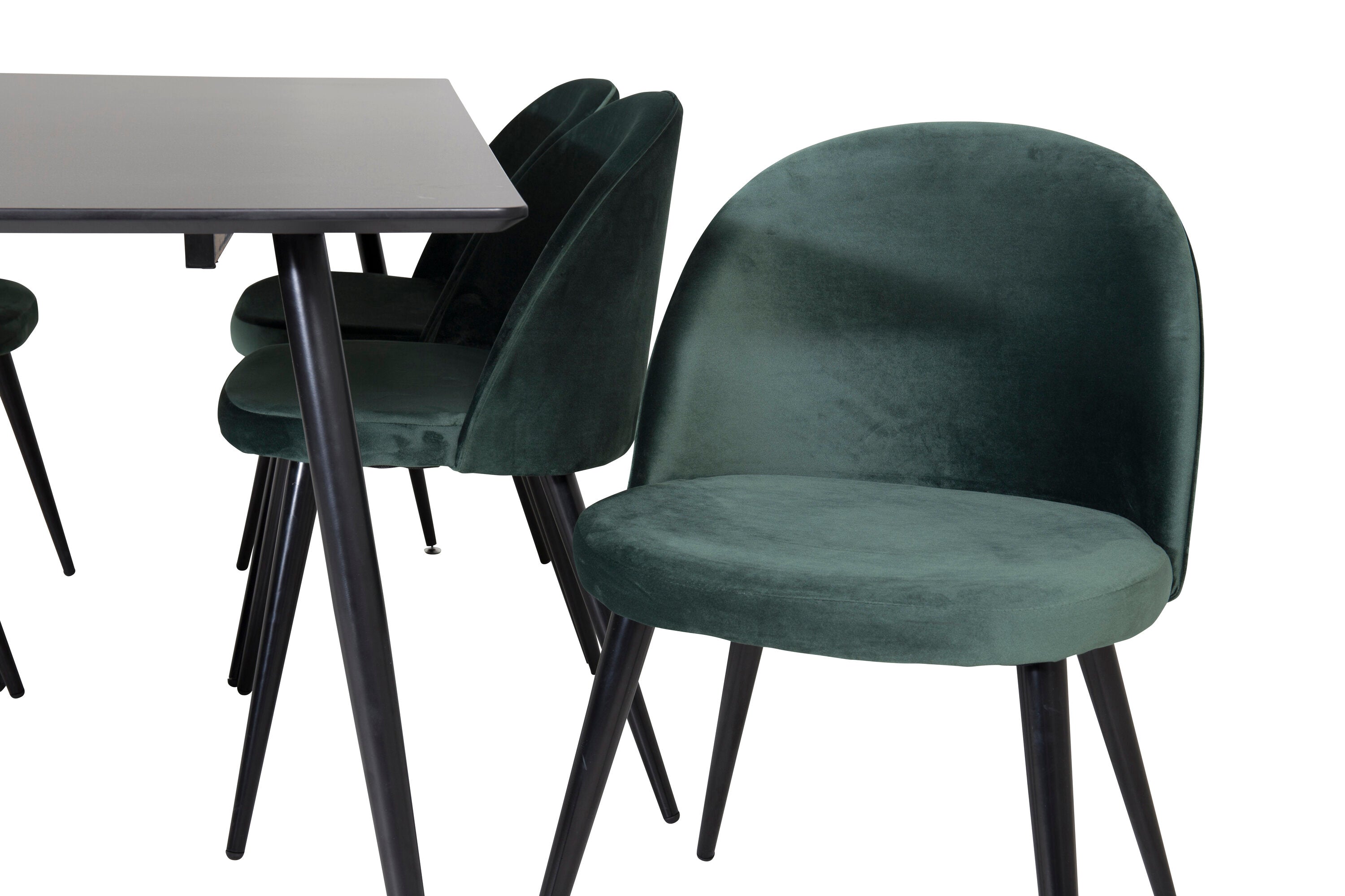 Jídelní stůl Silar - 180 cm - černý melamin / černé nohy + sametová jídelní židle - zelená / černá_6