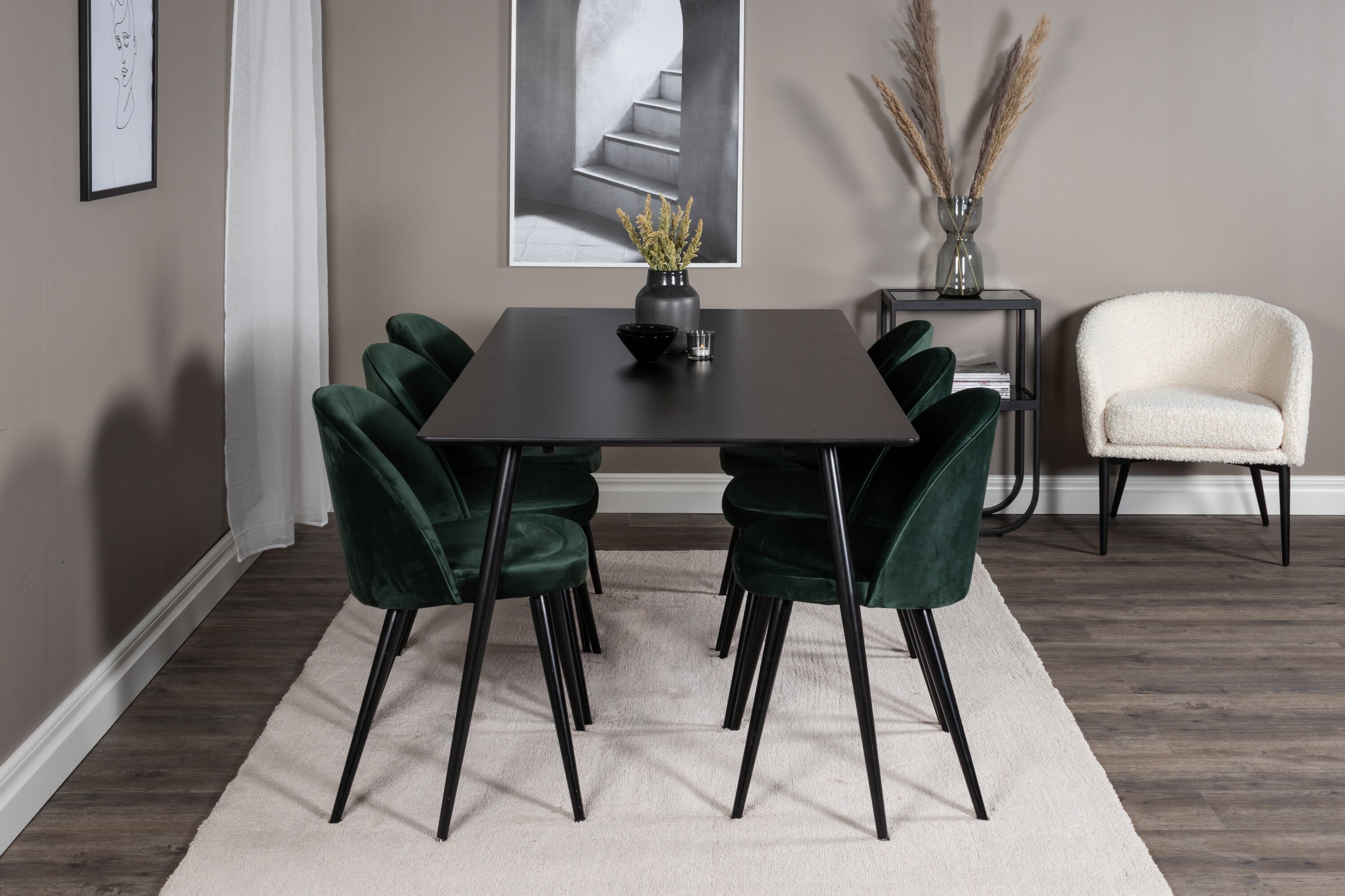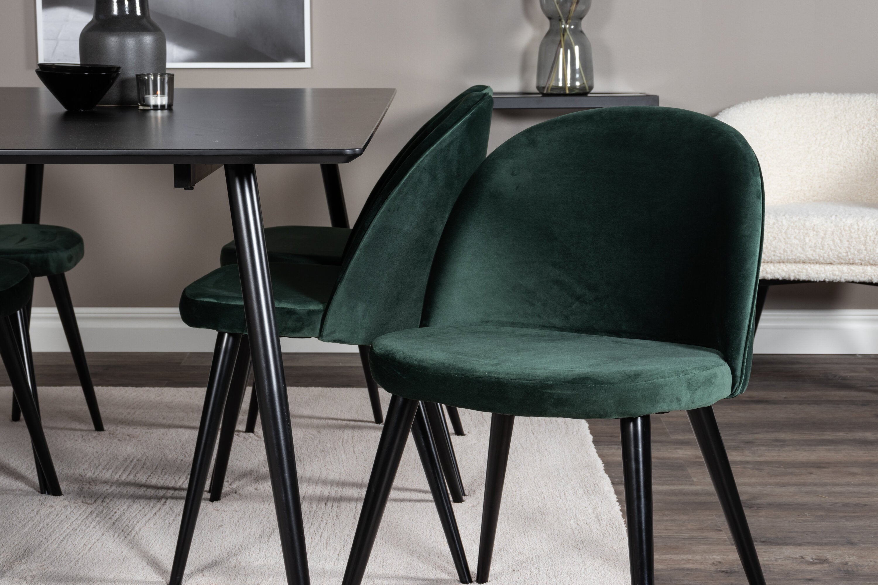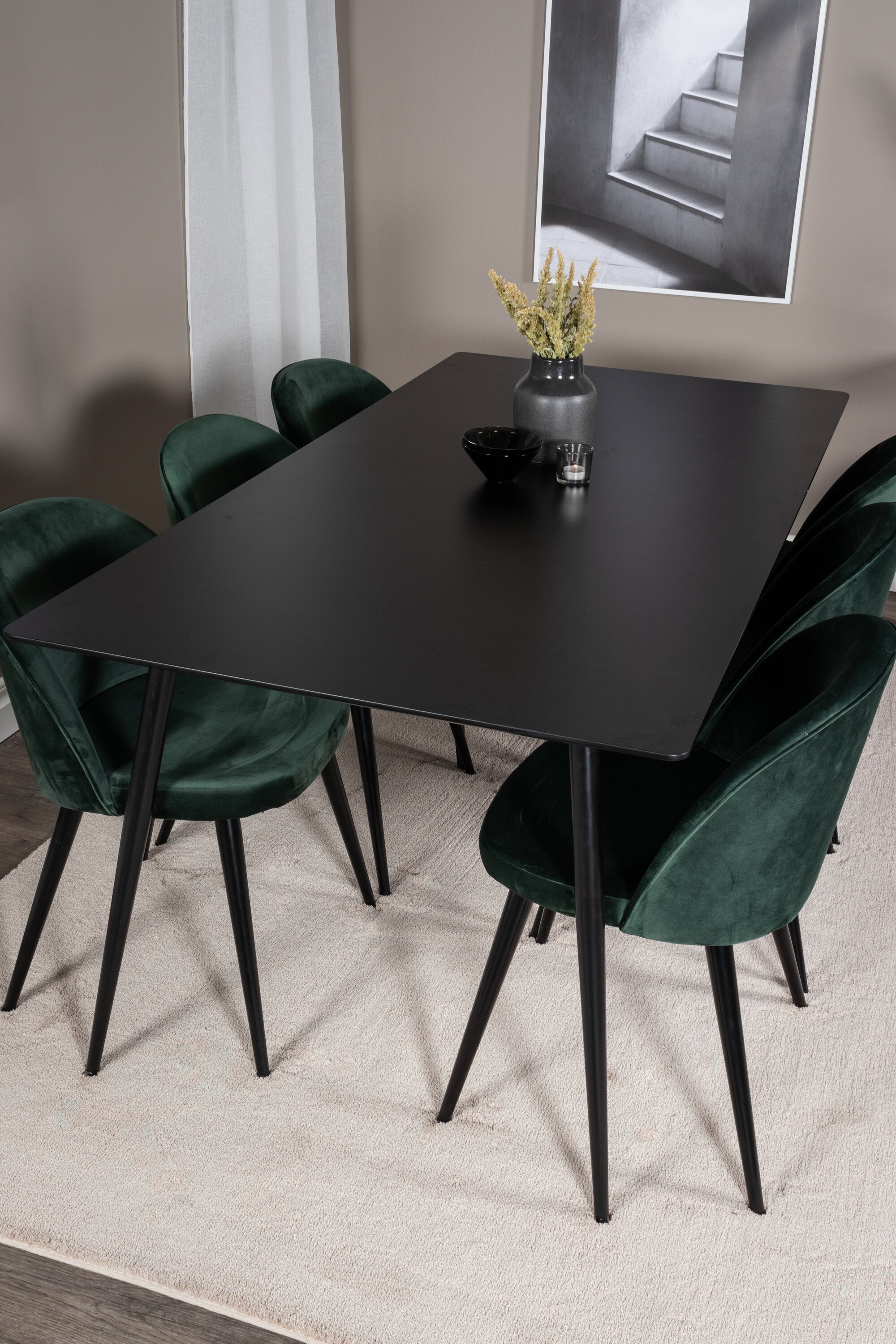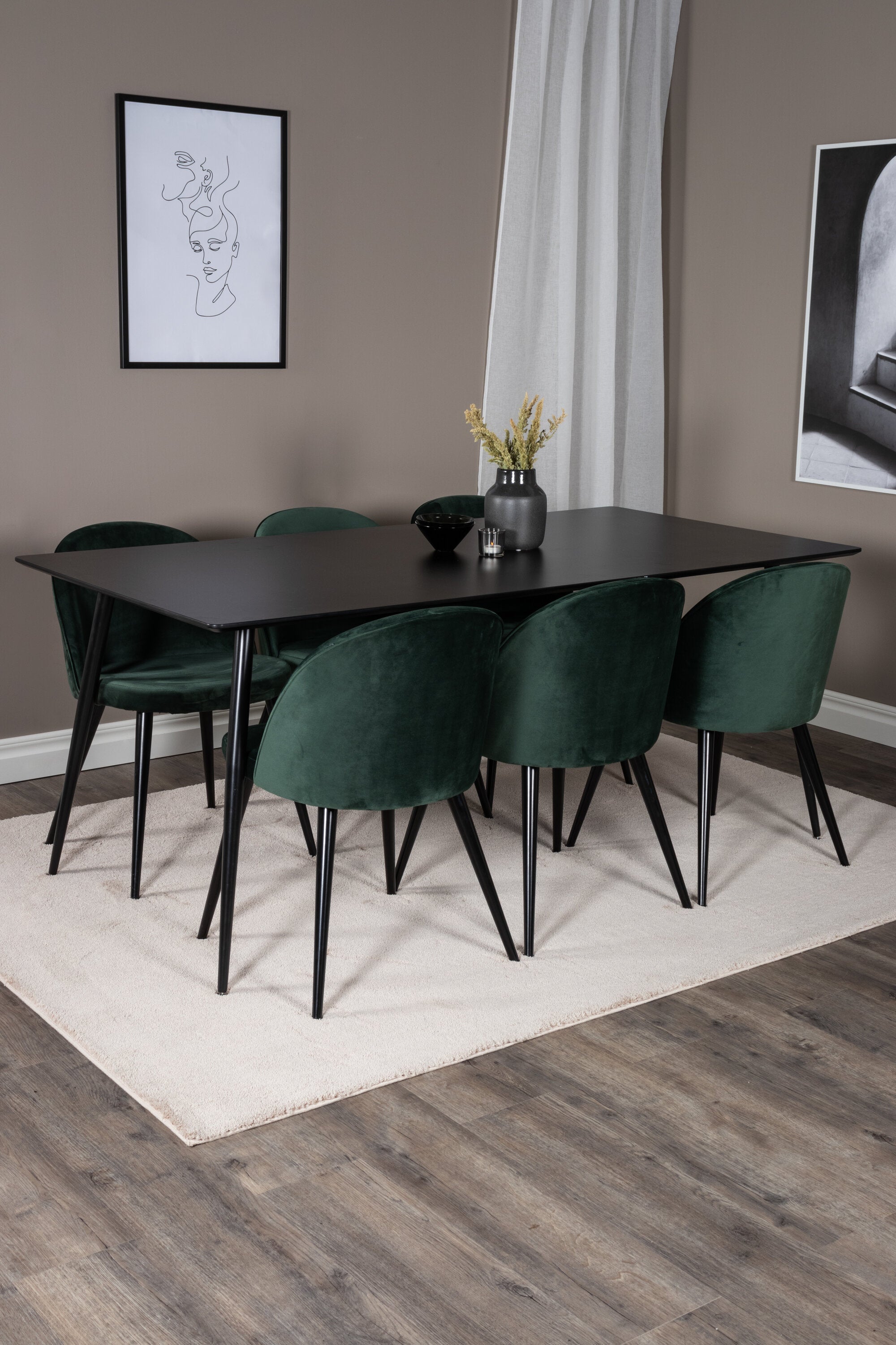 Jídelní stůl Silar - 180 cm - černý melamin / černé nohy + sametová jídelní židle - zelená / černá_6