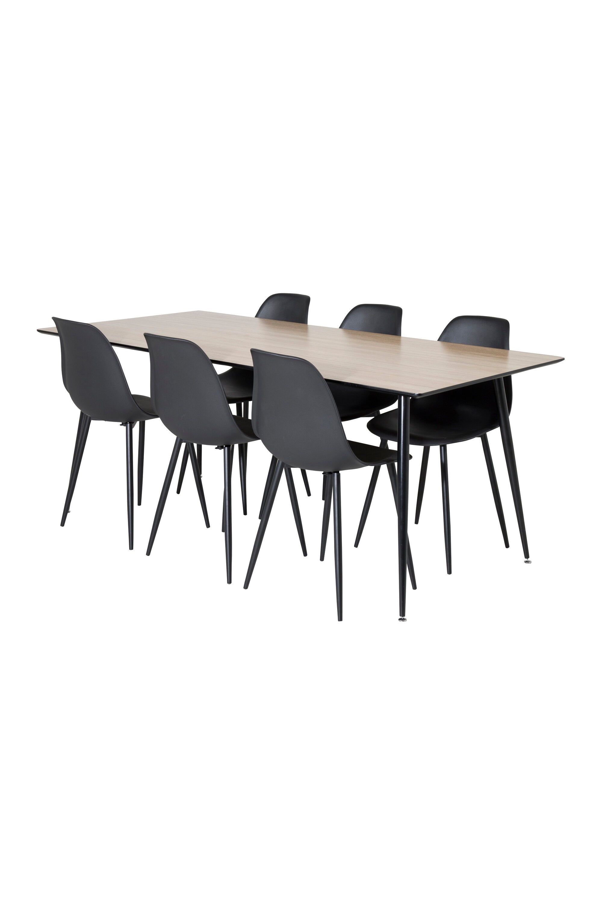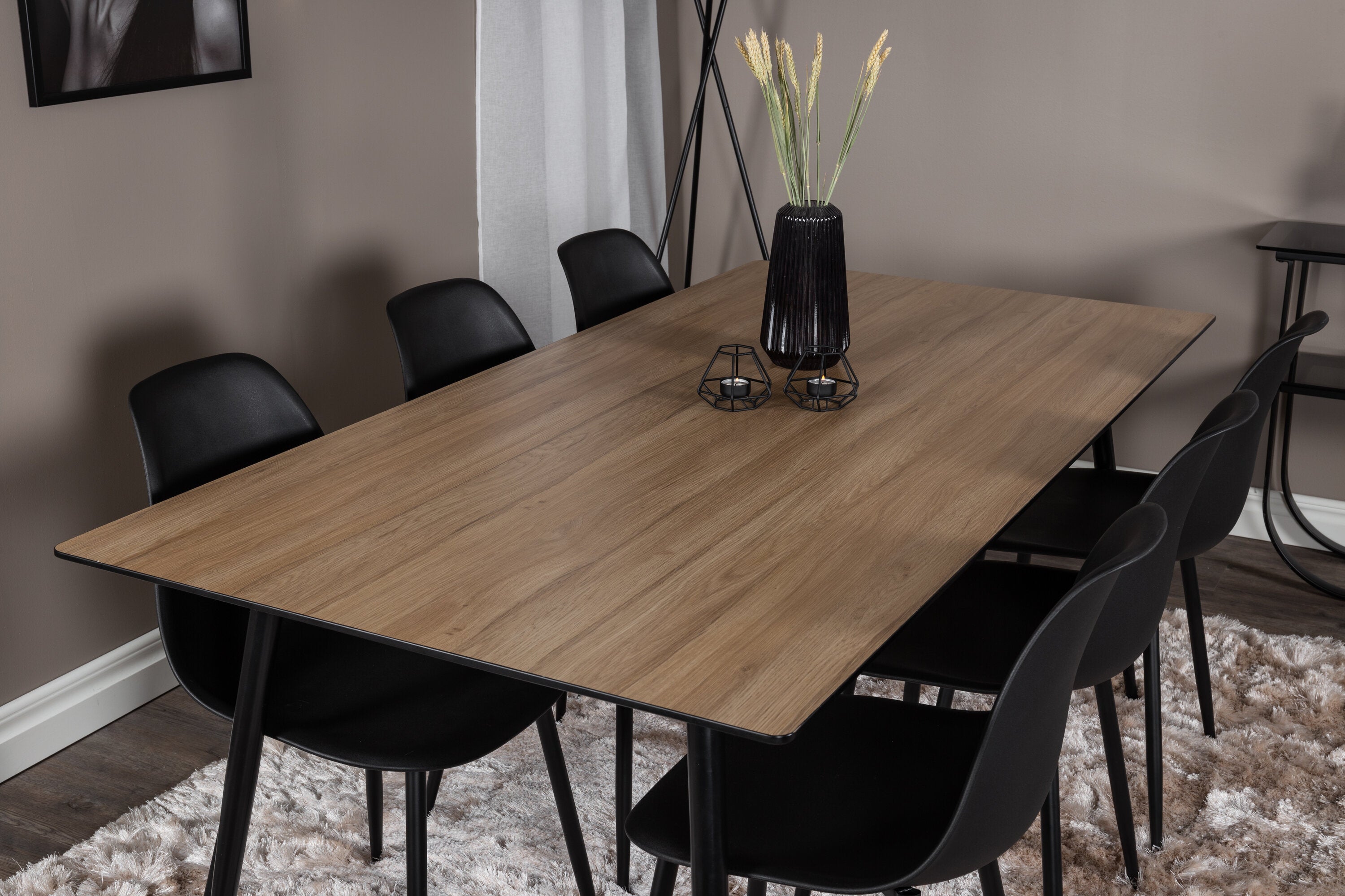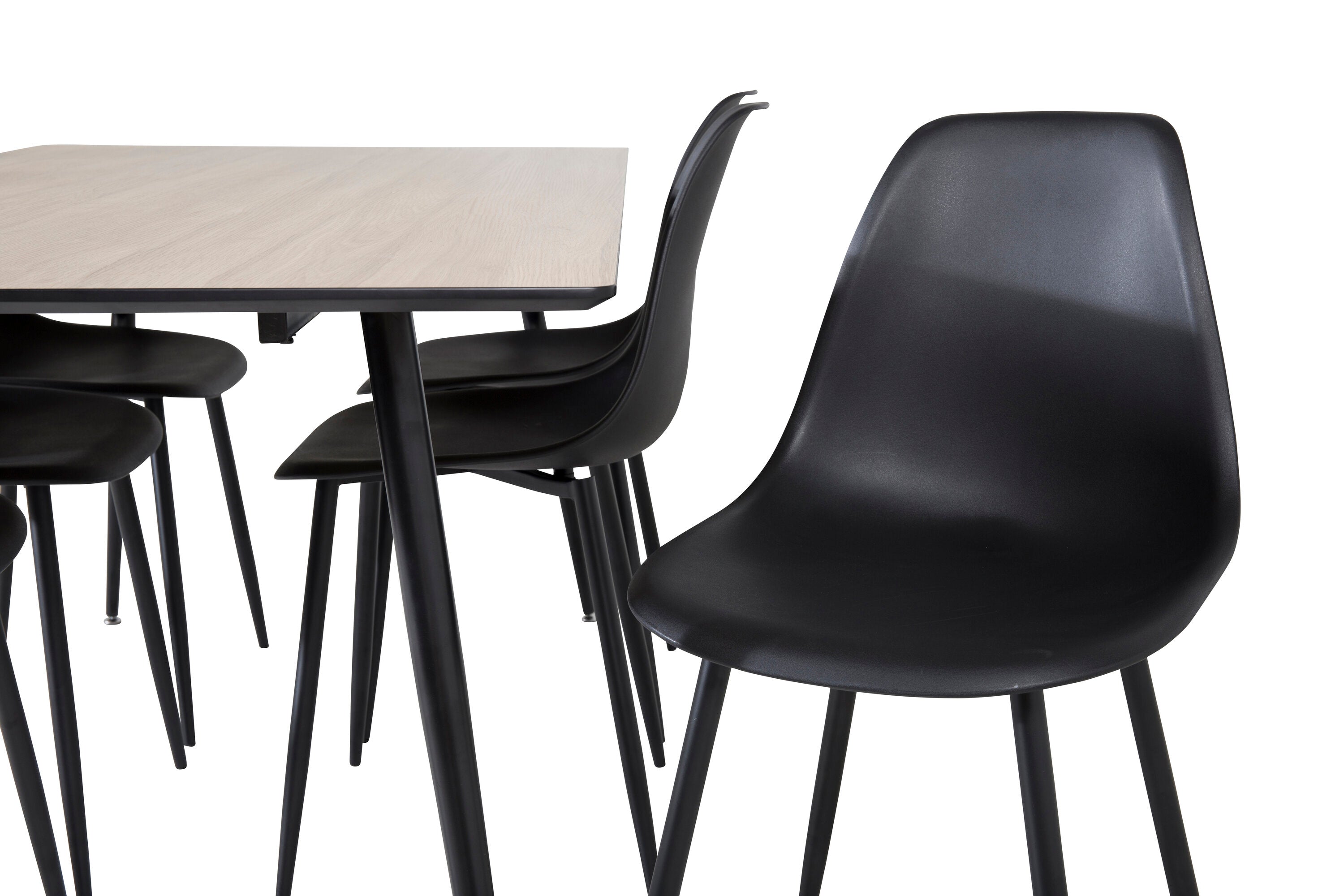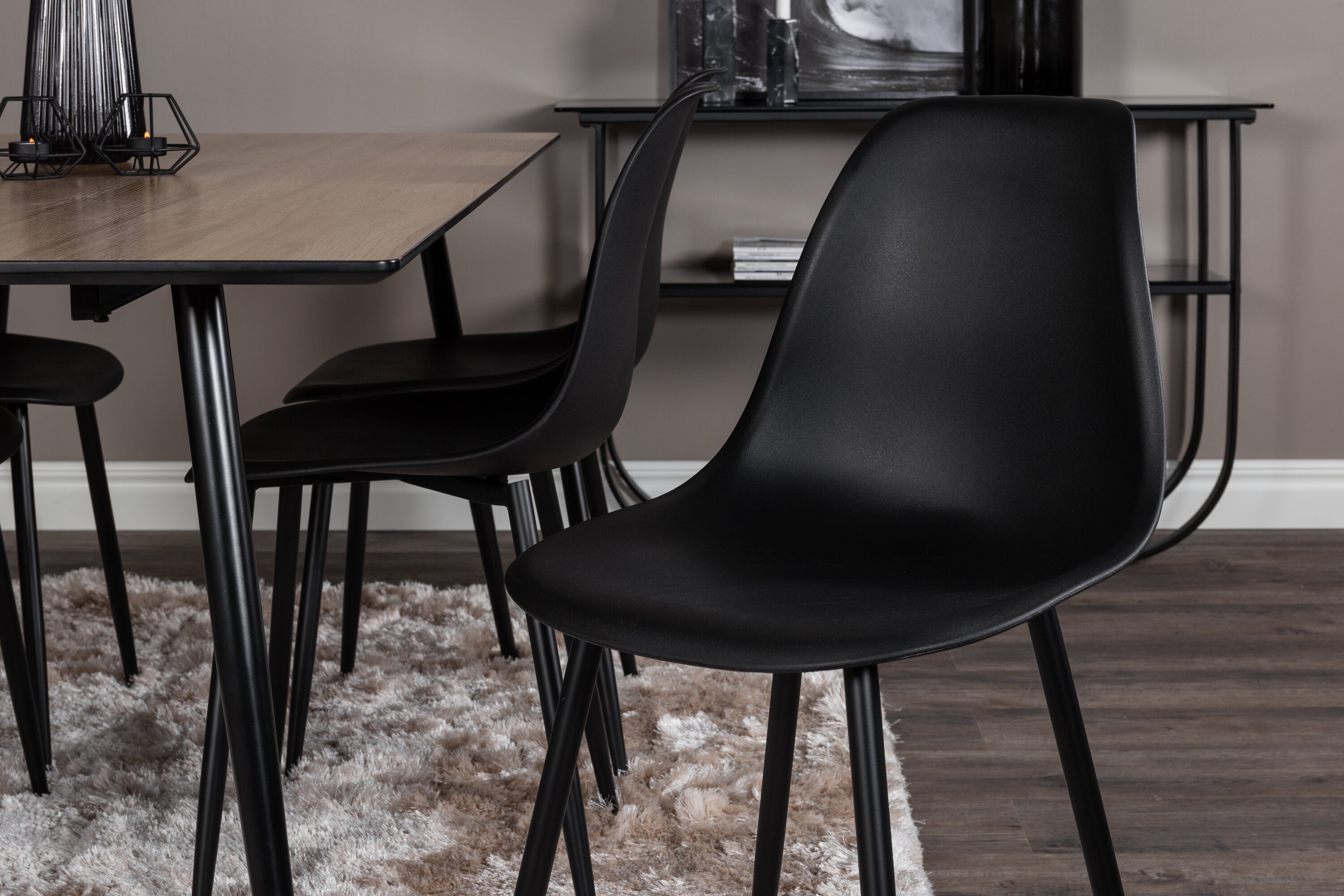 Jídelní stůl Silar - 180 cm - Melamin "Wood Look" / Černé nohy+Polar Plastová jídelní židle - Černé nohy / Černý plast_6