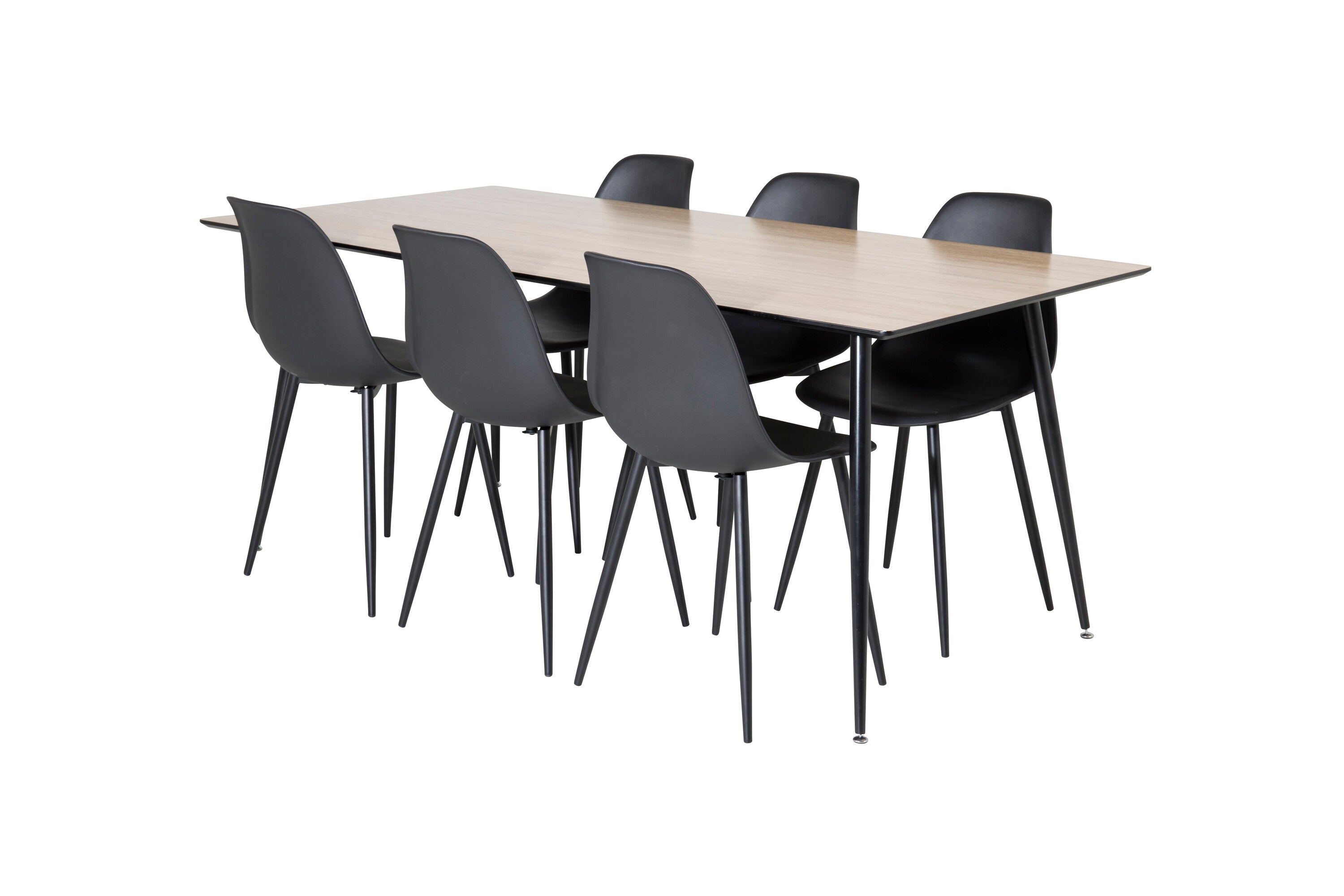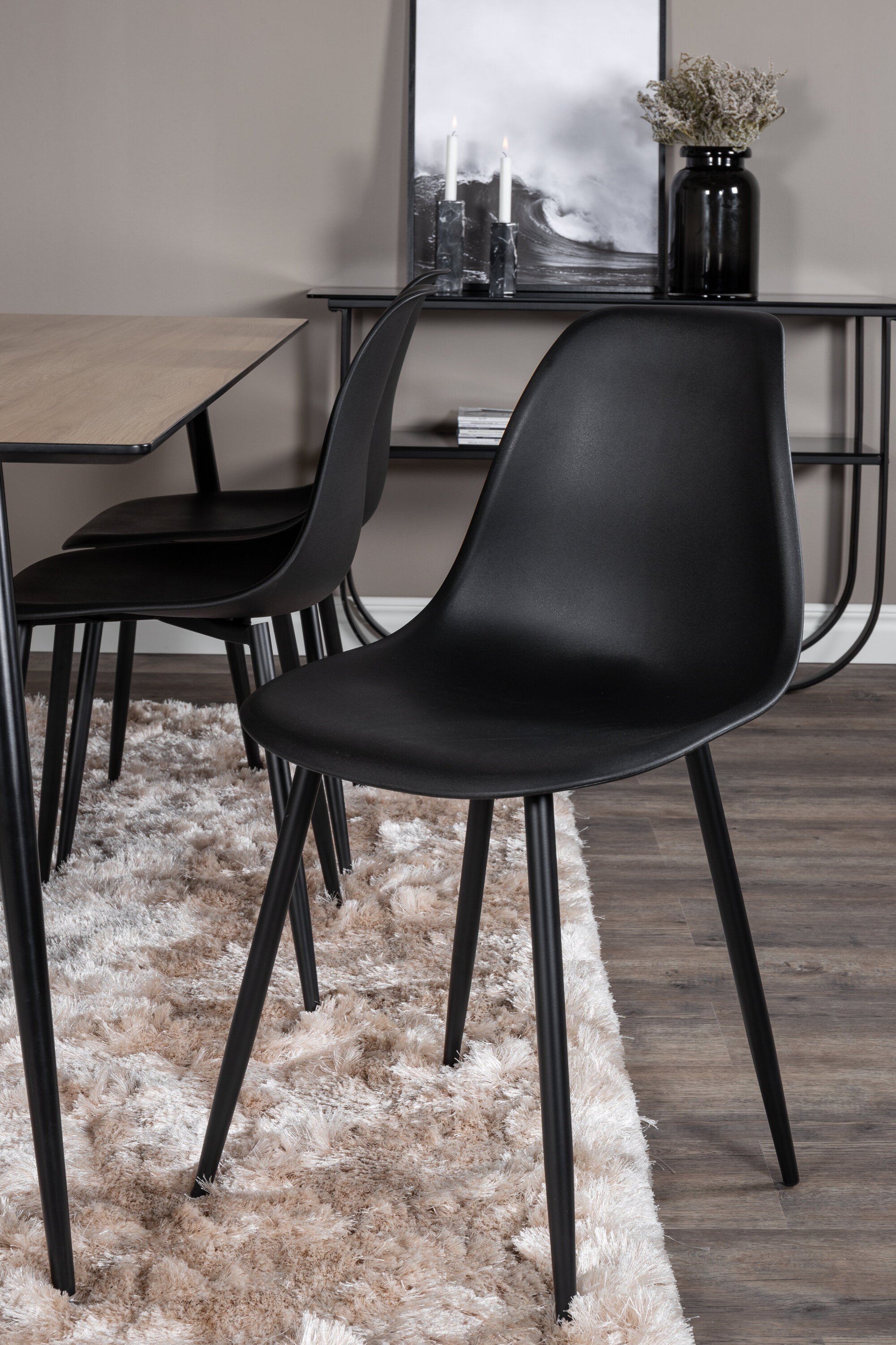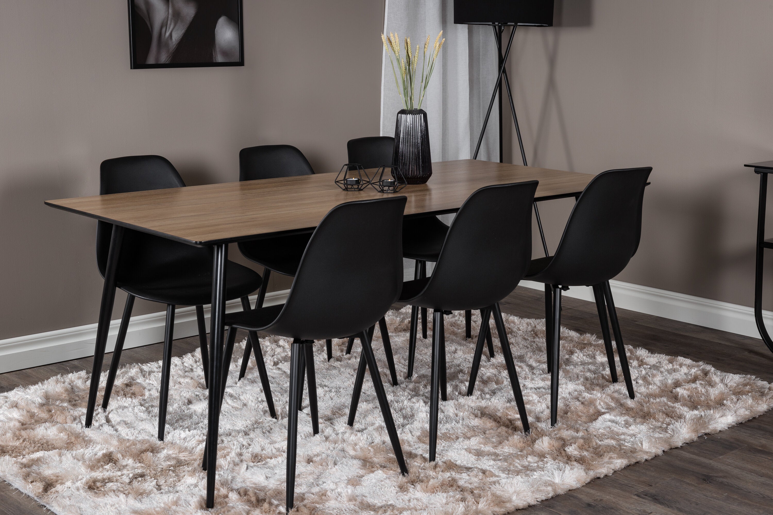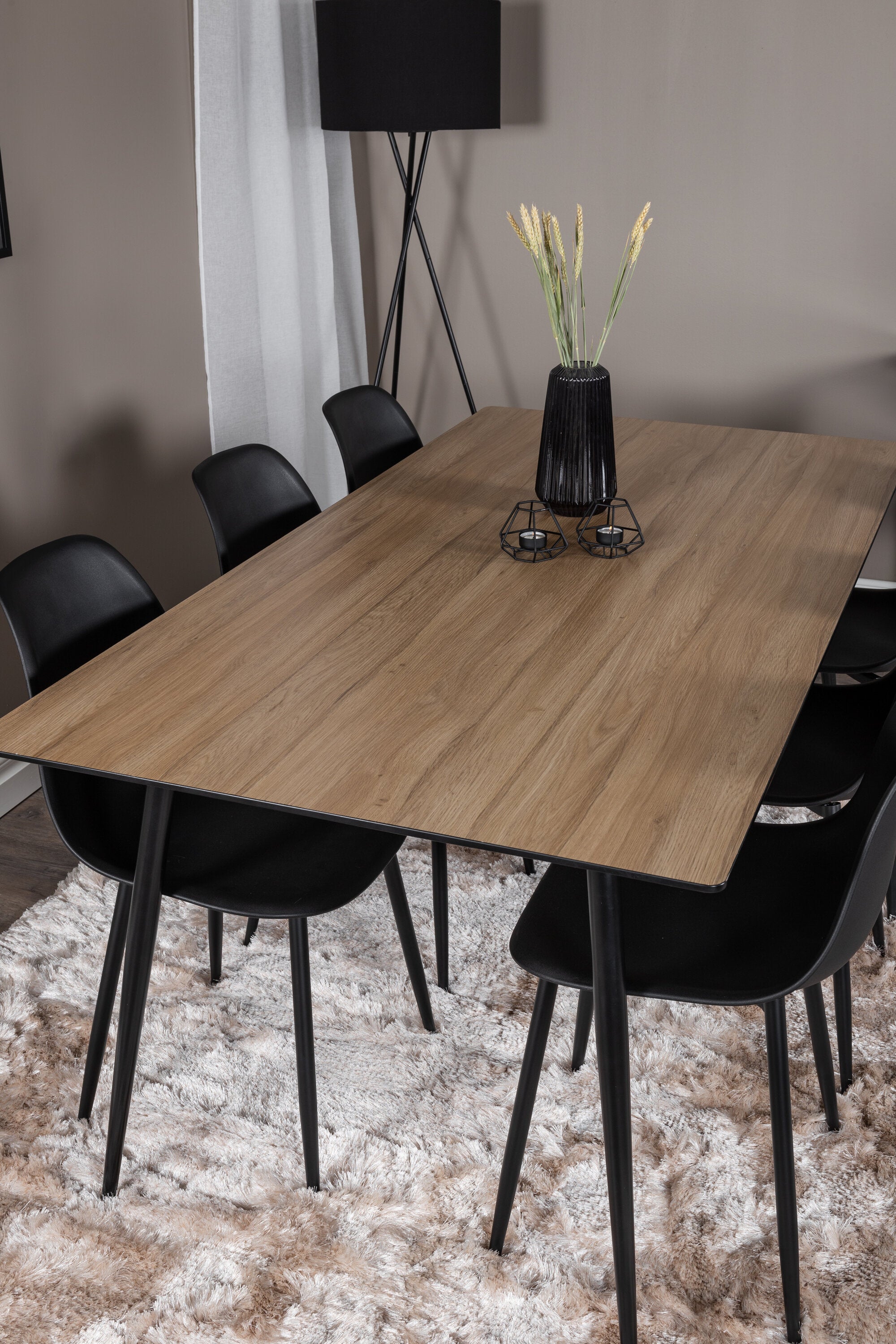Jídelní stůl Silar - 180 cm - Melamin "Wood Look" / Černé nohy+Polar Plastová jídelní židle - Černé nohy / Černý plast_6
