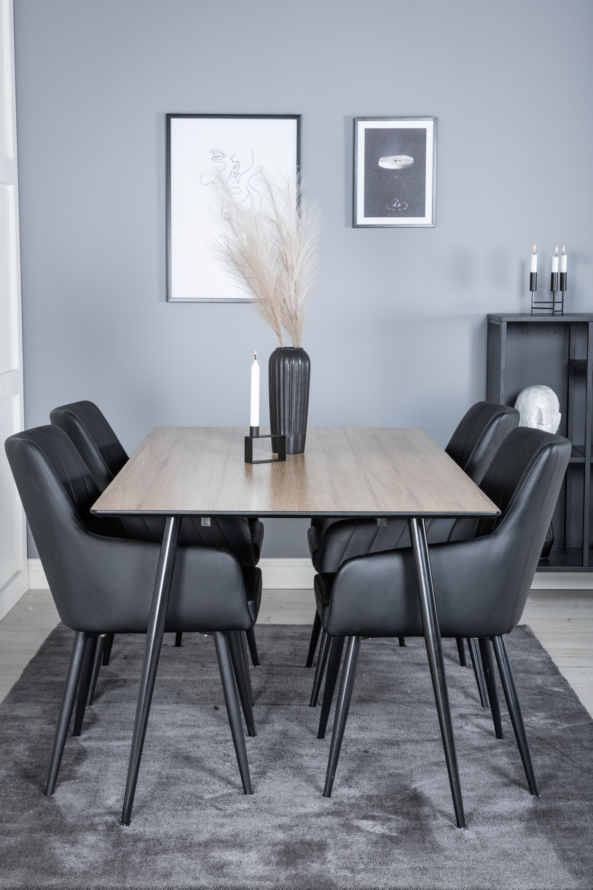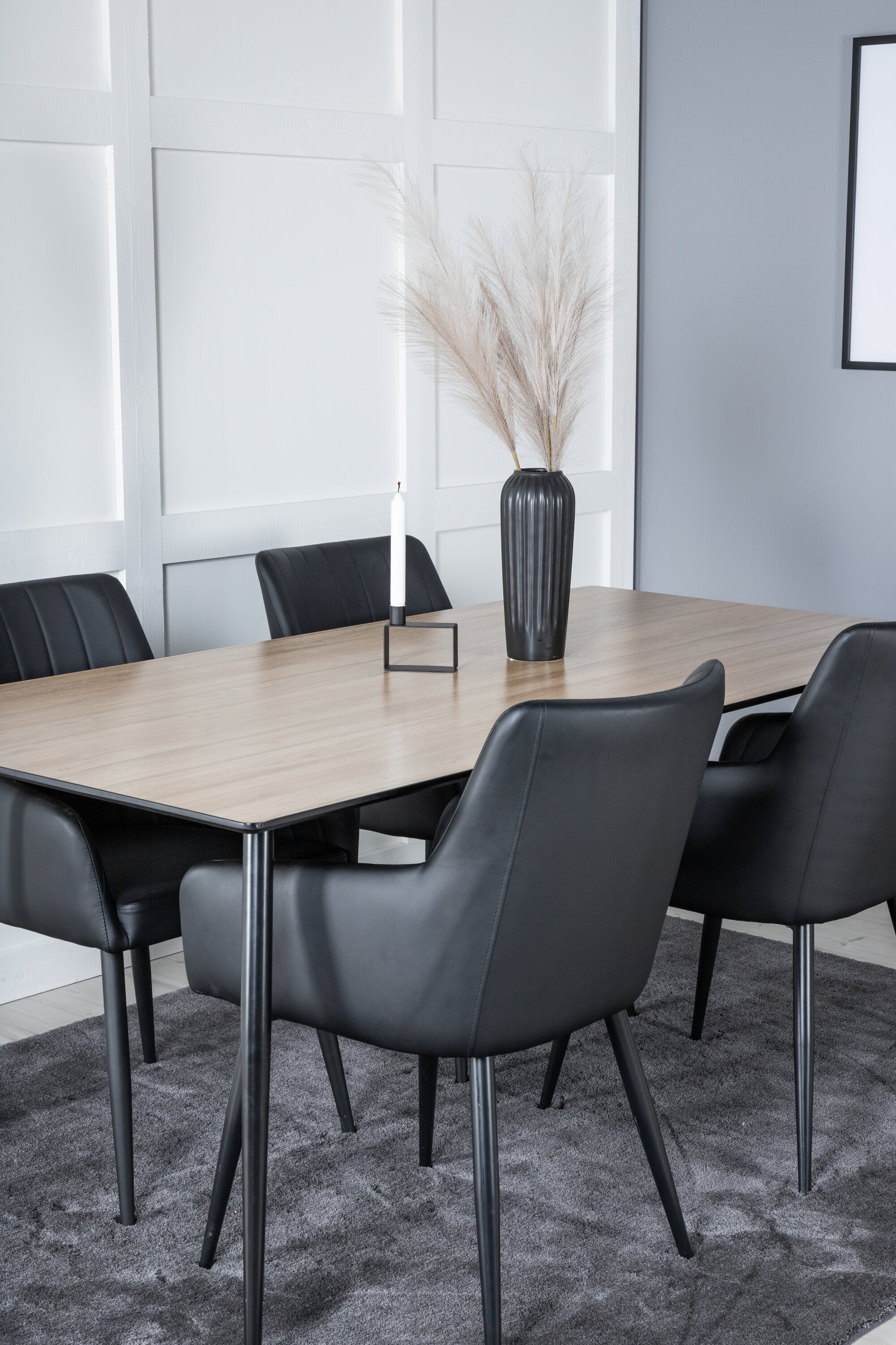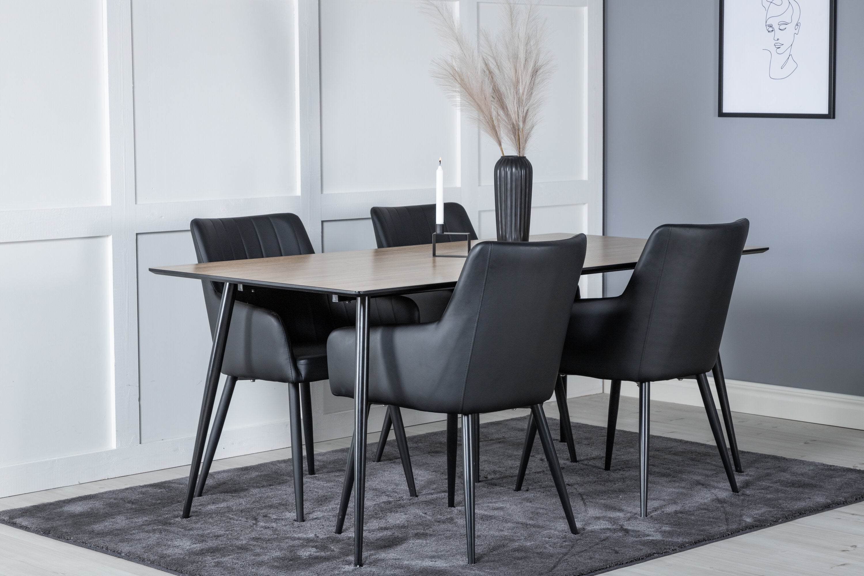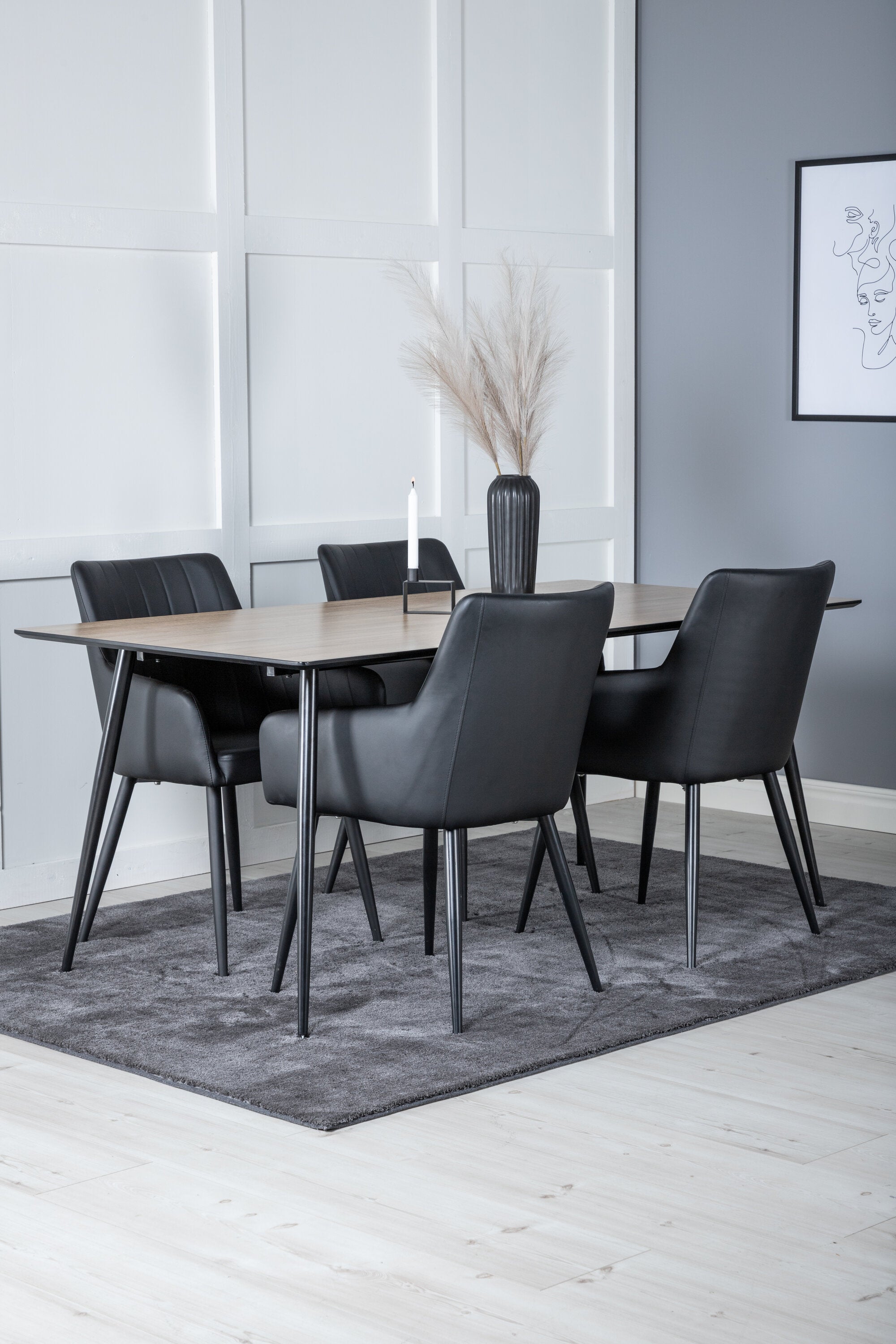 Jídelní stůl Silar - 180 cm - "Wood Look" Melamin / Černé nohy +Comfort - Jídelní židle 2-balení - černá/Černá _4