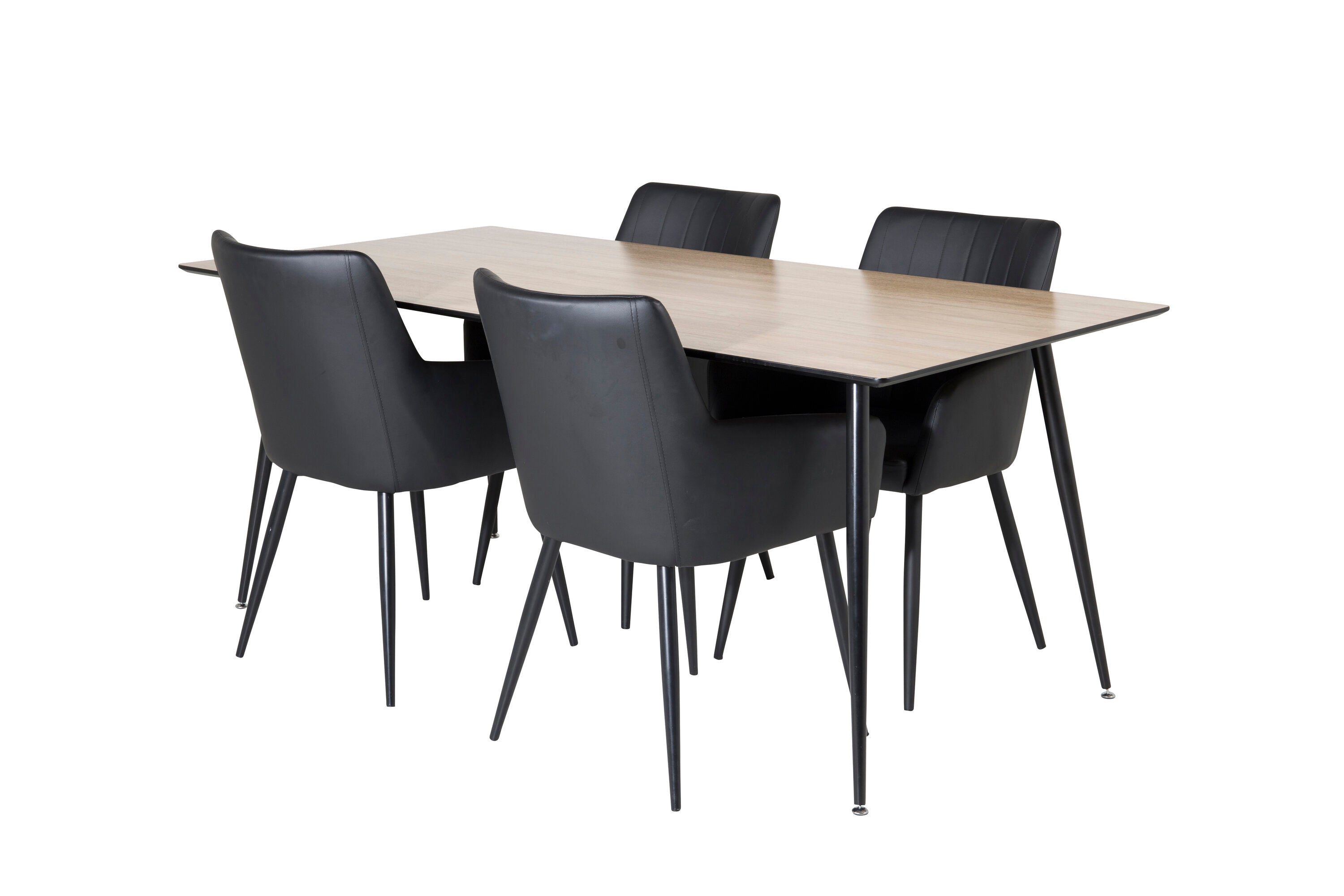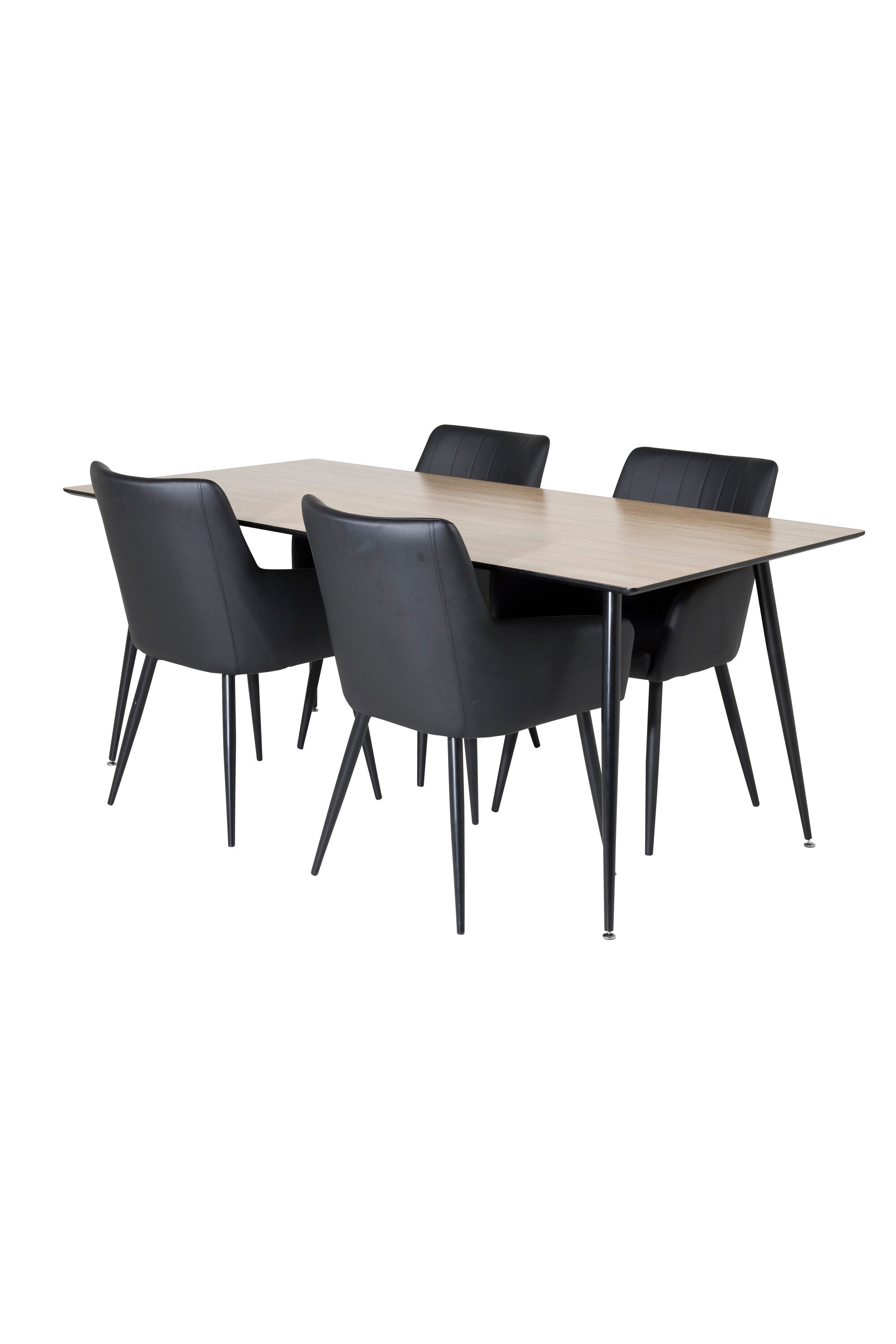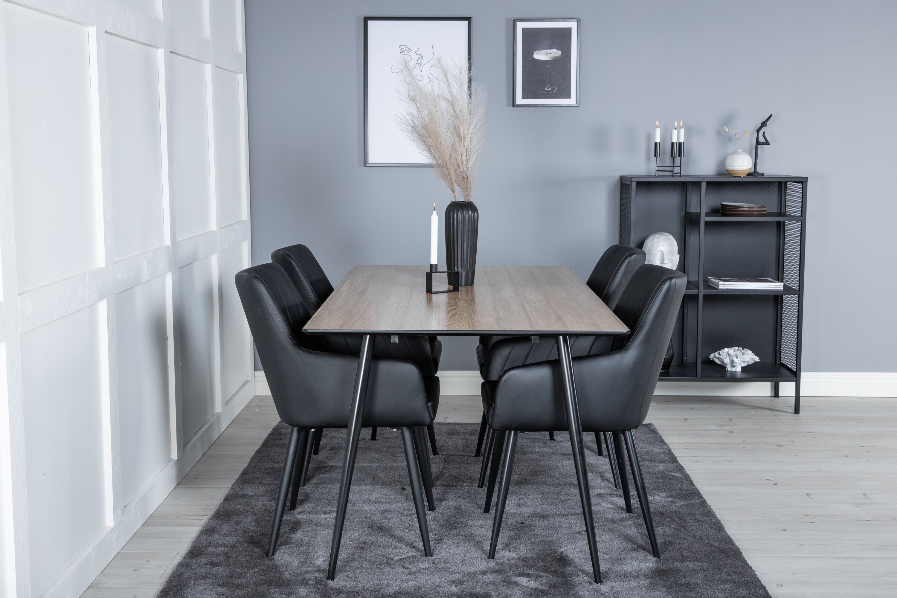 Jídelní stůl Silar - 180 cm - "Wood Look" Melamin / Černé nohy +Comfort - Jídelní židle 2-balení - černá/Černá _4