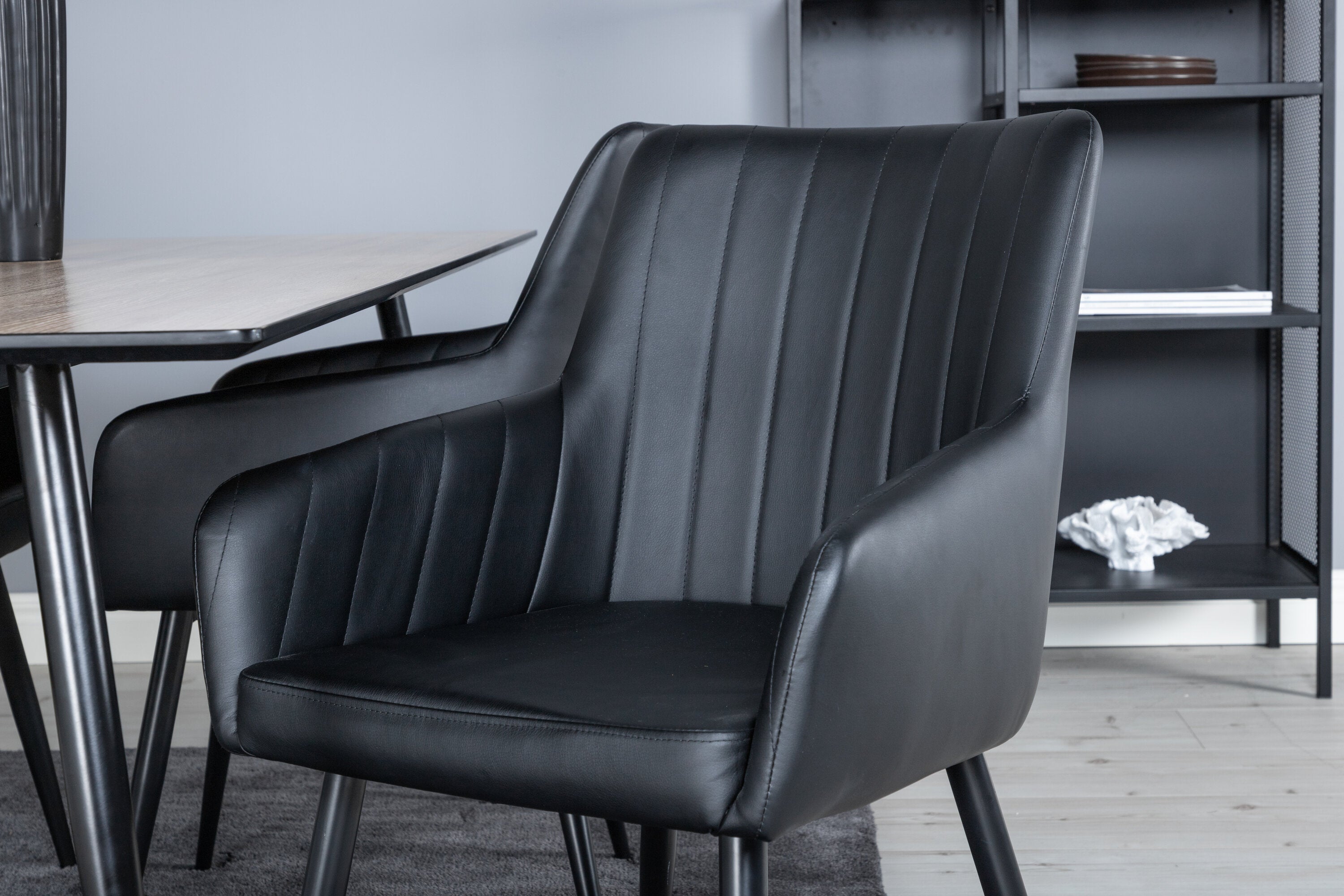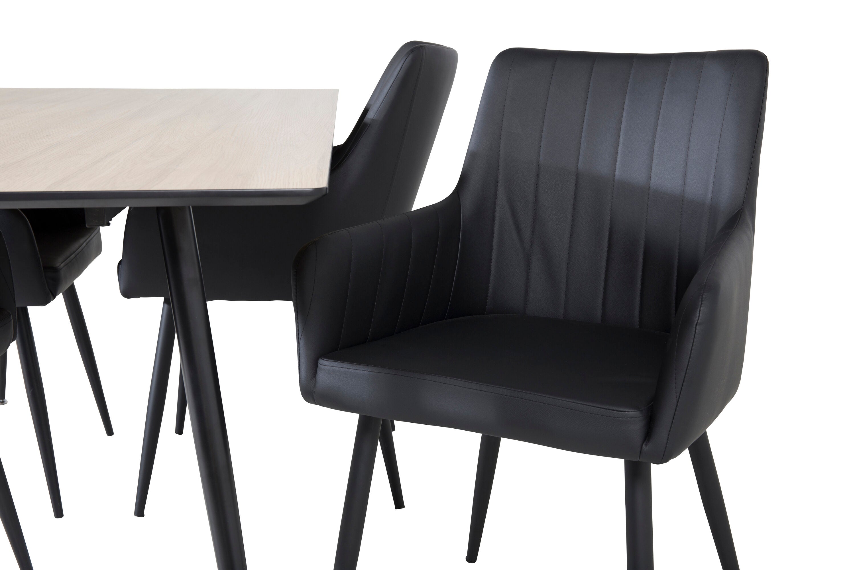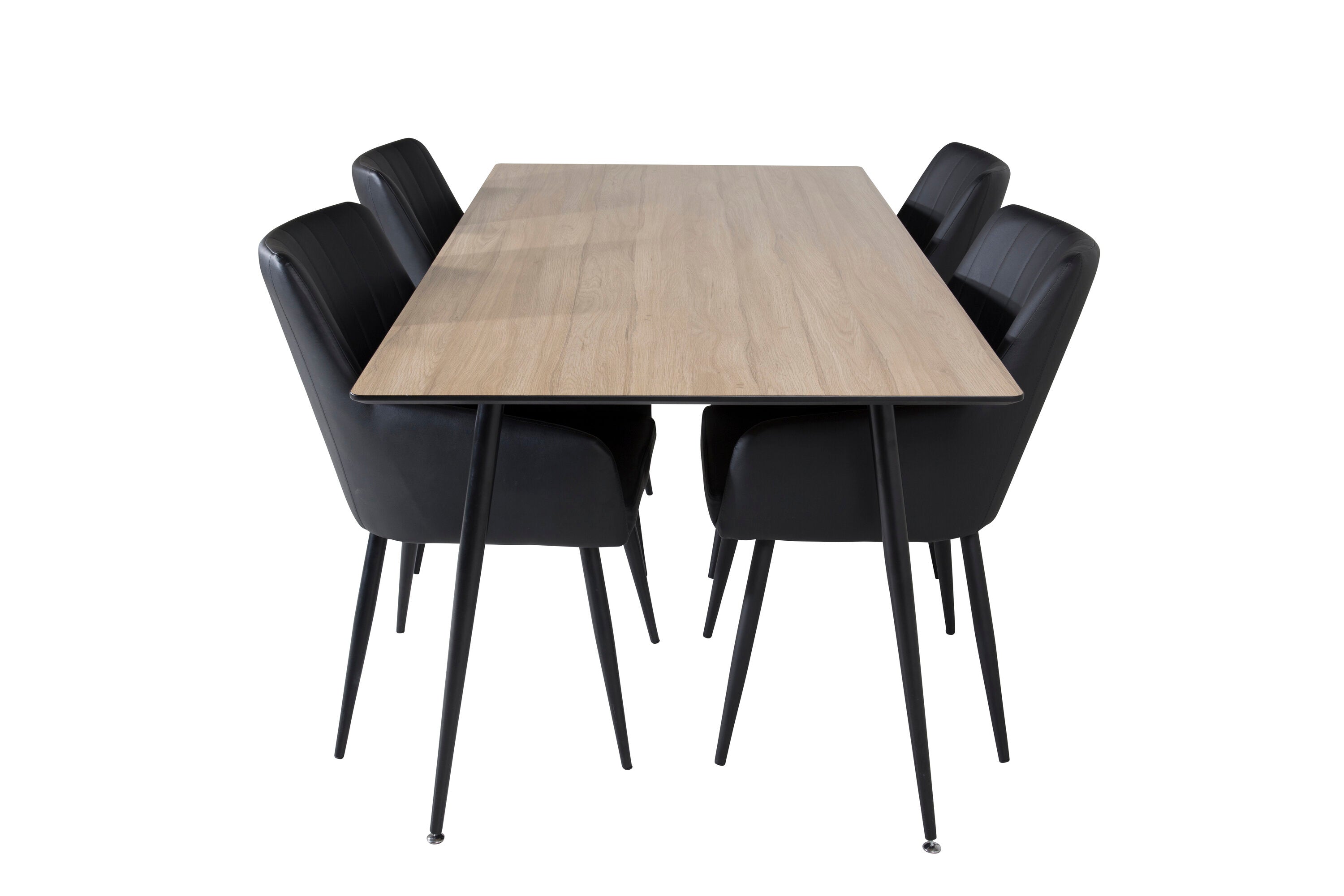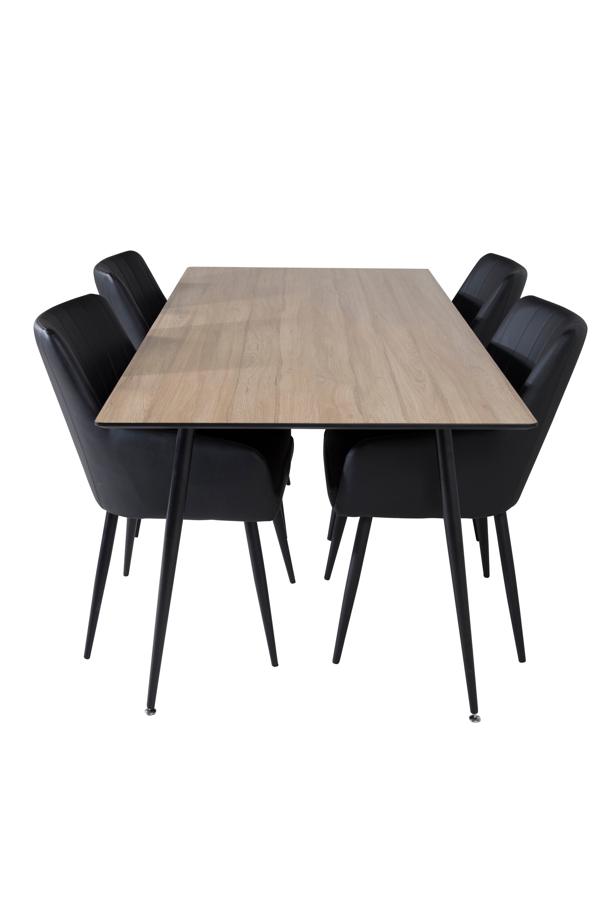 Jídelní stůl Silar - 180 cm - "Wood Look" Melamin / Černé nohy +Comfort - Jídelní židle 2-balení - černá/Černá _4