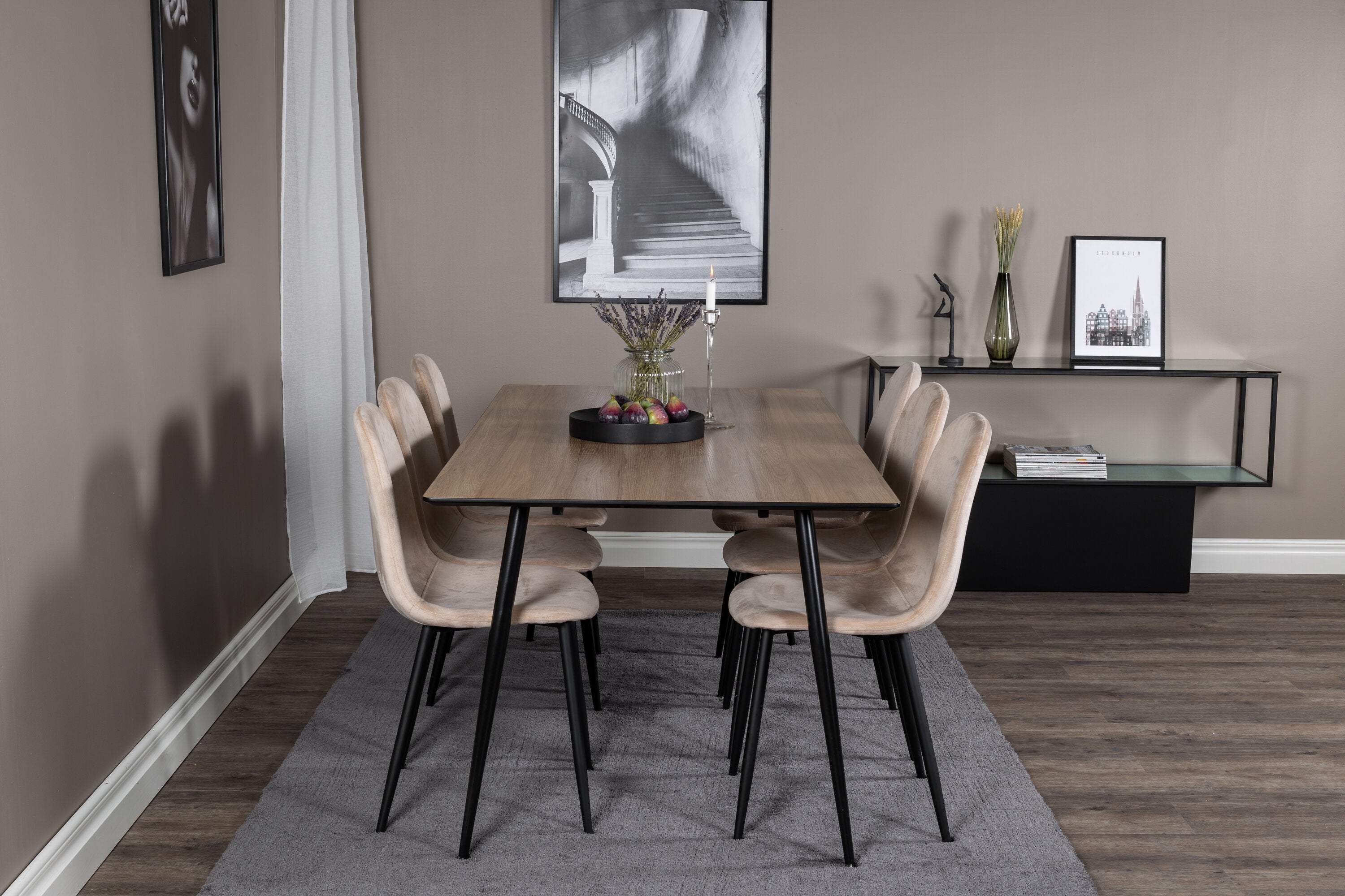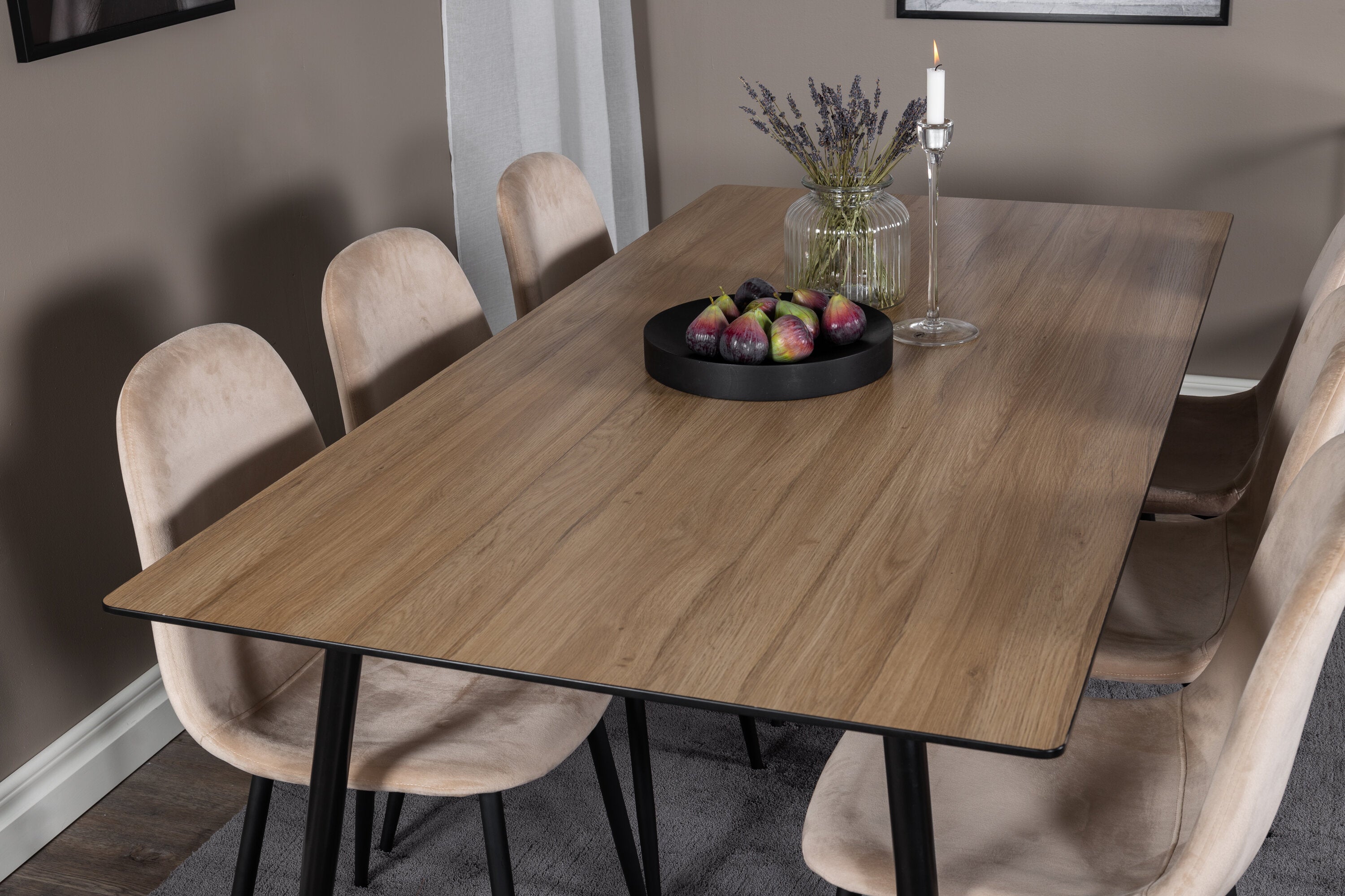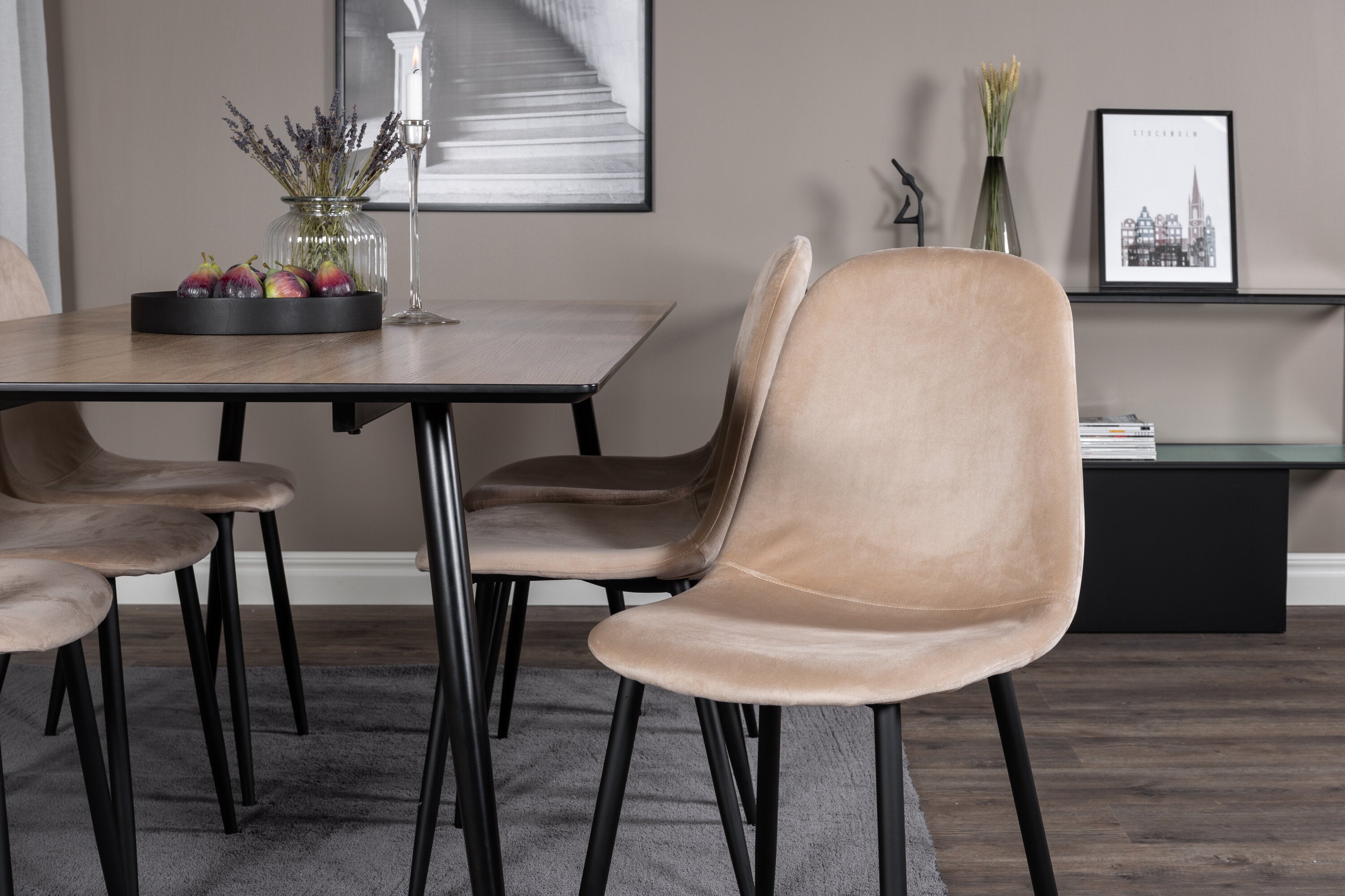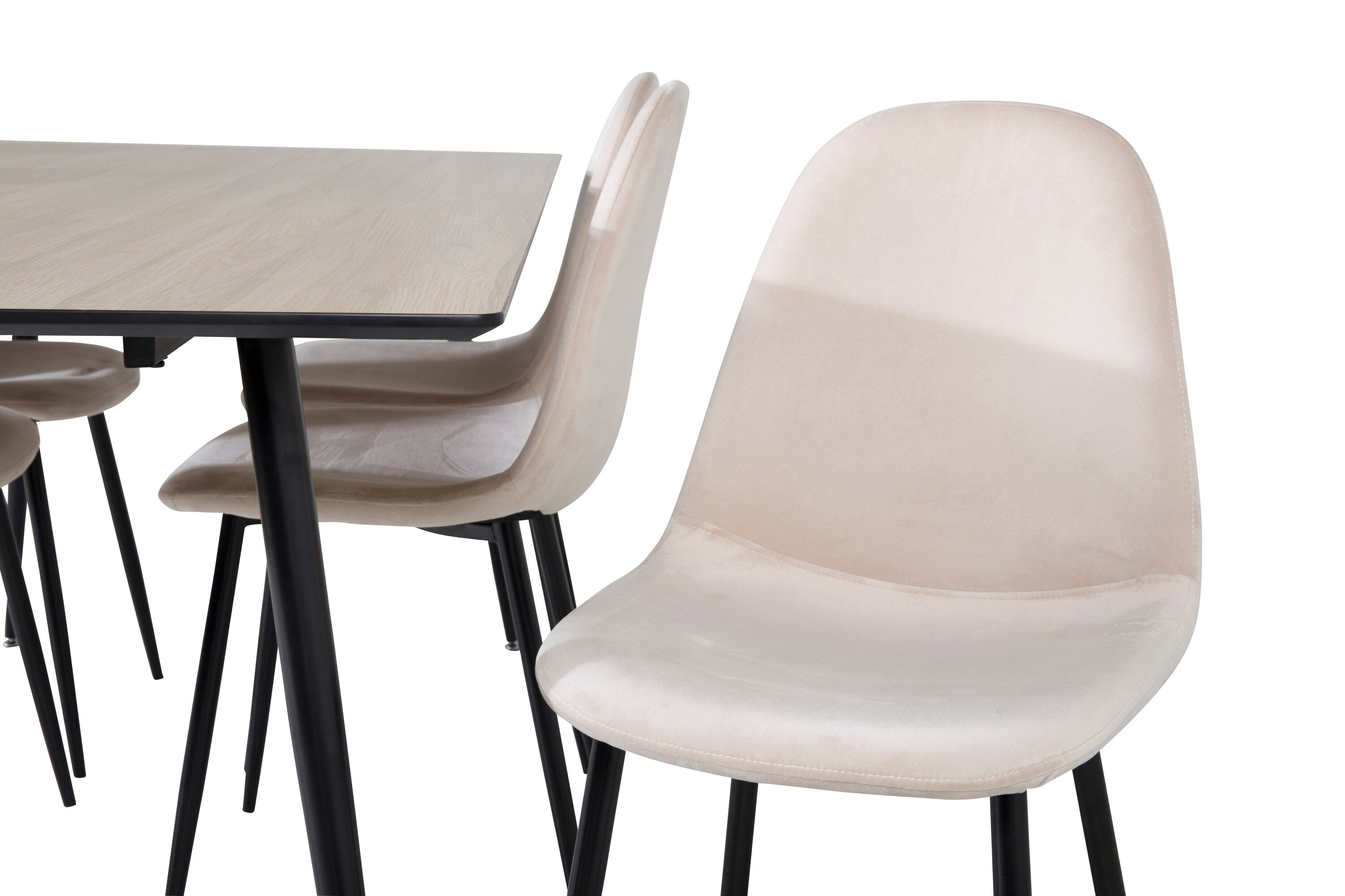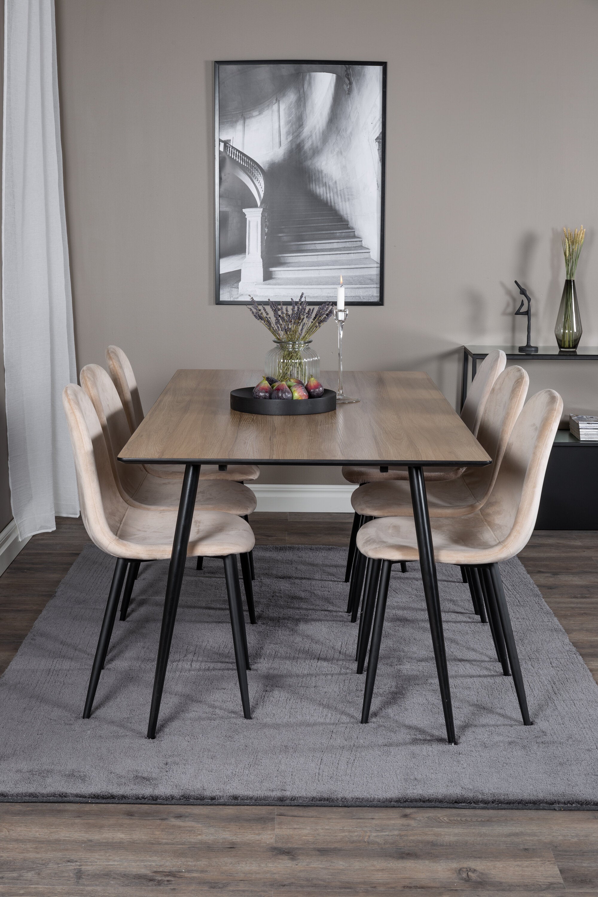 Jídelní stůl Silar - 180 cm - "Wood Look" melamin / černé nohy+jídelní židle Polar- černé nohy / béžový samet (ersätter 19902-880)_6