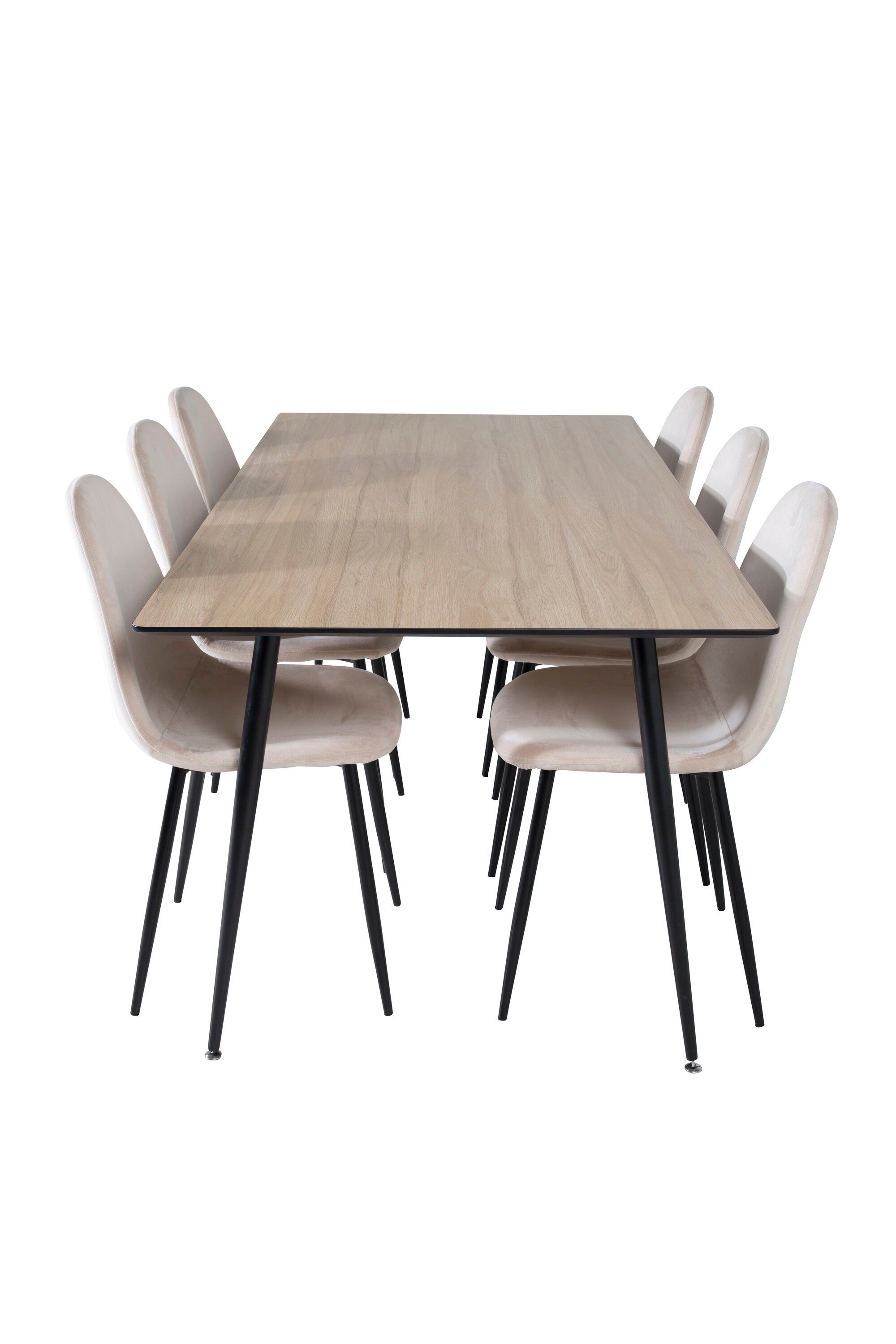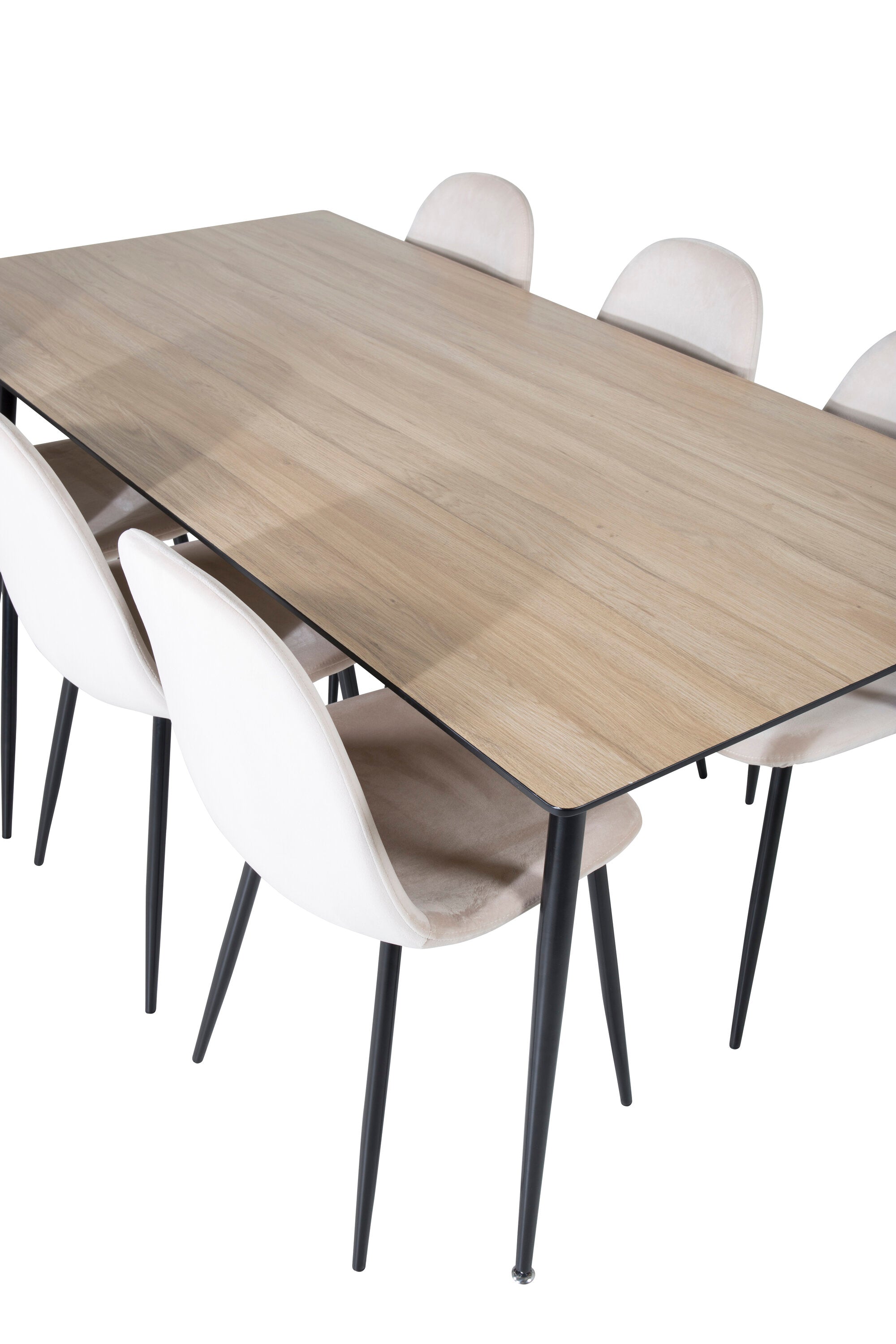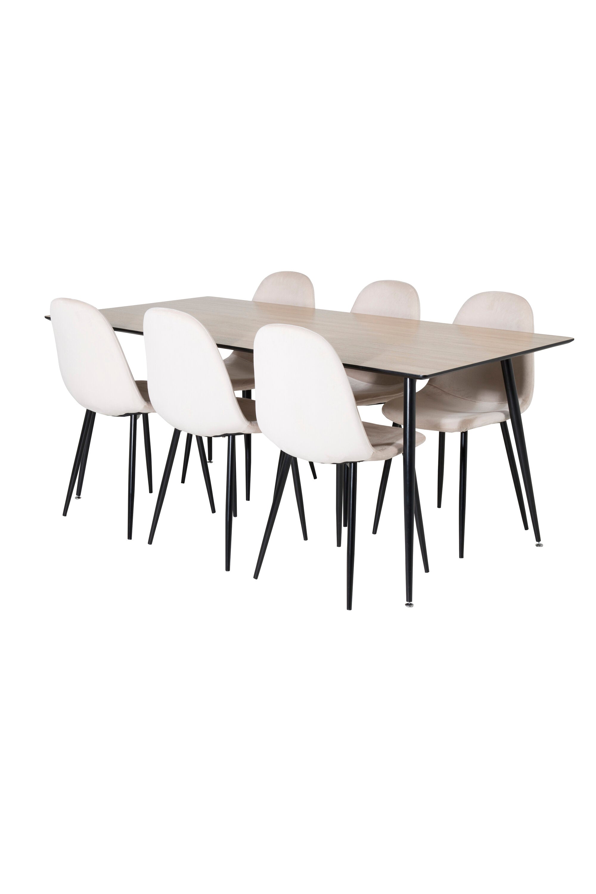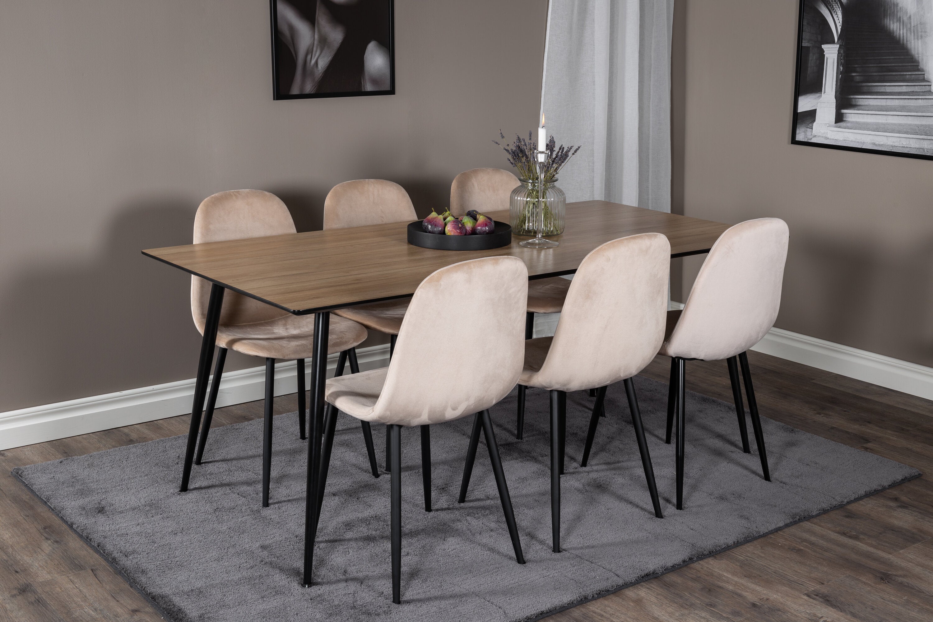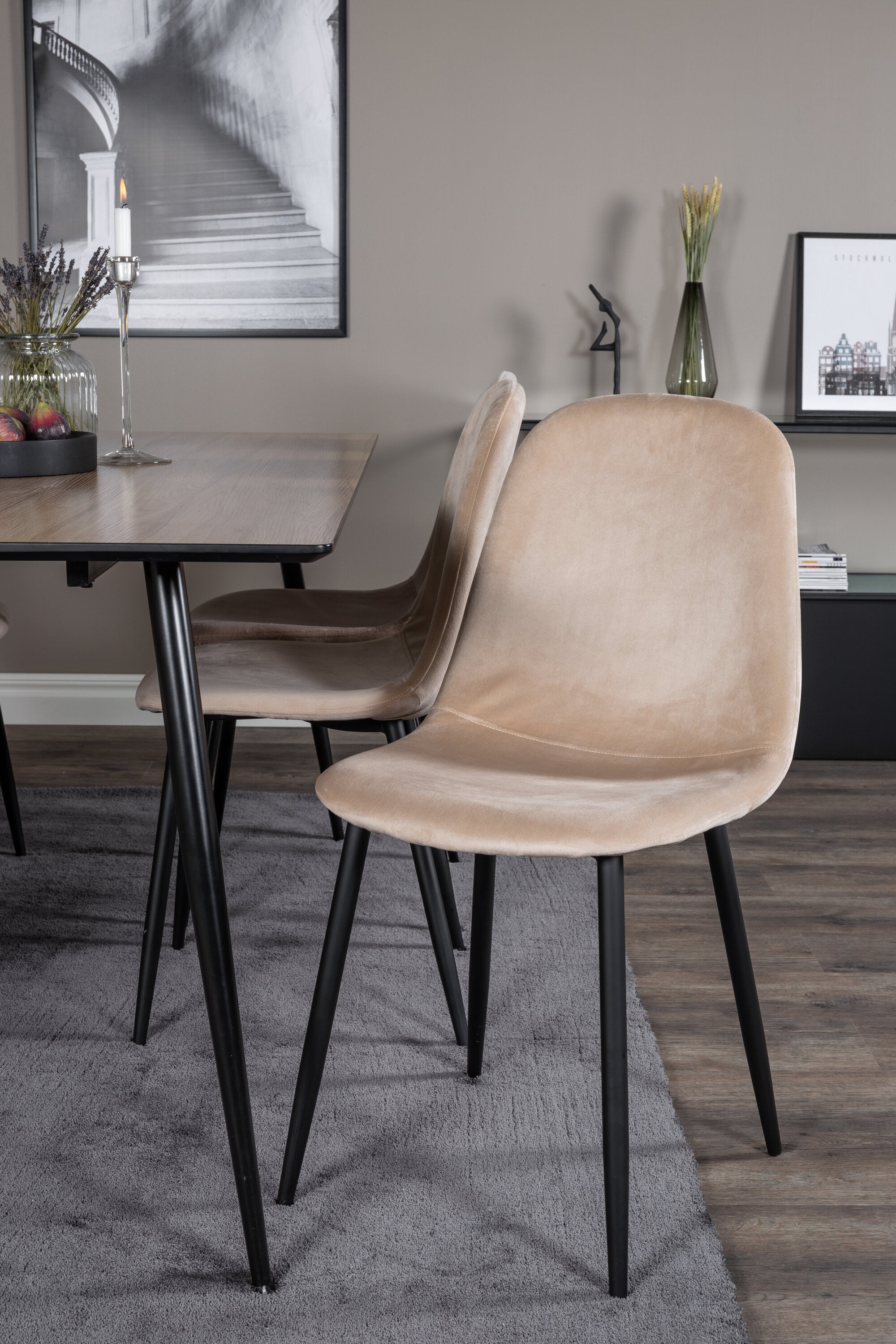 Jídelní stůl Silar - 180 cm - "Wood Look" melamin / černé nohy+jídelní židle Polar- černé nohy / béžový samet (ersätter 19902-880)_6