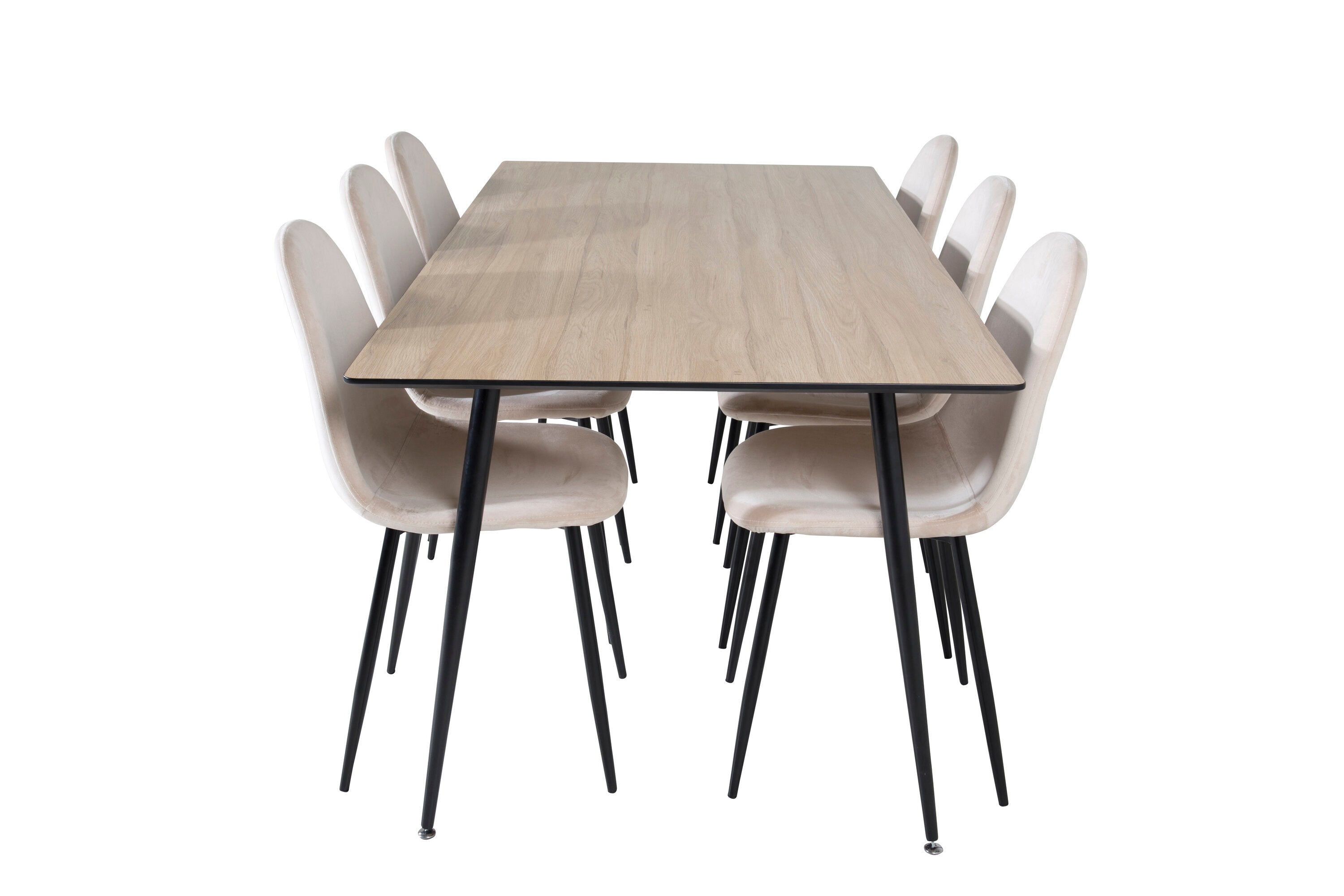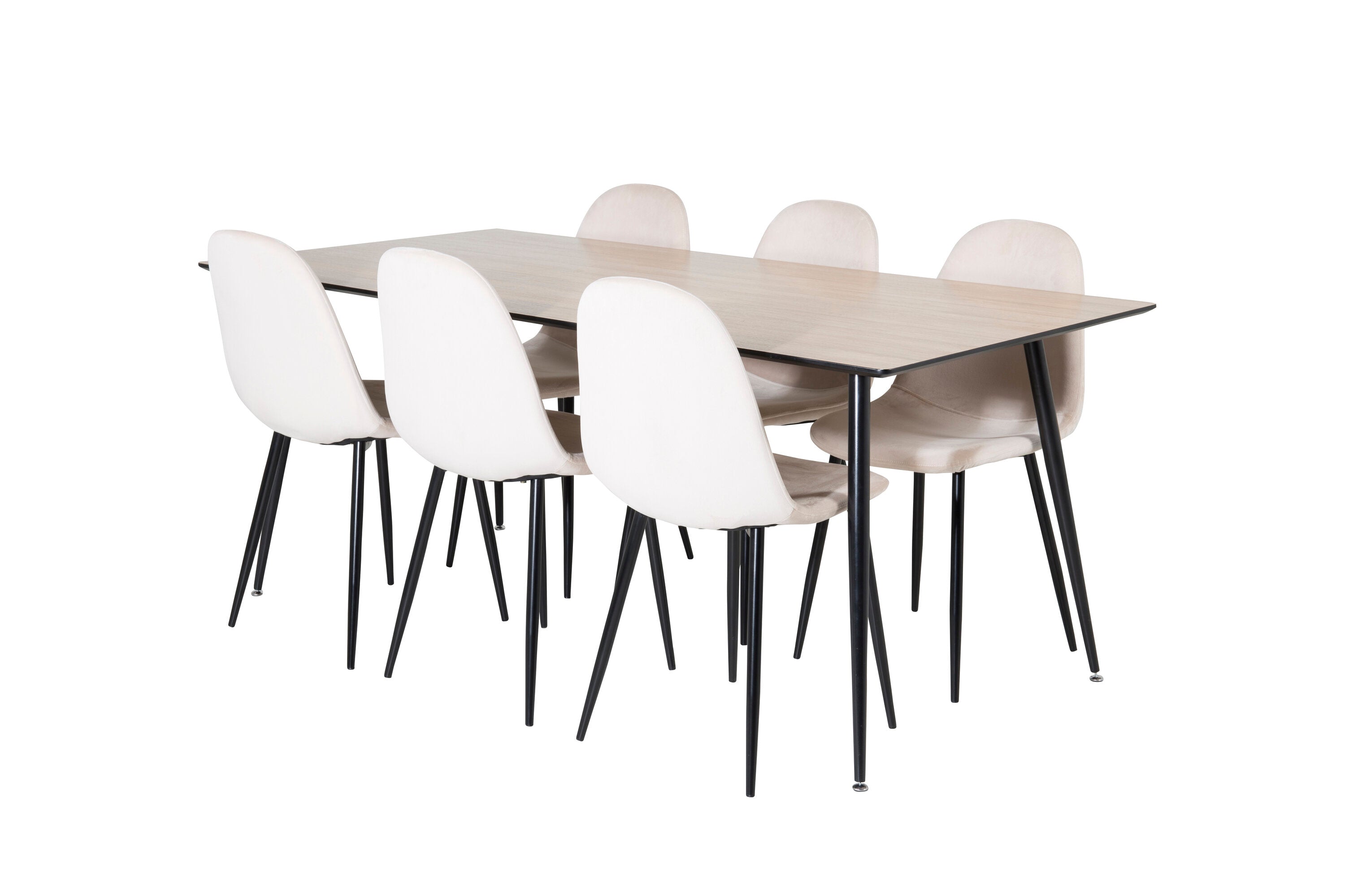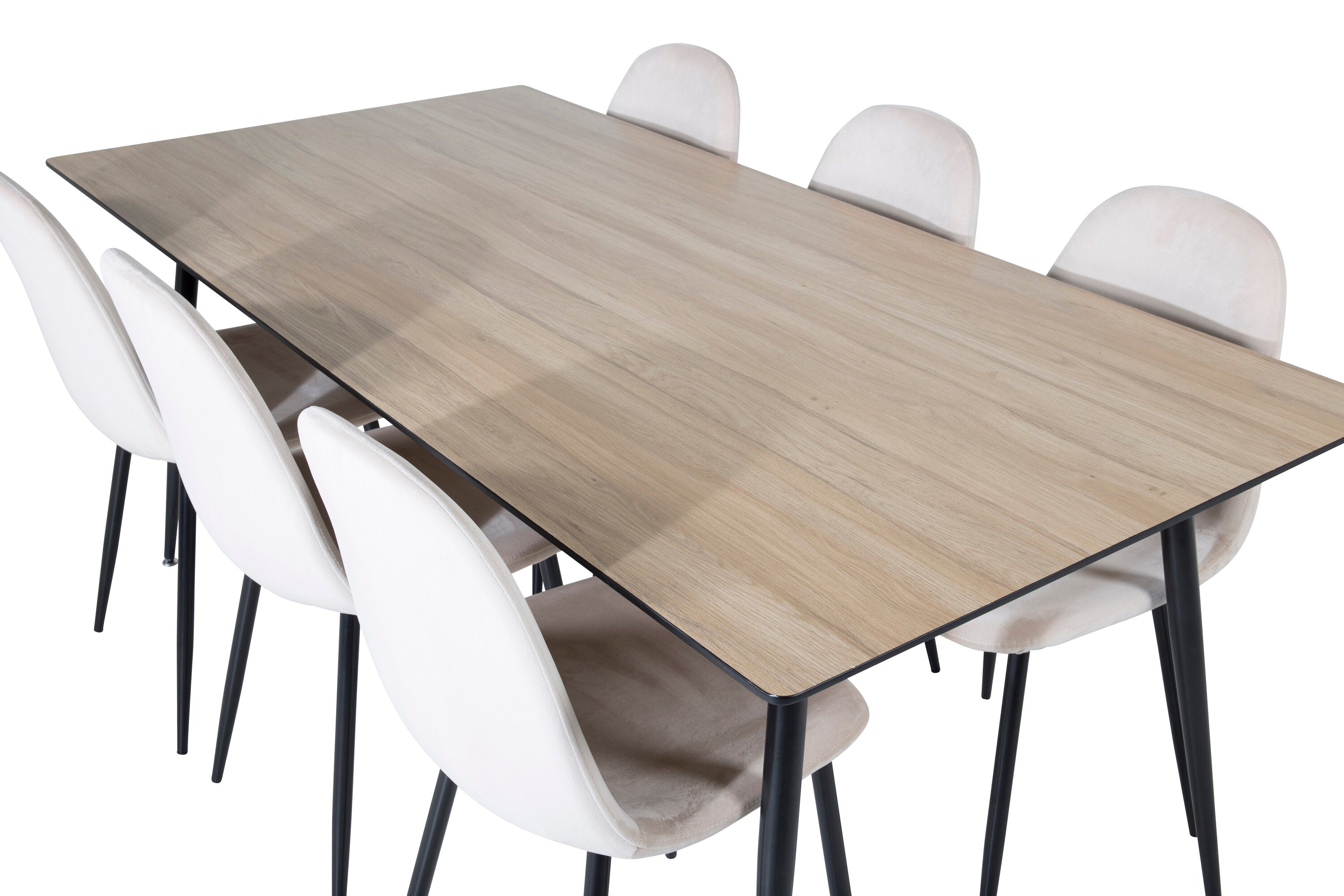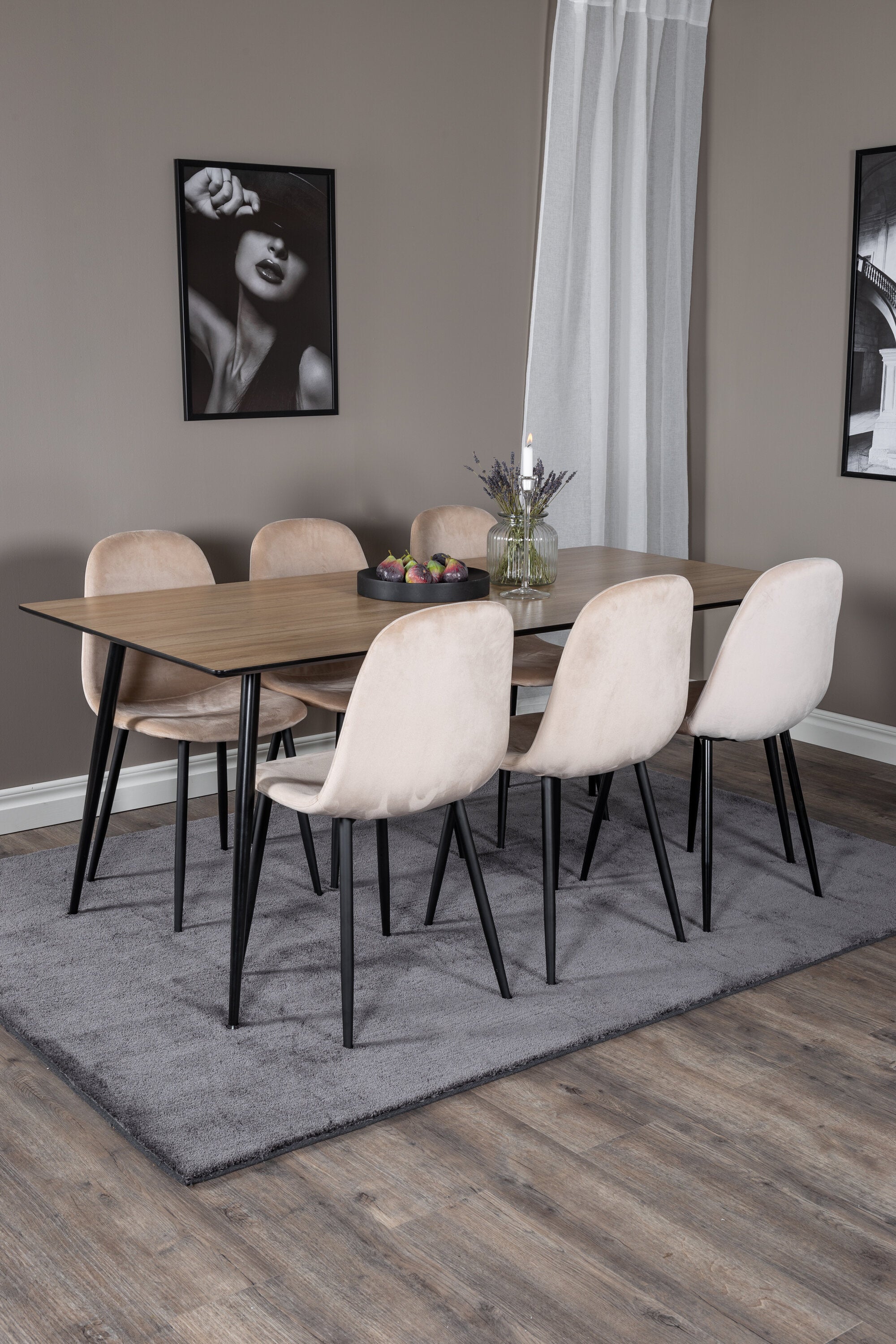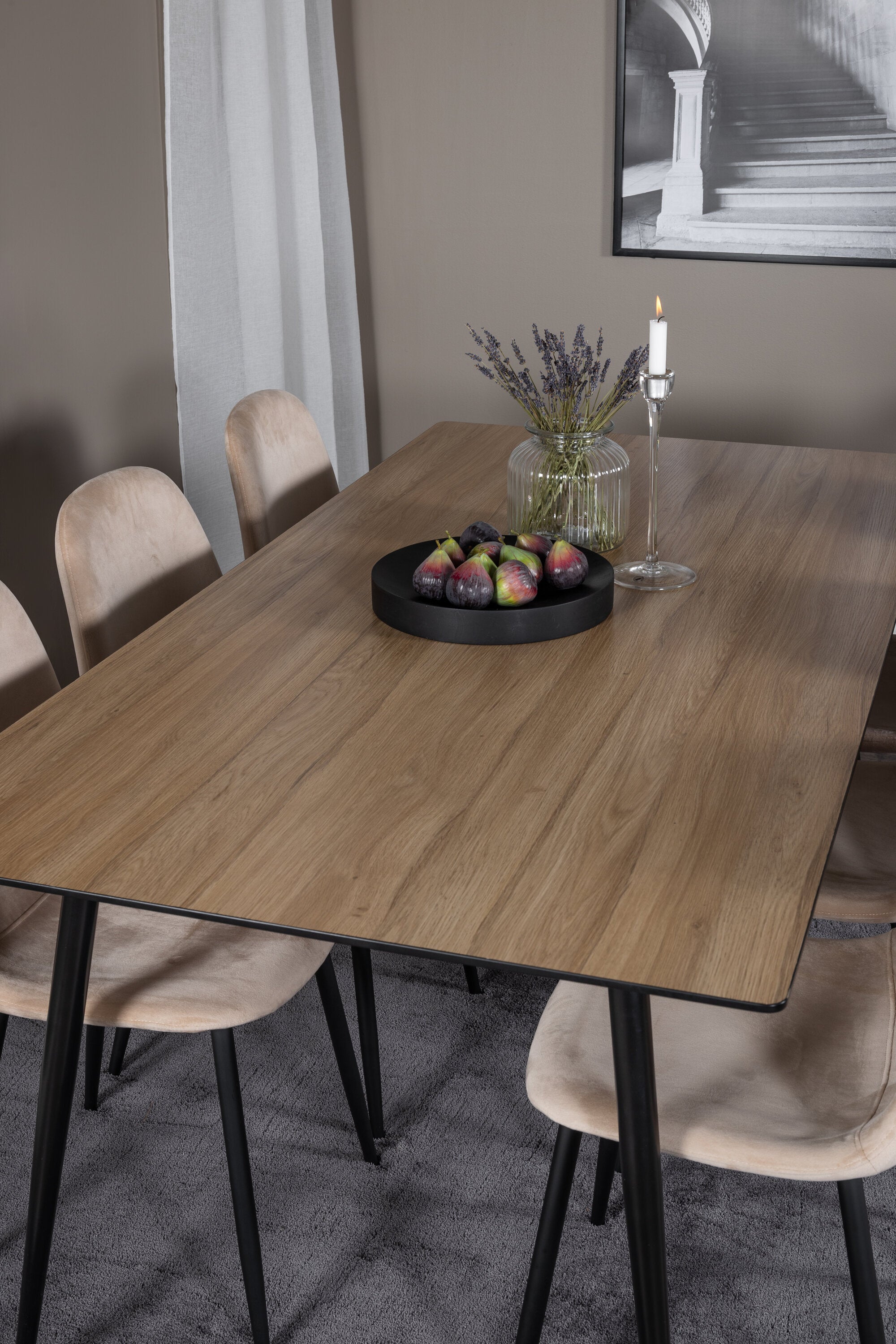 Jídelní stůl Silar - 180 cm - "Wood Look" melamin / černé nohy+jídelní židle Polar- černé nohy / béžový samet (ersätter 19902-880)_6