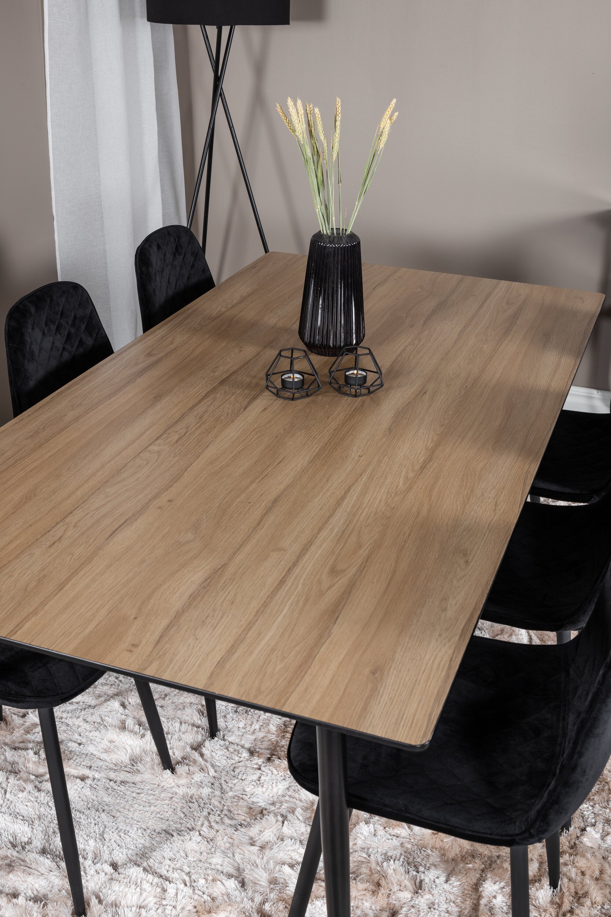 Jídelní stůl Silar - 180 cm - "Wood Look" melamin / černé nohy+jídelní židle Polar Diamond - černé nohy - Black Velvet_6