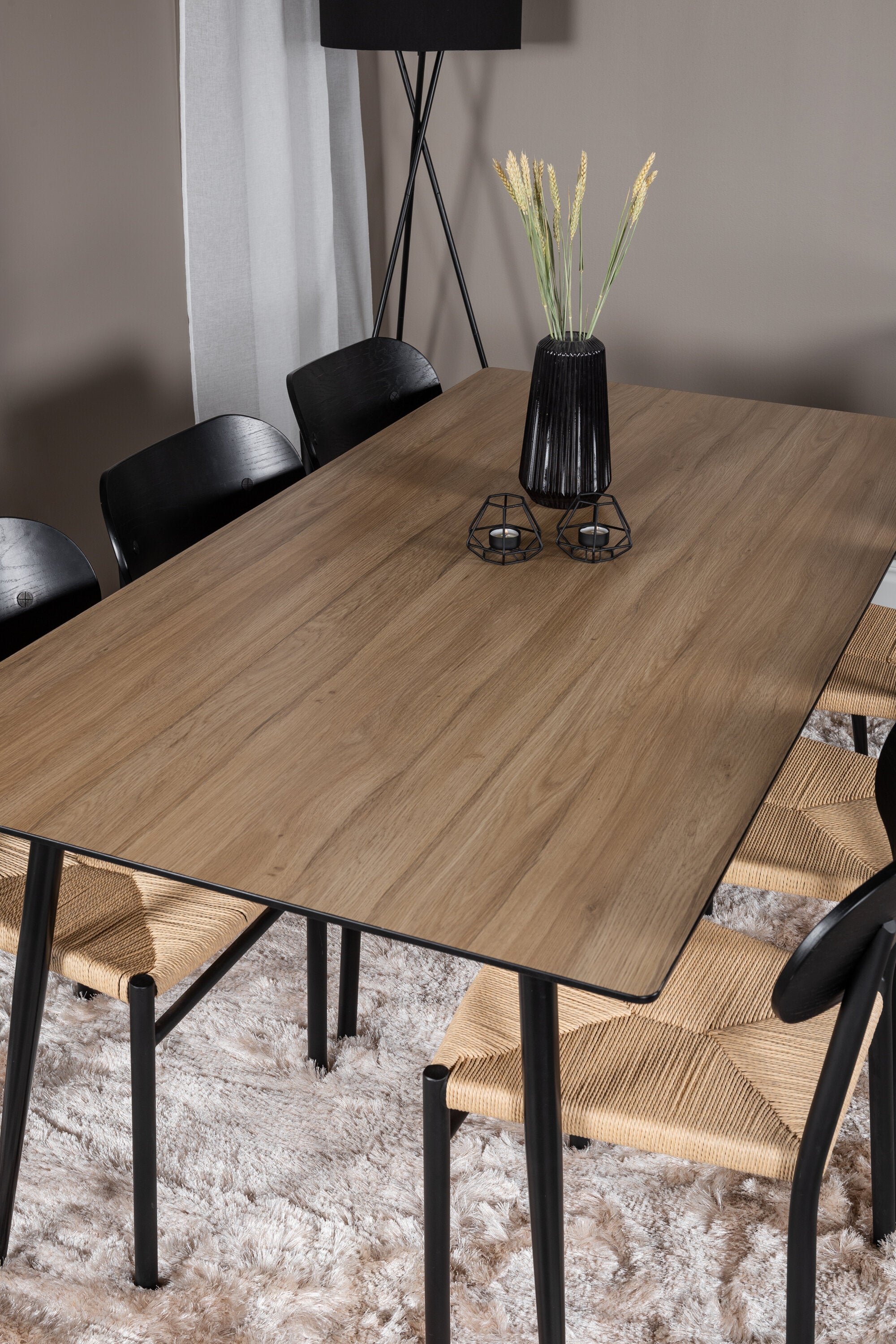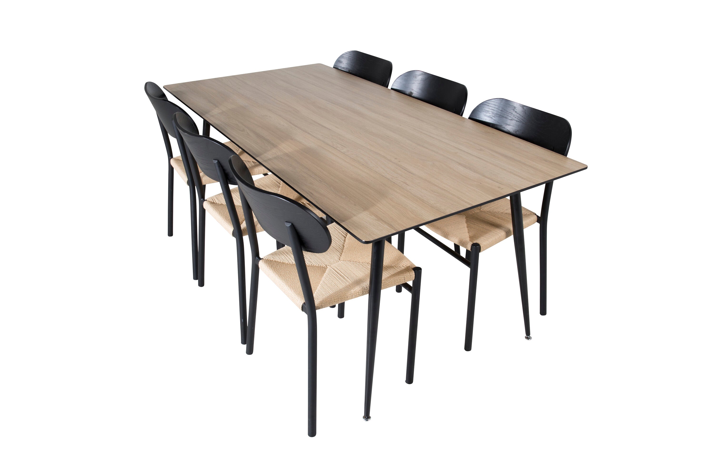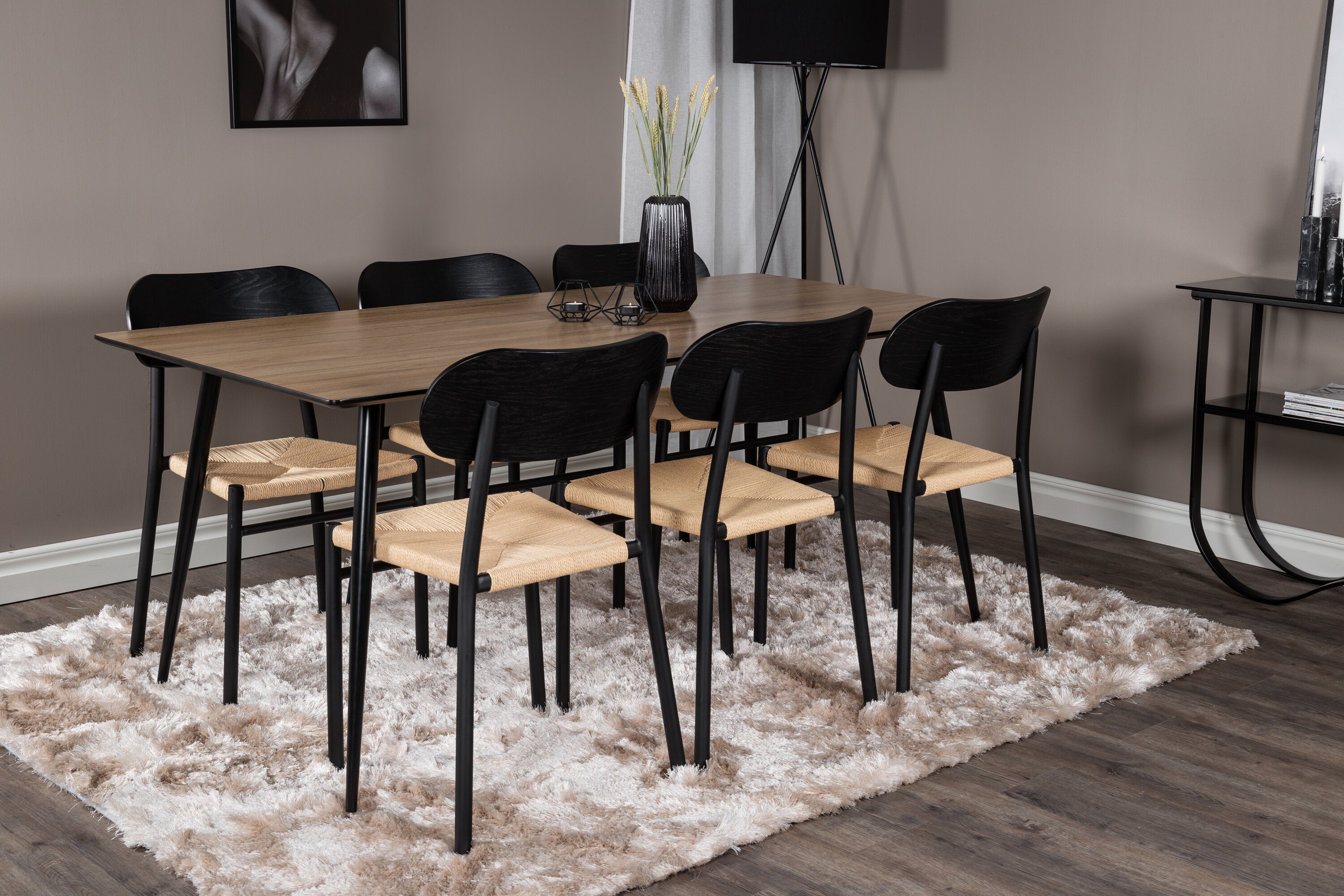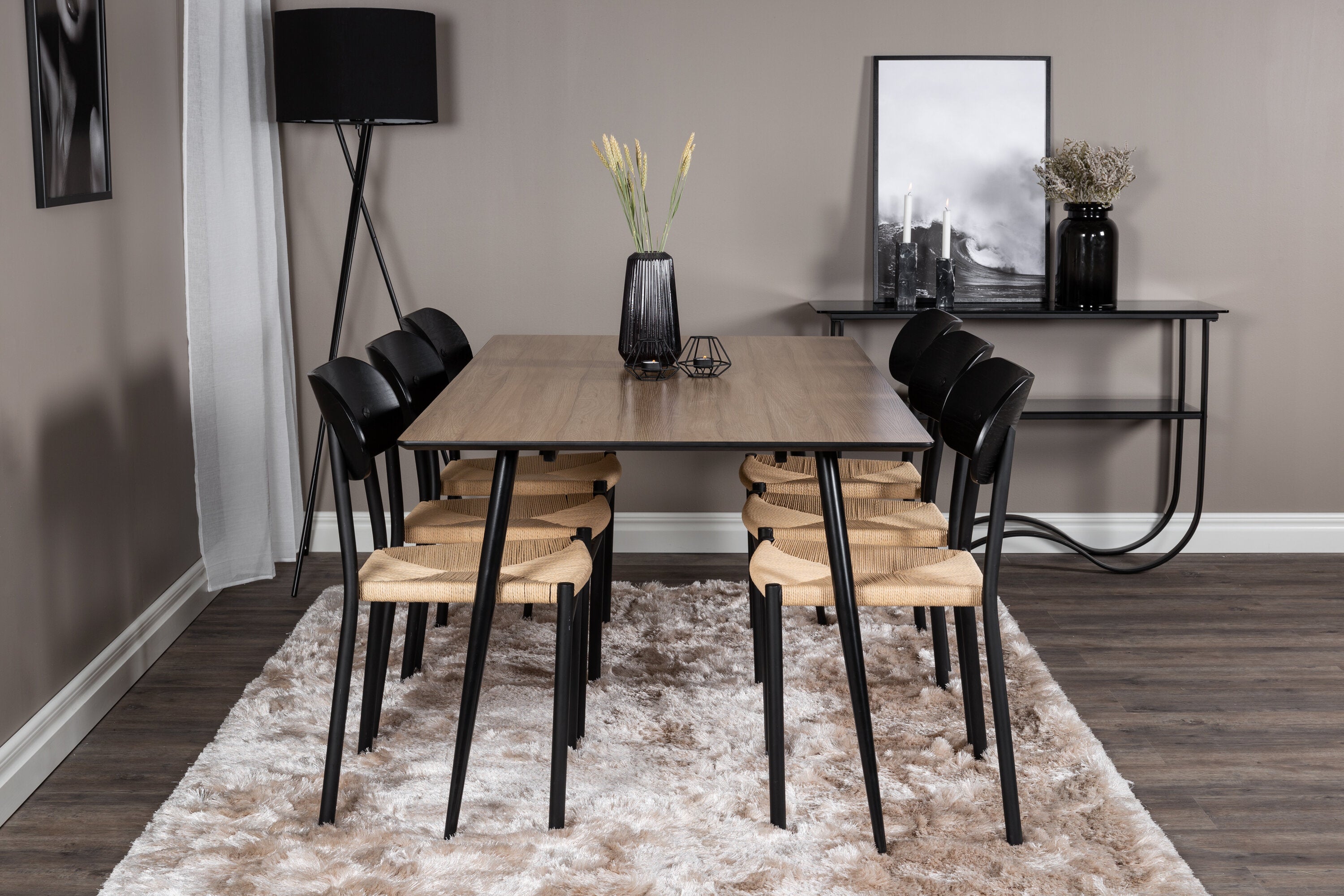 Jídelní stůl Silar - 180 cm - "Wood Look" melamin / černé nohy + jídelní židle Polly - černá / přírodní _6