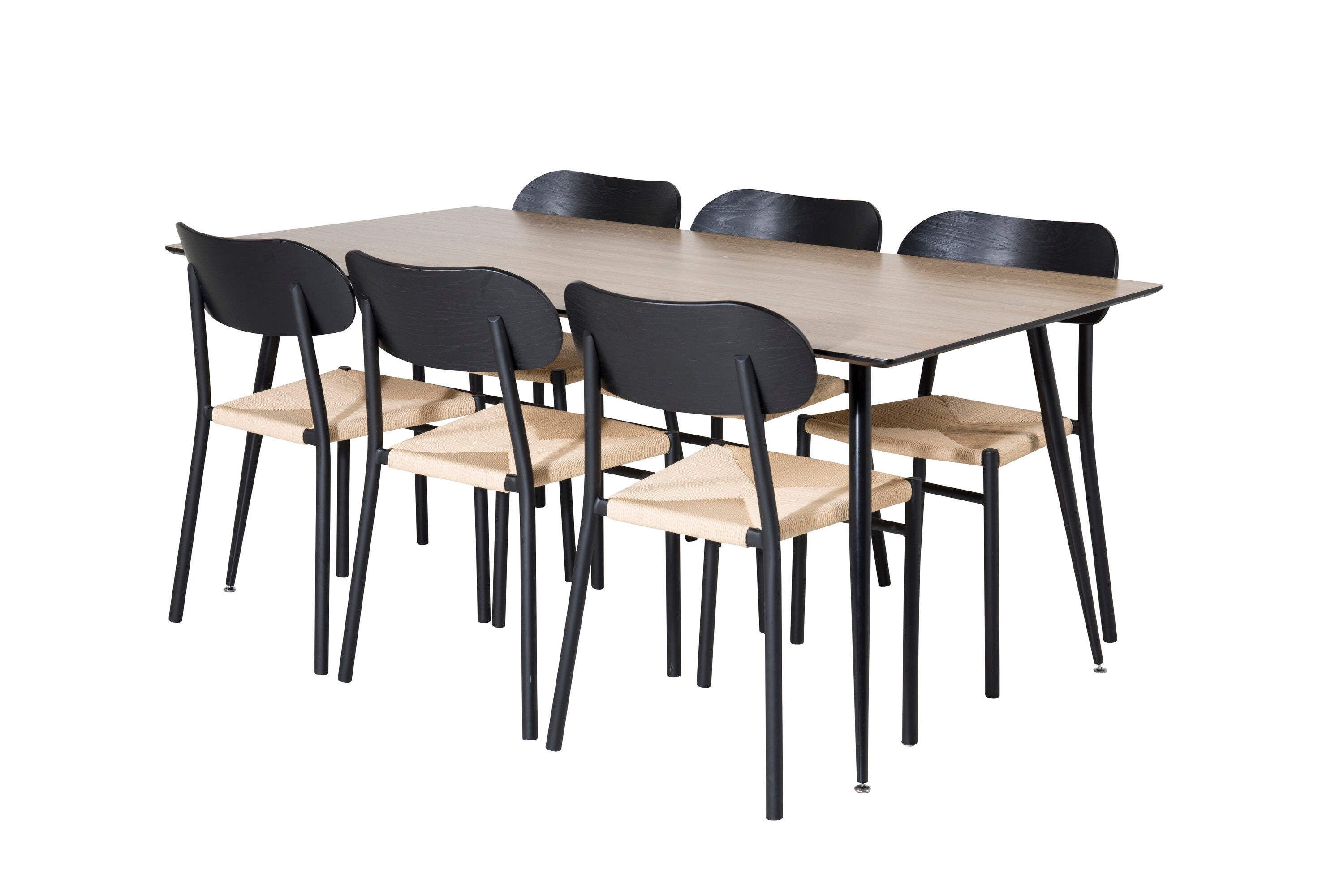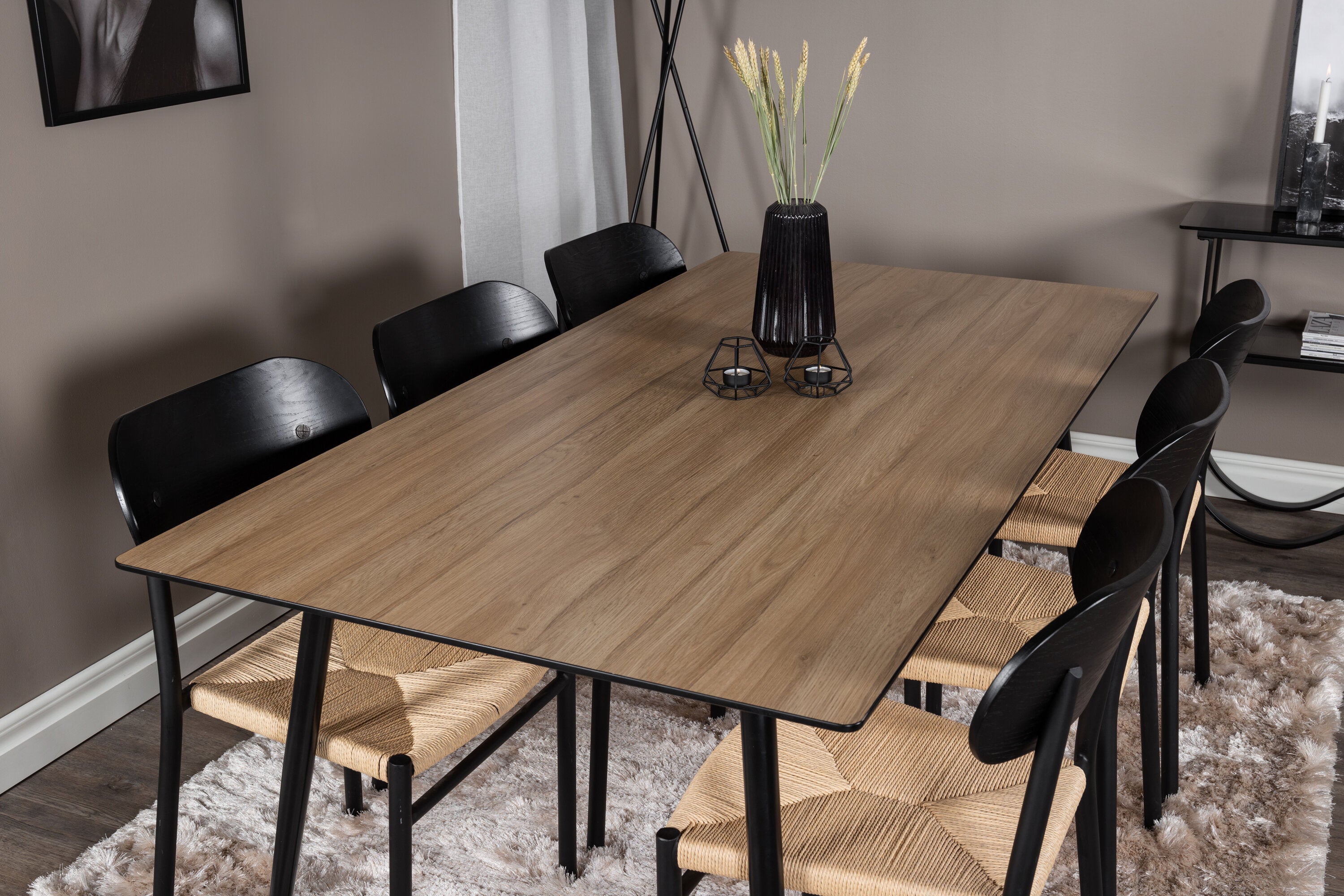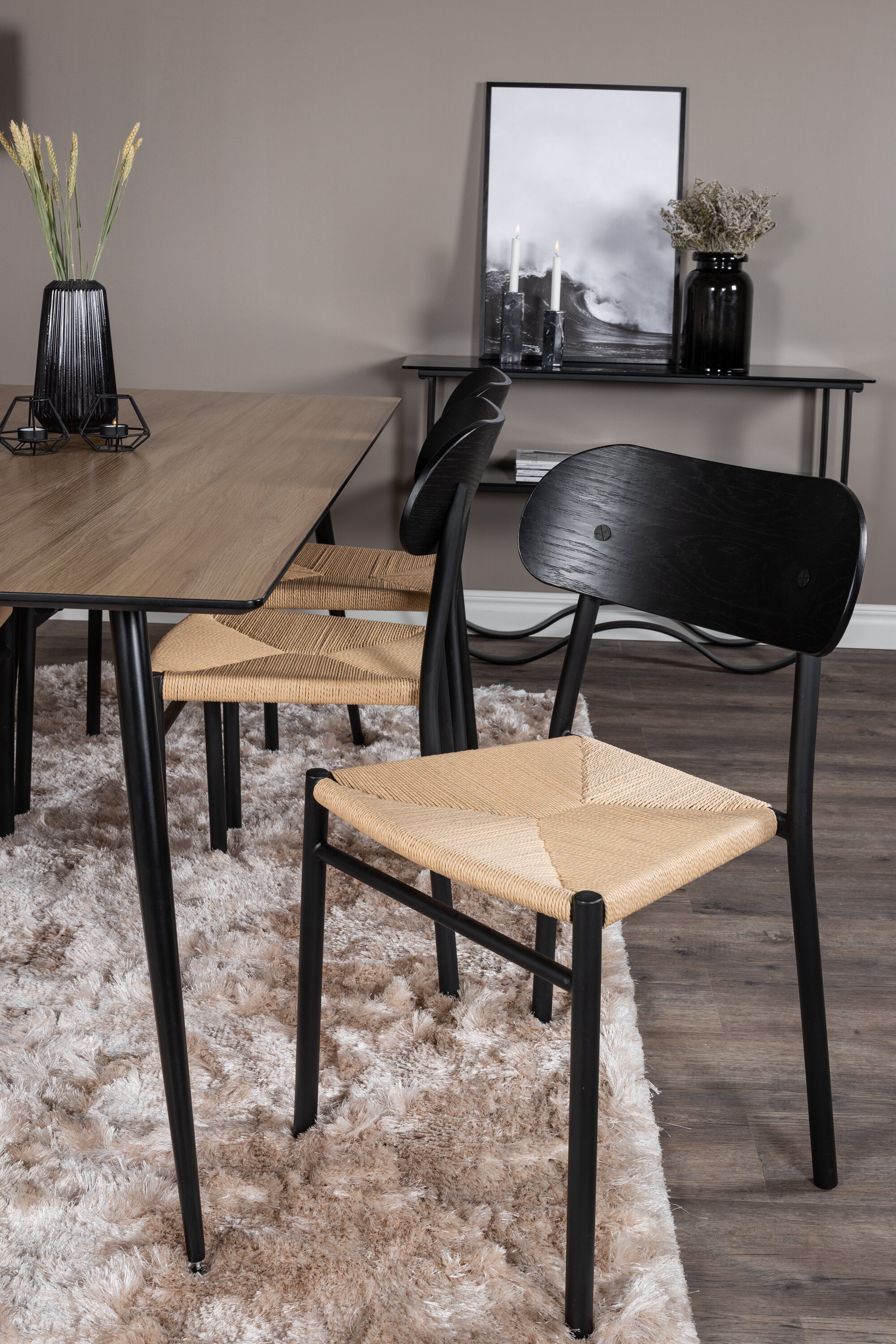 Jídelní stůl Silar - 180 cm - "Wood Look" melamin / černé nohy + jídelní židle Polly - černá / přírodní _6
