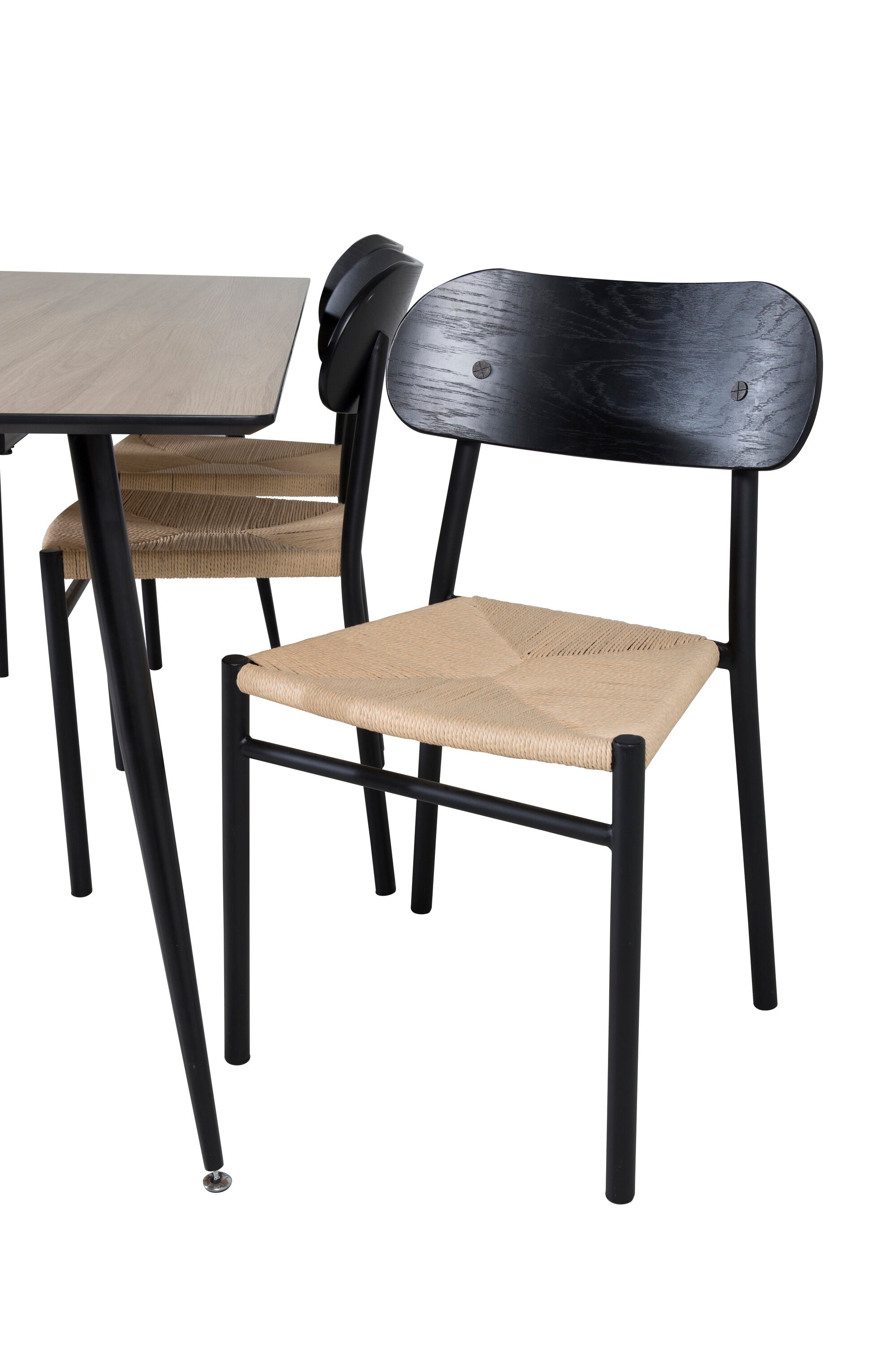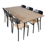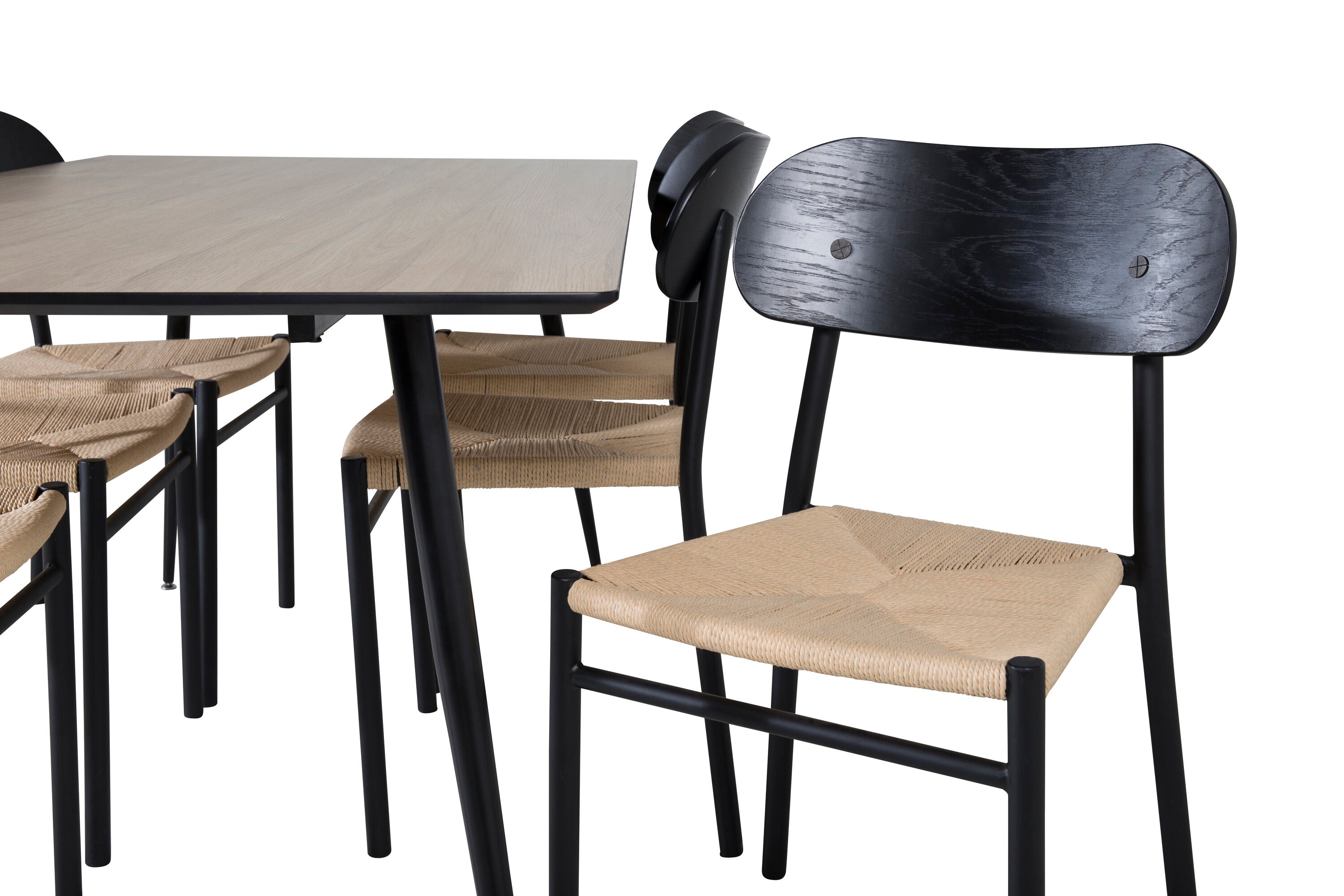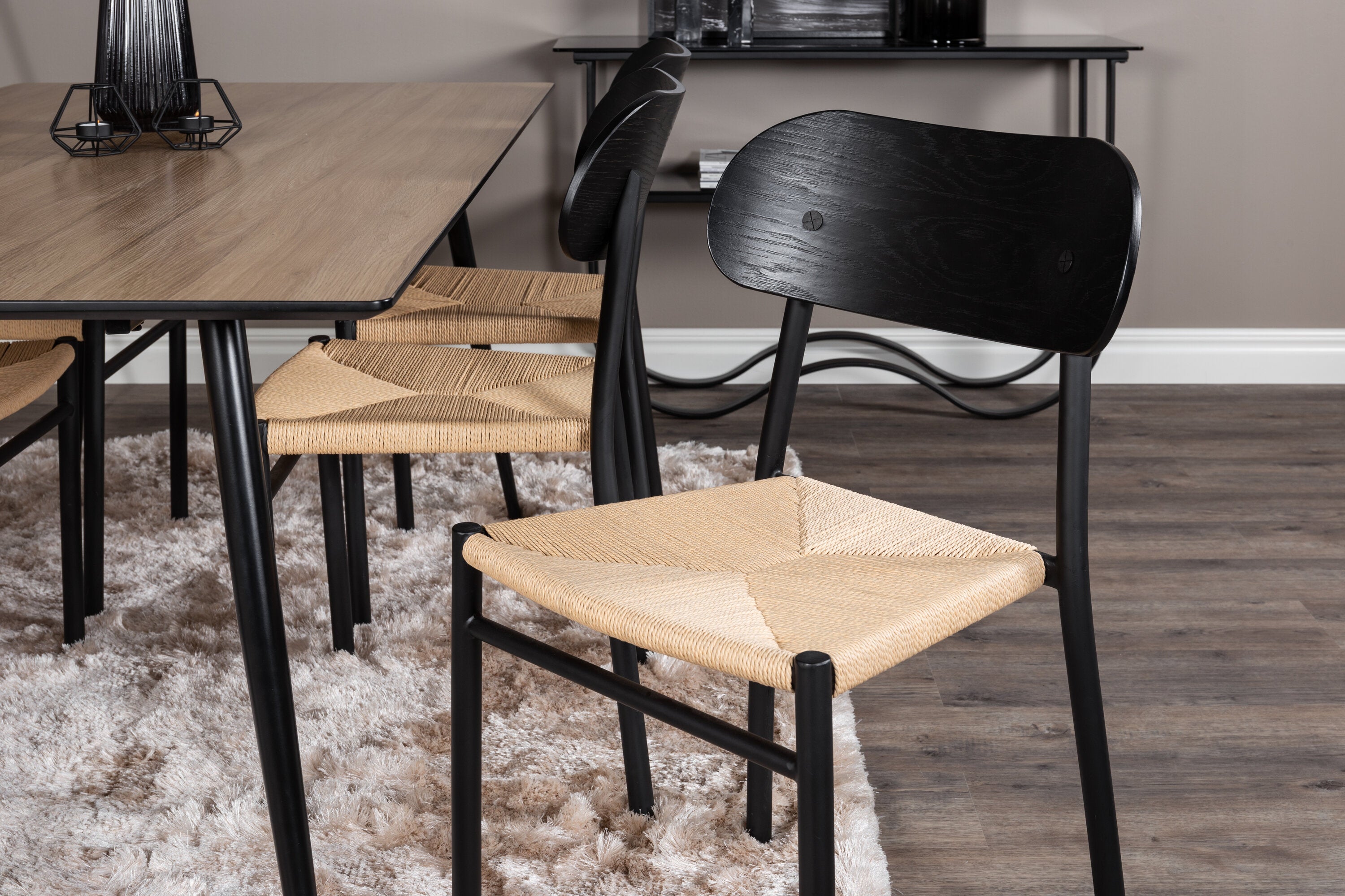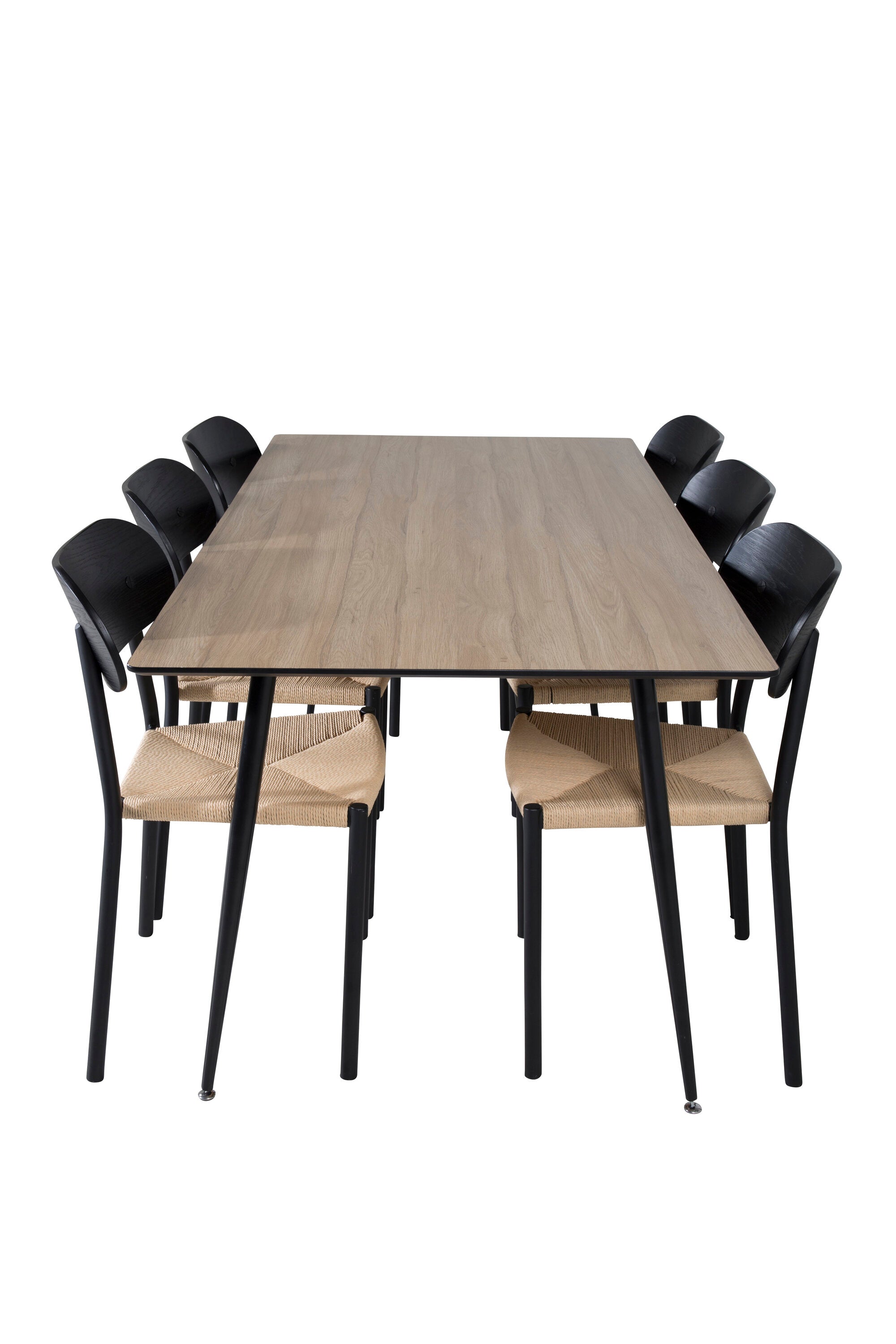 Jídelní stůl Silar - 180 cm - "Wood Look" melamin / černé nohy + jídelní židle Polly - černá / přírodní _6