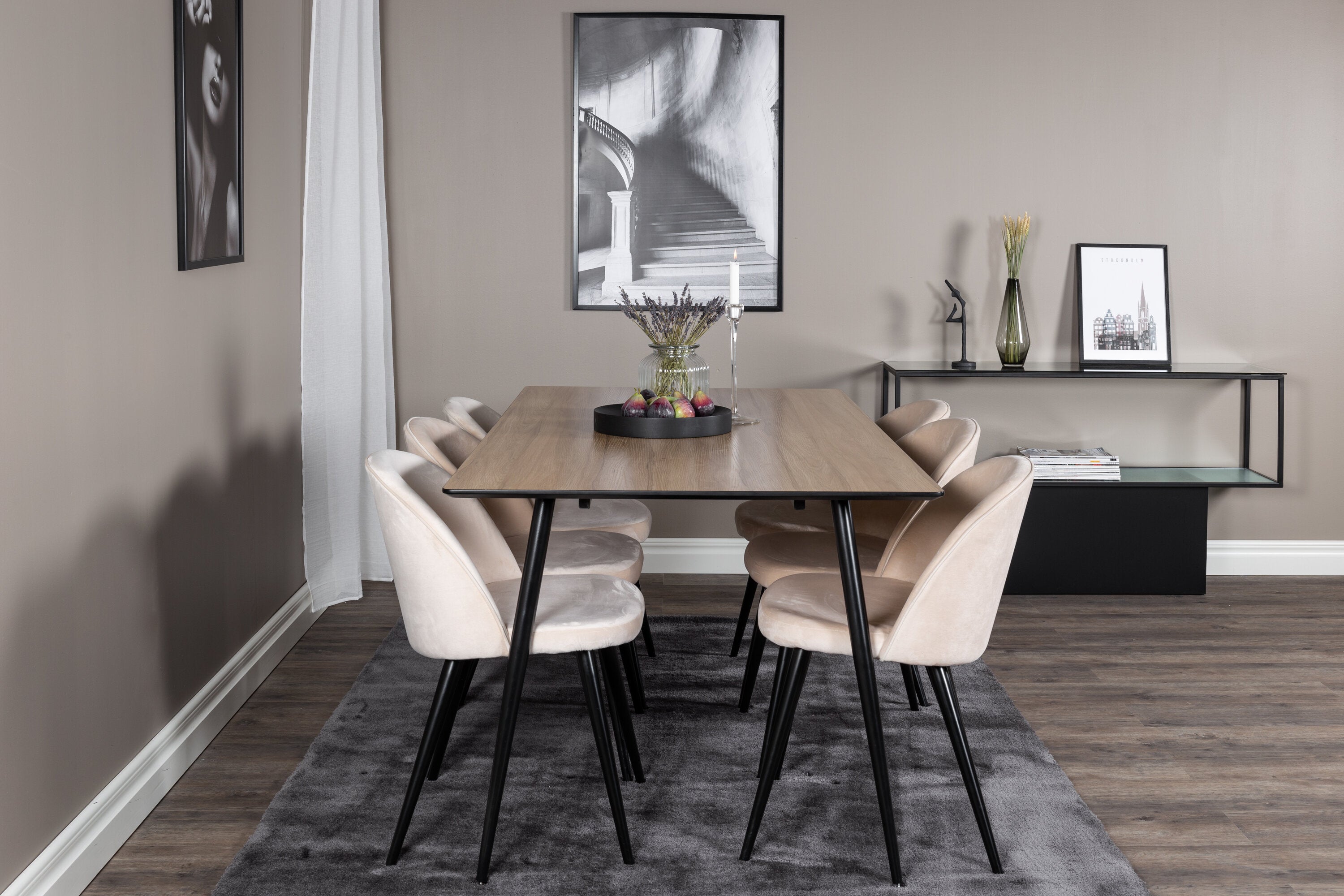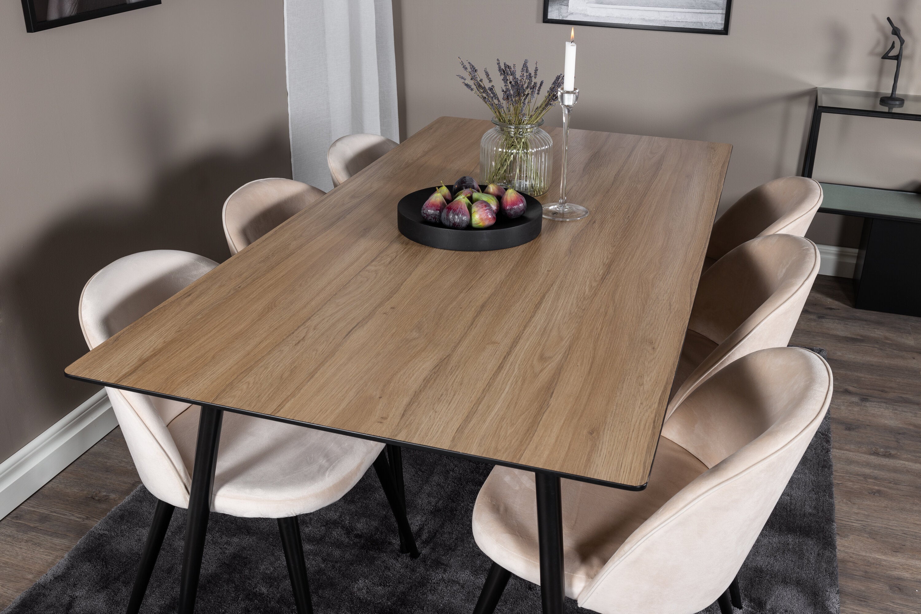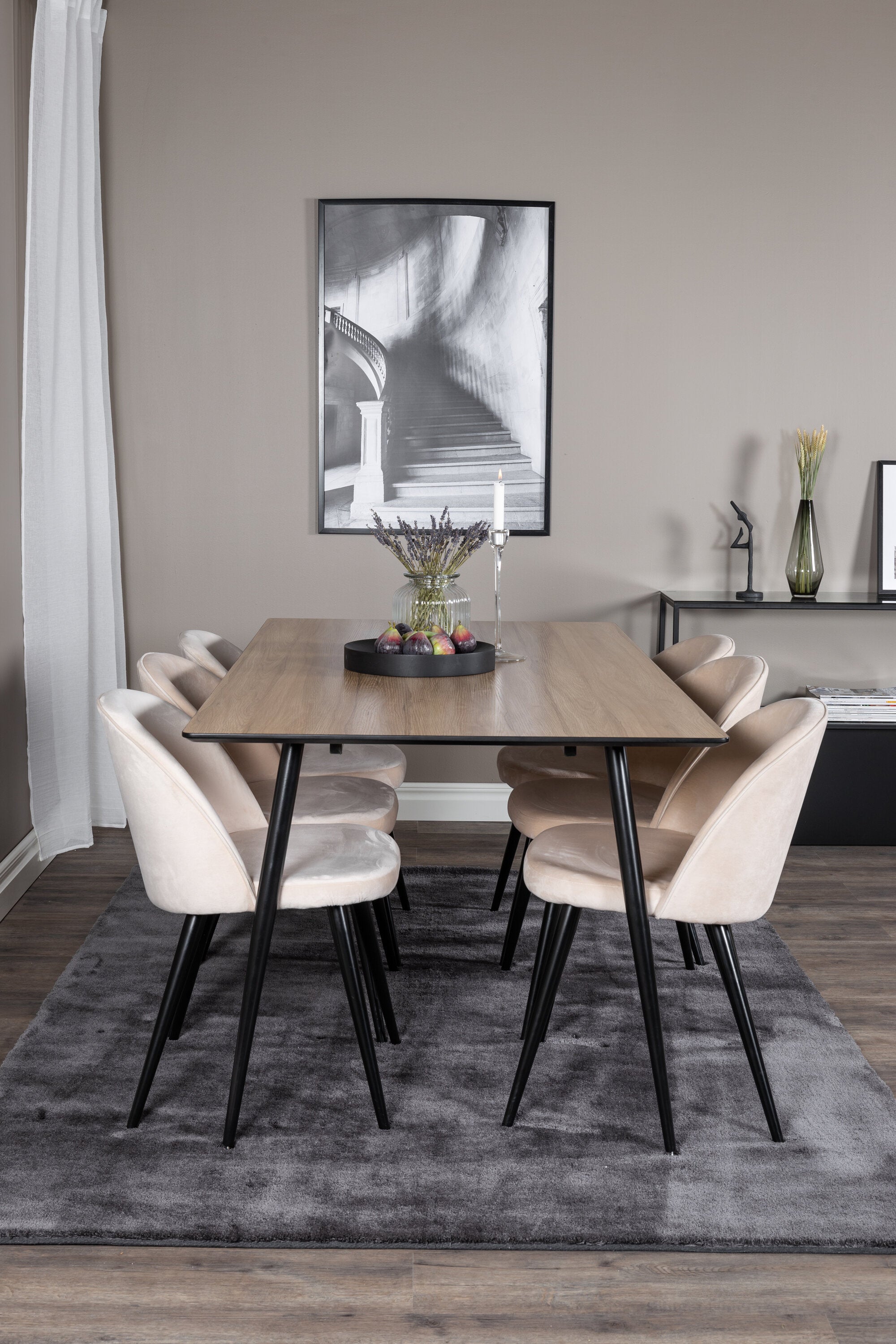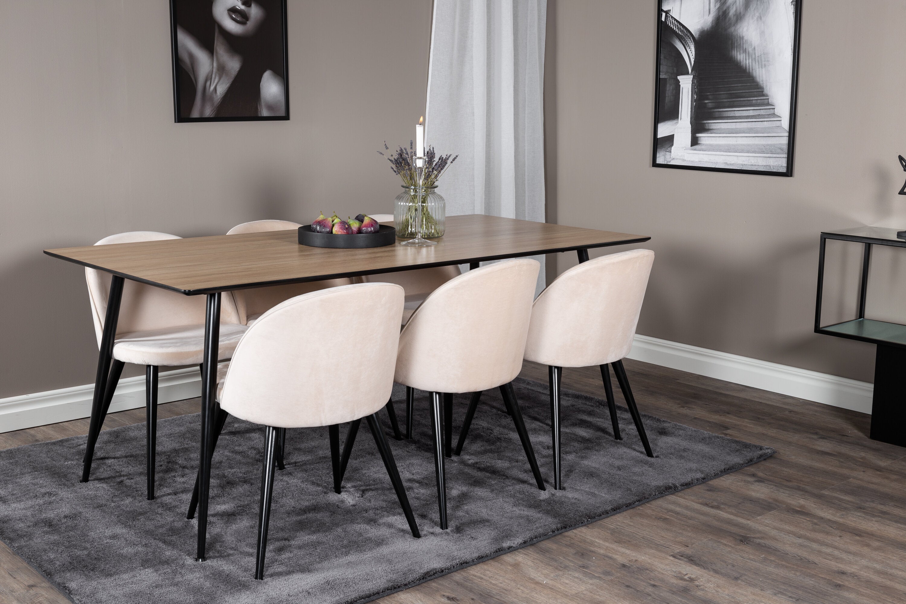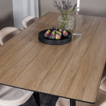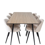 Jídelní stůl Silar - 180 cm - "Wood Look" melamin / černé nohy + sametová jídelní židle - béžová / černá_6