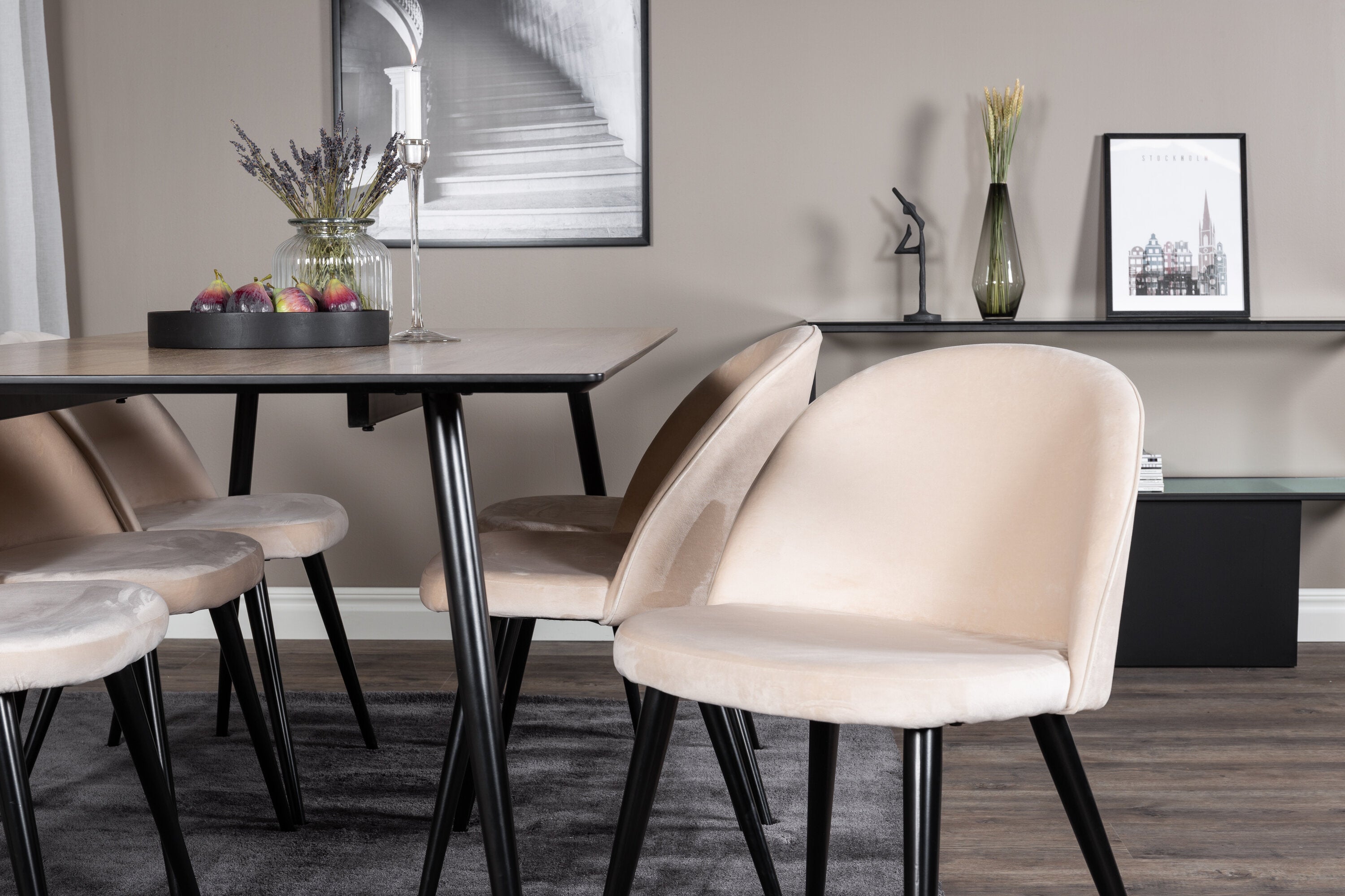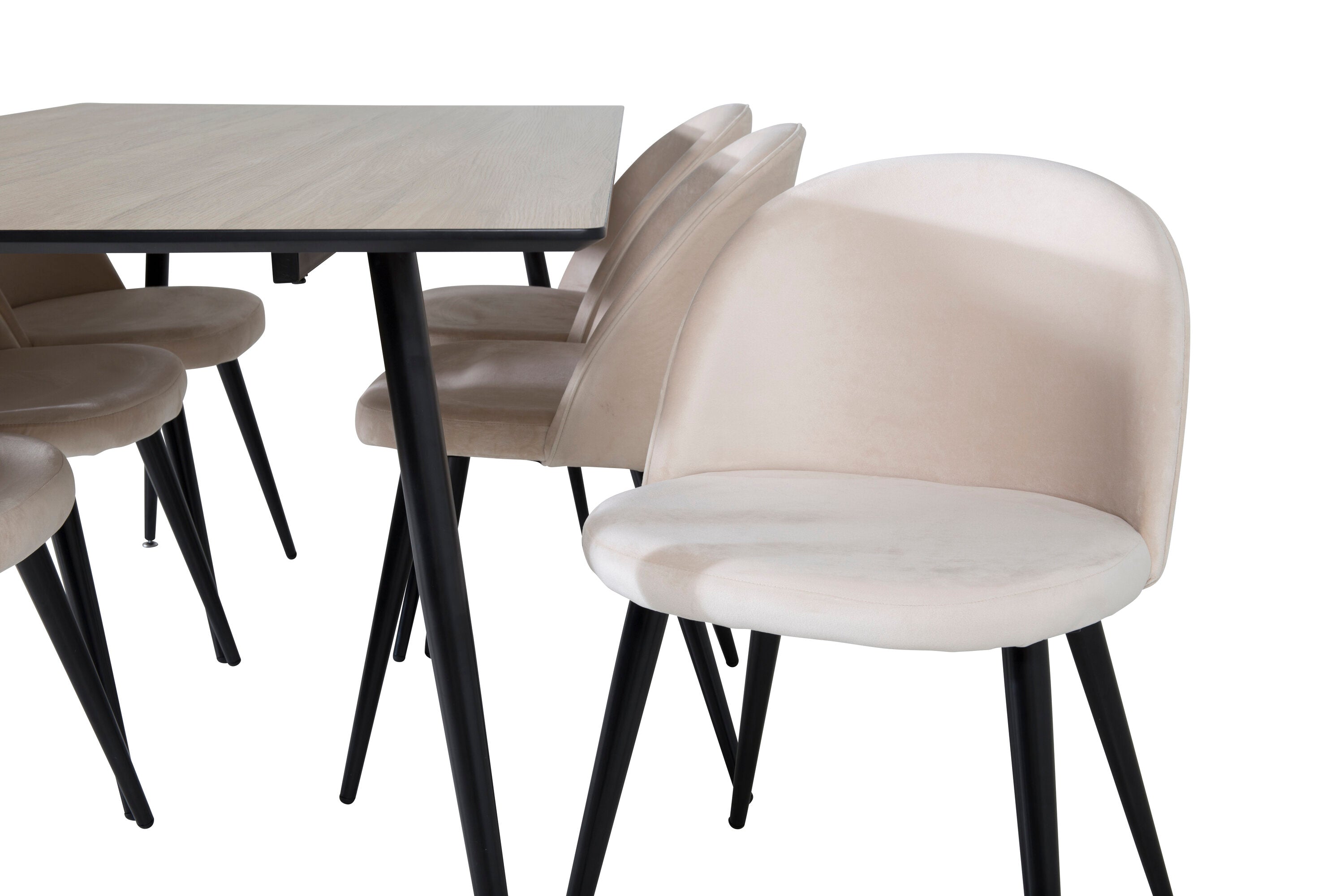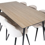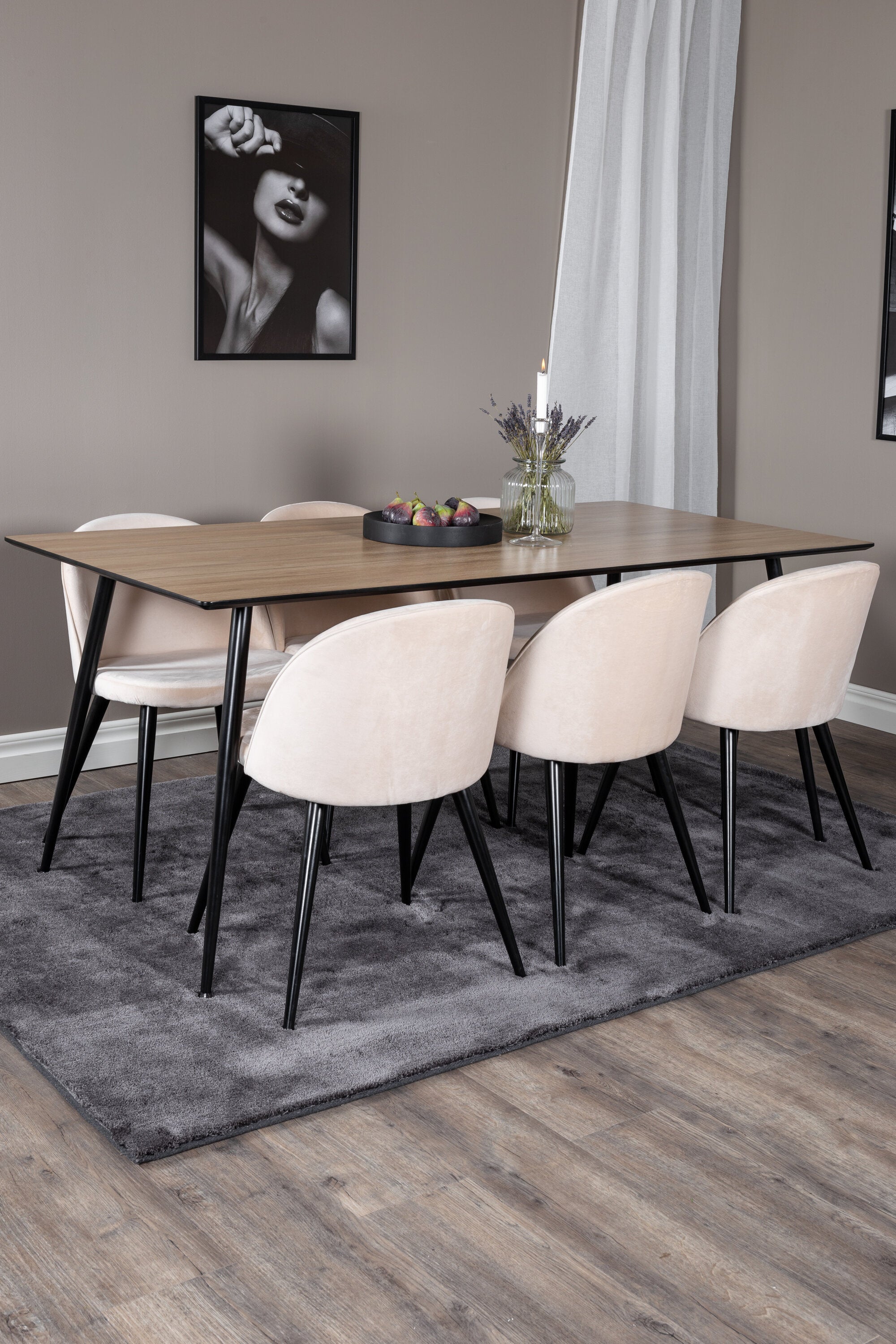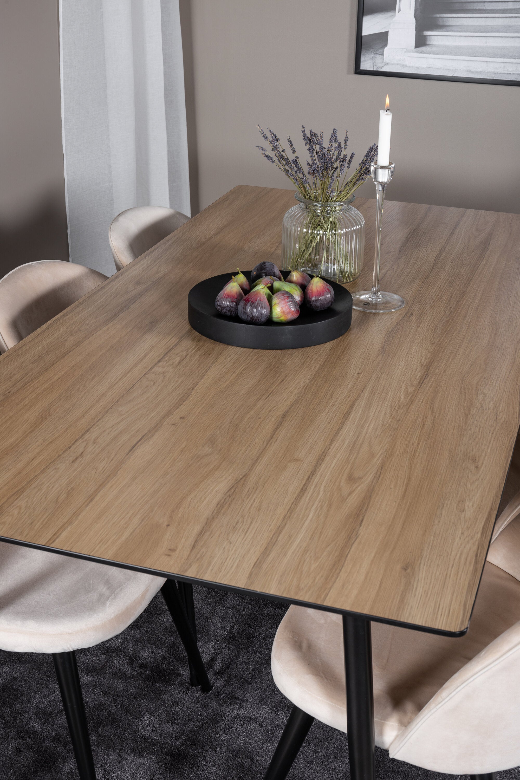 Jídelní stůl Silar - 180 cm - "Wood Look" melamin / černé nohy + sametová jídelní židle - béžová / černá_6