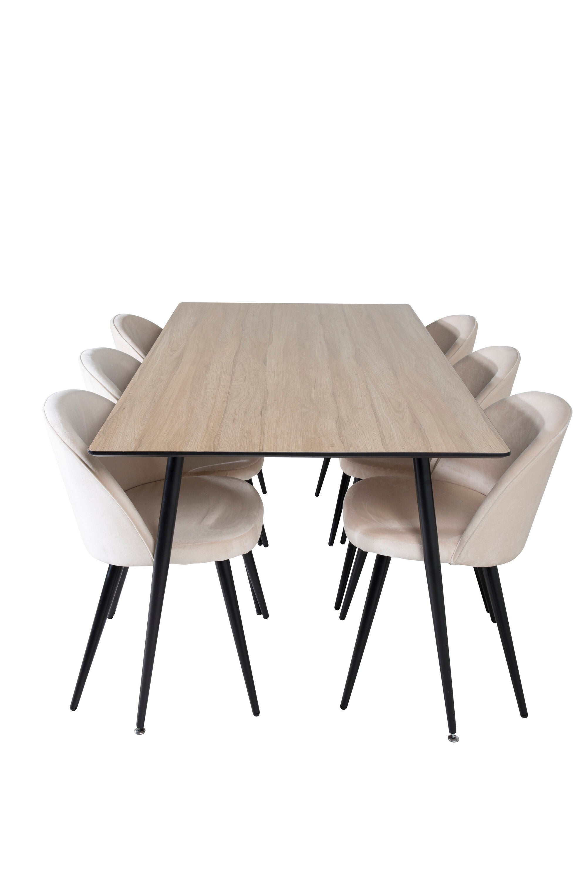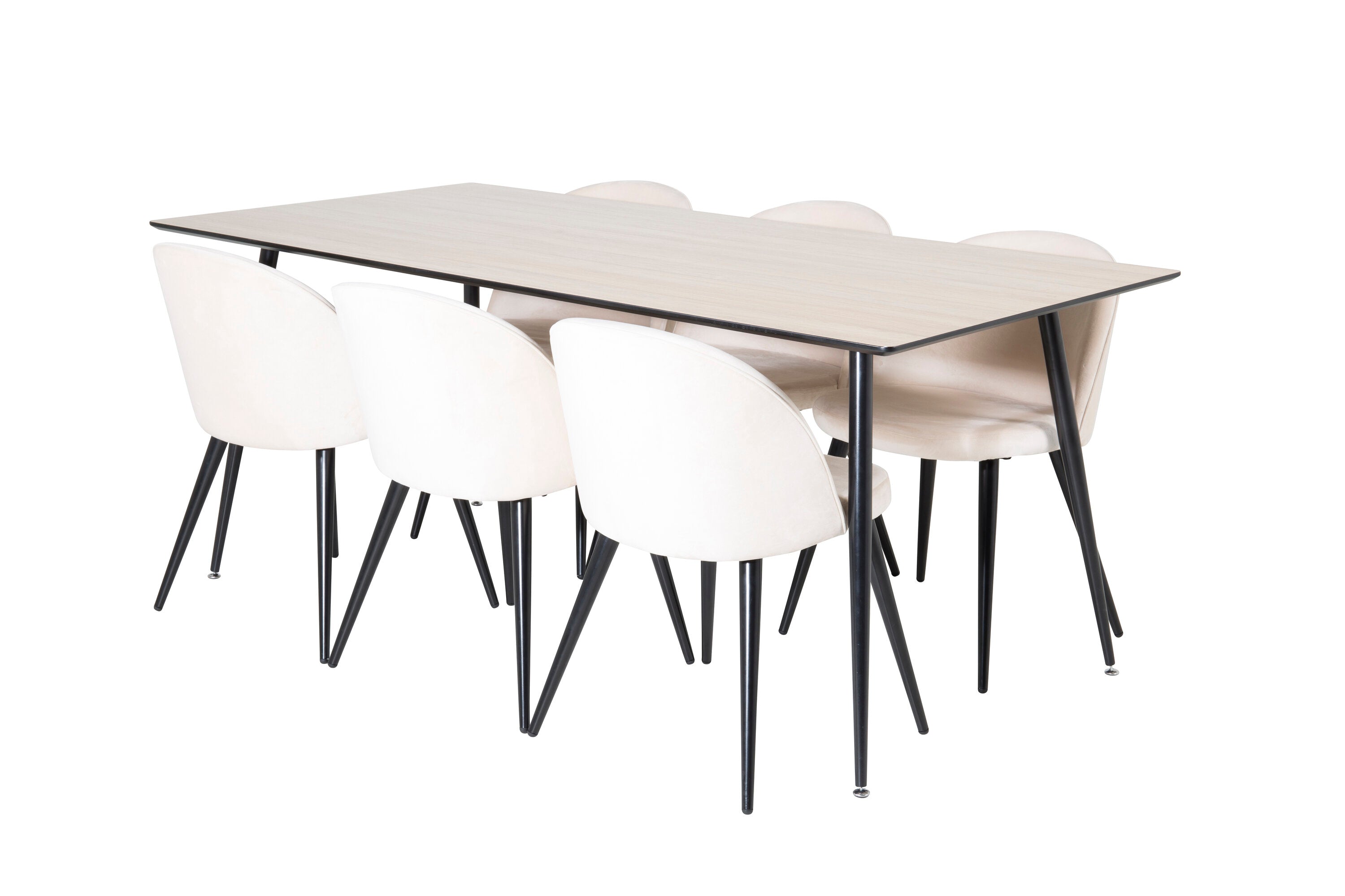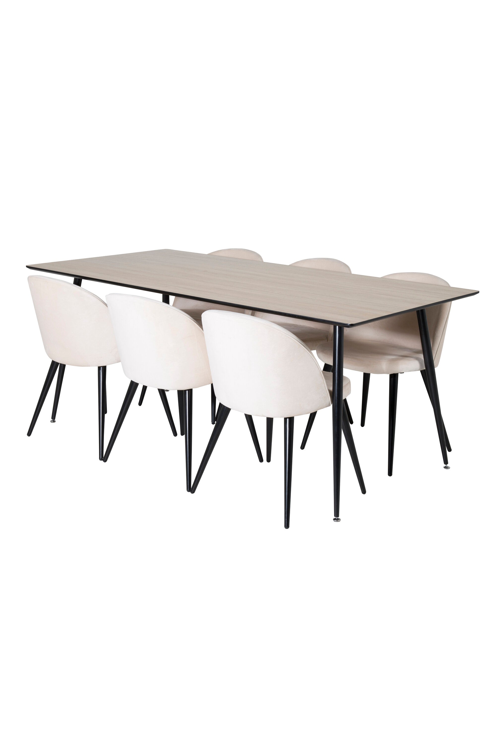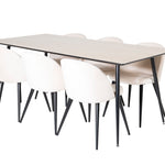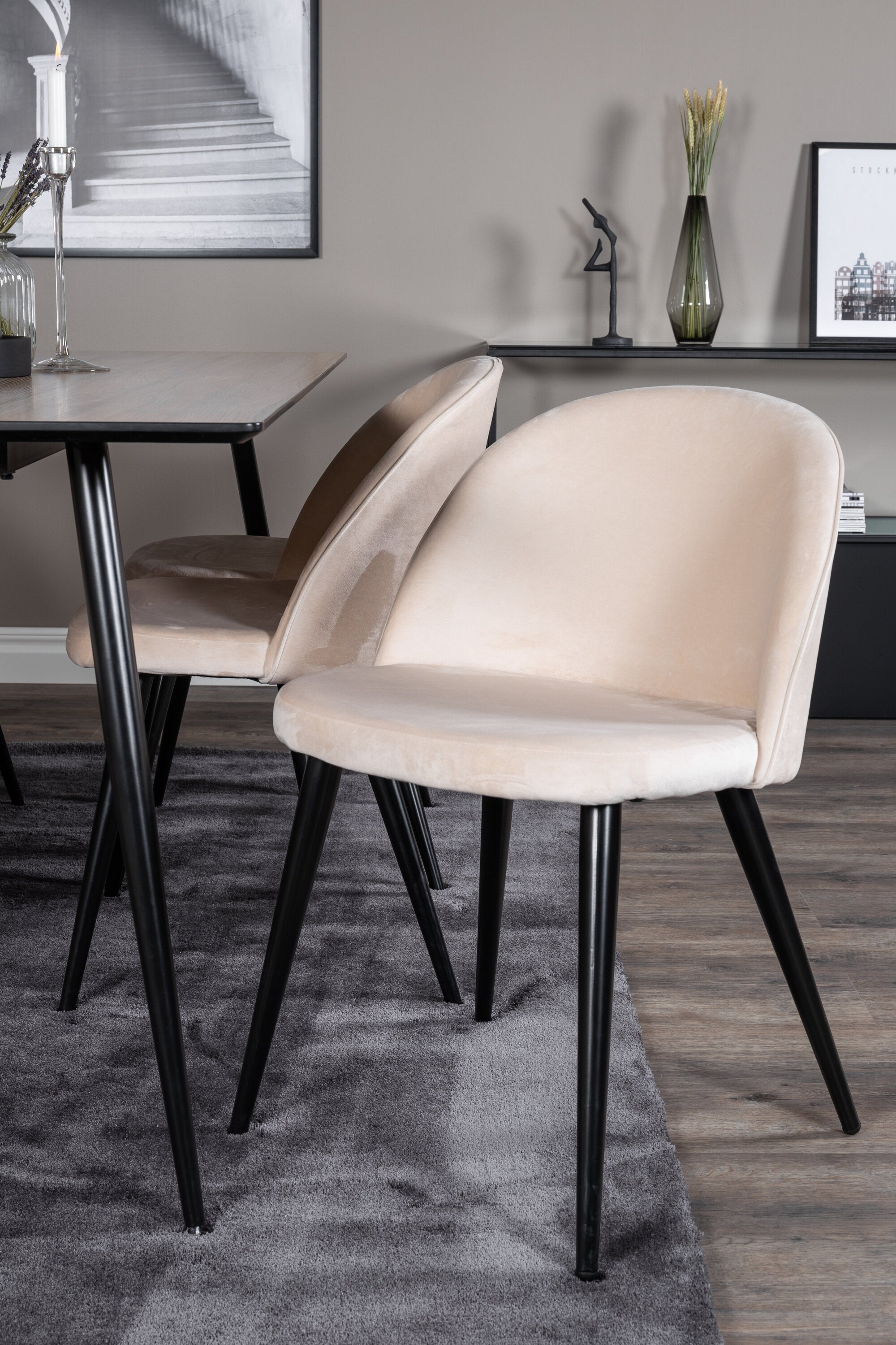 Jídelní stůl Silar - 180 cm - "Wood Look" melamin / černé nohy + sametová jídelní židle - béžová / černá_6