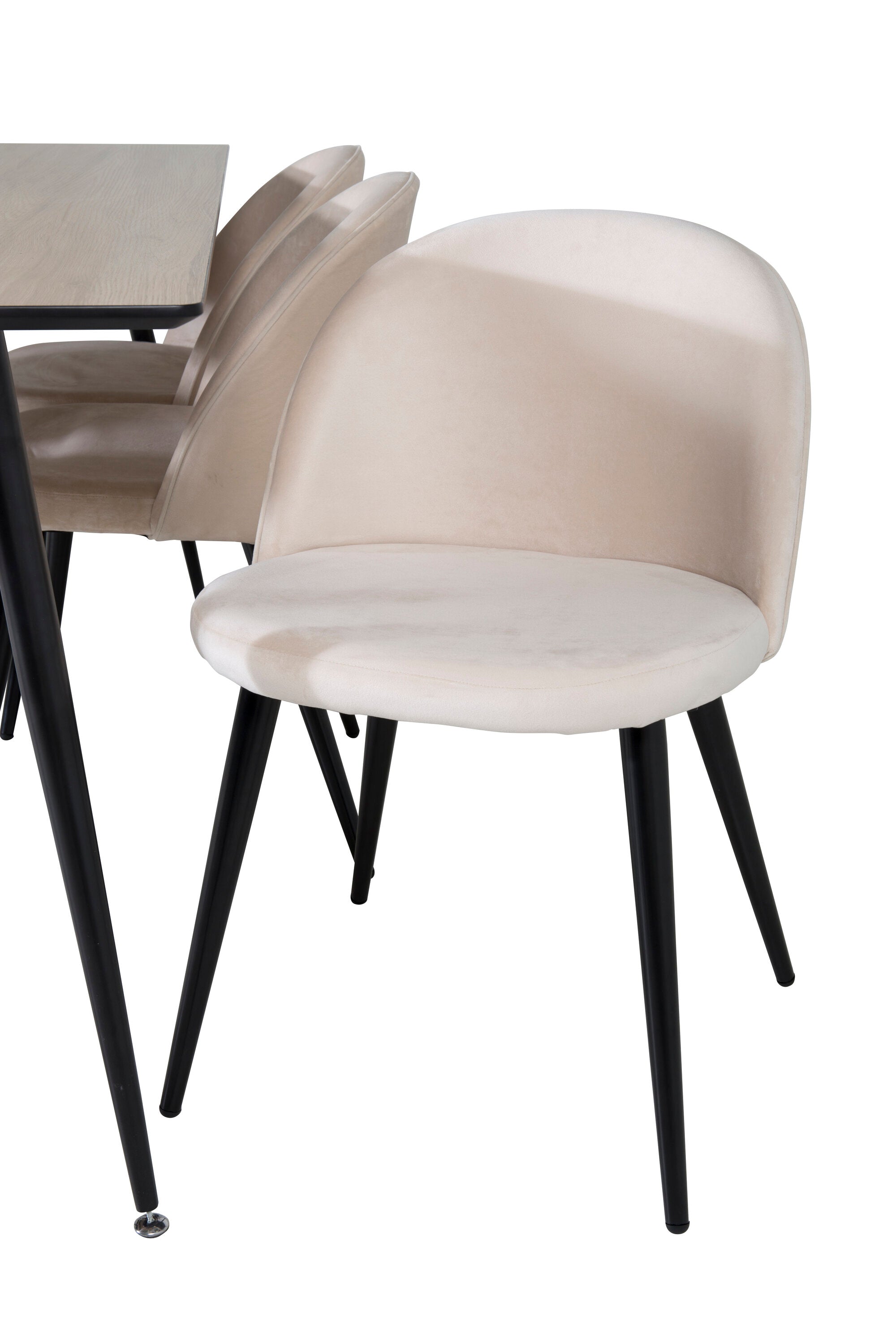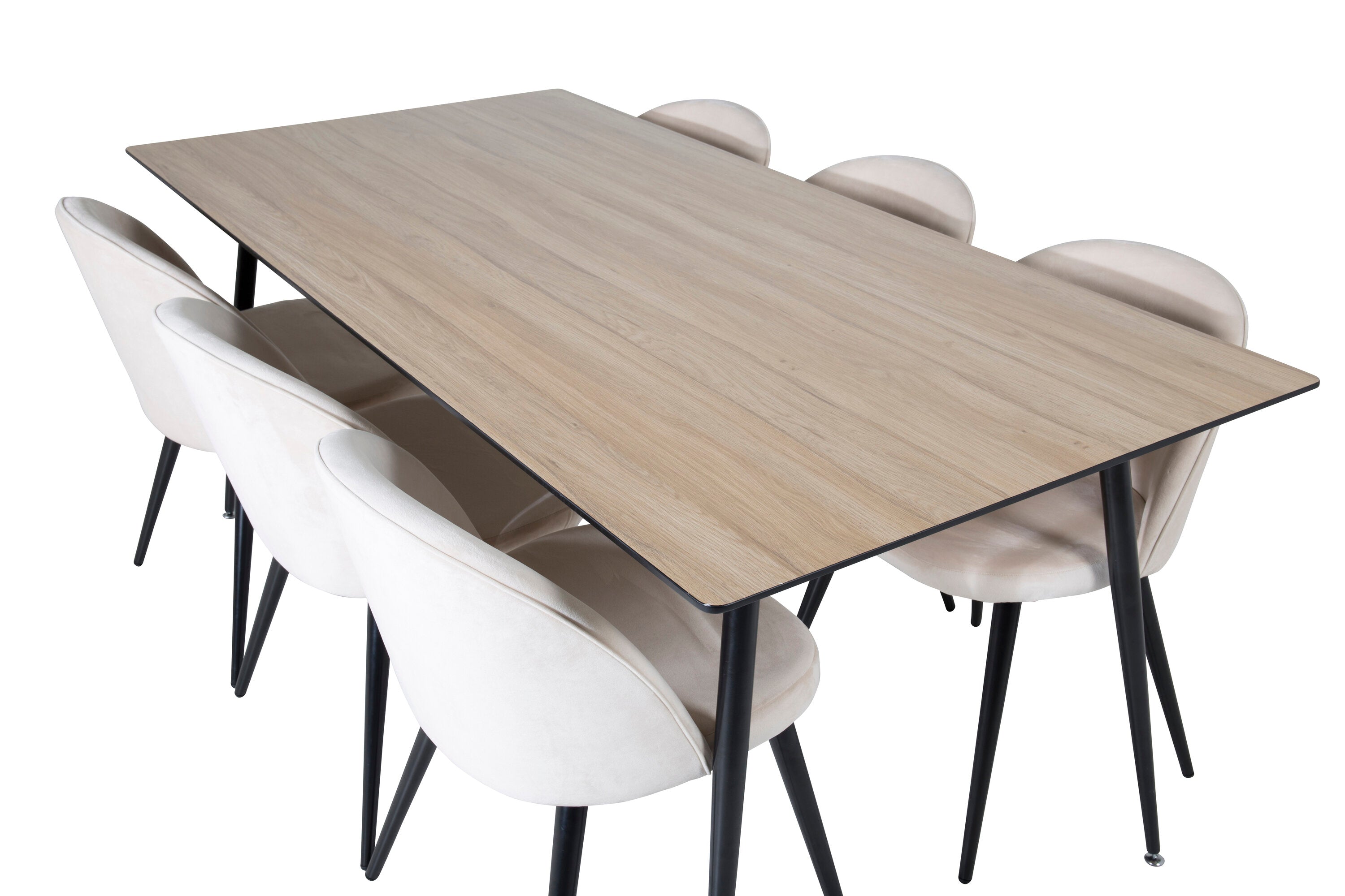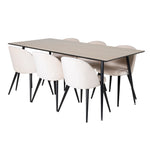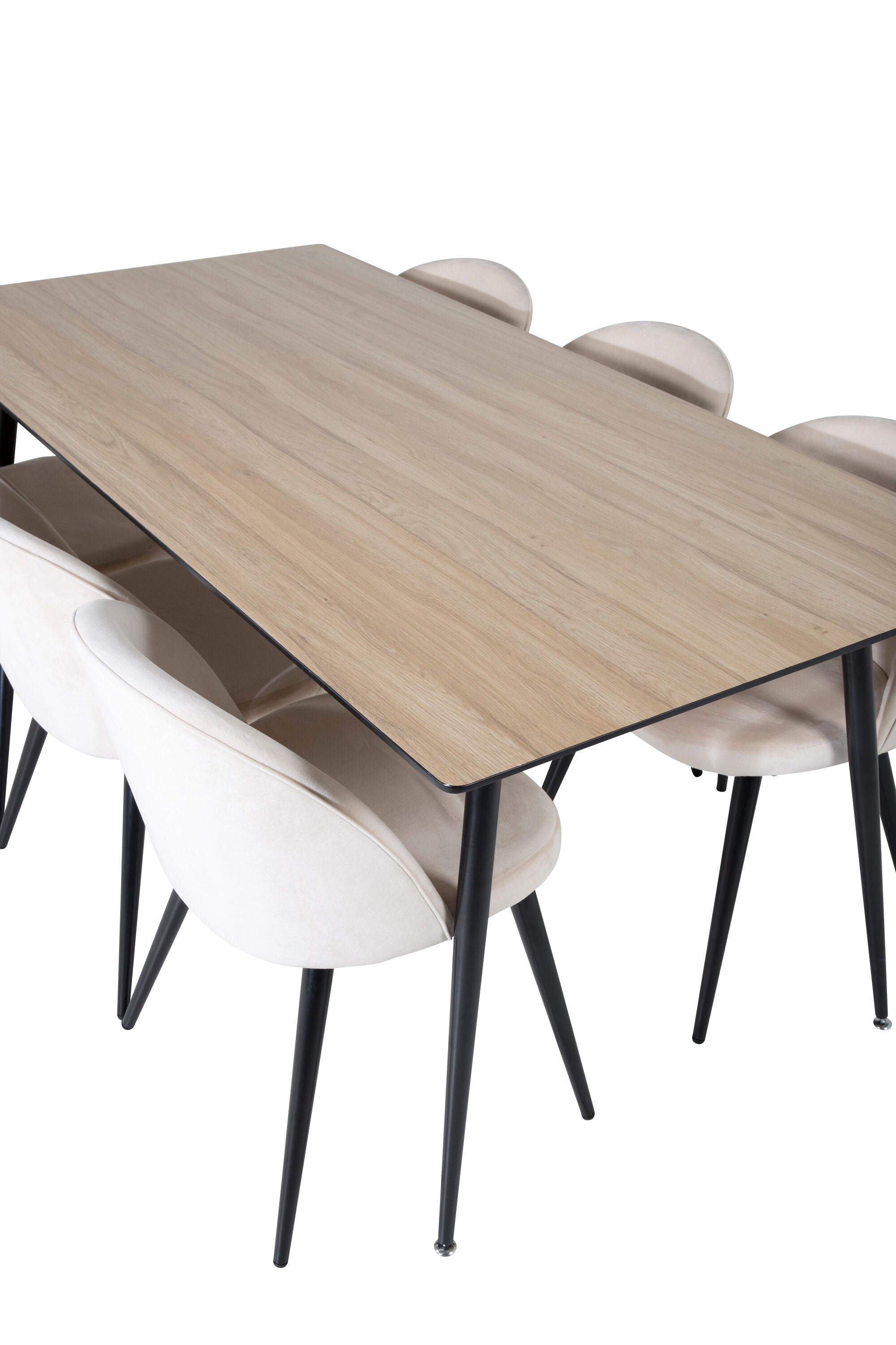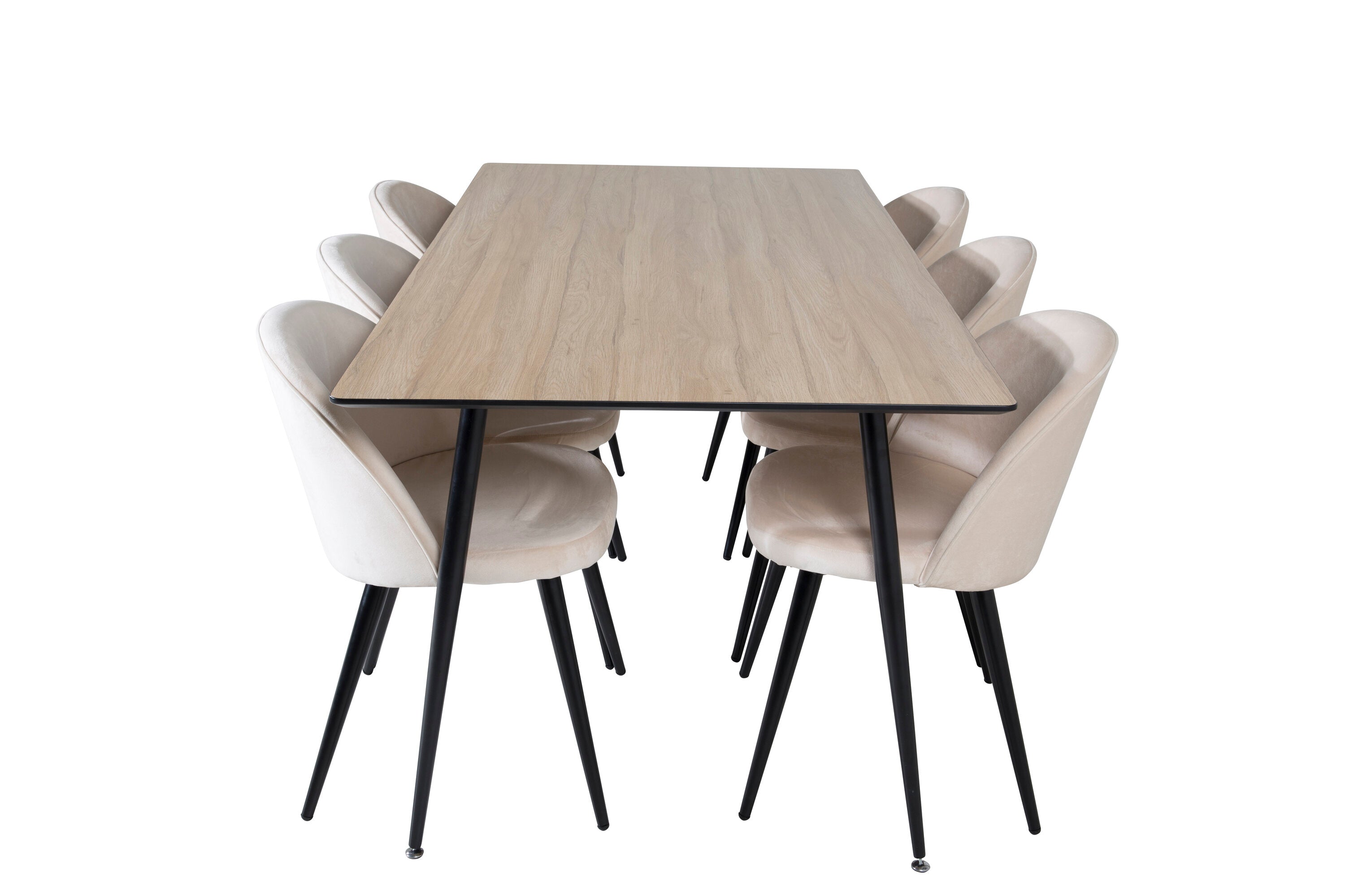 Jídelní stůl Silar - 180 cm - "Wood Look" melamin / černé nohy + sametová jídelní židle - béžová / černá_6