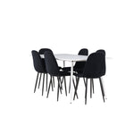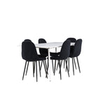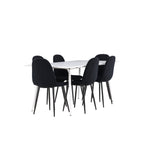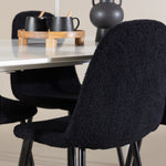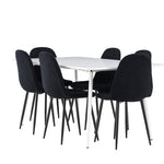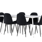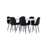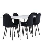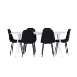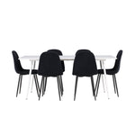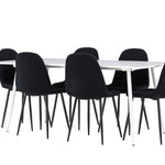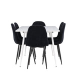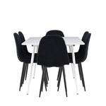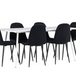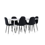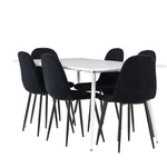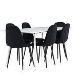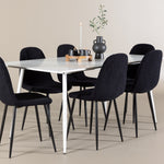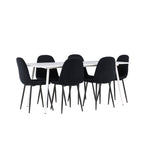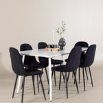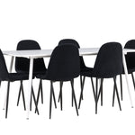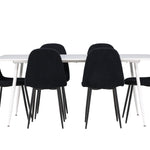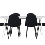 Objevte jídelní židli Polar a jídelní stůl Silar – dokonalou kombinaci moderní elegance a všestrannosti pro vaše jídelní uspořádání. Židle má certifikaci FSC® (FSC®C177288), což znamená, že se skládá ze dřeva z odpovědného lesnictví, lesnictví, které bere ohled na lidi a životní prostředí. Jídelní židle Polar je tou nejlepší volbou, která dodá vaší jídelně stylový a moderní nádech. Tmavě černá barva křesla a polyesterový plyšový materiál poskytují exkluzivní pocit a nabízejí pohodlné sezení na všech vašich večeřích a setkáních. Jeho moderní design a čisté linie poskytují nadčasovou estetiku, která doplňuje všechny styly interiéru. Nohy jídelní židle Polar jsou vyrobeny z černé oceli, poskytují pevnou a robustní konstrukci a zároveň přispívají k jejímu elegantnímu vzhledu. Díky své jednoduchosti a všestrannosti bude Polar vítaným doplňkem vašeho domova. Jídelní stůl Silar nabízí velkorysé rozměry 180x90 cm poskytující dostatek prostoru pro přivítání vašich blízkých. Bílý stůl dodává místnosti světlý a vzdušný pocit a vytváří příjemnou atmosféru pro stolování a společenské setkání. Silar je nejen praktický, ale i trendy a skvěle se hodí do moderních interiérů. Vytvářejte vzpomínky a sdílejte příjemné chvíle s přáteli a rodinou u jídelního stolu Silar, ať už pro každodenní jídlo nebo slavnostní příležitosti. Jídelní židle Polar a jídelní stůl Silar společně tvoří elegantní a funkční jídelní set, který bude ústředním bodem vašeho domova, kde kvete komunita a radost.