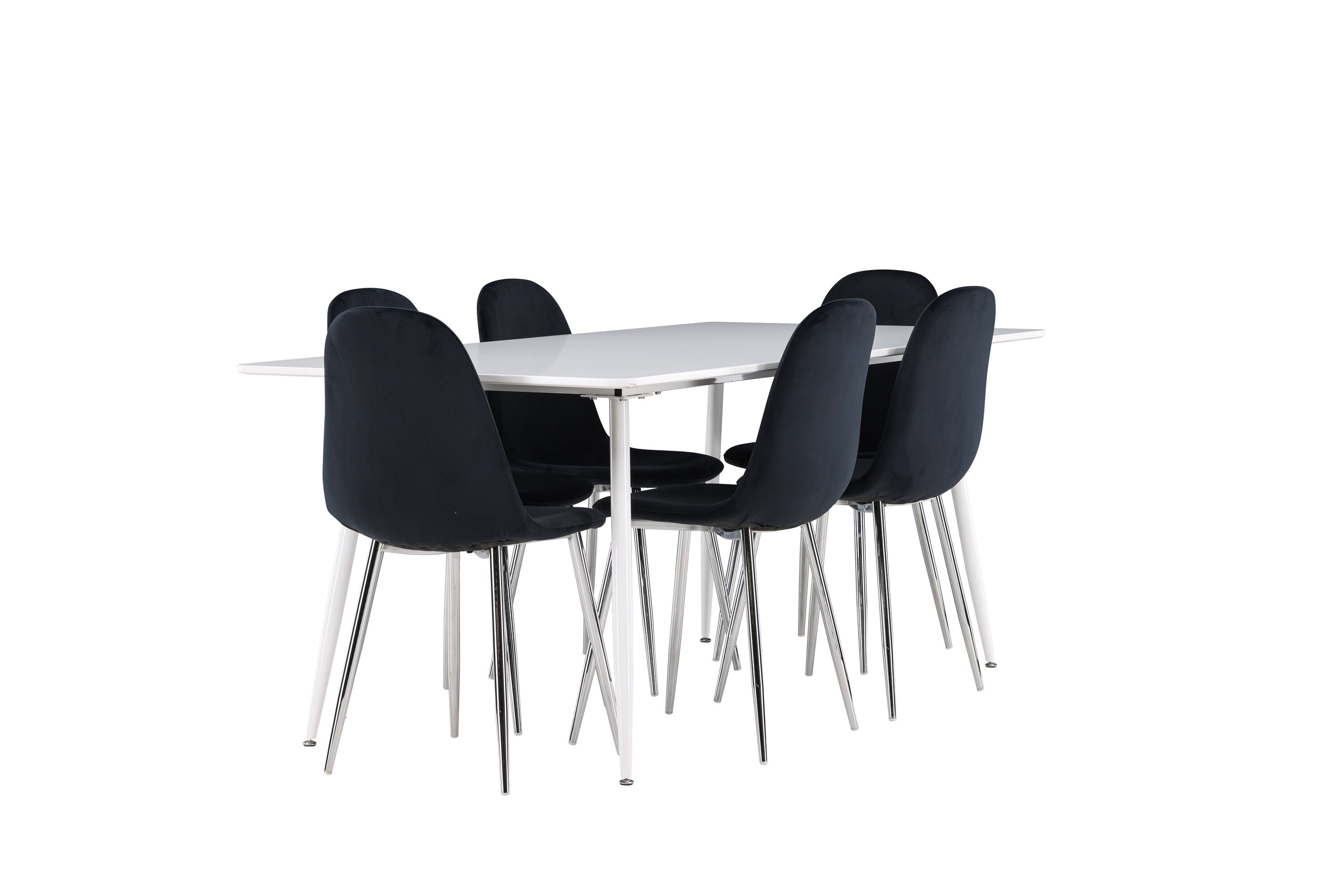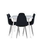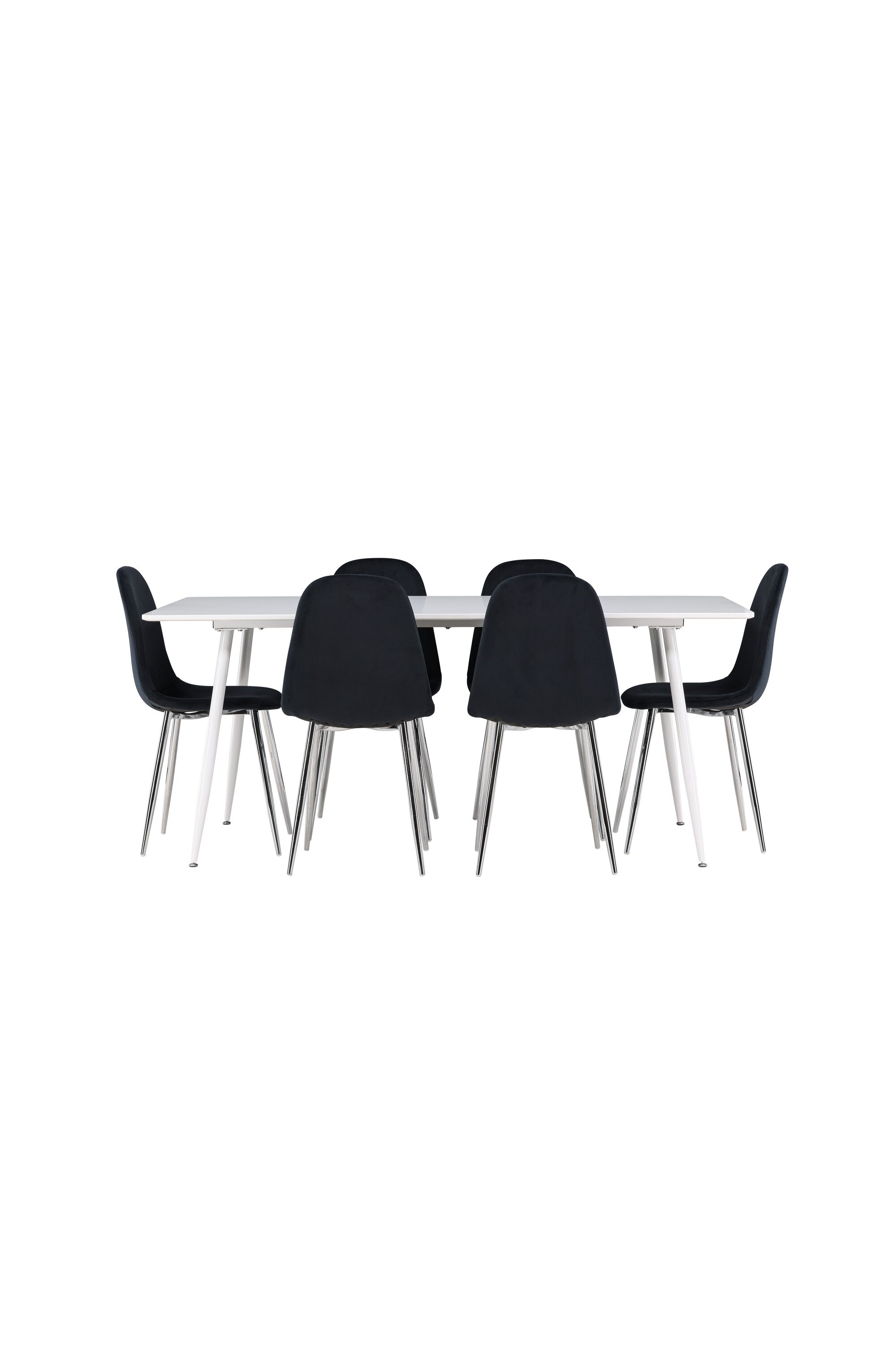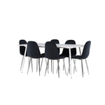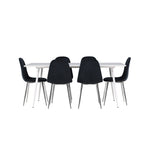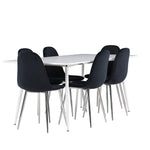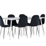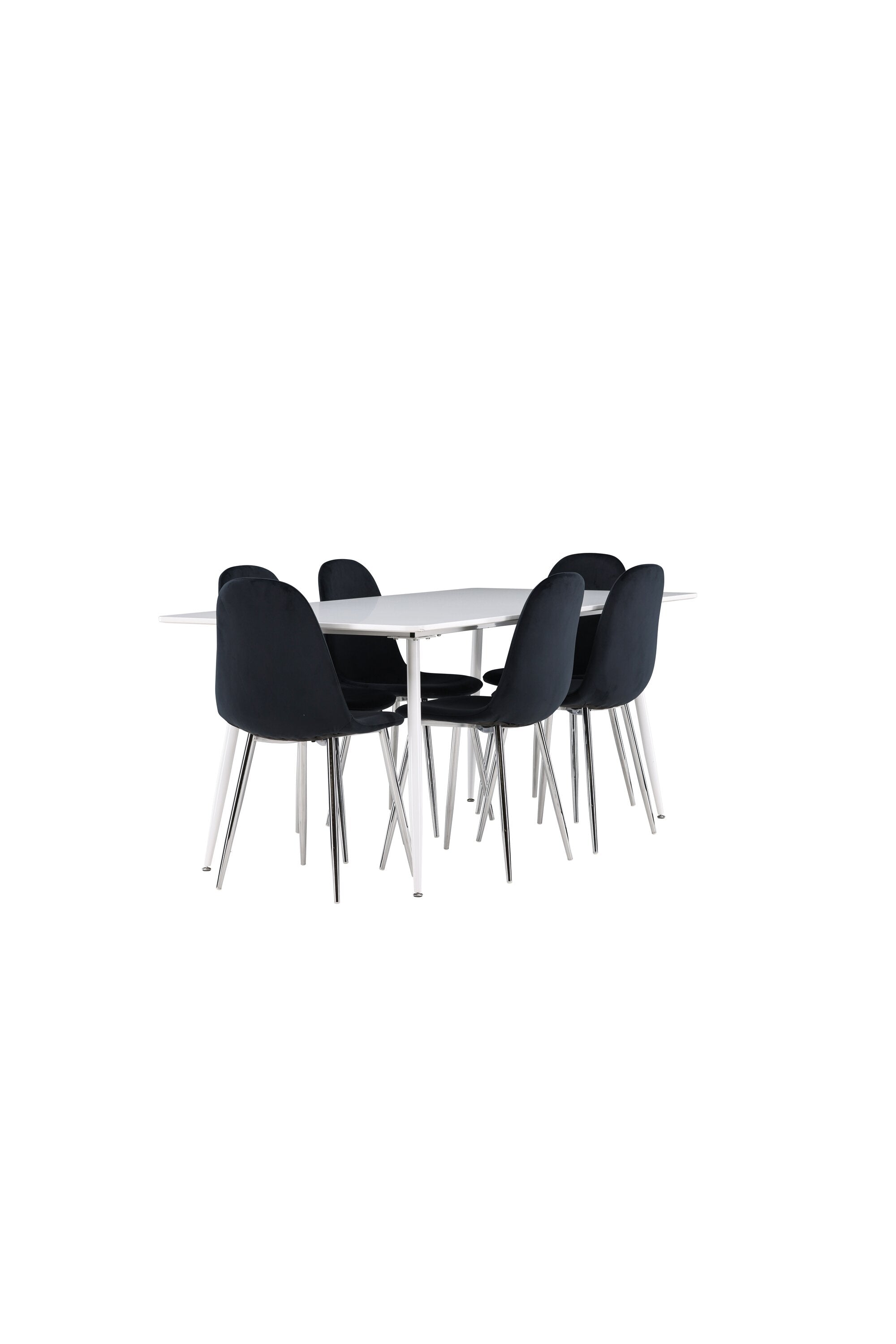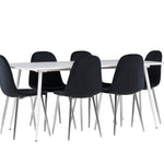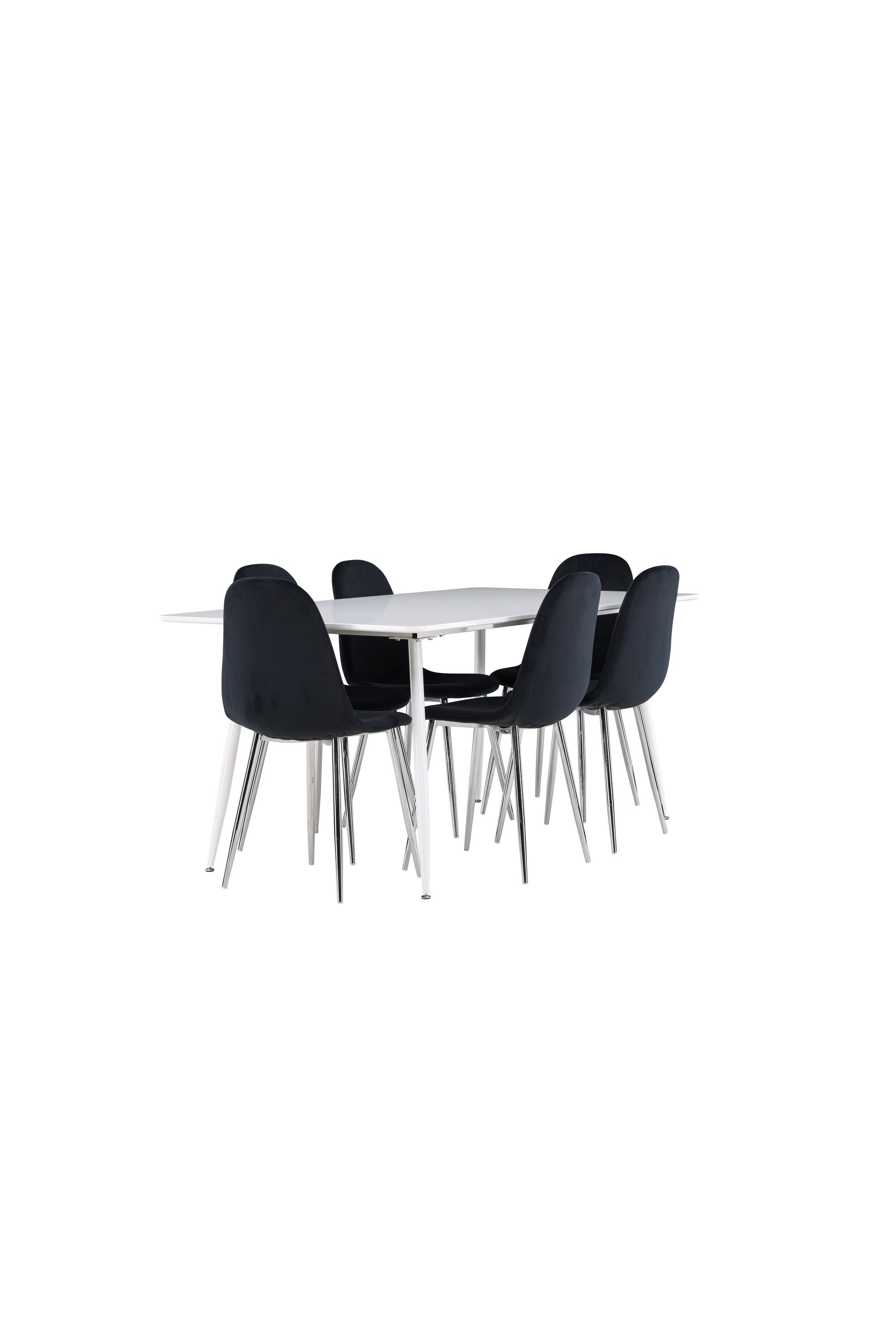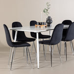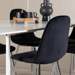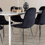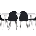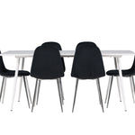 Elegantní jídelní židle v luxusním duchu! Polar má celočalouněný design s chromovanými kovovými nohami, mírně zaobleným opěradlem a elegantním černým sametovým sedákem s měkkým polstrováním pro extra pohodlí. Zde nemusíte dělat kompromisy v pohodlí a designu. Slaďte s jídelním stolem Silar a získáte kompletní jídelní set pro srdce domova! Objevte jídelní stůl Silar - elegantní a všestranný kus nábytku pro přátele a rodinu. S velkorysými rozměry 180x90 cm nabízí Silar dostatek prostoru pro přivítání vašich blízkých. Bílý stůl dodává místnosti lehký a vzdušný pocit a vytváří příjemnou atmosféru pro jídlo a setkání. Jídelní stůl Silar je nejen praktický, ale i trendy a skvěle se hodí do moderních interiérů. Vytvářejte vzpomínky a sdílejte příjemné chvíle s přáteli a rodinou v této jídelní sadě. Ať už se jedná o každodenní jídlo nebo slavnostní příležitosti, tato jídelní souprava se stane ústředním bodem vašeho domova, kde vzkvétá komunita a radost.