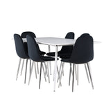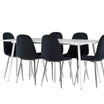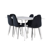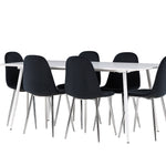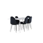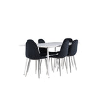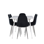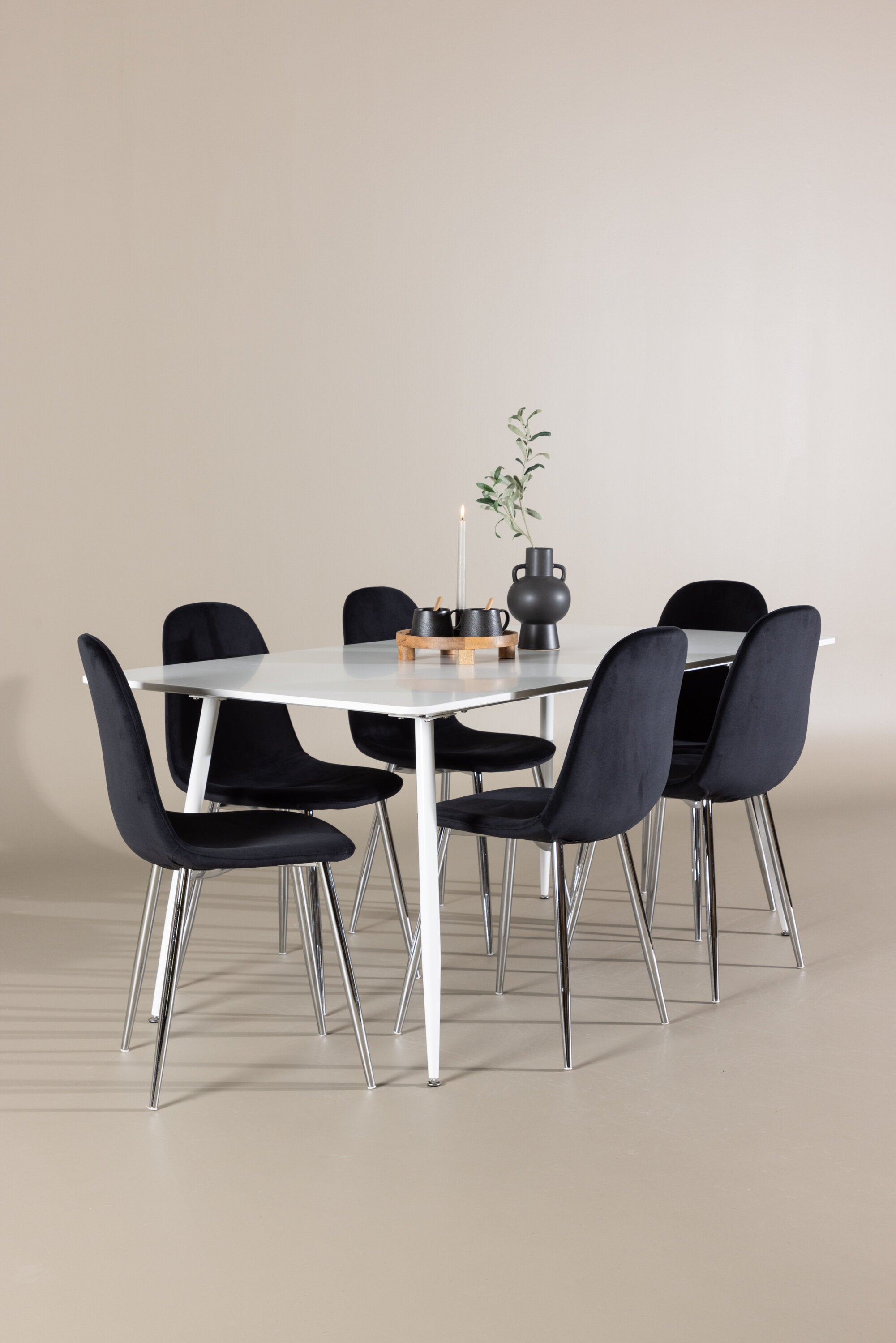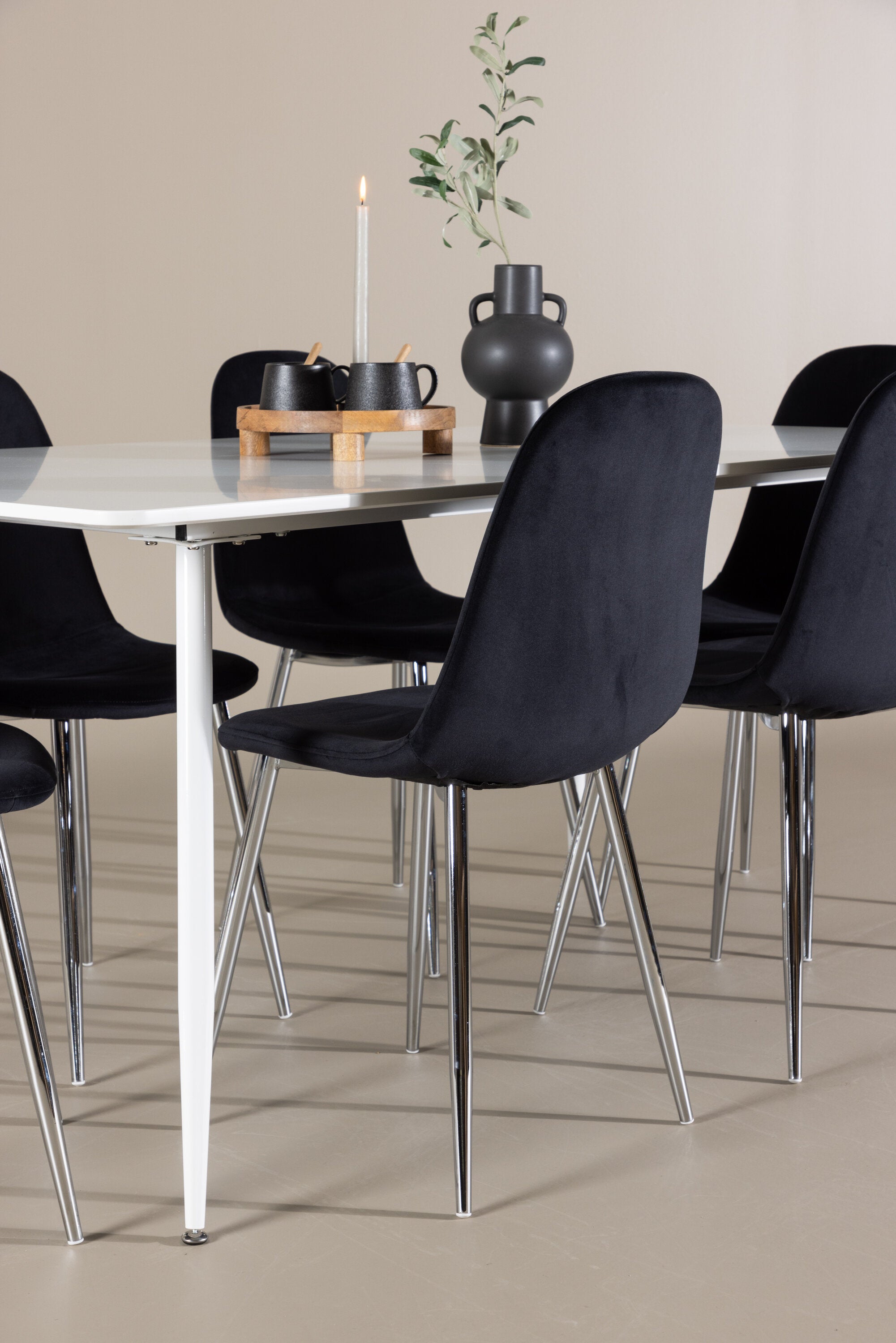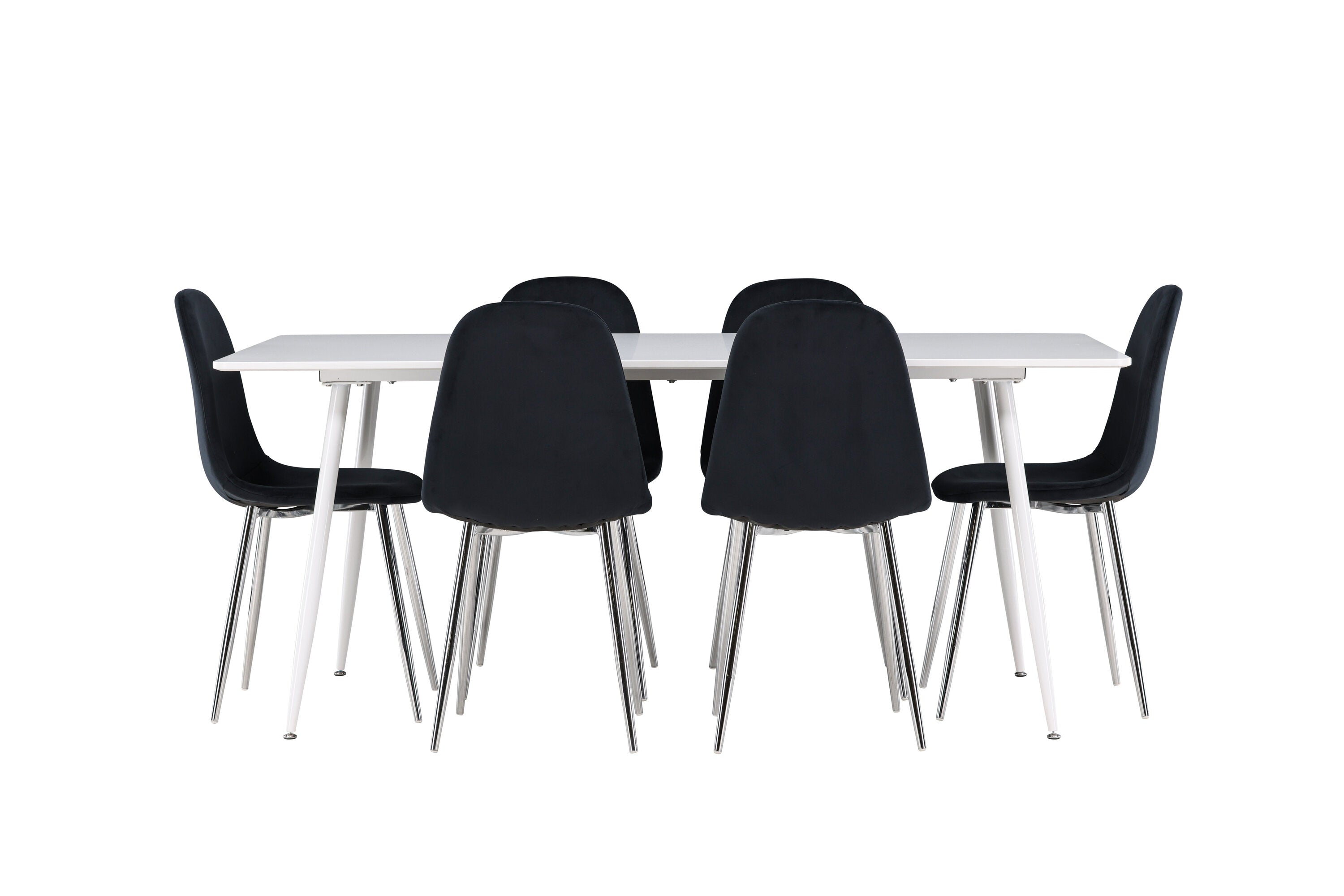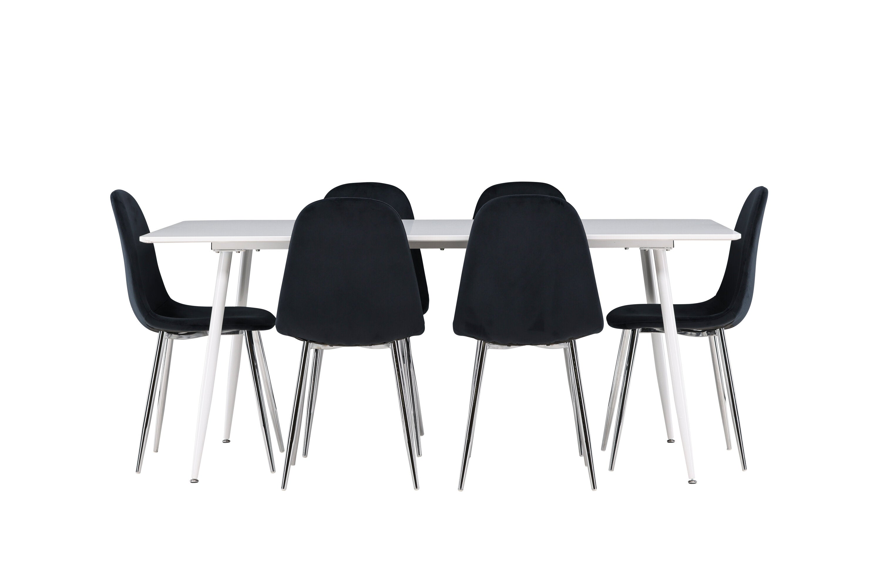 Elegantní jídelní židle v luxusním duchu! Polar má celočalouněný design s chromovanými kovovými nohami, mírně zaobleným opěradlem a elegantním černým sametovým sedákem s měkkým polstrováním pro extra pohodlí. Zde nemusíte dělat kompromisy v pohodlí a designu. Slaďte s jídelním stolem Silar a získáte kompletní jídelní set pro srdce domova! Objevte jídelní stůl Silar - elegantní a všestranný kus nábytku pro přátele a rodinu. S velkorysými rozměry 180x90 cm nabízí Silar dostatek prostoru pro přivítání vašich blízkých. Bílý stůl dodává místnosti lehký a vzdušný pocit a vytváří příjemnou atmosféru pro jídlo a setkání. Jídelní stůl Silar je nejen praktický, ale i trendy a skvěle se hodí do moderních interiérů. Vytvářejte vzpomínky a sdílejte příjemné chvíle s přáteli a rodinou v této jídelní sadě. Ať už se jedná o každodenní jídlo nebo slavnostní příležitosti, tato jídelní souprava se stane ústředním bodem vašeho domova, kde vzkvétá komunita a radost.