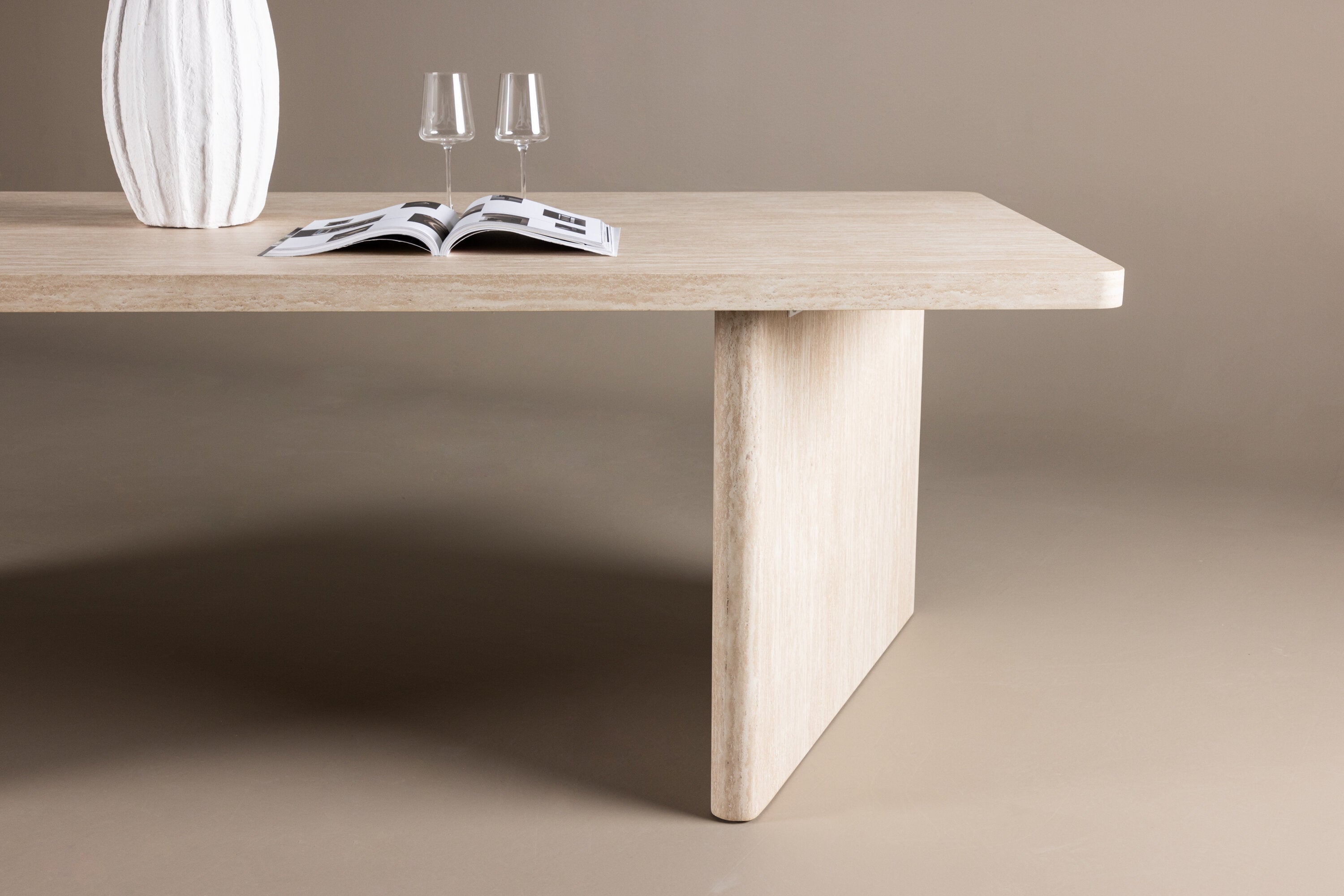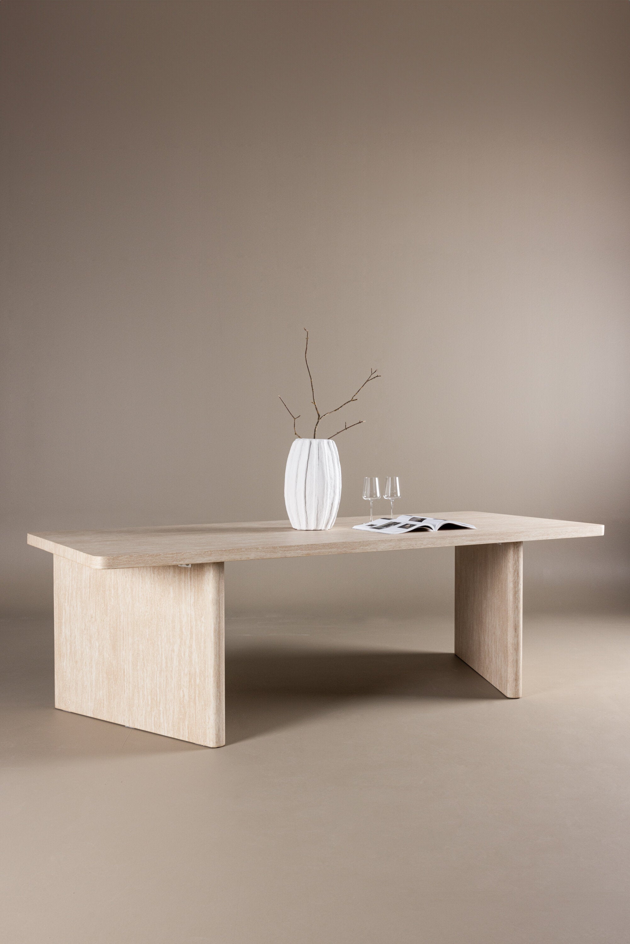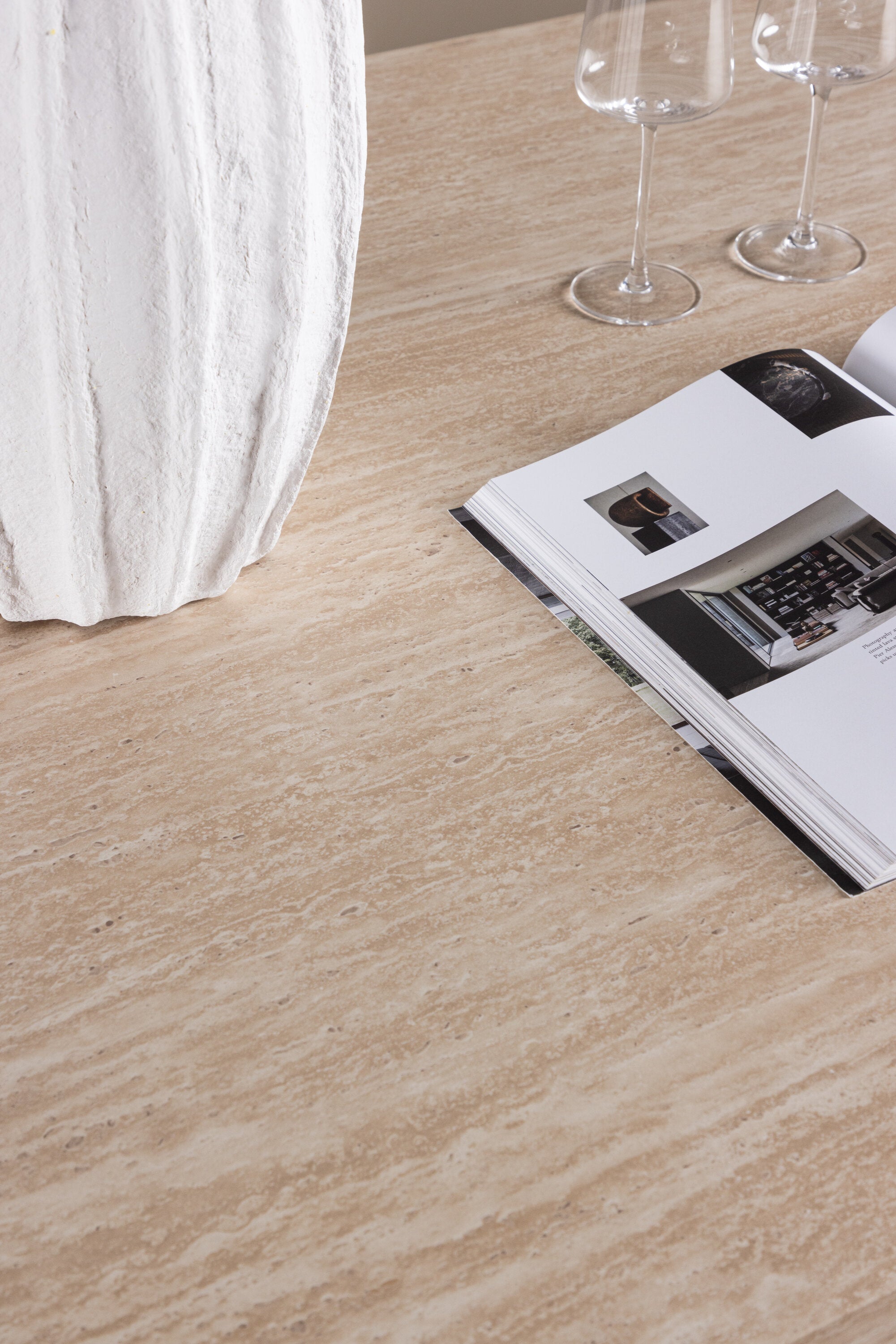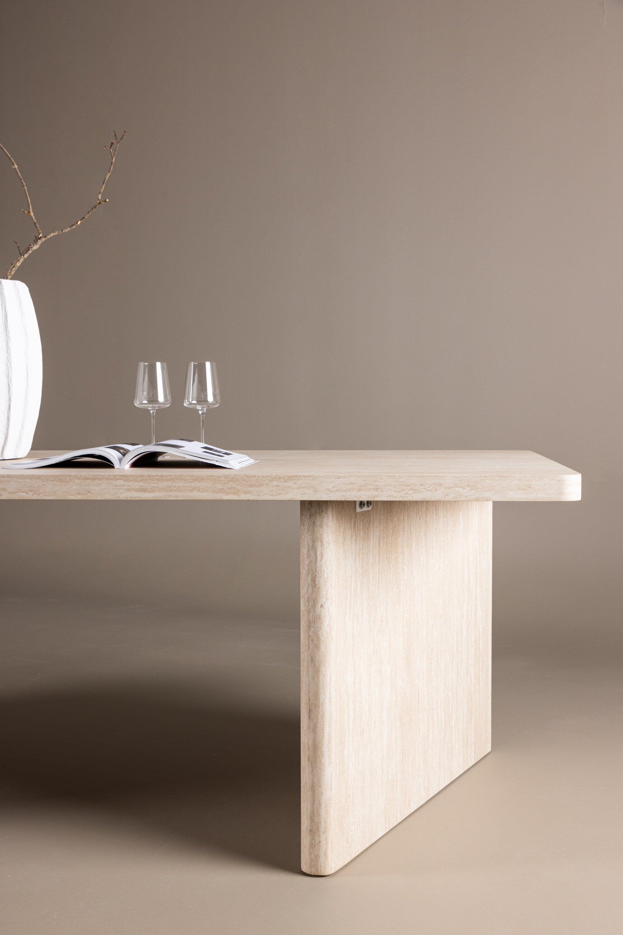 Výrobek má certifikaci FSC® (FSC®C177288), což znamená, že se skládá ze dřeva ze zodpovědného lesnictví, lesnictví, které bere ohled na lidi a životní prostředí. Objevte dokonalý doplněk vaší jídelny s jídelním stolem Skagen vyrobeným z MDF a potaženým elegantní béžovou barvou. Se svými působivými rozměry 240x100 cm nabízí tento jídelní stůl jak velkorysý prostor, tak propracovaný design, který pozvedne váš domov do nových výšin. Béžová MDF konstrukce dodává stolu teplý a příjemný vzhled, který vytváří harmonickou atmosféru ve vaší jídelně. Hladký povrch je nejen vizuálně atraktivní, ale také se snadno čistí a udržuje, díky čemuž je stůl ideální pro každodenní použití i pro slavnostní příležitosti. Neutrální béžový tón umožňuje snadnou integraci s různými styly interiéru a barevnými schématy a dodává vaší jídelně nadčasovou eleganci. Jídelní stůl Skagen má robustní a stabilní design, který zajišťuje, že stojí pevně i při bujarých večeřích a velkých rodinných sešlostech. Se svými velkorysými rozměry 240x100 cm se ke stolu pohodlně vejde až deset osob, takže se skvěle hodí jak pro intimní večeře, tak pro velké oslavy. Obdélníkový tvar nabízí prostornou a pohodlnou plochu pro servírování všeho od každodenních večeří až po rozsáhlá slavnostní jídla. Díky tomu je jídelní stůl Skagen vynikající volbou pro ty, kteří oceňují funkčnost i styl. Nechte jídelní stůl Skagen stát se srdcem vašeho domova, kde se styl a pohodlí setkávají a vytvářejí příjemné a útulné prostředí. Díky svému elegantnímu béžovému provedení a praktické velikosti je tento jídelní stůl perfektní volbou pro vytvoření nezapomenutelných okamžiků s rodinou a přáteli a pro radost z komunity kolem krásného a funkčního kusu nábytku.