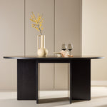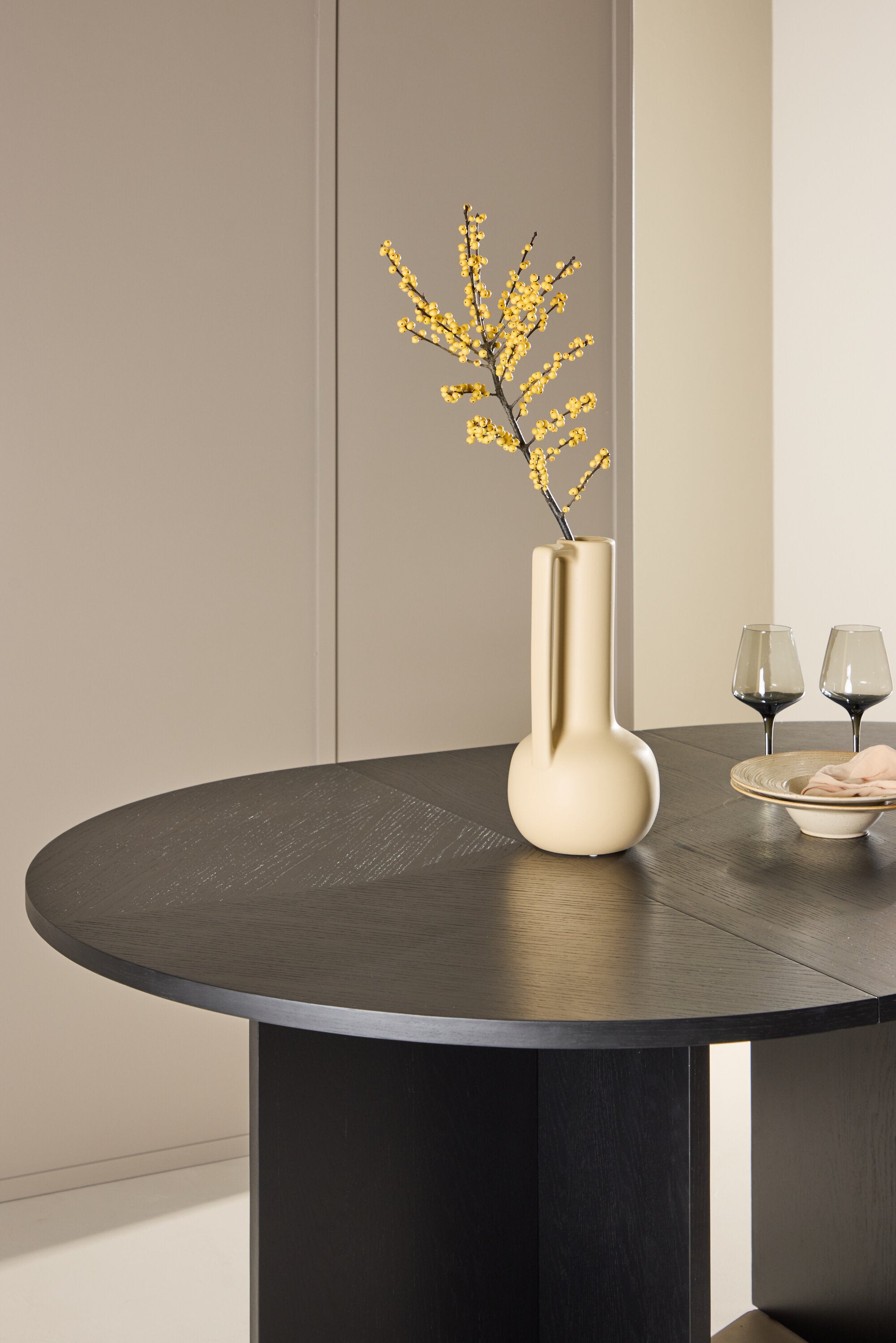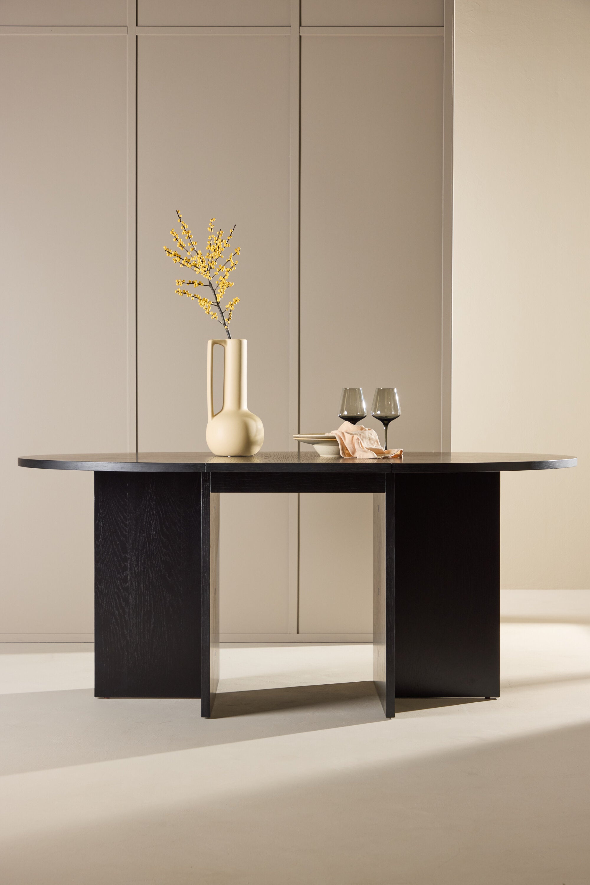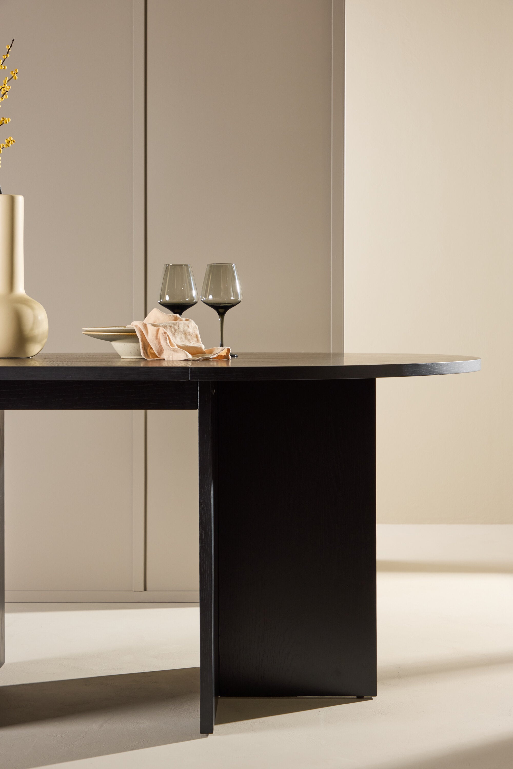 Jídelní stůl Strada kombinuje flexibilitu a moderní design elegantním způsobem, díky čemuž je dokonalým středobodem vaší jídelny. Strada, vyrobená z elegantního černého dýhovaného dřeva, je sofistikovaná a všestranná a nabízí řešení, které se hodí jak pro každodenní stolování, tak pro větší setkání.