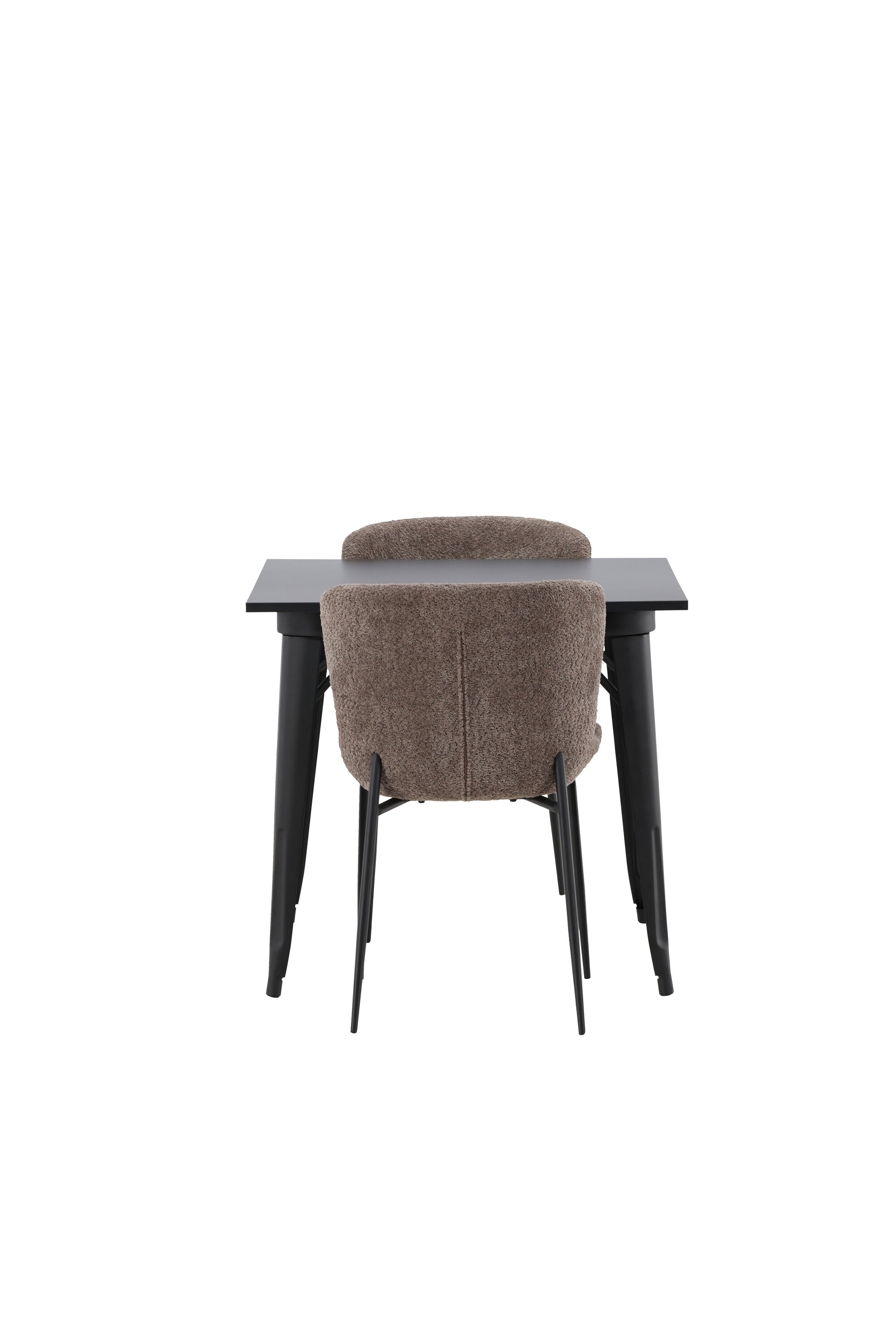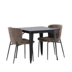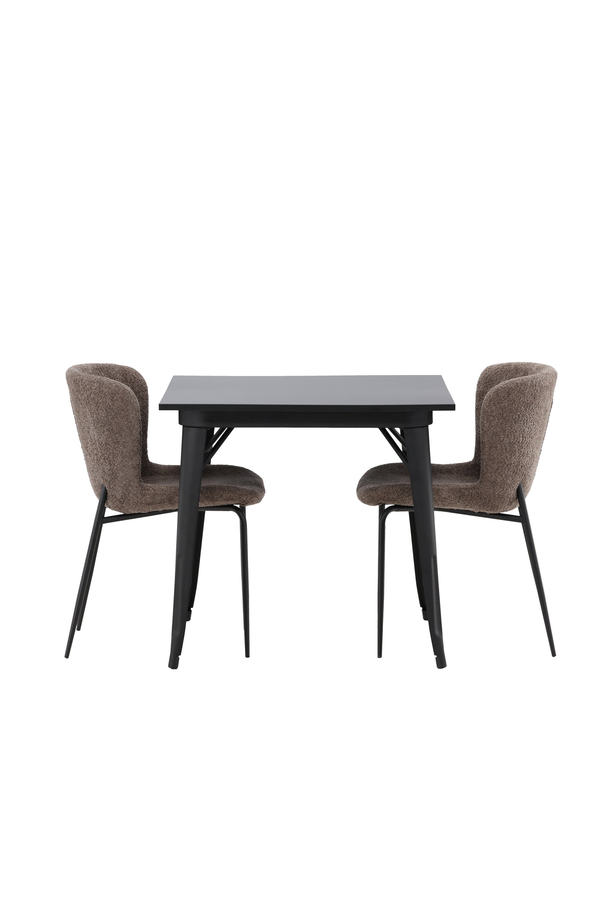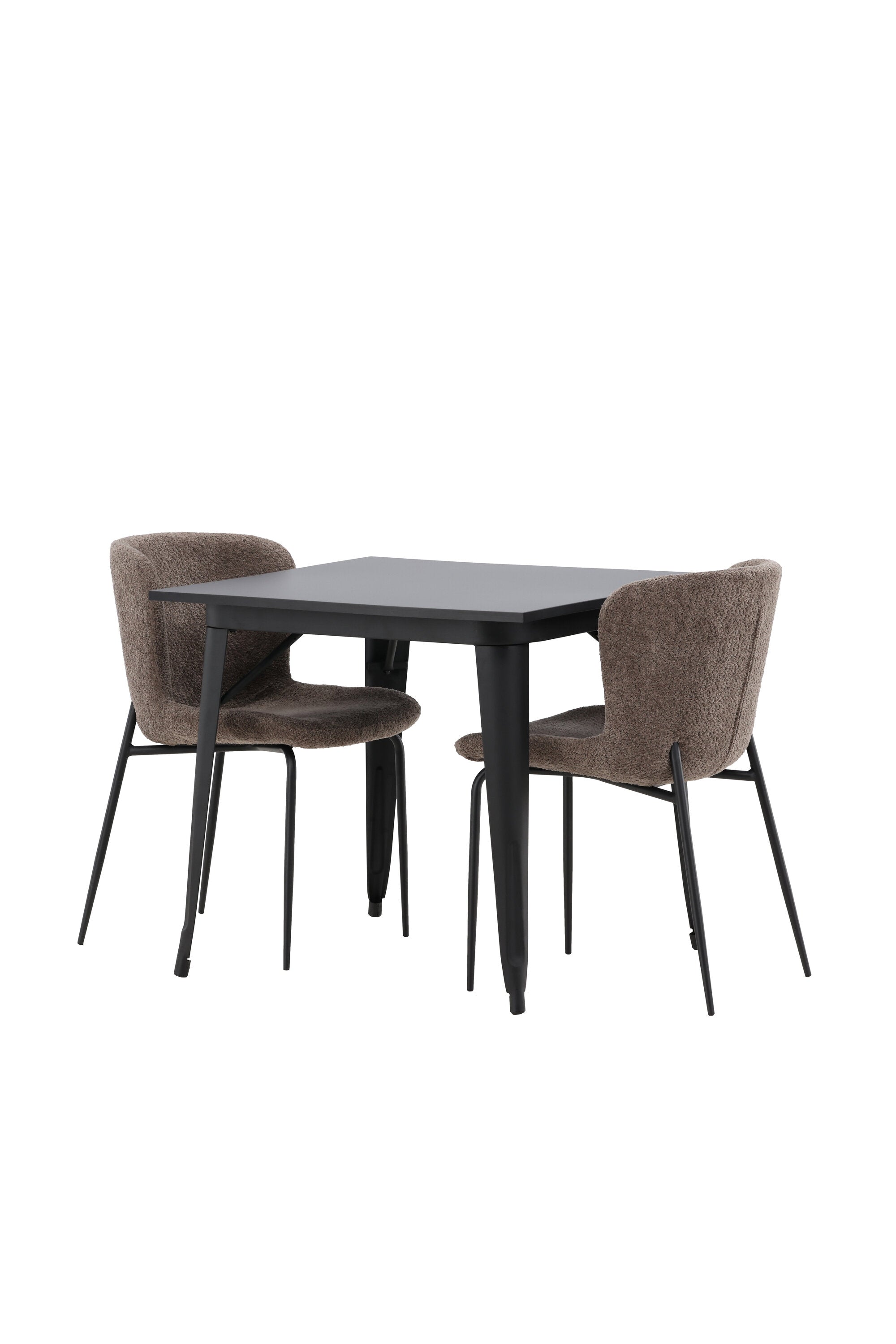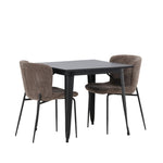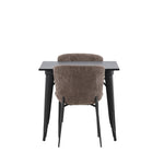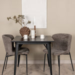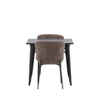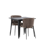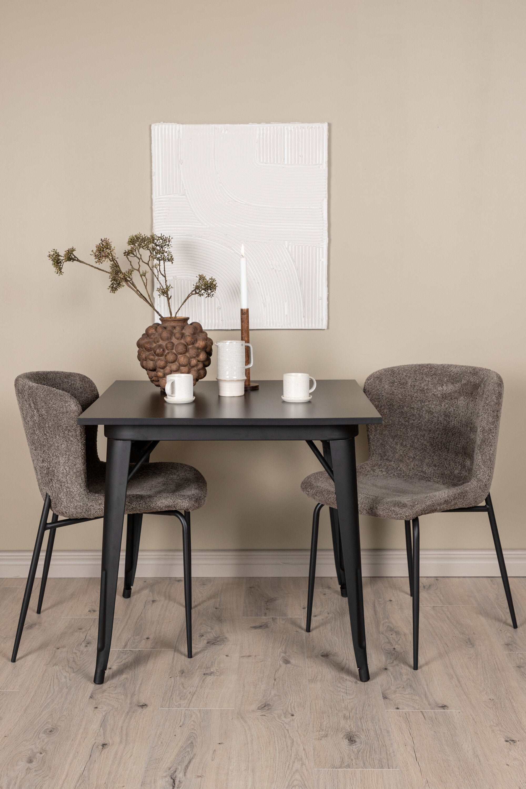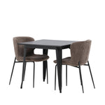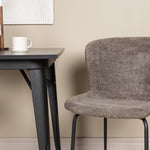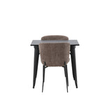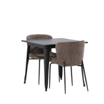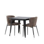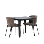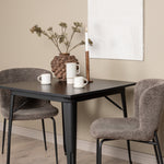 Moderní a okouzlující jídelní skupina – vybavte svůj domov chytře a stylově! Tento jídelní stůl ze série Tempe má klasický hranatý design a nadčasovou černou barvu. Deska stolu je z černé MDF a nohy z černého kovu. Zde v dokonalé kombinaci s našimi pohodlnými jídelními židlemi ze série Modesto ve skandinávském designu. Židle je celočalouněná šedou bouclé látkou se stylovými úzkými nohami v černém kovu. Mírně zaoblená záda a čalouněný sedák poskytují extra pohodlí a rozšiřují příjemné jídlo kolem jídelního stolu. Mělo by to být příjemné sedět u dobrého jídla!